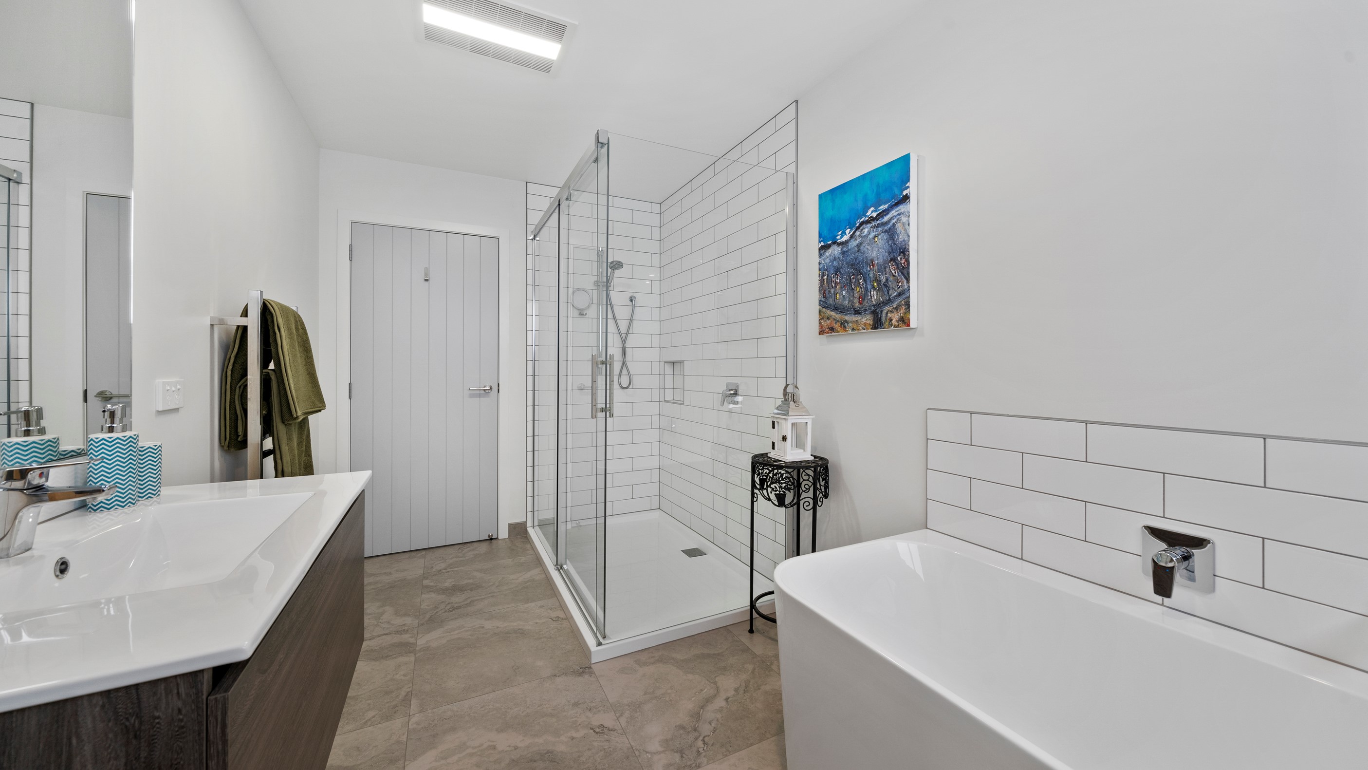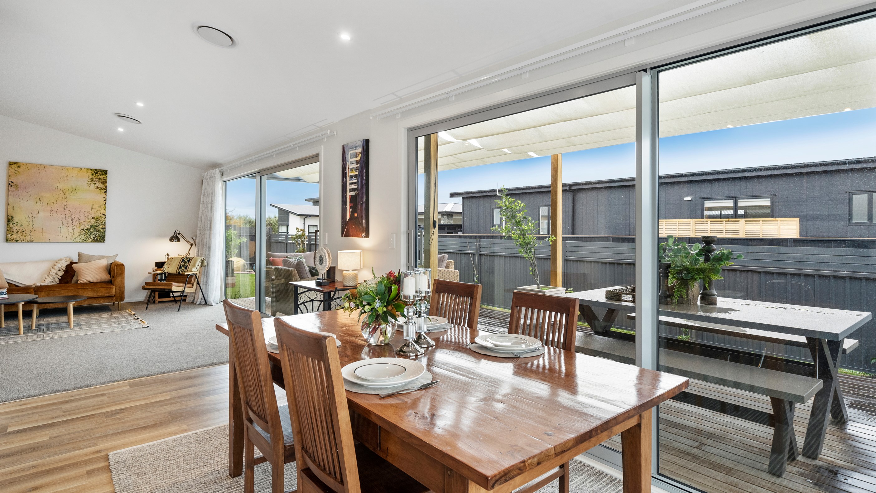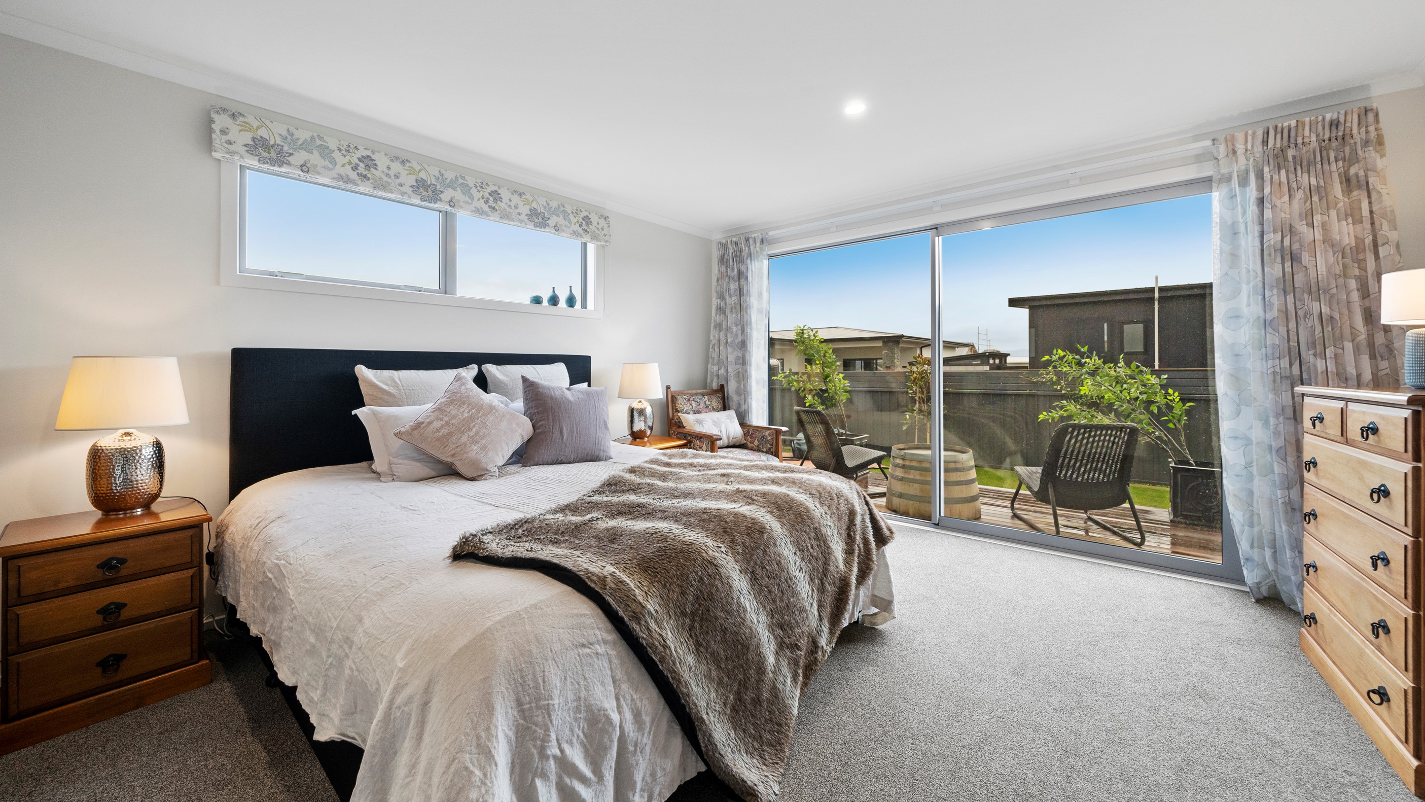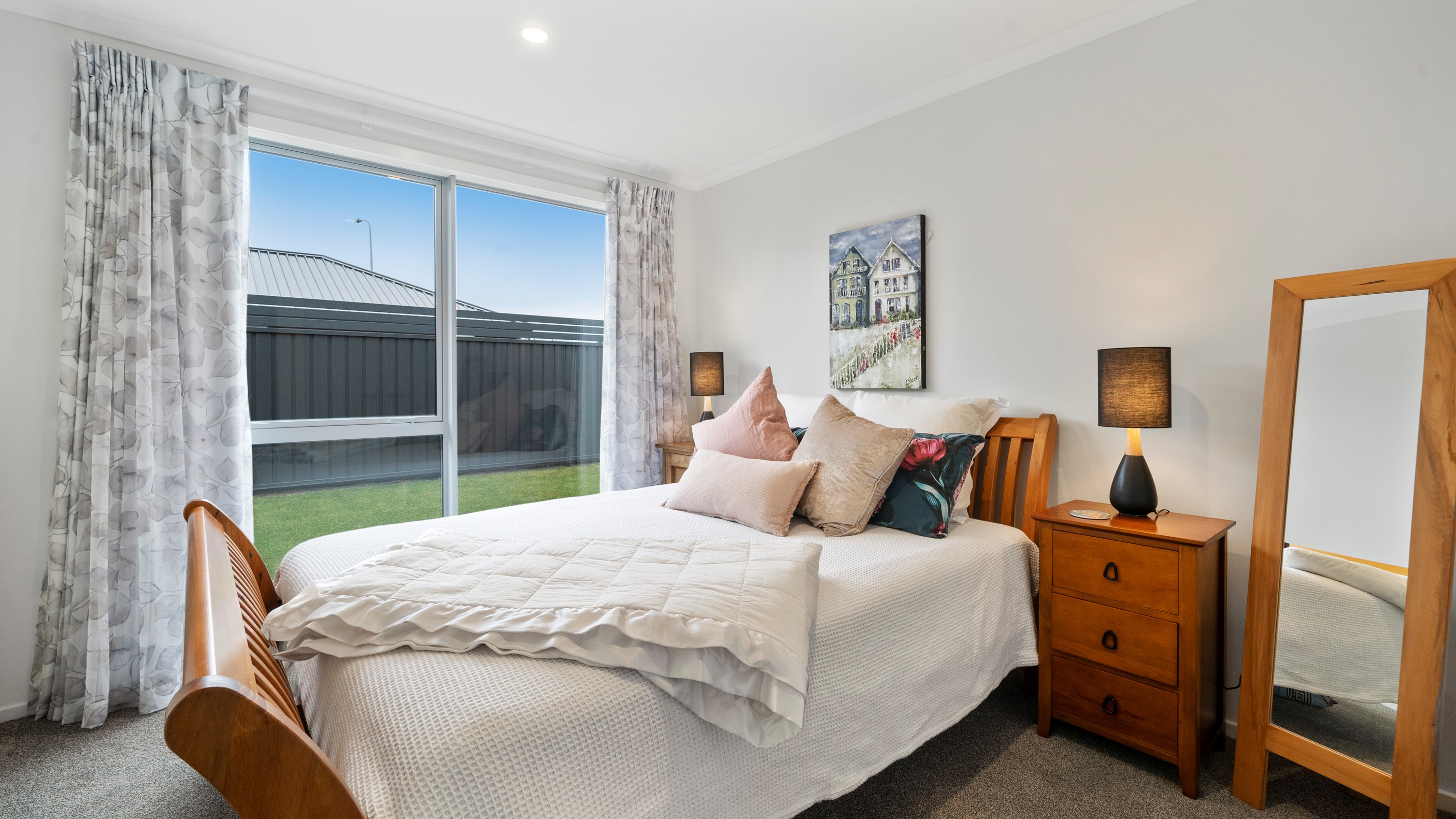 This house has undeniable street presence with its blue exterior, decorative metal screen and strong gable form. Step inside, and the rest of the 171sqm home is set up to be just as eye-catching. The blue-and-white kitchen is streamlined, thanks to handle-free cabinetry, and a walk-in pantry with ample storage for food and appliances. Features such as the tiled splashback, pendant lights and a breakfast bar inject character and personality. The open-plan living area encompasses the dining space and extends seamlessly through large sliders to private sun-soaked decks, one of which has a pergola for shade. These areas are ideal for dining and relaxing with friends and family. Walk down the hallway and you’ll come to two good-sized bright and airy bedrooms and a family bathroom with a bath and tiled shower. At the end of the hall, the generous main bedroom includes a large walk-in wardrobe and ensuite. A single garage with internal access completes this welcoming home.