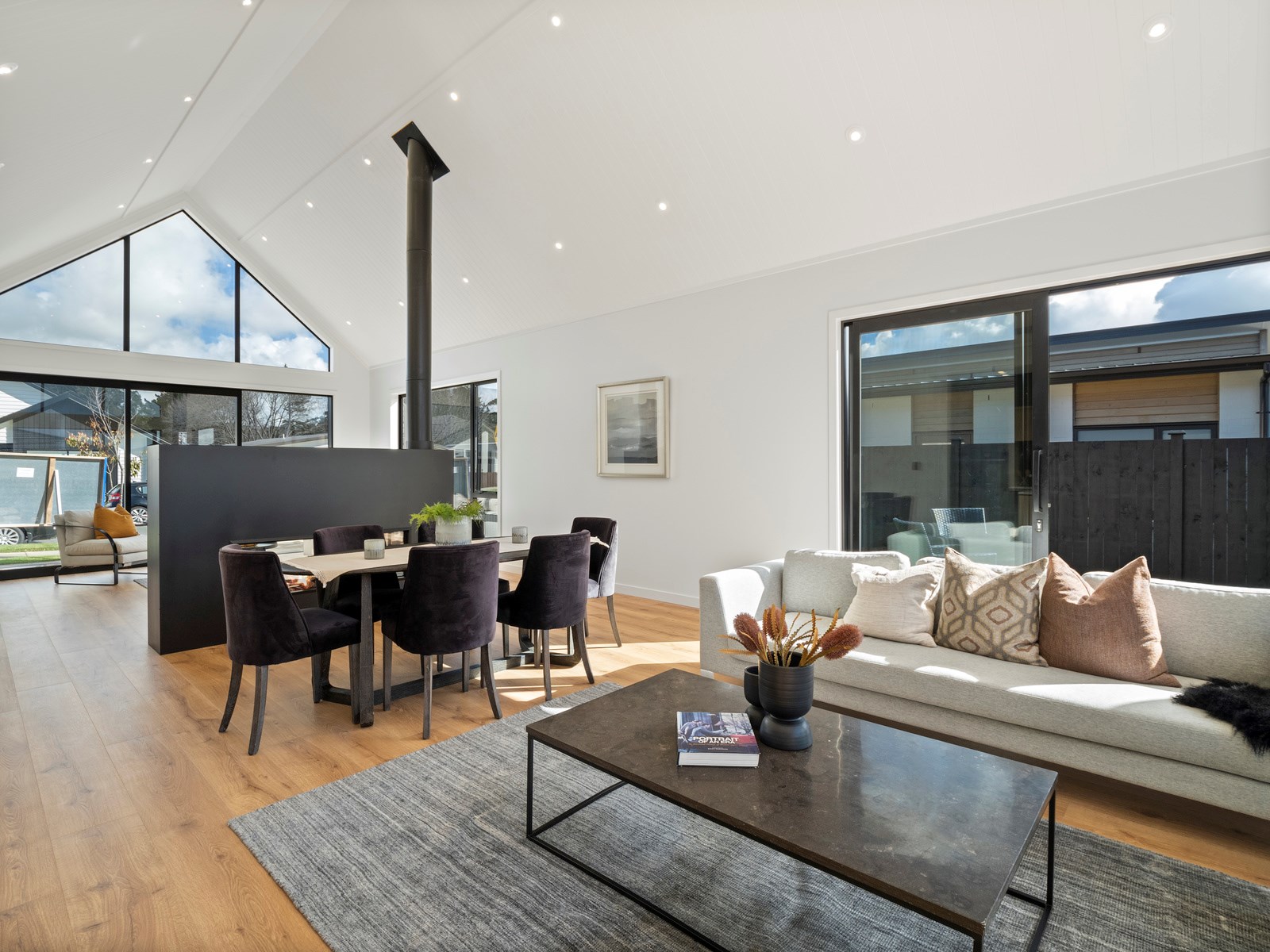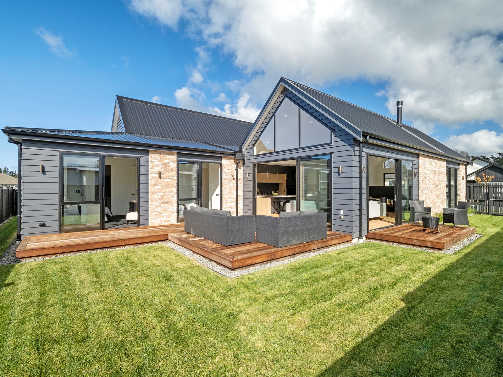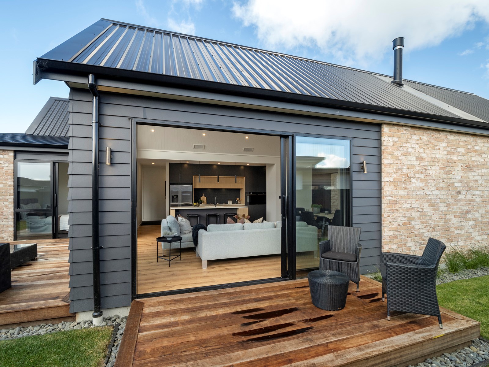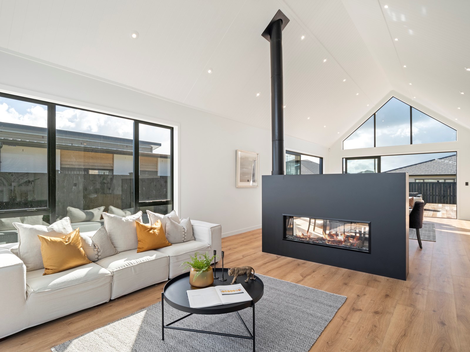 With four bedrooms, two bathrooms and natural light aplenty, this innovative design has made the most of its 213sqm space. Twin gabled forms, clad in reclaimed brick and dark Linea weatherboard, ensure this home is modern, chic, and set to leave a lasting impression. Inside, the living area is cleverly designed to create separate living zones with a large double-sided fireplace dividing the lounge and dining room. In the kitchen the design really gets cooking. A palette of blonde wood and dark cabinetry looks slick and smart, while a six-hob gas-fired oven is designed for family living. There’s a handy scullery to keep clutter at bay and a breakfast bar which makes feeding the kids a breeze. Stylish pendants and downlights in the lounge and kitchen keep these living spaces light and bright, as do clerestory windows and large sliding doors that lead to the deck area and a low-maintenance garden. The main bedroom is a sanctuary at the rear of the house, with a generous walk-in wardrobe and large ensuite with dark statement tiles and a walk-in shower. The main bathroom features those same dashing tiles, a freestanding bath and an LED-illuminated mirror. This home has everything you could need — and more.