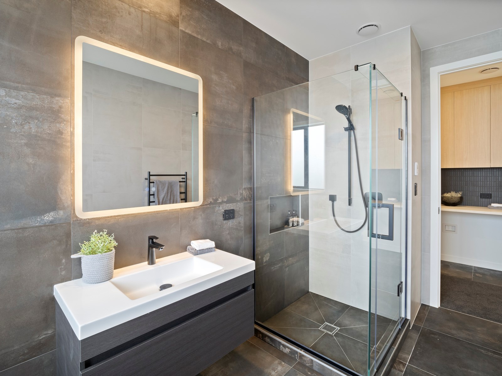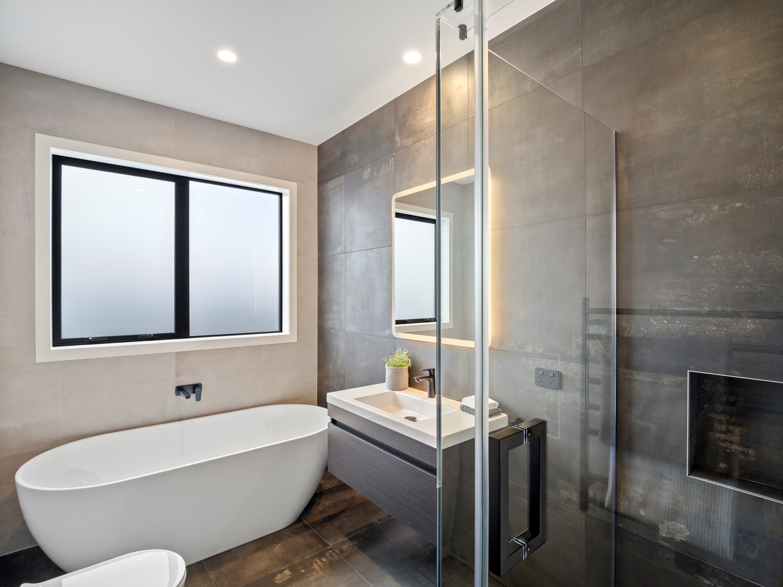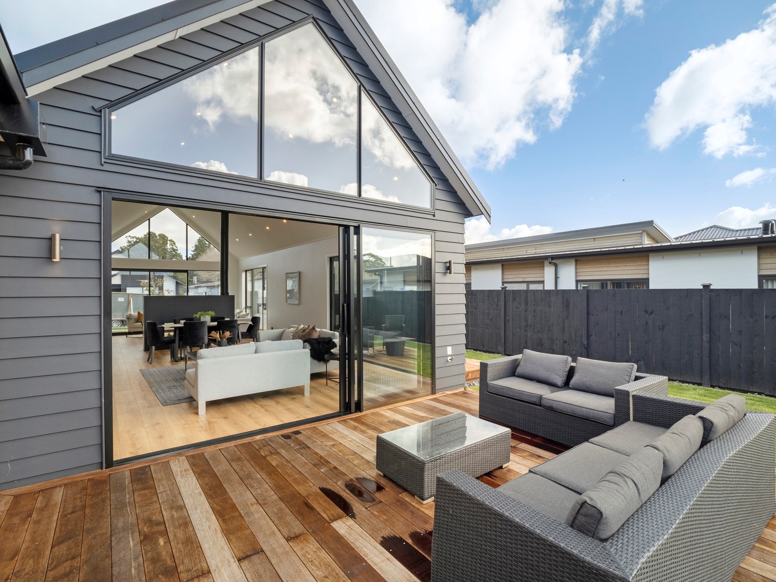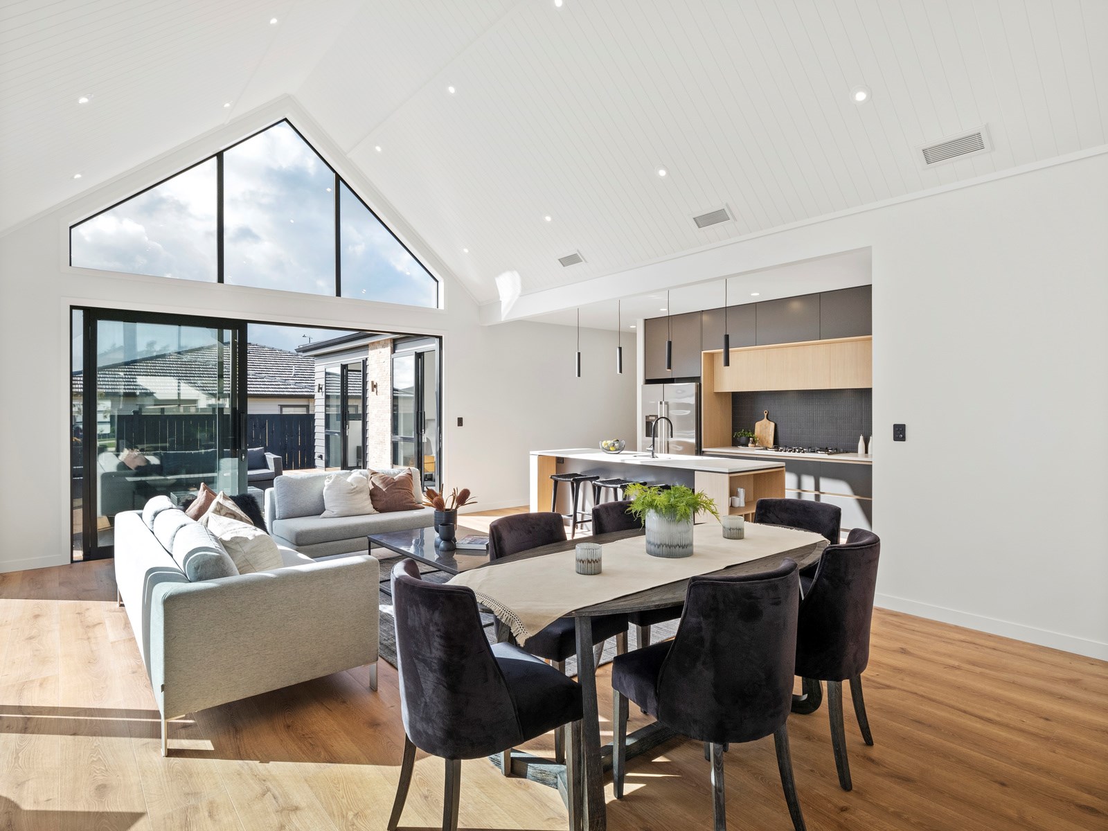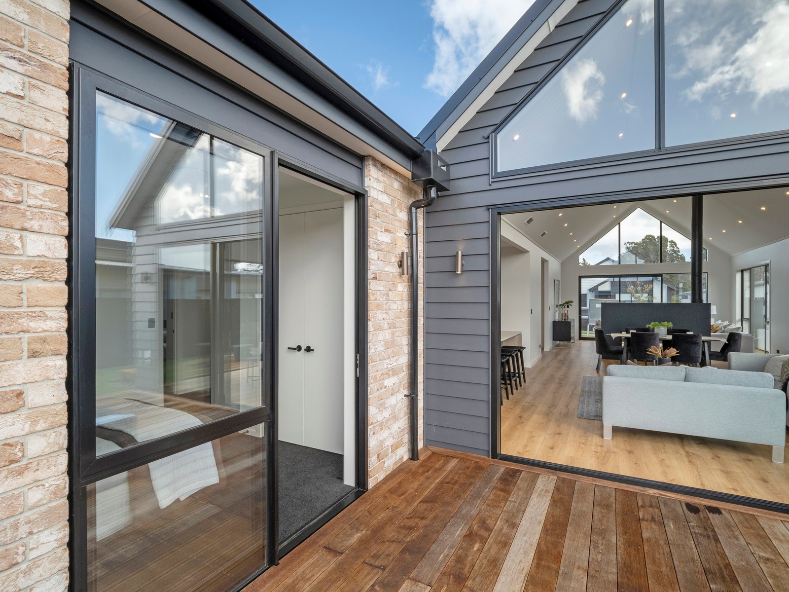 With four bedrooms, two bathrooms and natural light aplenty, this innovative design has made the most of its 213sqm space. Twin gabled forms, clad in reclaimed brick and dark Linea weatherboard, ensure this home is modern, chic, and set to leave a lasting impression. Inside, the living area is cleverly designed to create separate living zones with a large double-sided fireplace dividing the lounge and dining room. In the kitchen the design really gets cooking. A palette of blonde wood and dark cabinetry looks slick and smart, while a six-hob gas-fired oven is designed for family living. There’s a handy scullery to keep clutter at bay and a breakfast bar which makes feeding the kids a breeze. Stylish pendants and downlights in the lounge and kitchen keep these living spaces light and bright, as do clerestory windows and large sliding doors that lead to the deck area and a low-maintenance garden. The main bedroom is a sanctuary at the rear of the house, with a generous walk-in wardrobe and large ensuite with dark statement tiles and a walk-in shower. The main bathroom features those same dashing tiles, a freestanding bath and an LED-illuminated mirror. This home has everything you could need — and more.