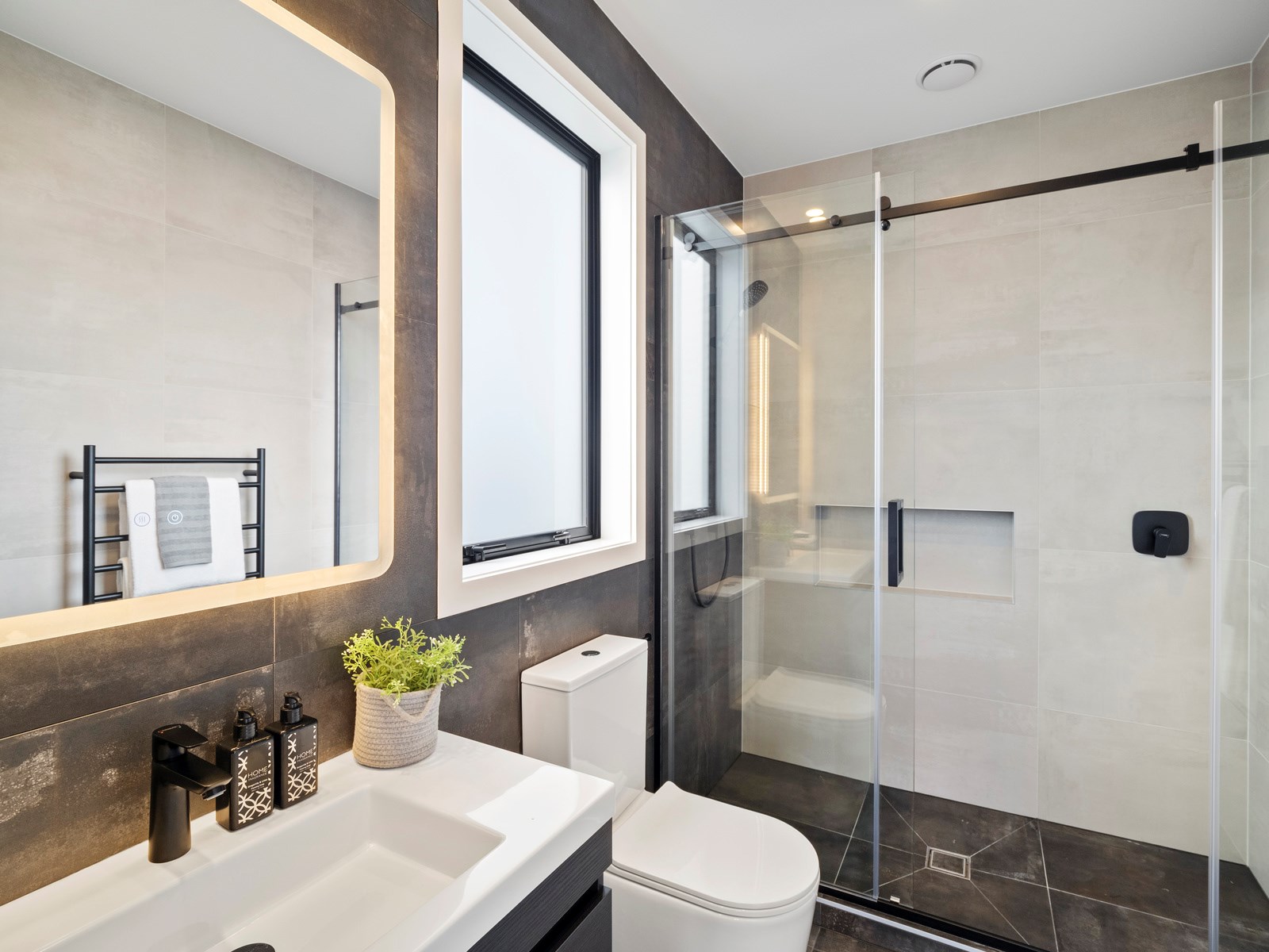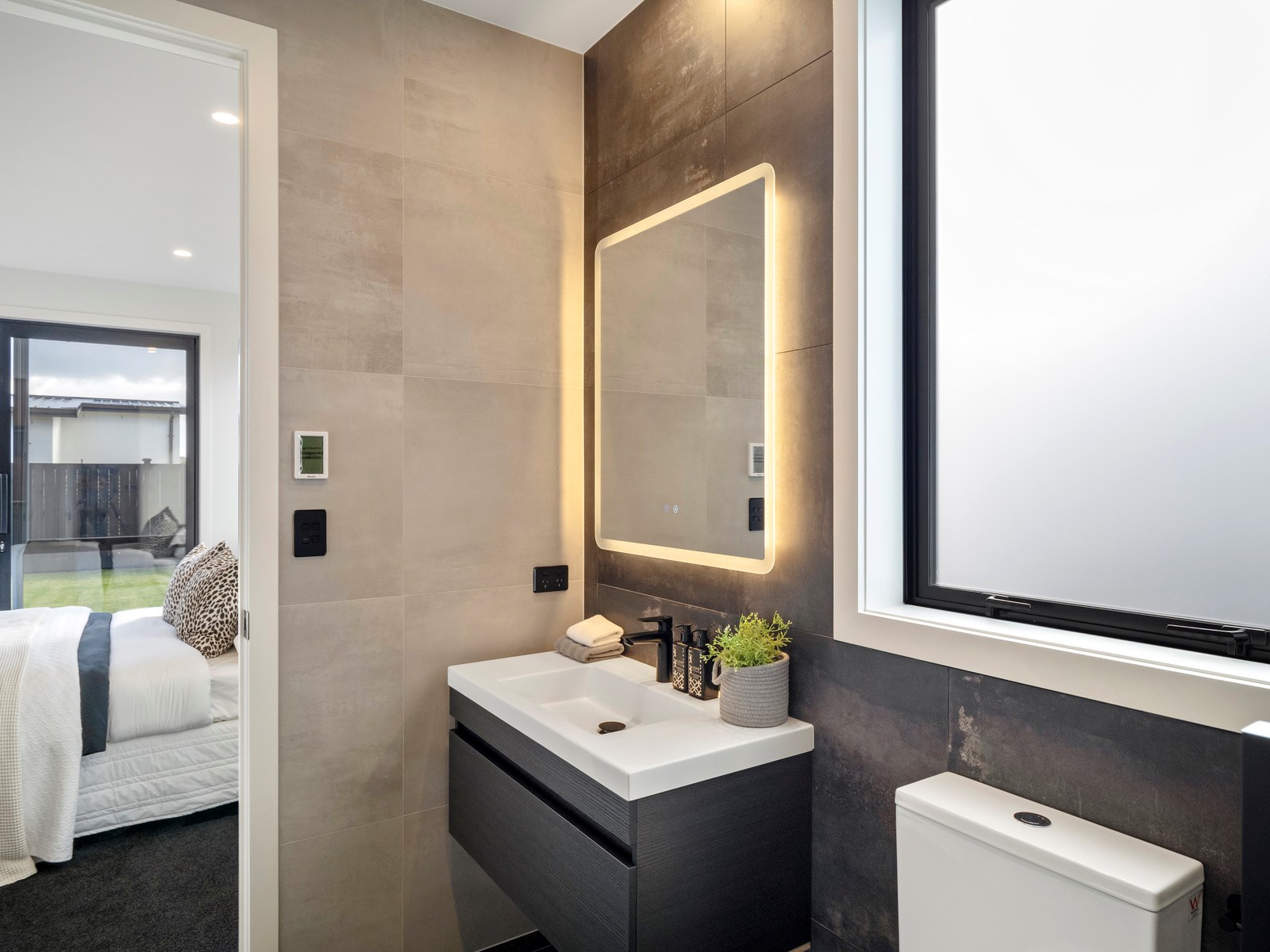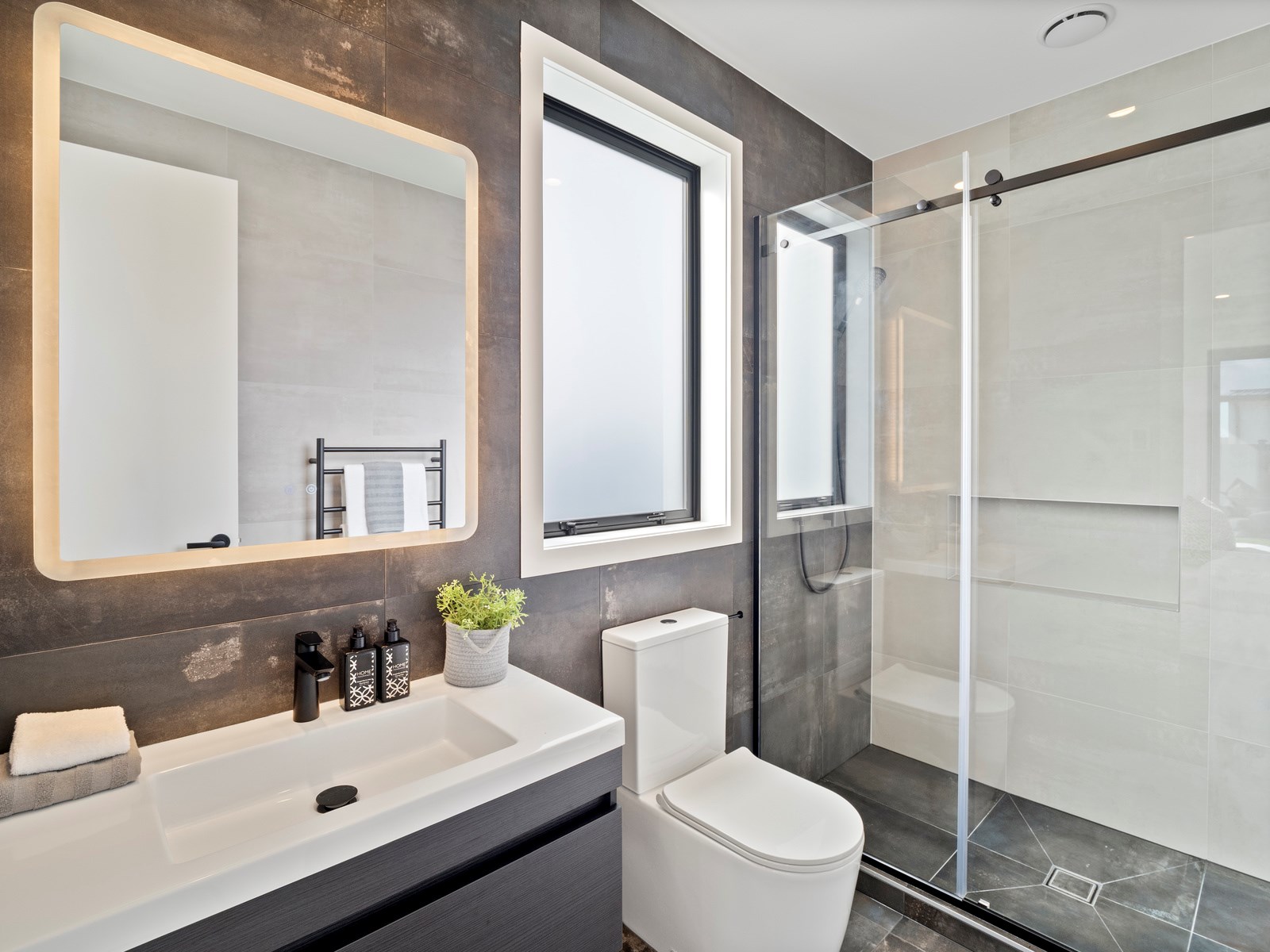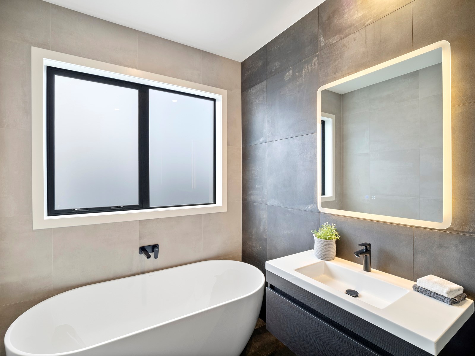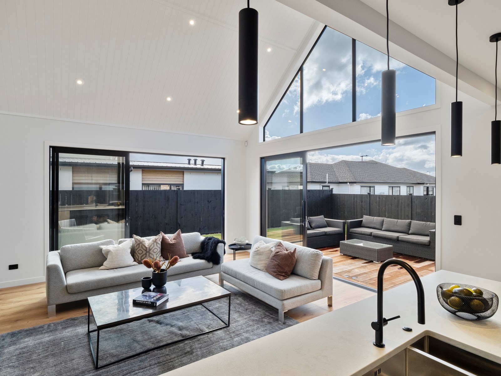 With four bedrooms, two bathrooms and natural light aplenty, this innovative design has made the most of its 213sqm space. Twin gabled forms, clad in reclaimed brick and dark Linea weatherboard, ensure this home is modern, chic, and set to leave a lasting impression. Inside, the living area is cleverly designed to create separate living zones with a large double-sided fireplace dividing the lounge and dining room. In the kitchen the design really gets cooking. A palette of blonde wood and dark cabinetry looks slick and smart, while a six-hob gas-fired oven is designed for family living. There’s a handy scullery to keep clutter at bay and a breakfast bar which makes feeding the kids a breeze. Stylish pendants and downlights in the lounge and kitchen keep these living spaces light and bright, as do clerestory windows and large sliding doors that lead to the deck area and a low-maintenance garden. The main bedroom is a sanctuary at the rear of the house, with a generous walk-in wardrobe and large ensuite with dark statement tiles and a walk-in shower. The main bathroom features those same dashing tiles, a freestanding bath and an LED-illuminated mirror. This home has everything you could need — and more.