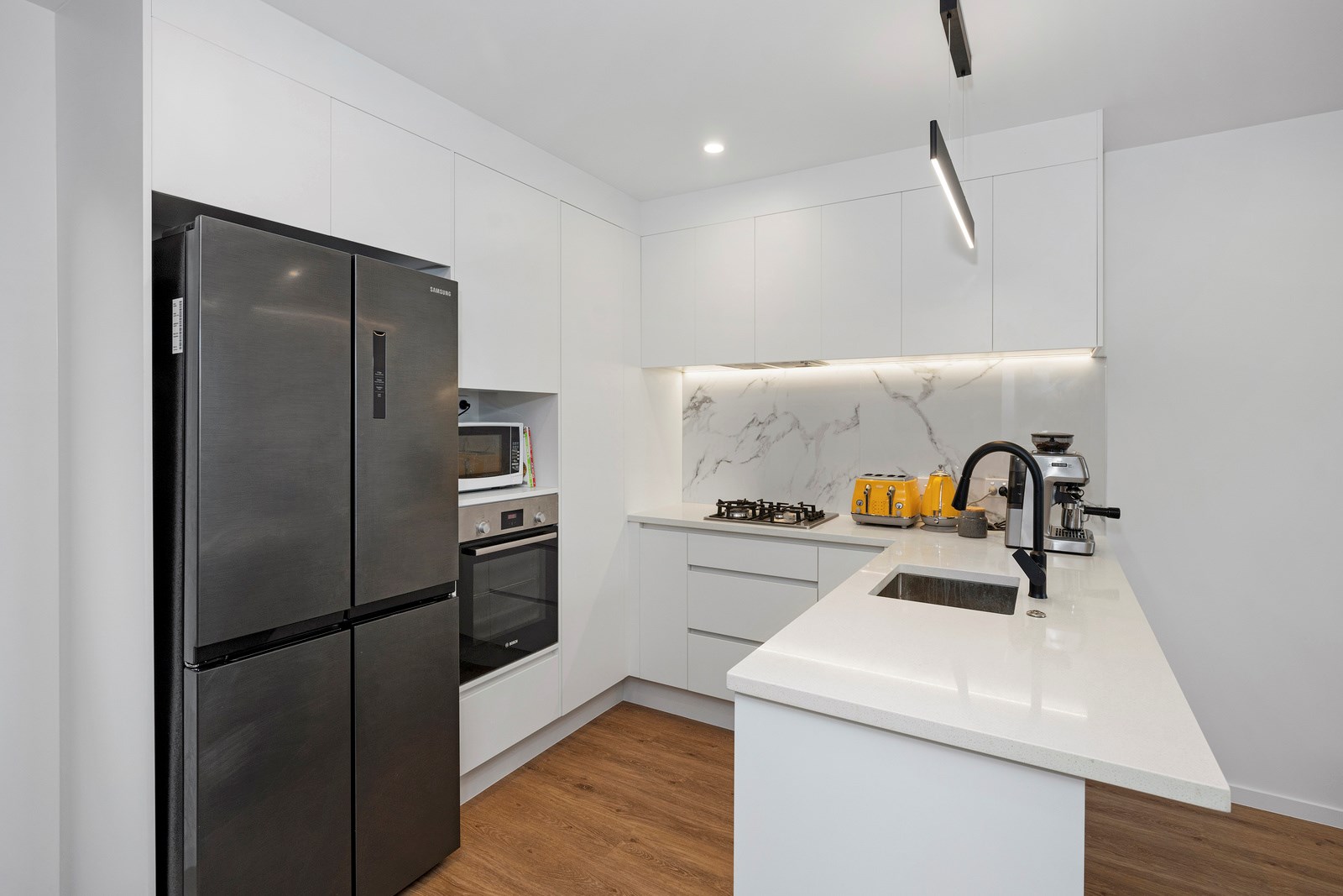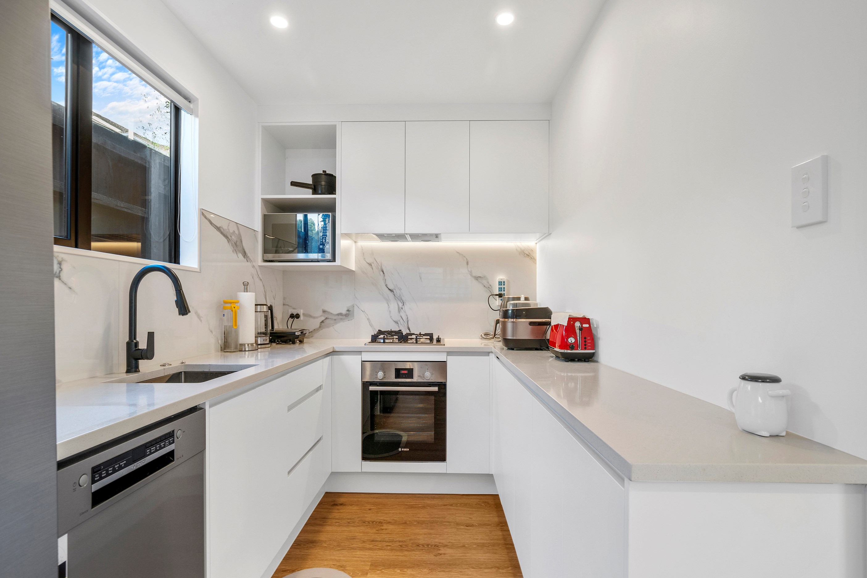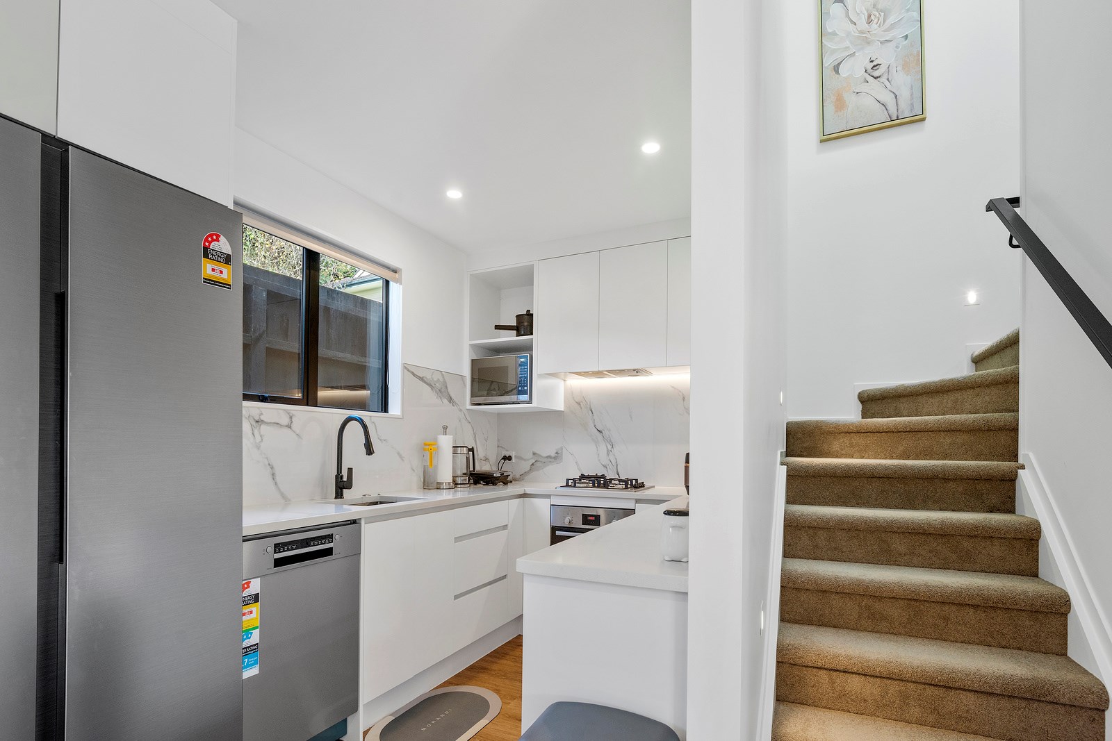 The description ‘small but perfectly formed’ is tailor-made for this three-bedroom duplex. One of four 120sqm architecturally designed residences in a row, the two-level home is thoughtfully designed to cater to the needs of modern families, with two well-appointed bathrooms both boasting underfloor heating to warm the smallest of tootsies on winter mornings. The duplex, crafted to optimise land and floor area, has a family-friendly open-plan layout that prioritises functionality and comfort. But luxury hasn’t been overlooked. With its marble splashback and modern fixtures, the kitchen is a joy for any home cook, and the elegant, fully tiled main bathroom features a walk-in shower to ensure fuss-free family living. A standout feature of the duplexes is the fully insulated north-facing internal garage, equipped with a specialised plug for future installation of an EV car charger. This forward-thinking addition also offers the potential to transform the garage into an additional living area. Unassuming in scale, but with out-sized attention to detail, this home proves how clever thinking can transform a modest footprint into a contemporary, inviting zone for living.