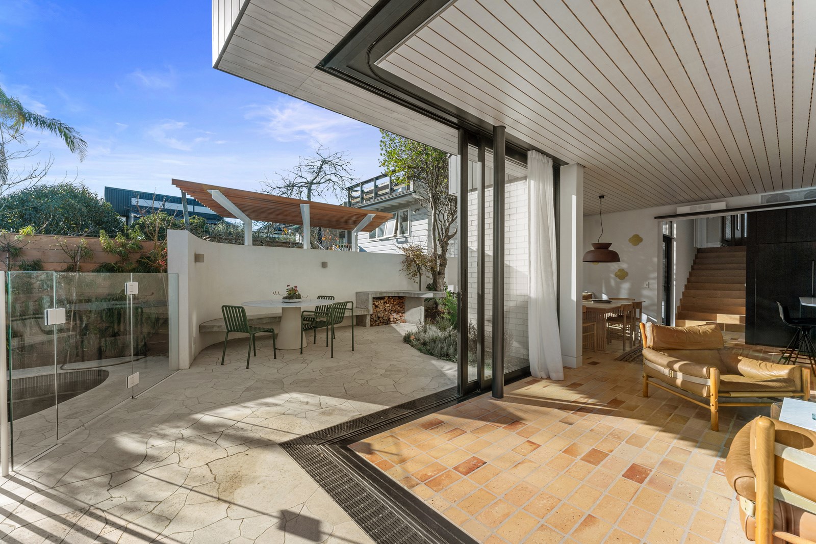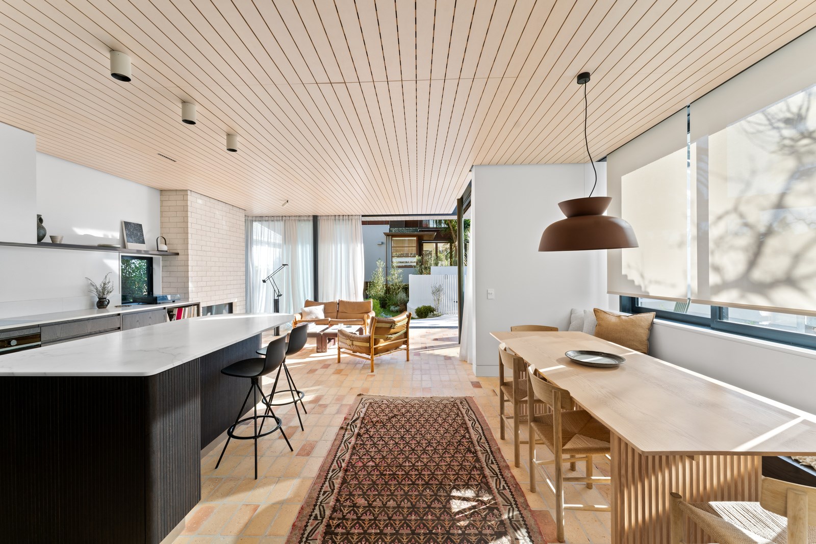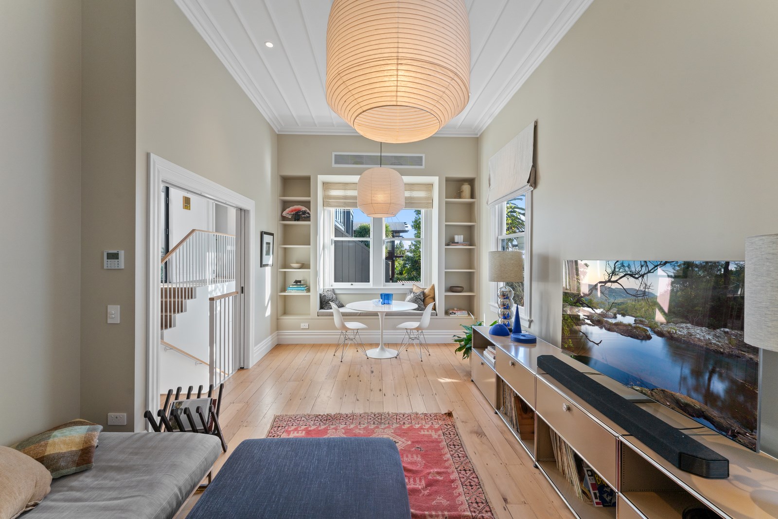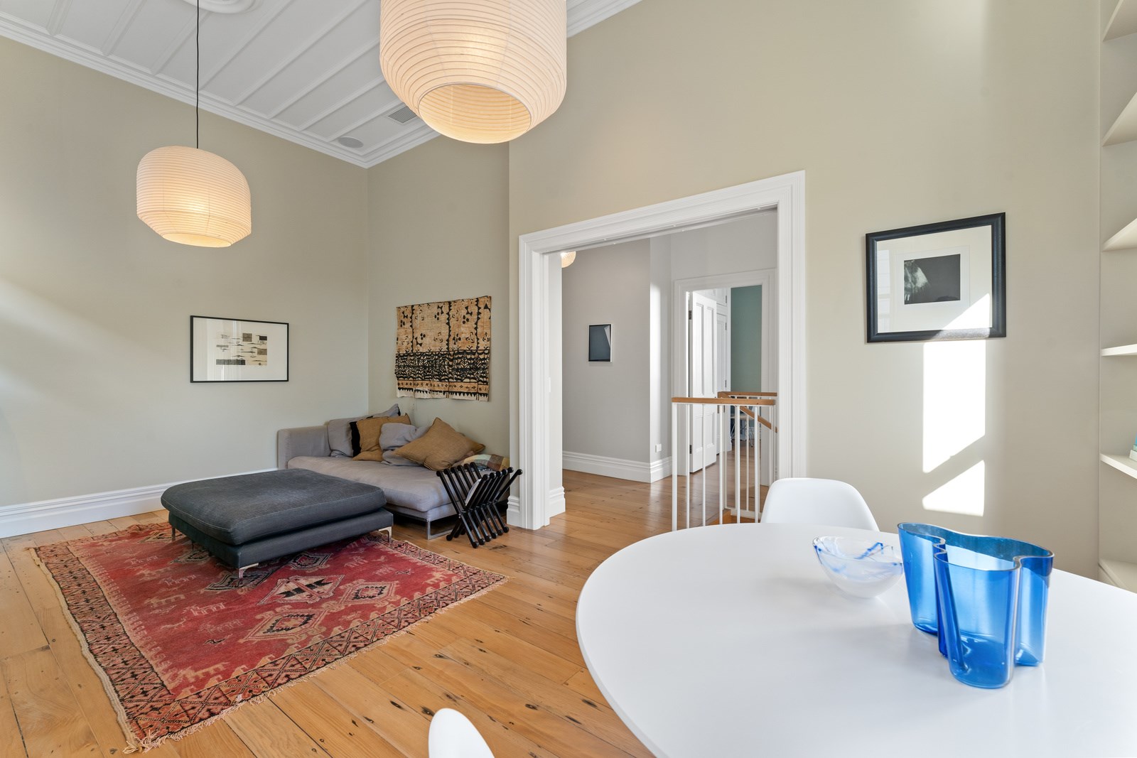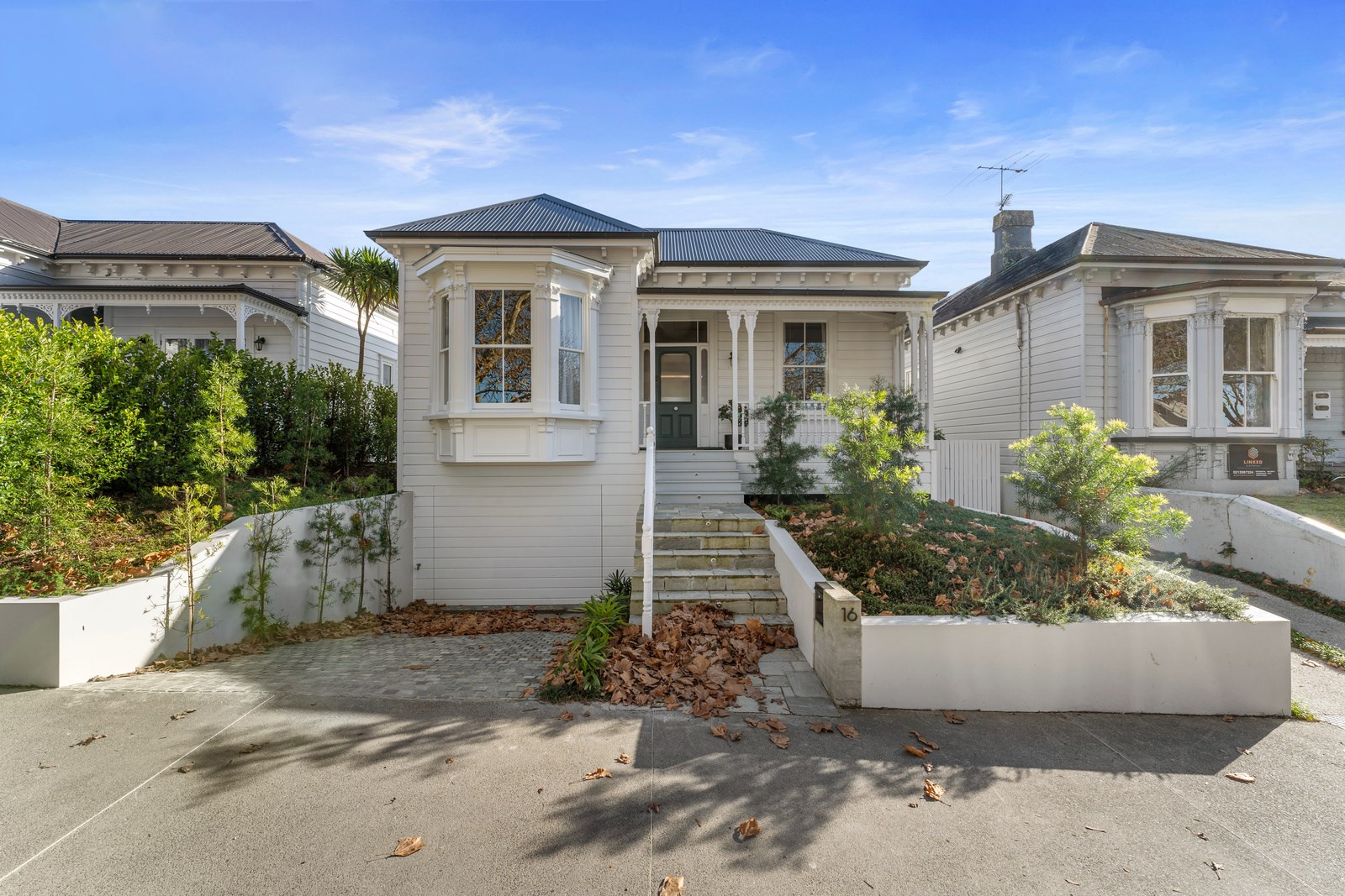 Updating a Victorian villa in a Special Character area requires careful handling. This single-storey heritage home has close neighbours and it was important that, street-side, it was in keeping with the rest of the road. The homeowners wanted a more contemporary look inside, and better access to the outdoor space at the rear. The street-side elevation has been restored, with one side of the raised garden transformed into a basement garage. A flush garage door matches the white timber exterior. Inside, the original house now contains three bedrooms, a study, bathroom and lounge, while the new build at the rear has a very modern feel. Take the short flight of stairs down to the kitchen and living area, built using recycled brick and kauri from the original home, but with a modern twist. The brick floor pairs well with the dark aesthetic of the kitchen, and the living area opens to the outdoors through corner sliding doors, with easy access to a paved patio, pool and garden. A new stairway connects the two-storey addition — a main bedroom with access to a private balcony. The walk-in wardrobe and tiled ensuite are surprisingly roomy, with a glass arch leading to a fully tiled shower. This house, historic at the front, has plenty going on at the back.
