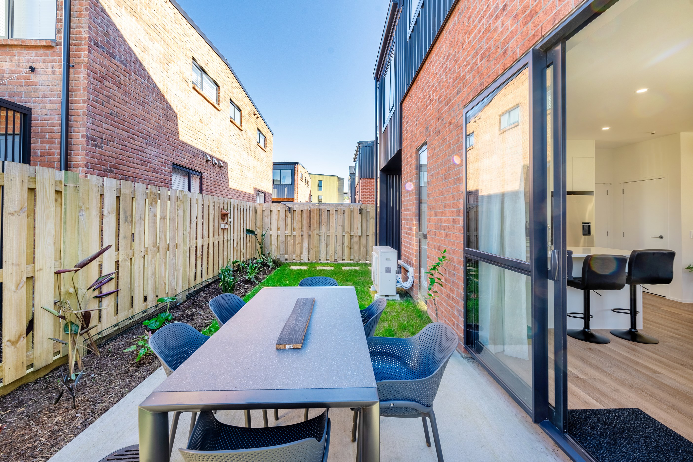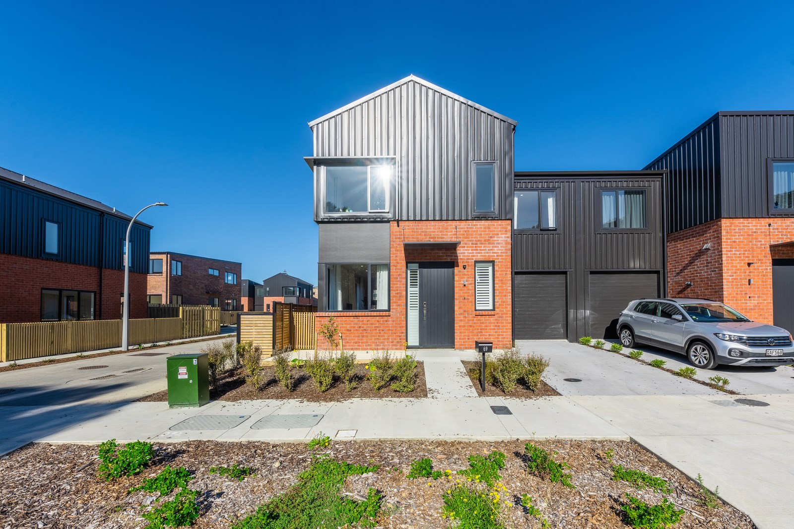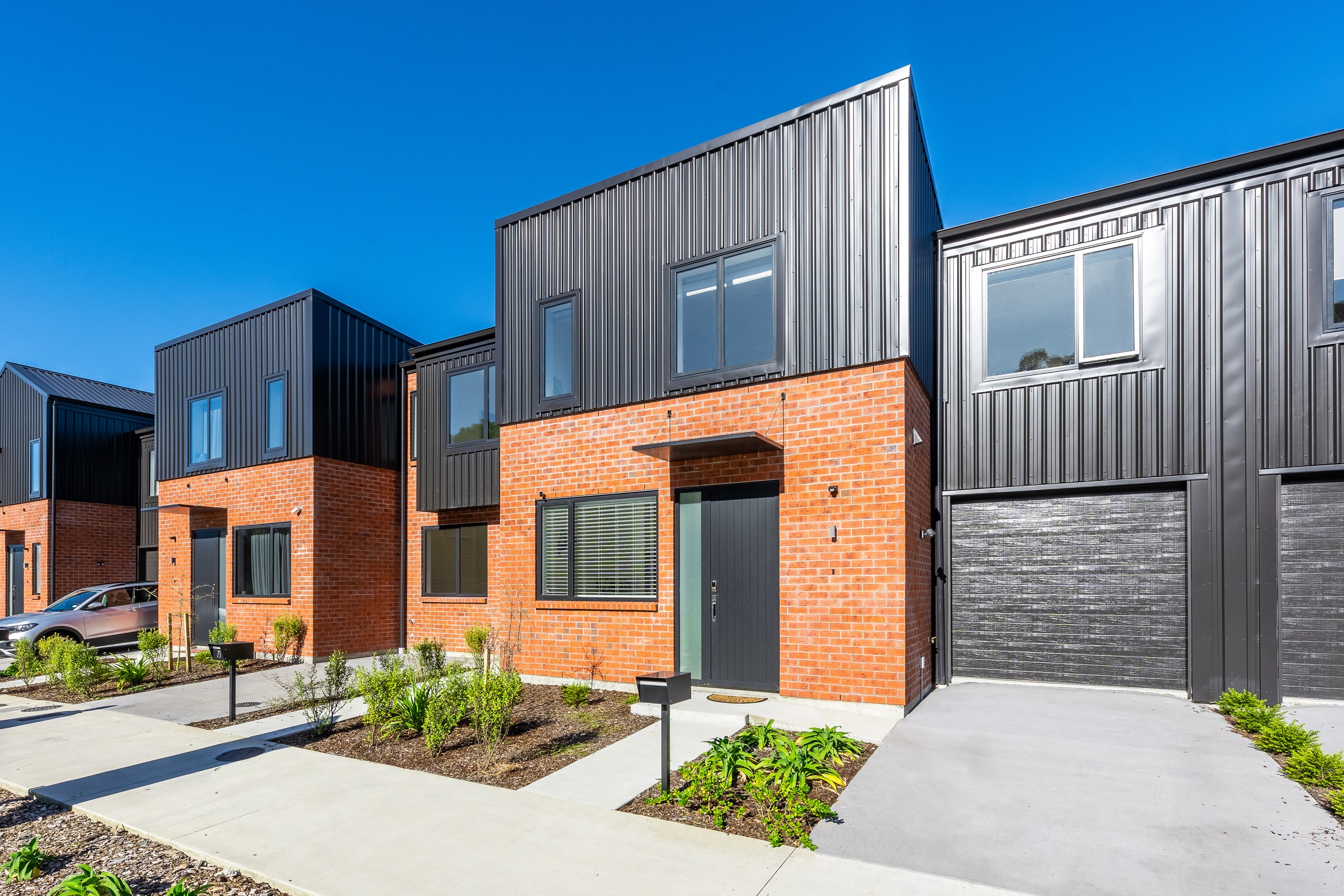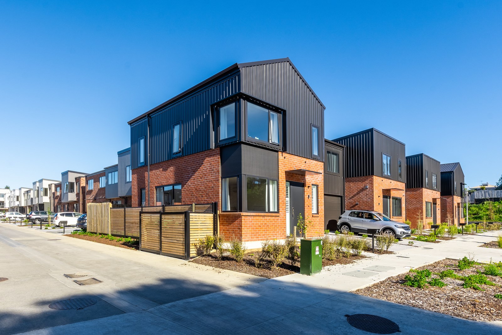 The advantages of these five handsome terrace houses are many and varied. These homes are part of the Richmond development located in Mt Wellington. A new medium-density community, close to transport and shopping, that enjoys shared amenities, such as a gym and five landscaped pocket parks. The terraced block, clad in warm brick and black metal corrugate, has a much longer list of benefits, including offering two-, three- and four-bedroom units with or without garages. The material palette and repeated forms are sympathetic to the existing surrounding development and varying facades add personality to each home. While individuality is not always associated with terrace houses, it’s a hallmark of this urban village with its stylish aesthetic. Another important benefit of these homes is that they’ve been skilfully and thoughtfully constructed. They’re well-insulated, light-filled and quiet, thanks to the smart design, orientation on the site and sound inter-tenancy walls. The homes offer open-plan kitchens, dining and living spaces with sliders that open straight onto a sun-filled patio. Bedrooms and bathrooms are located on the upper level, and in the larger homes the main bedrooms also contain ensuites.