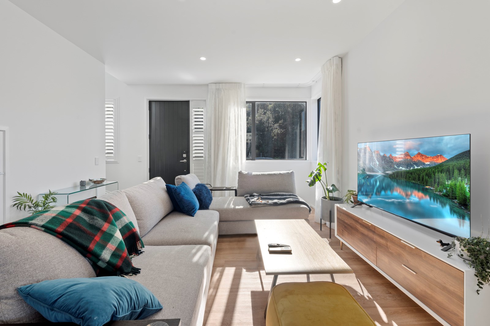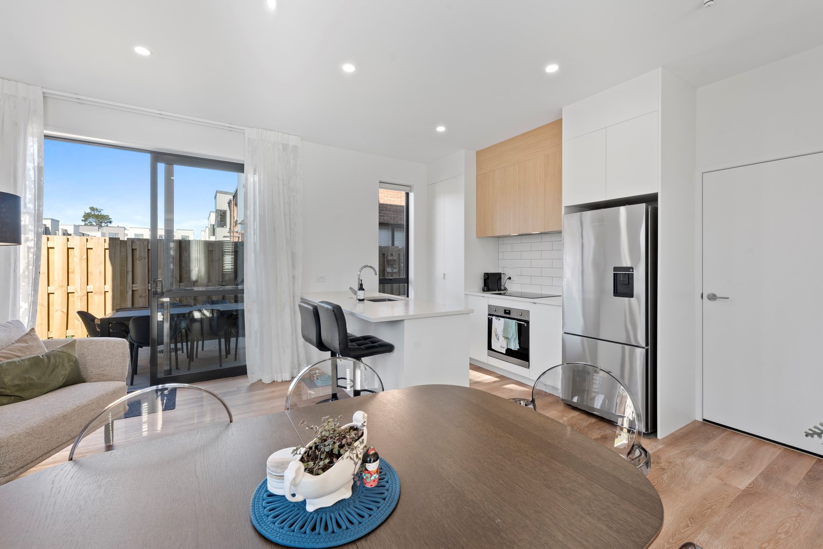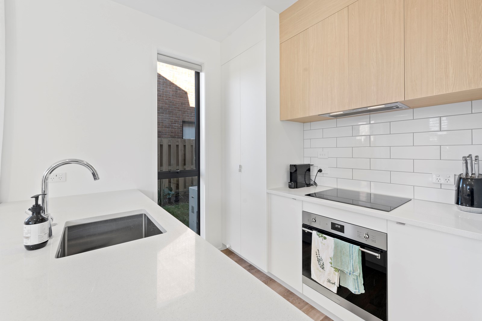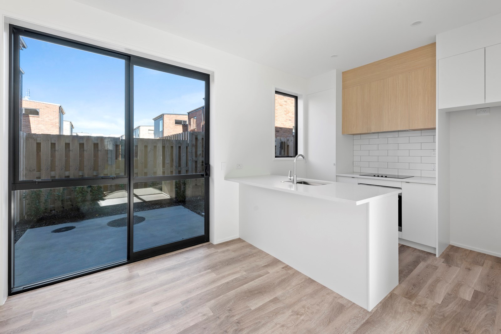 The advantages of these five handsome terrace houses are many and varied. These homes are part of the Richmond development located in Mt Wellington. A new medium-density community, close to transport and shopping, that enjoys shared amenities, such as a gym and five landscaped pocket parks. The terraced block, clad in warm brick and black metal corrugate, has a much longer list of benefits, including offering two-, three- and four-bedroom units with or without garages. The material palette and repeated forms are sympathetic to the existing surrounding development and varying facades add personality to each home. While individuality is not always associated with terrace houses, it’s a hallmark of this urban village with its stylish aesthetic. Another important benefit of these homes is that they’ve been skilfully and thoughtfully constructed. They’re well-insulated, light-filled and quiet, thanks to the smart design, orientation on the site and sound inter-tenancy walls. The homes offer open-plan kitchens, dining and living spaces with sliders that open straight onto a sun-filled patio. Bedrooms and bathrooms are located on the upper level, and in the larger homes the main bedrooms also contain ensuites.