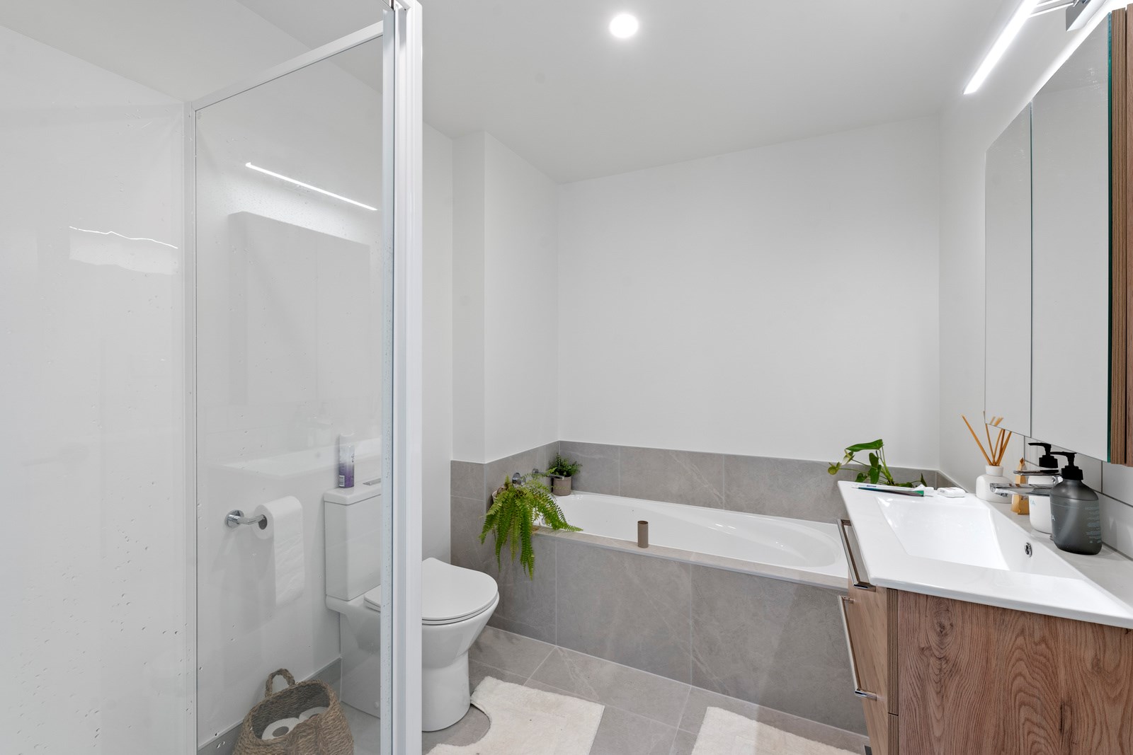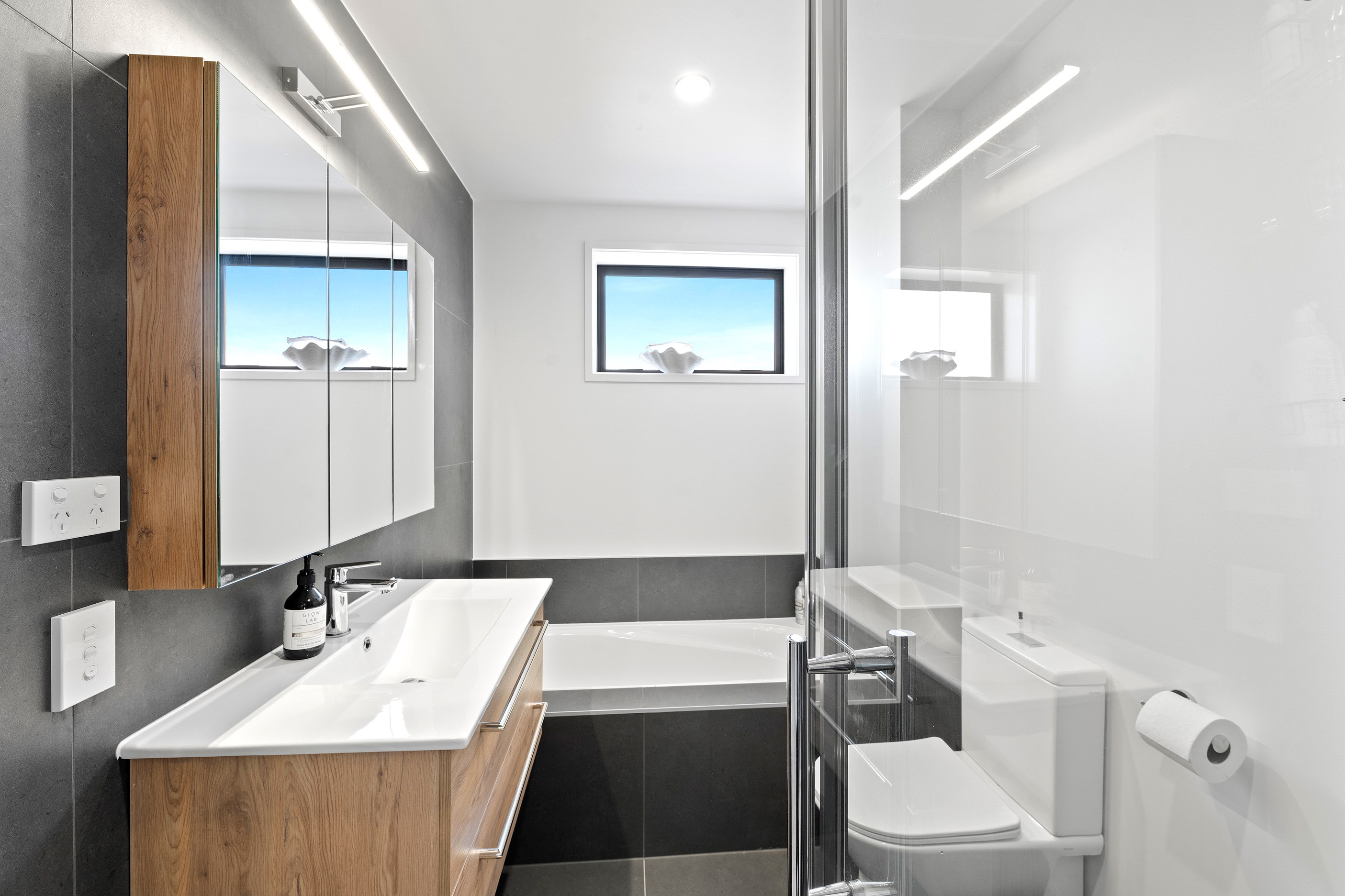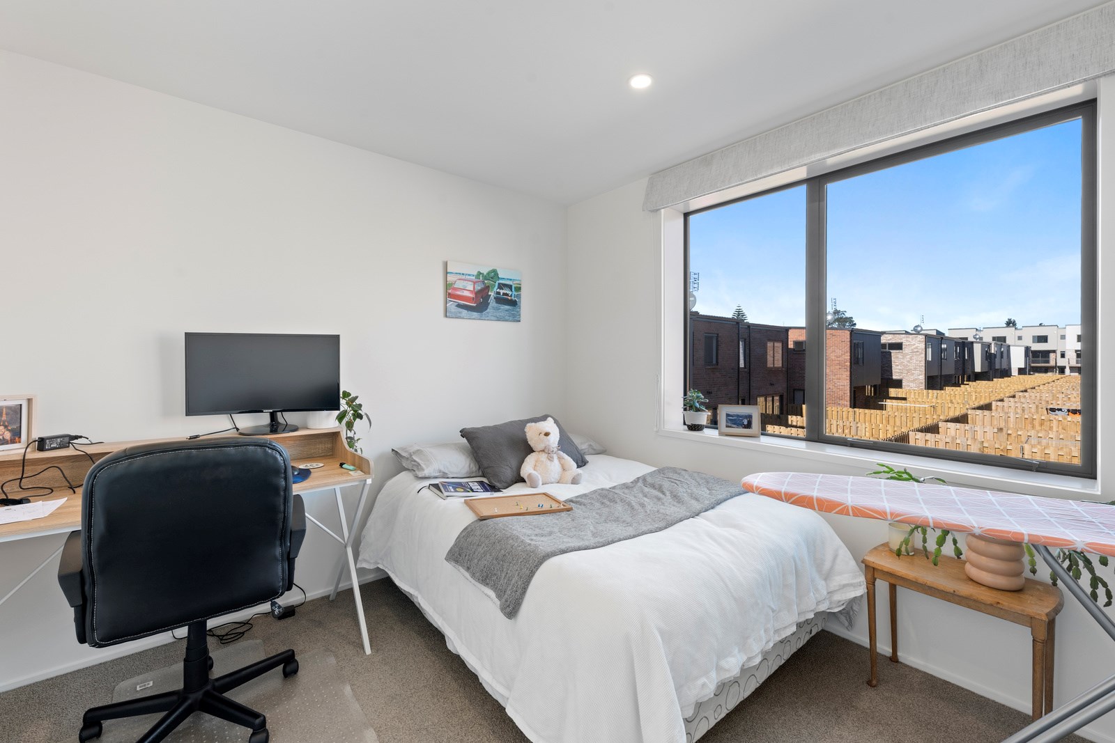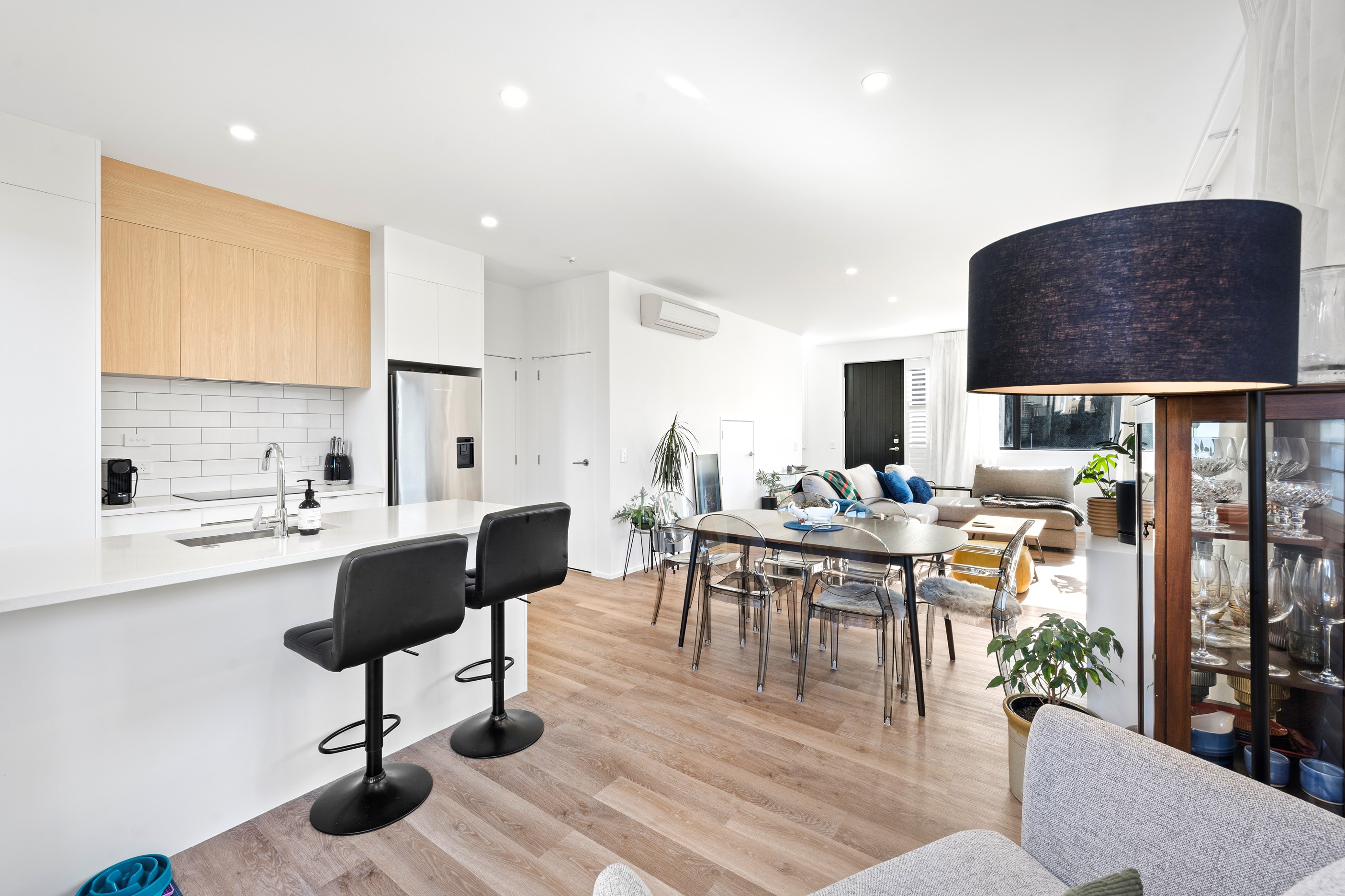 The advantages of these five handsome terrace houses are many and varied. These homes are part of the Richmond development located in Mt Wellington. A new medium-density community, close to transport and shopping, that enjoys shared amenities, such as a gym and five landscaped pocket parks. The terraced block, clad in warm brick and black metal corrugate, has a much longer list of benefits, including offering two-, three- and four-bedroom units with or without garages. The material palette and repeated forms are sympathetic to the existing surrounding development and varying facades add personality to each home. While individuality is not always associated with terrace houses, it’s a hallmark of this urban village with its stylish aesthetic. Another important benefit of these homes is that they’ve been skilfully and thoughtfully constructed. They’re well-insulated, light-filled and quiet, thanks to the smart design, orientation on the site and sound inter-tenancy walls. The homes offer open-plan kitchens, dining and living spaces with sliders that open straight onto a sun-filled patio. Bedrooms and bathrooms are located on the upper level, and in the larger homes the main bedrooms also contain ensuites.