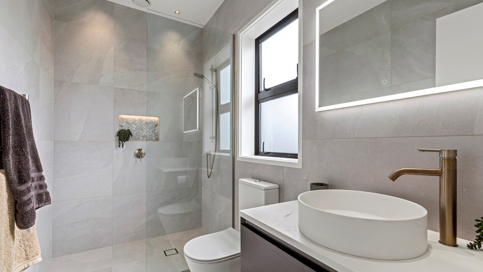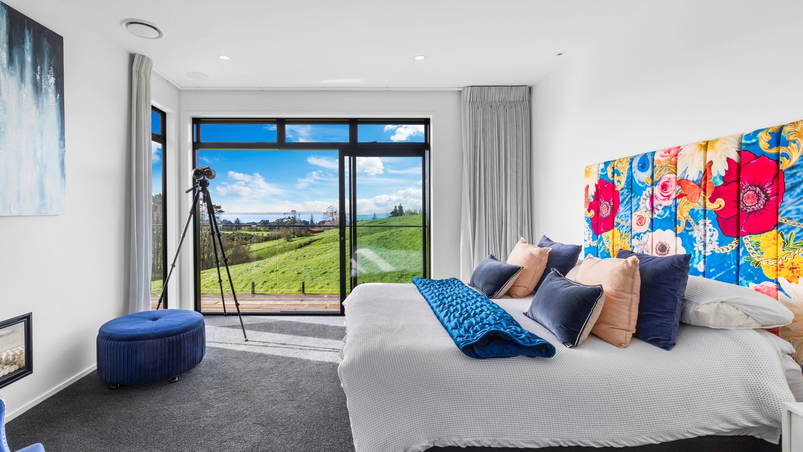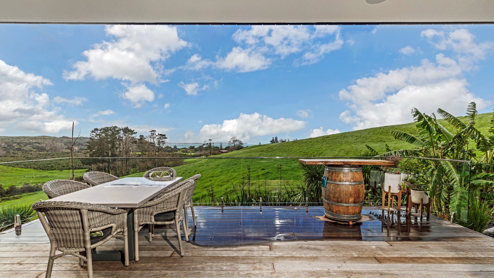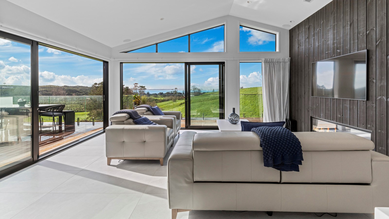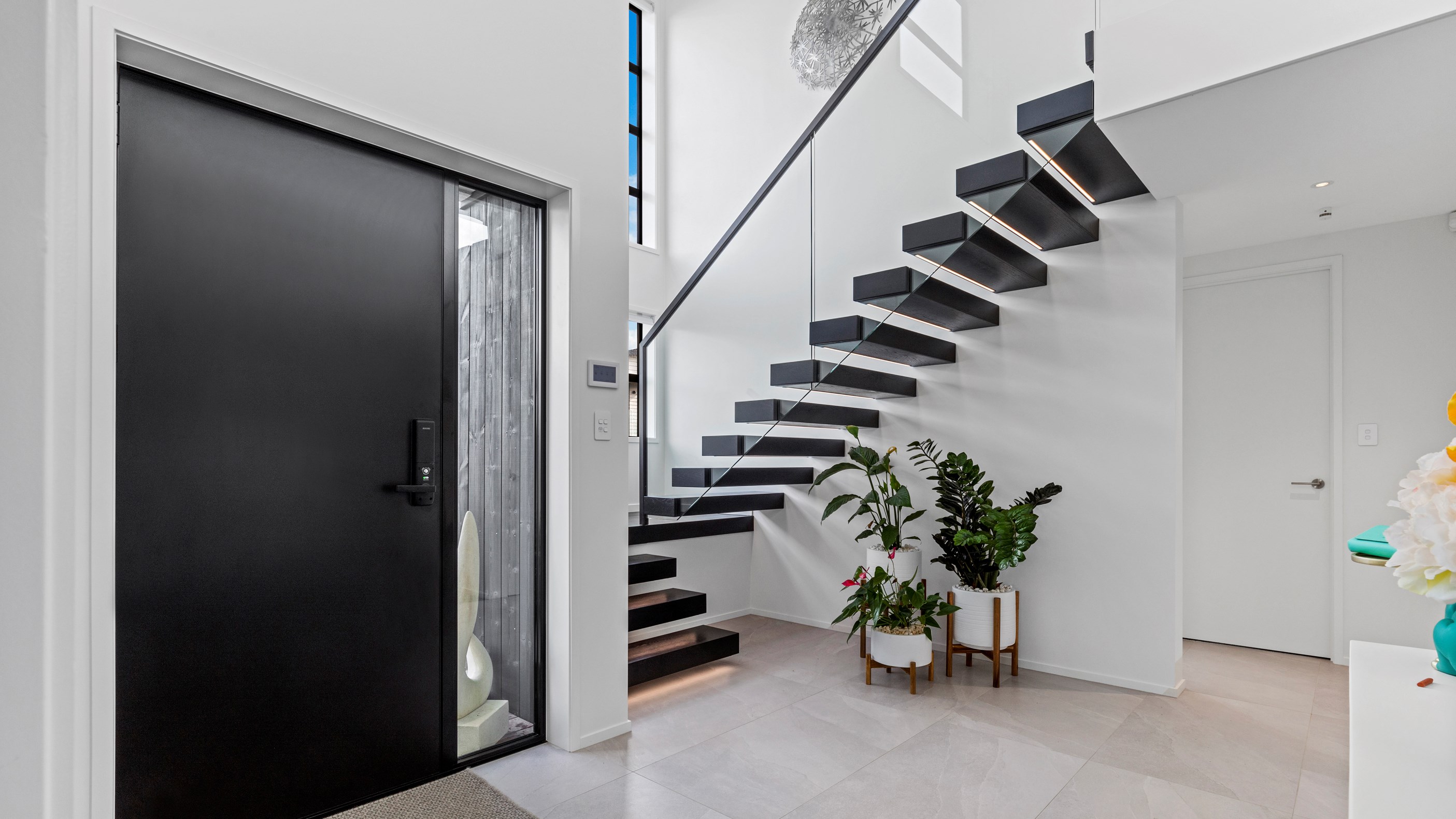 Nothing could prepare you for this stunning hilltop site. Uninterrupted views across Long Bay Regional Park to the Hauraki Gulf draw your eye out from all the living spaces, and some of the bedrooms too. Making the most of this scenery was a key factor in the design, as was a focus on entertaining, with living areas opening onto large decks on both floors. In an unconventional twist, the kitchen-living-dining area is located on the second floor, along with the main bedroom suite and a guest toilet, while a ‘man cave’ with bar, pool table and covered deck bring the ground floor to life. Downstairs you’ll also find three bedrooms, an ensuite and family bathroom, office, laundry and garage including a designated fishing storage area to make sure you fall for this house, hook, line and sinker. Outside the 312sqm home, a mix of vertical shiplap and horizontal bevel-back weatherboard cladding is chic. The monochrome colour scheme continues inside, where the kitchen incorporates Italian porcelain slab and a shiplap feature wall adds drama to the living space. An extensive home-automation system means heating, lighting, window coverings and security can be controlled with a smartphone at the touch of a button.