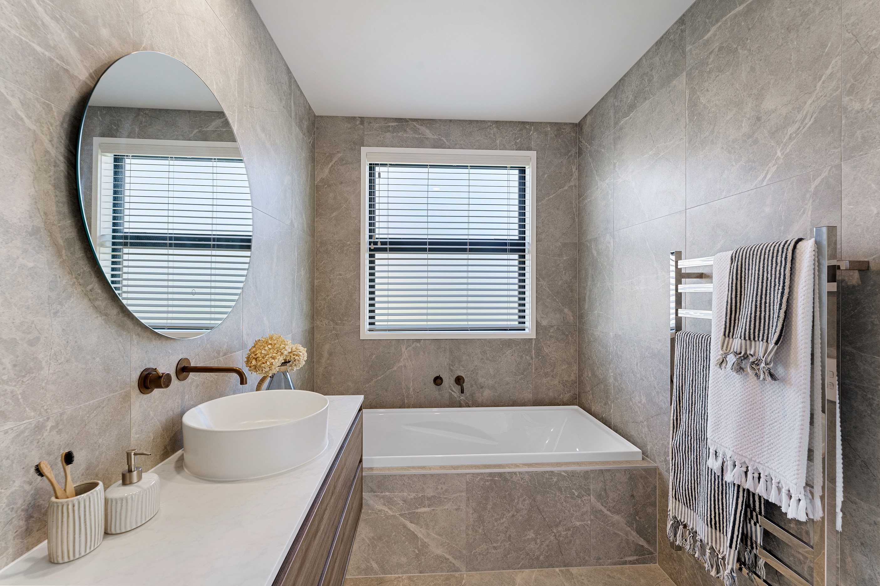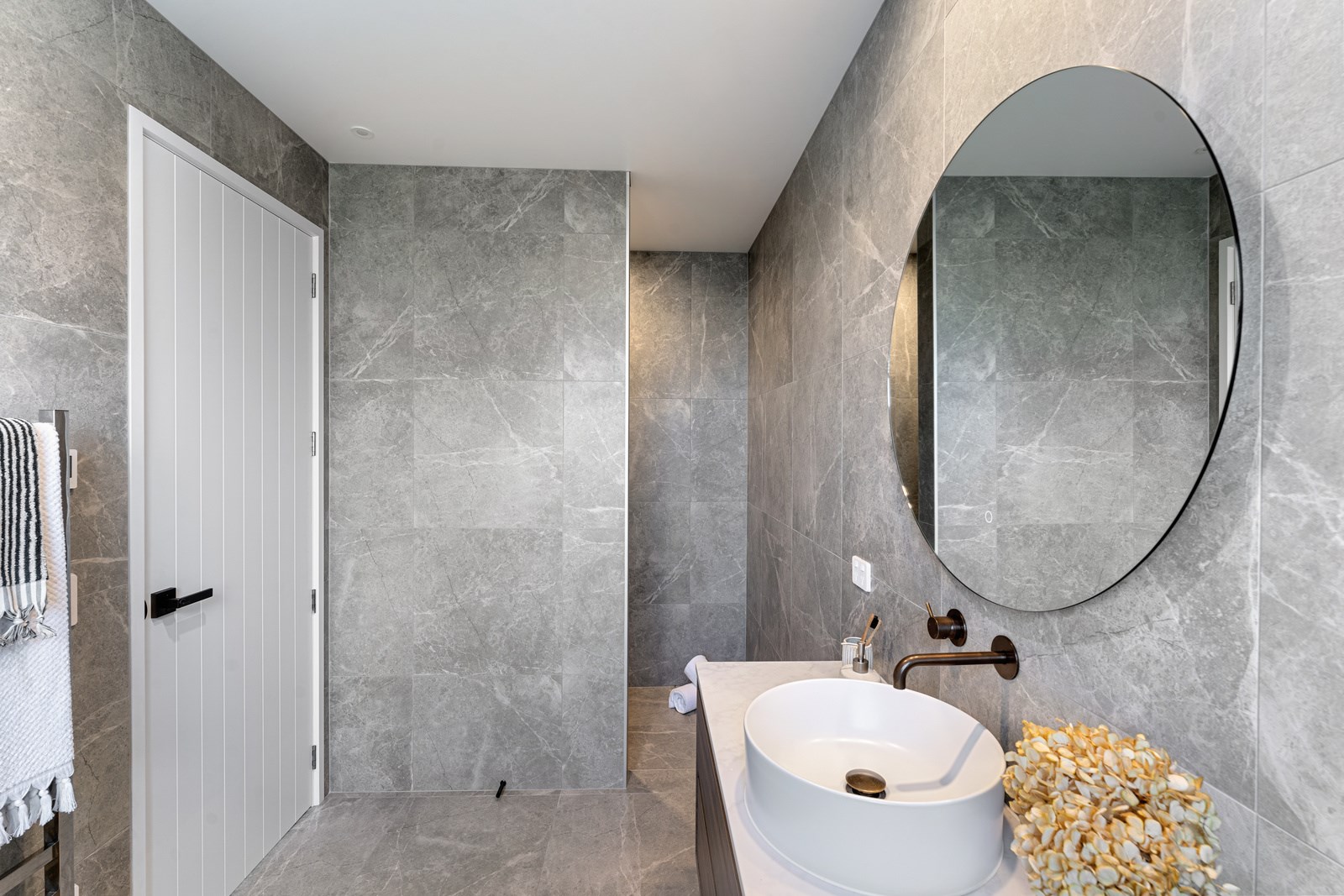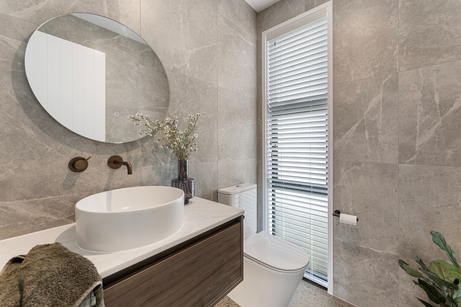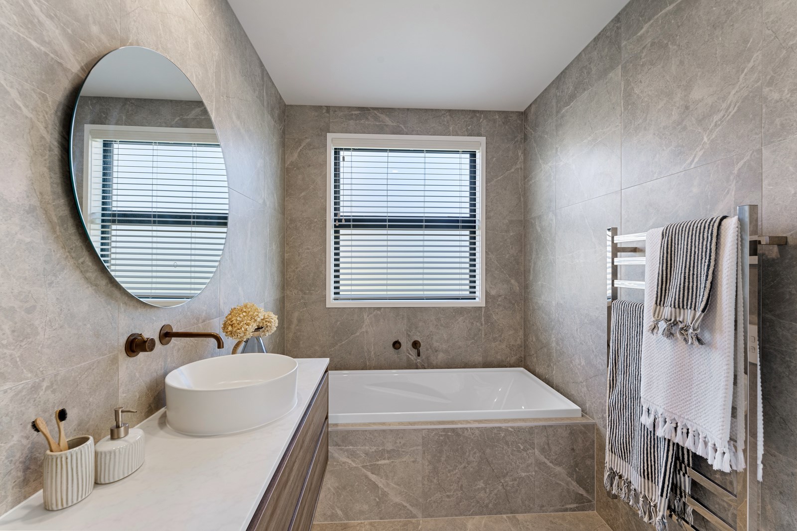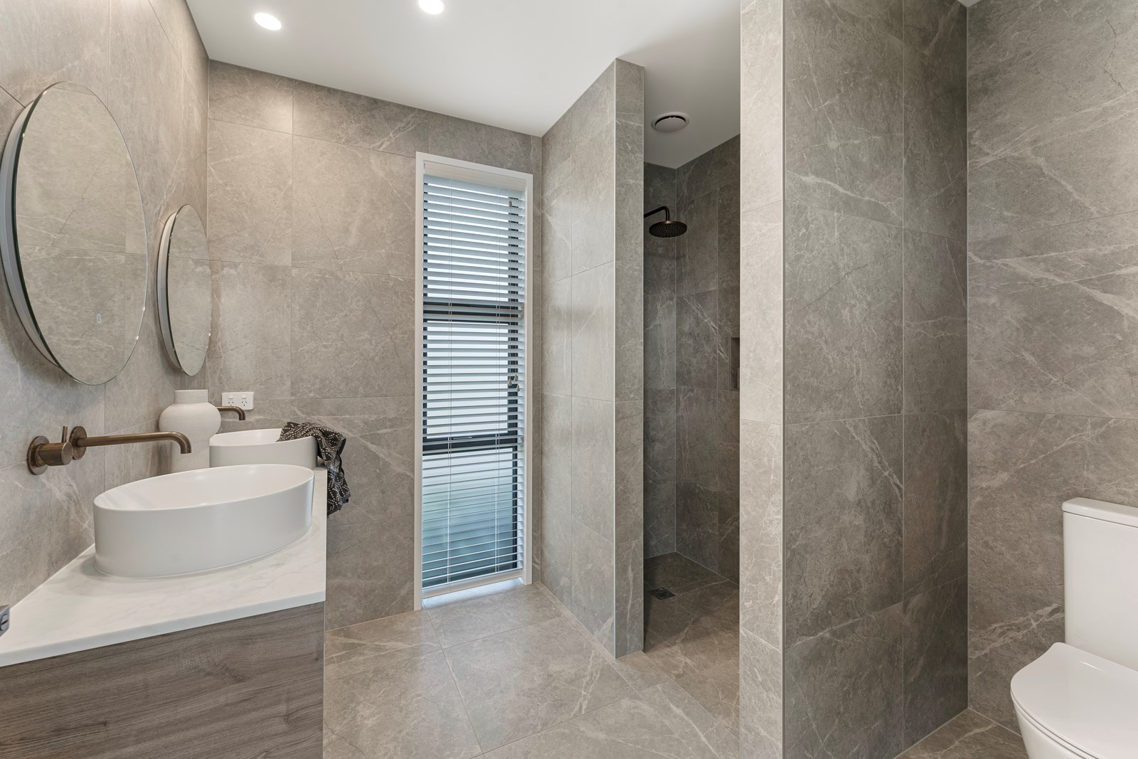 This rural 310sqm house juxtaposes the elegance of an old-style country homestead with all the mod cons. A long driveway leads to a schist and black cedar frontage sectioned into three and connected by glass hallways. On entry, a 2.7m feature stone wall complements the polished concrete floors and wooden ceiling trusses that are a hallmark of the main room. The living area features a wood-burning fireplace with stone mantel, and a sitting alcove creates a cosy nook. A vision for keen cooks, the kitchen features a barn door that provides access to the butler’s pantry. Both kitchen and dining share the benefits of the central sliding door that opens to the outdoor entertaining, overlooking the Mangemangeroa estuary. Four bedrooms occupy the wings of the home, with the carpeted main bedroom leading off the living zone. This impressive room has a gabled ceiling, outdoor access and a spacious ensuite and walk-in dressing room. Behind the kitchen a second glass link leads to a two-storey wing. On the ground floor there are two bedrooms, a bathroom, separate toilet and double garage with laundry. Carpeted stairs lead upstairs to a delightful fourth bedroom and lounge/media room.