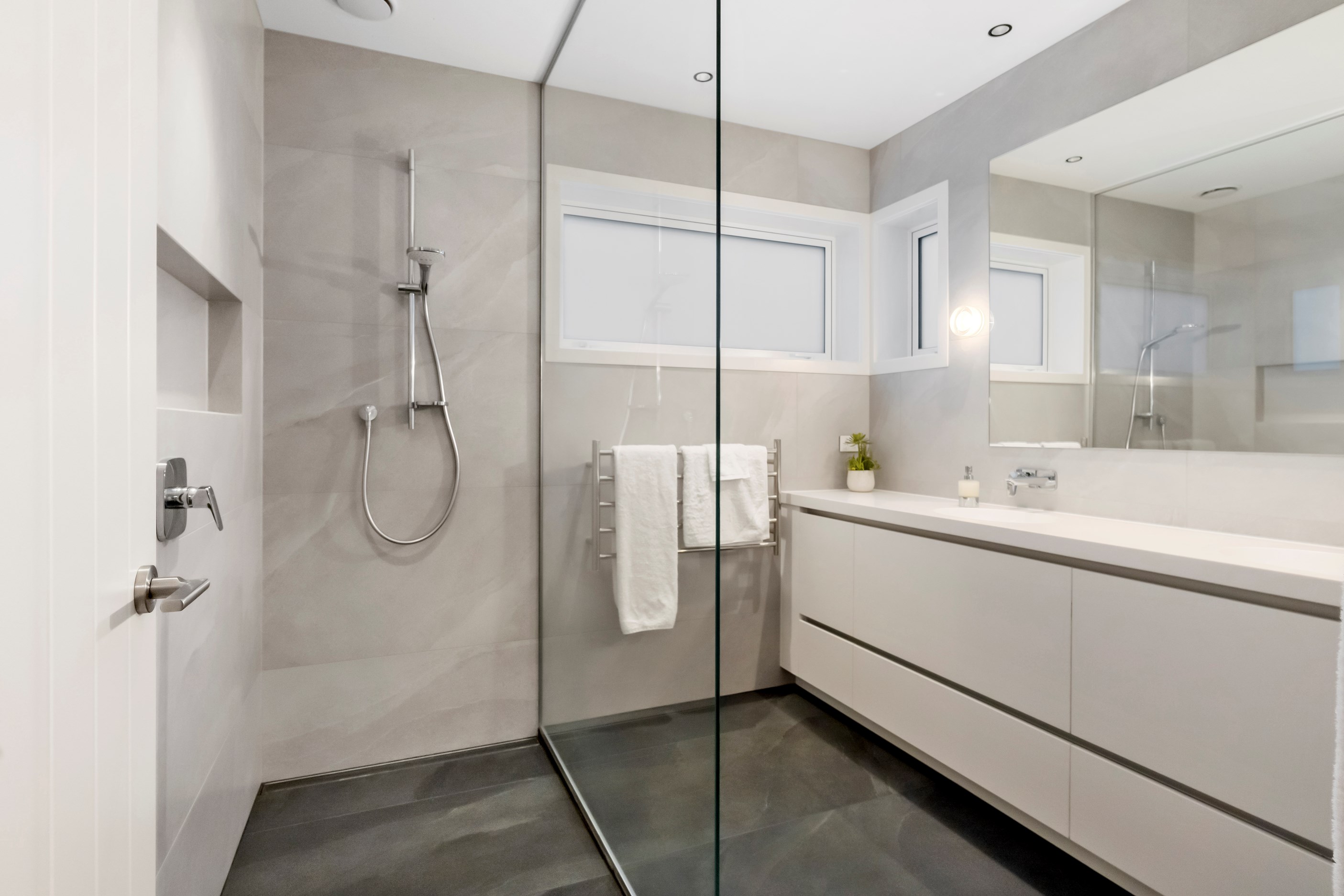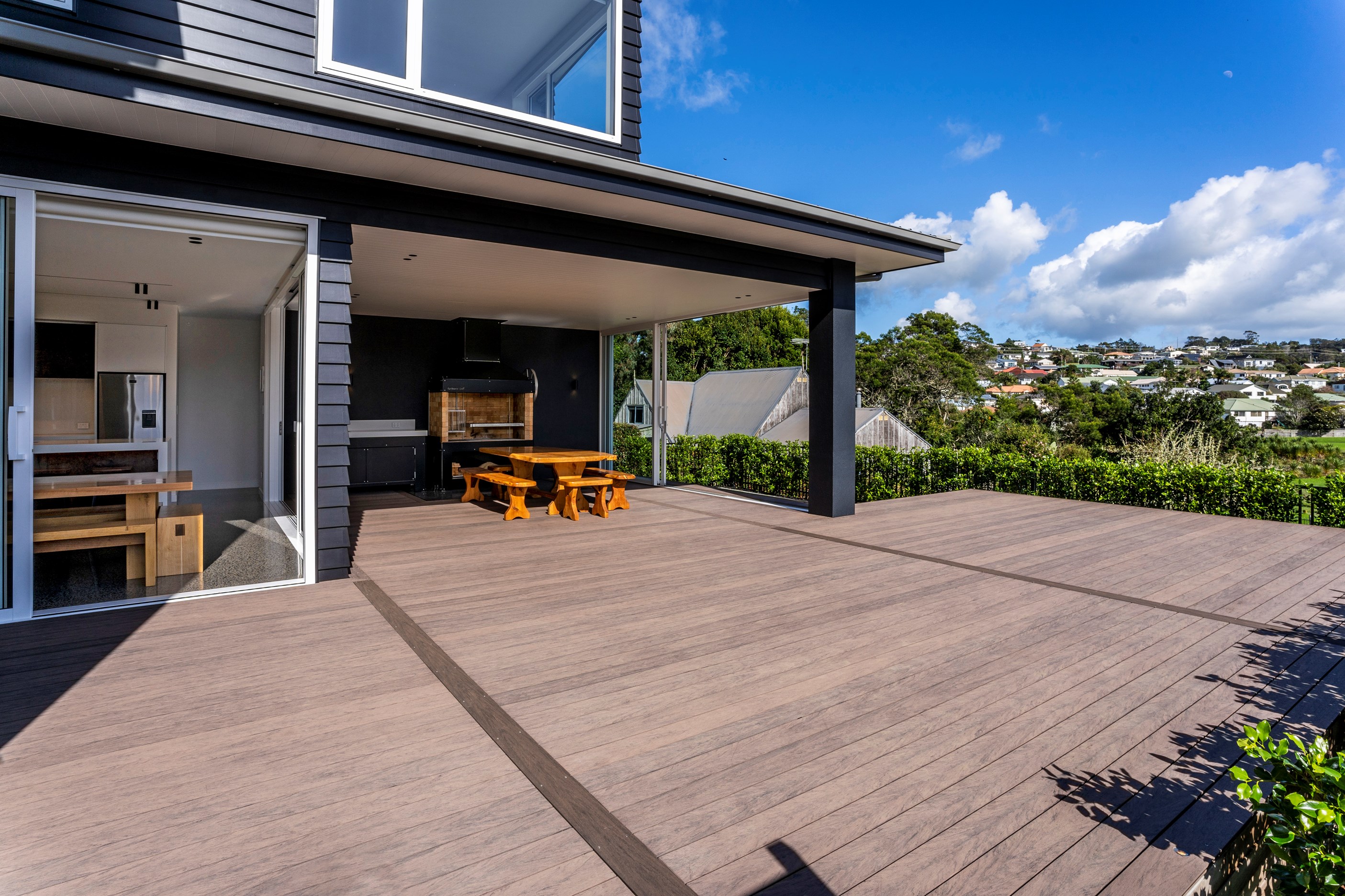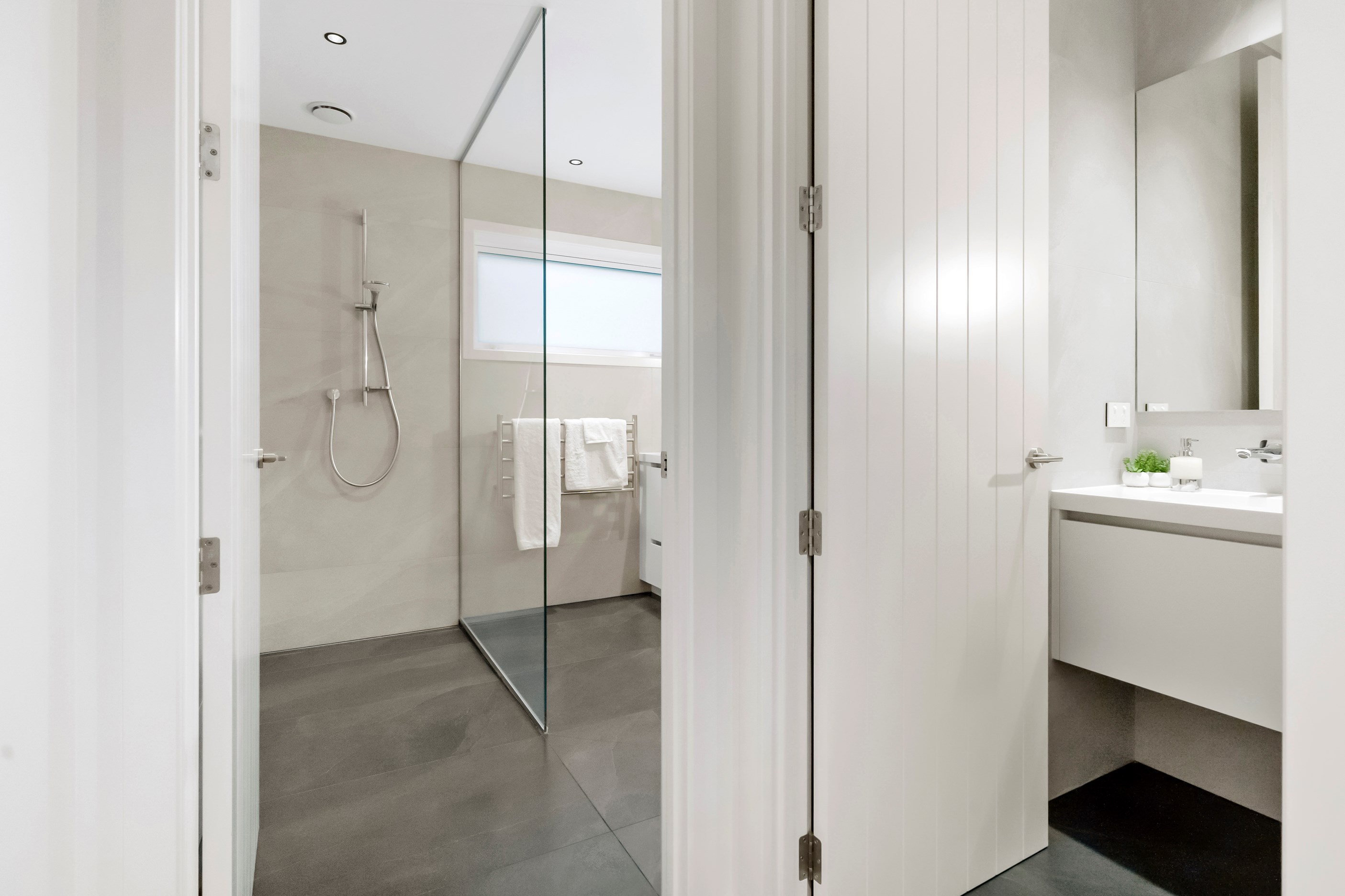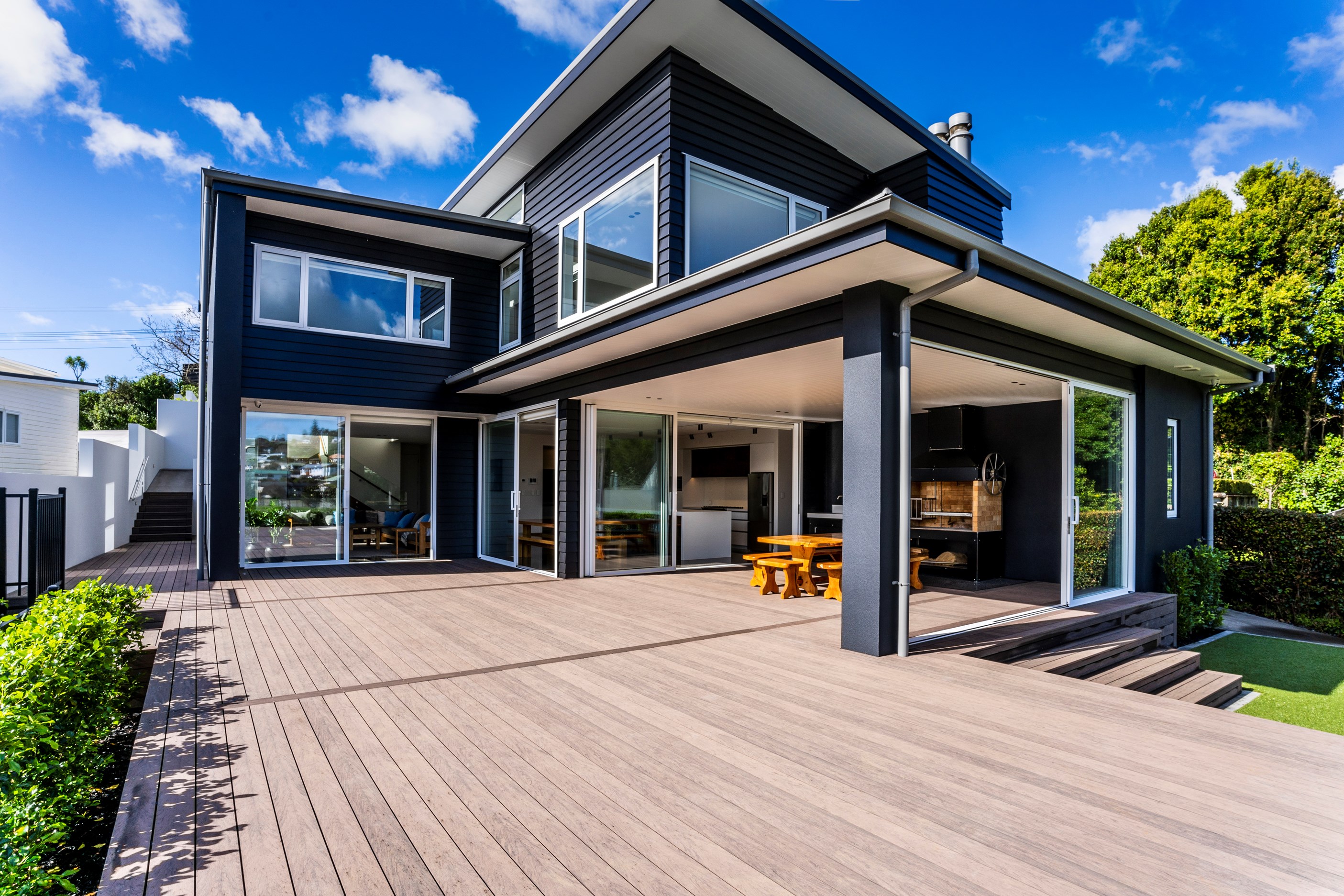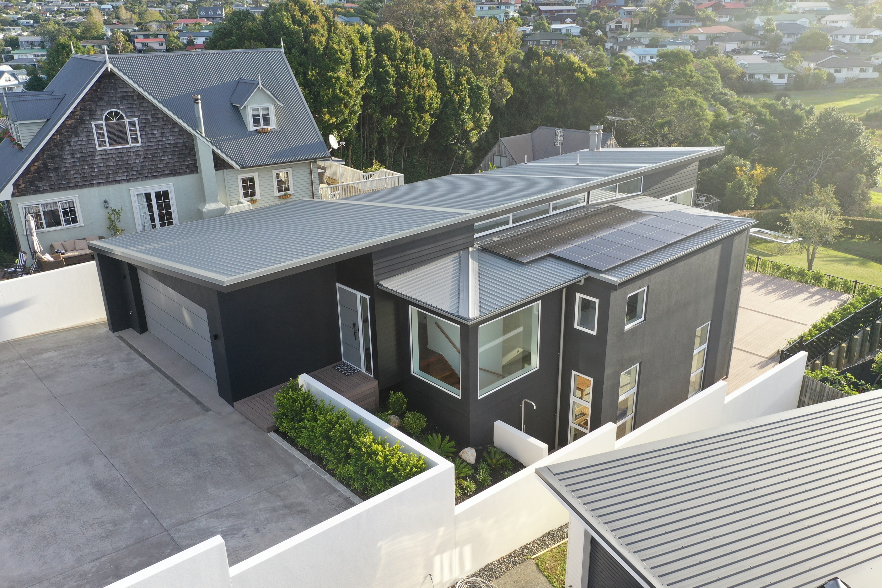 Coastal living doesn’t get much better than this — start your day by strolling to the beach for a morning dip then freshen up back home in the private outdoor shower, before enjoying breakfast on the sun-soaked deck. On the weekends it’s all about entertaining, with a walk-in commercial chiller to store the drinks and living spaces which flow seamlessly out to the partially covered deck, where the centrepiece is the Argentinian-style brick grill. Light filters into the 306sqm home, making details like the polished concrete floors and the solid walnut used on the wide staircase shine. The flooring in the entryway is also walnut as is the elevator flooring (accessibility is another highlight of this home). There’s plenty of room for family life, with two large living spaces on the open-plan ground floor partitioned off from the kitchen and dining area with carefully placed built-in shelving. Downstairs also houses a laundry, garage and guest toilet, and a scullery incorporating that famous walk-in chiller. Upstairs are four bedrooms, including a spacious main bedroom with ensuite, plus a study and family bathroom. Importantly, the house is also set up for a sustainable future, with solar panels and an EV car charging station.