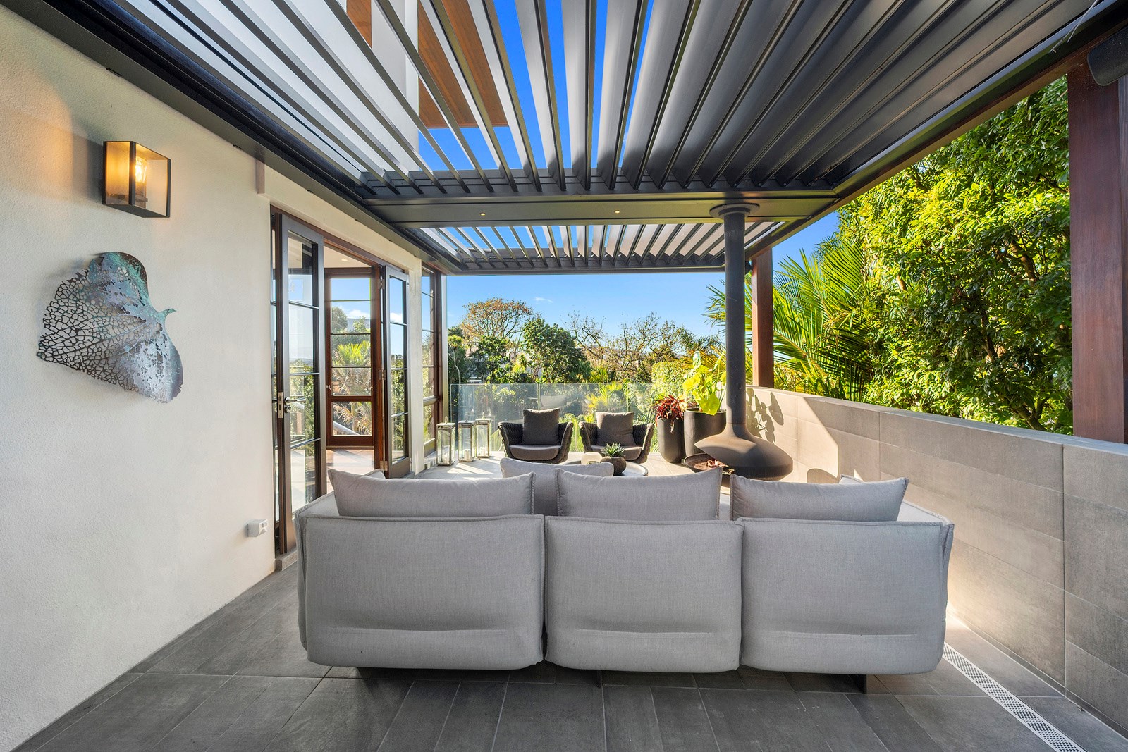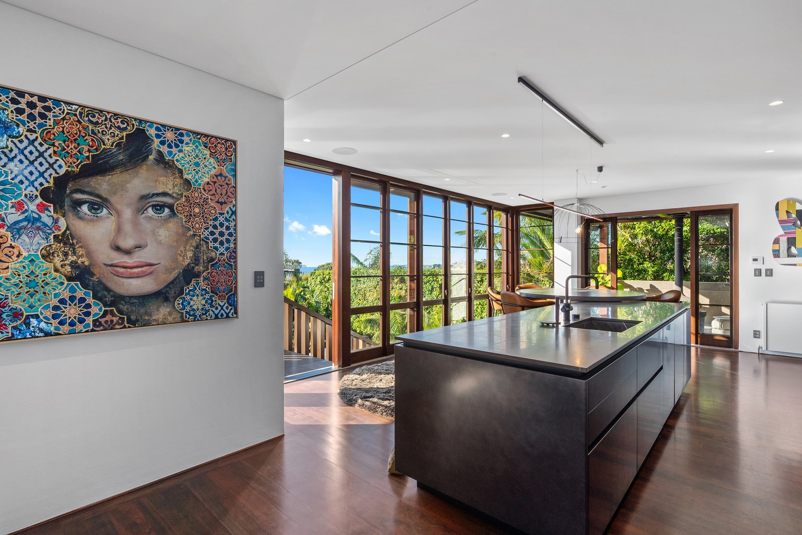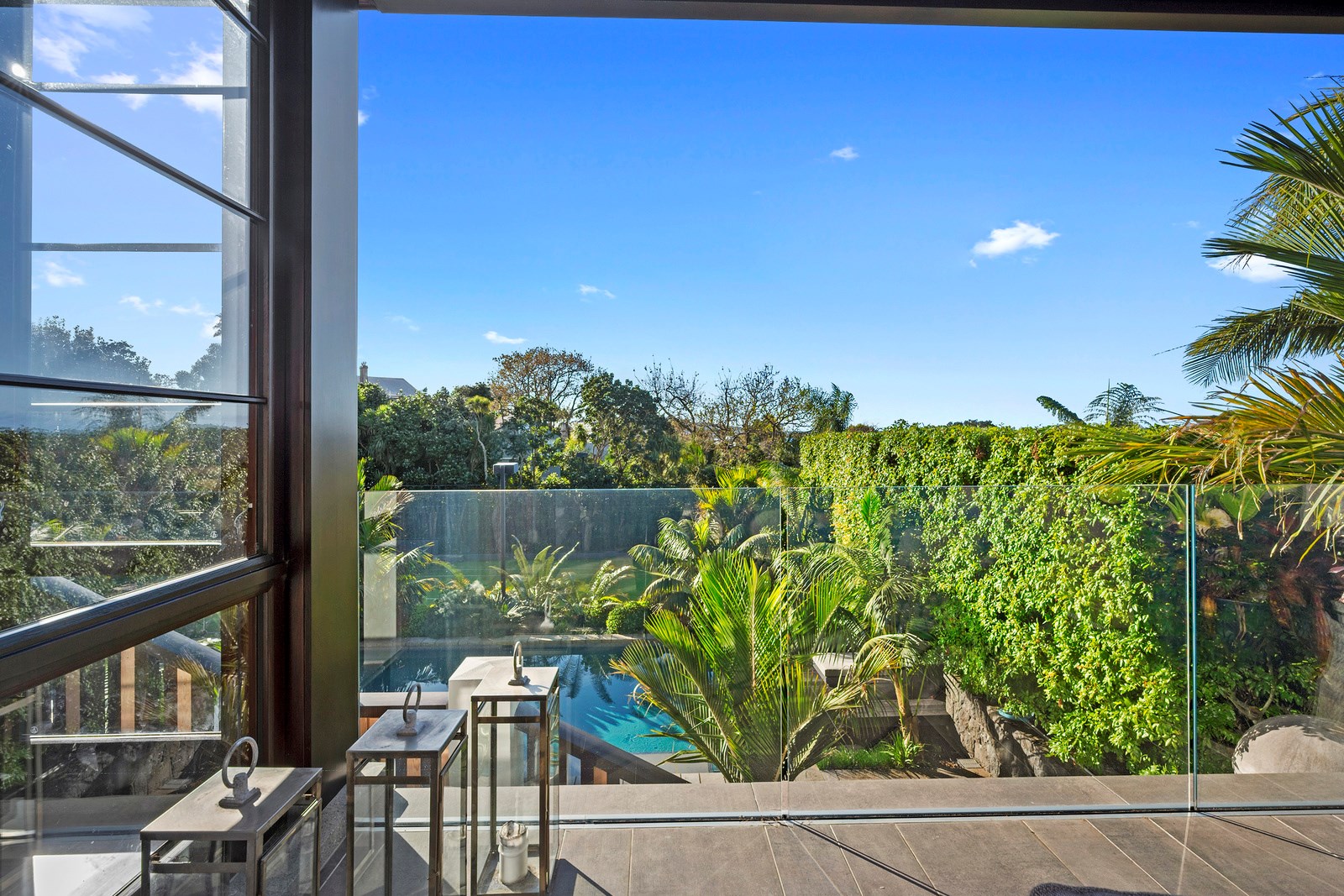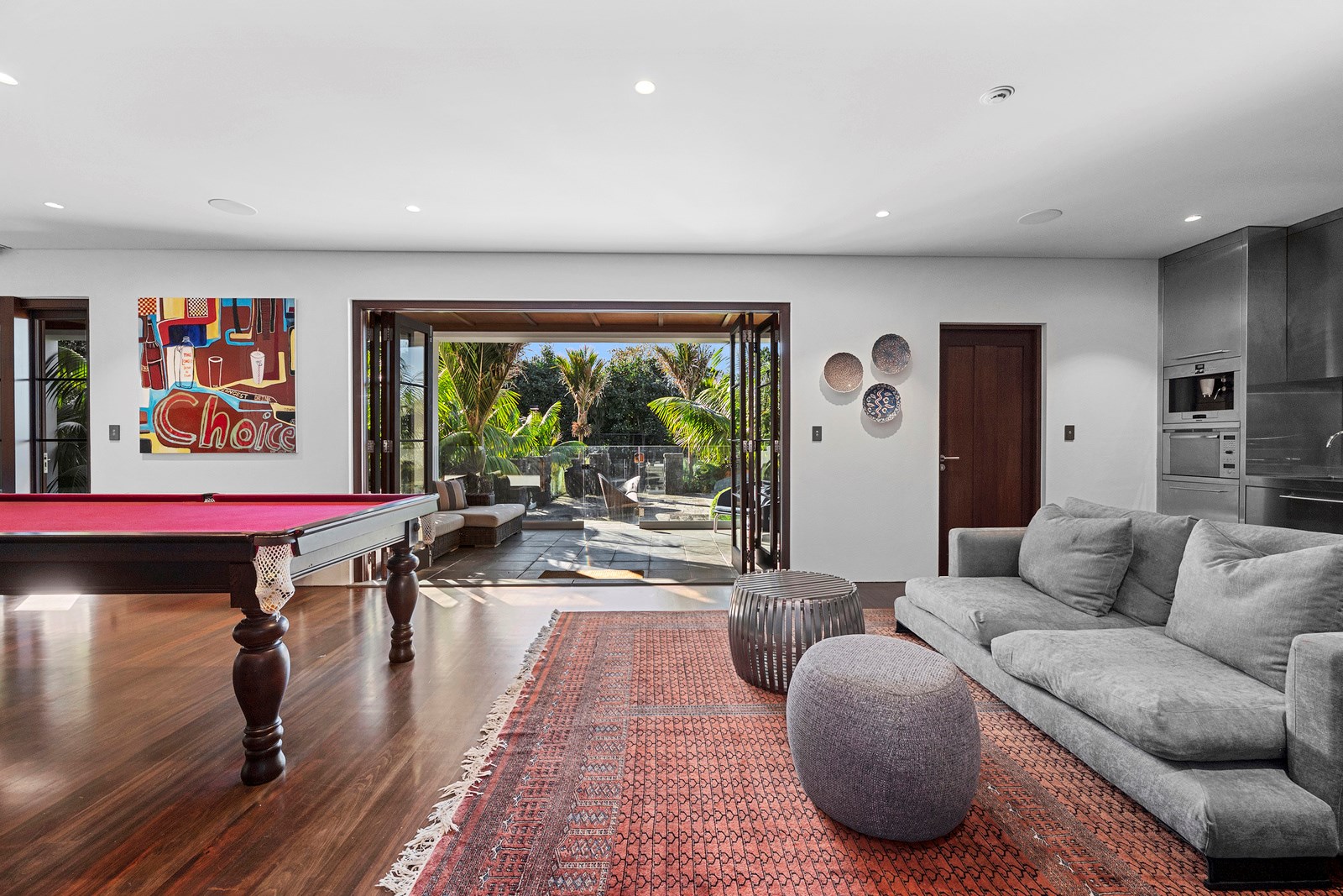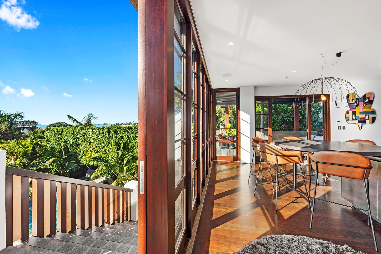 Arrive at this East Auckland property and you could be forgiven for thinking you’re in an exclusive tropical resort. It’s an oasis in the suburbs, a place where lush and luxury live together under palm trees and beside a swimming pool and tennis court. The 460sqm masonry house has undergone a complex renovation, not that you’d know it from the builders’ wide-ranging skills and attention to detail. The project entailed a 60sqm extension with a gym and an enlarged kitchen-dining area with a new European kitchen. New life was also breathed into the existing side patio, which was given a new timber-framed louvre roof and hanging fireplace. All three bathrooms received the luxe treatment with Venetian-style plaster render and top-of- the-range cabinetry and tapware. It’s all flawless and opulent now, but this was a highly technical project requiring a savvy, skilled team. Large masonry walls had to be removed and steel beams used to create openings. As a result, myriad intricate services needed to be rerouted. Given the calibre of the existing finishes in the four-bedroom home, attention was paid to every tiny detail, right down to the polished concrete sills and handrails. It shows: this is how to do a top-end, seamless renovation.