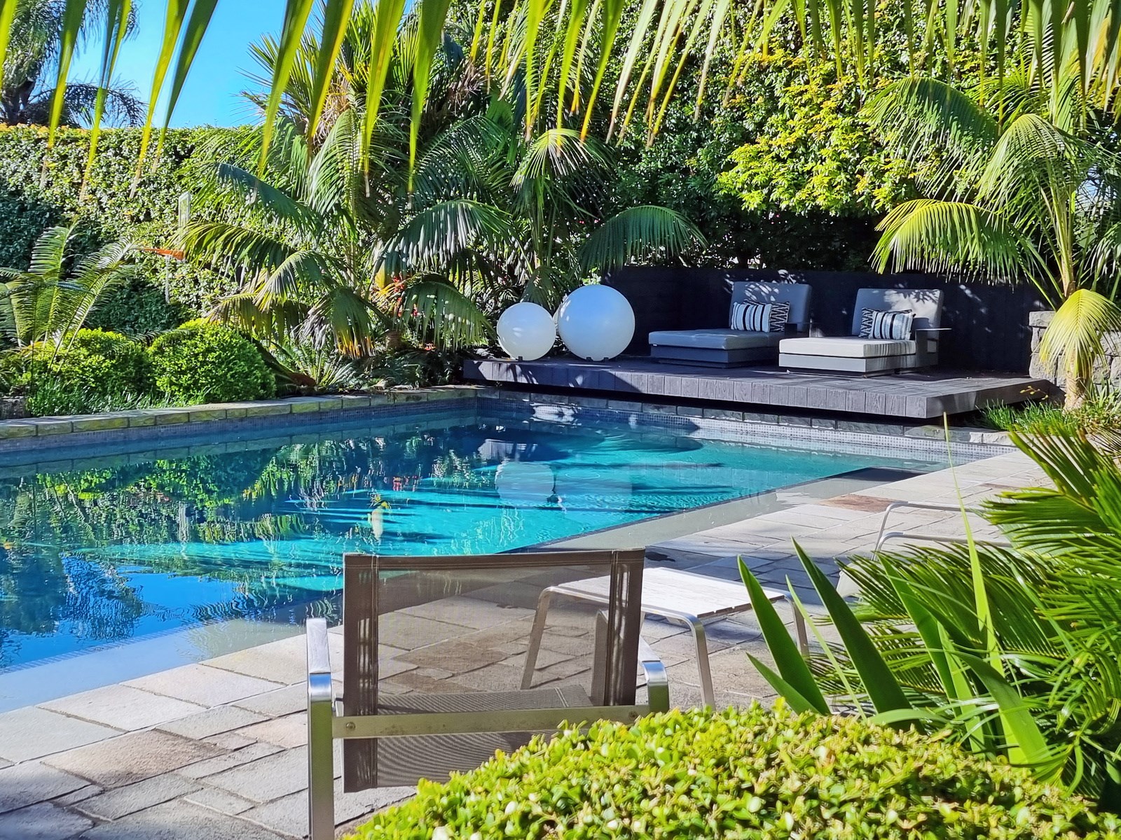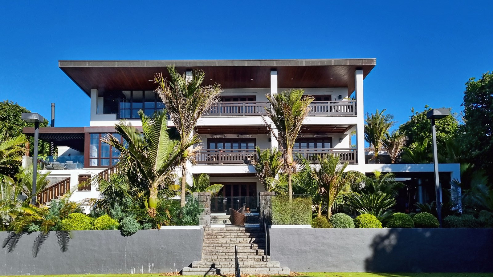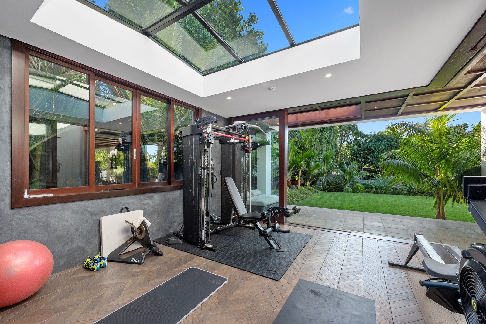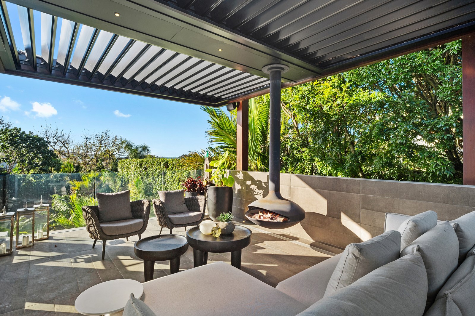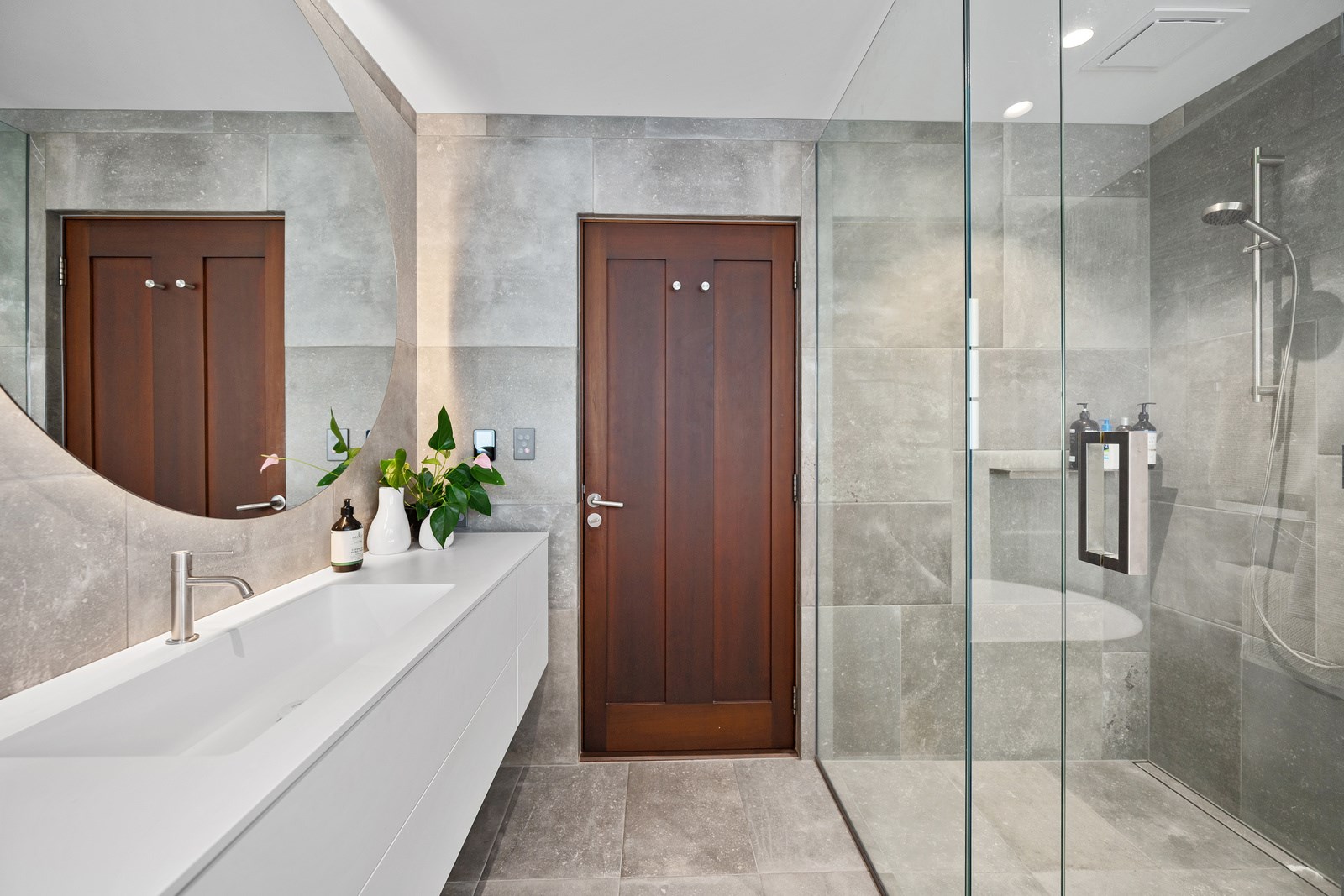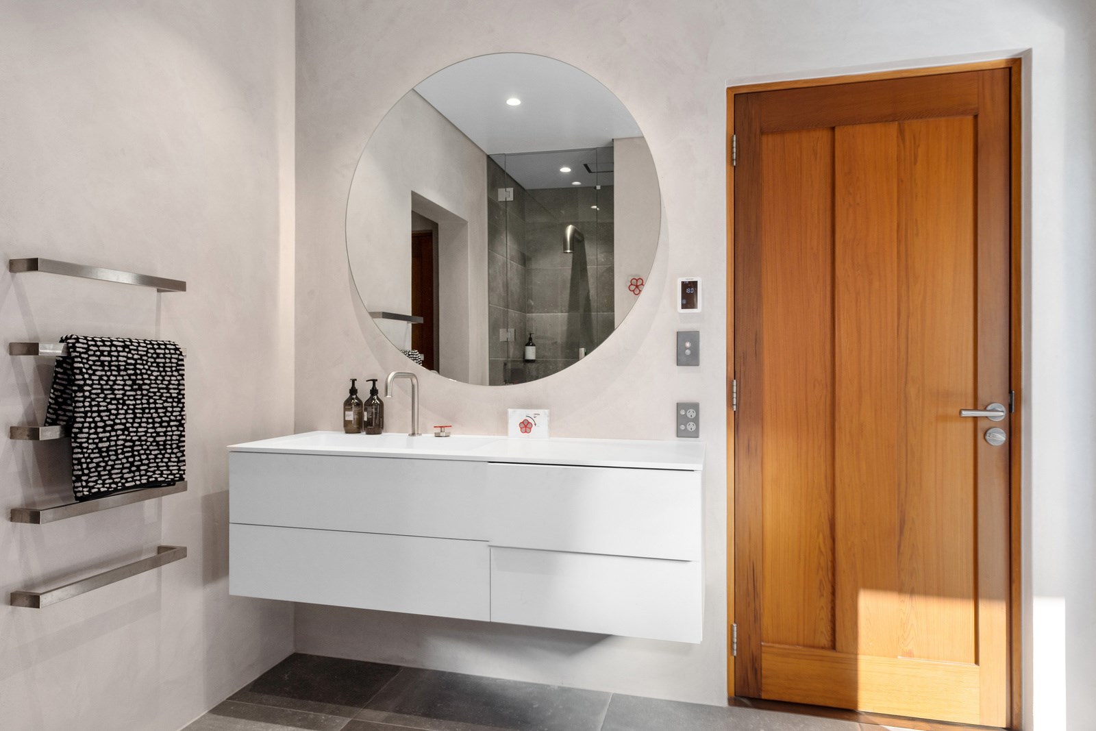 Arrive at this East Auckland property and you could be forgiven for thinking you’re in an exclusive tropical resort. It’s an oasis in the suburbs, a place where lush and luxury live together under palm trees and beside a swimming pool and tennis court. The 460sqm masonry house has undergone a complex renovation, not that you’d know it from the builders’ wide-ranging skills and attention to detail. The project entailed a 60sqm extension with a gym and an enlarged kitchen-dining area with a new European kitchen. New life was also breathed into the existing side patio, which was given a new timber-framed louvre roof and hanging fireplace. All three bathrooms received the luxe treatment with Venetian-style plaster render and top-of- the-range cabinetry and tapware. It’s all flawless and opulent now, but this was a highly technical project requiring a savvy, skilled team. Large masonry walls had to be removed and steel beams used to create openings. As a result, myriad intricate services needed to be rerouted. Given the calibre of the existing finishes in the four-bedroom home, attention was paid to every tiny detail, right down to the polished concrete sills and handrails. It shows: this is how to do a top-end, seamless renovation.
