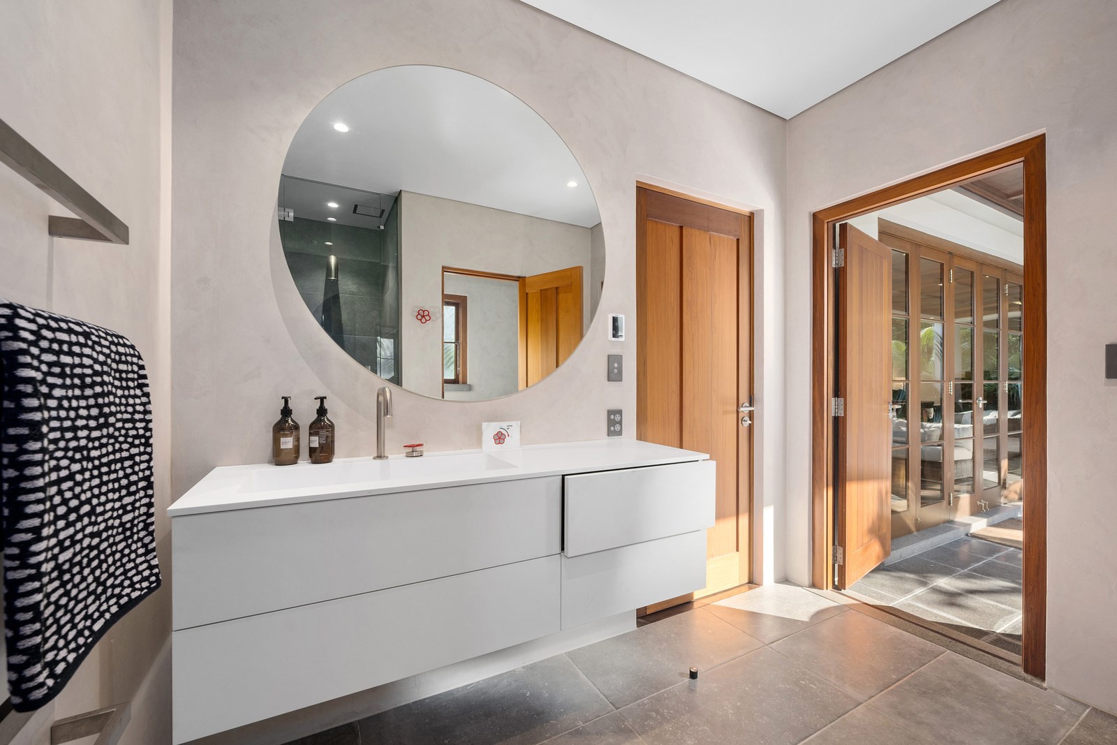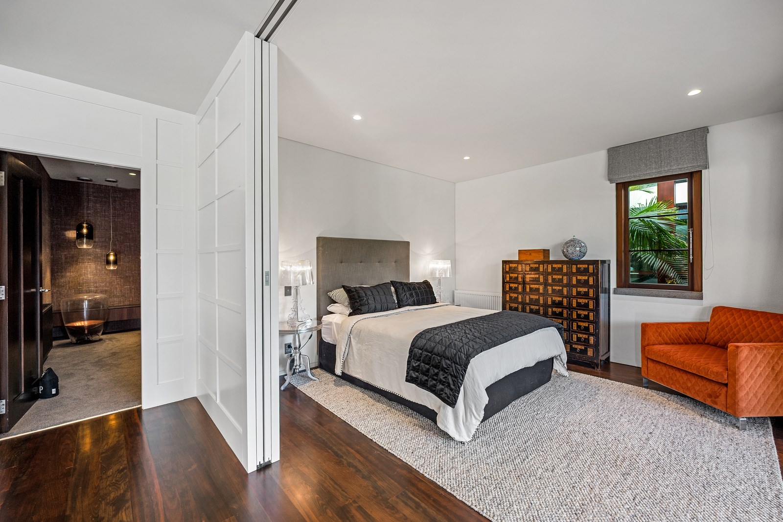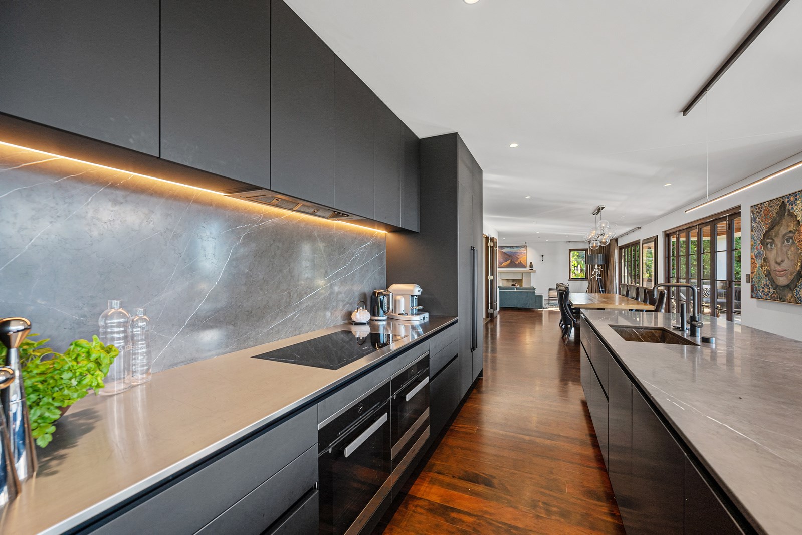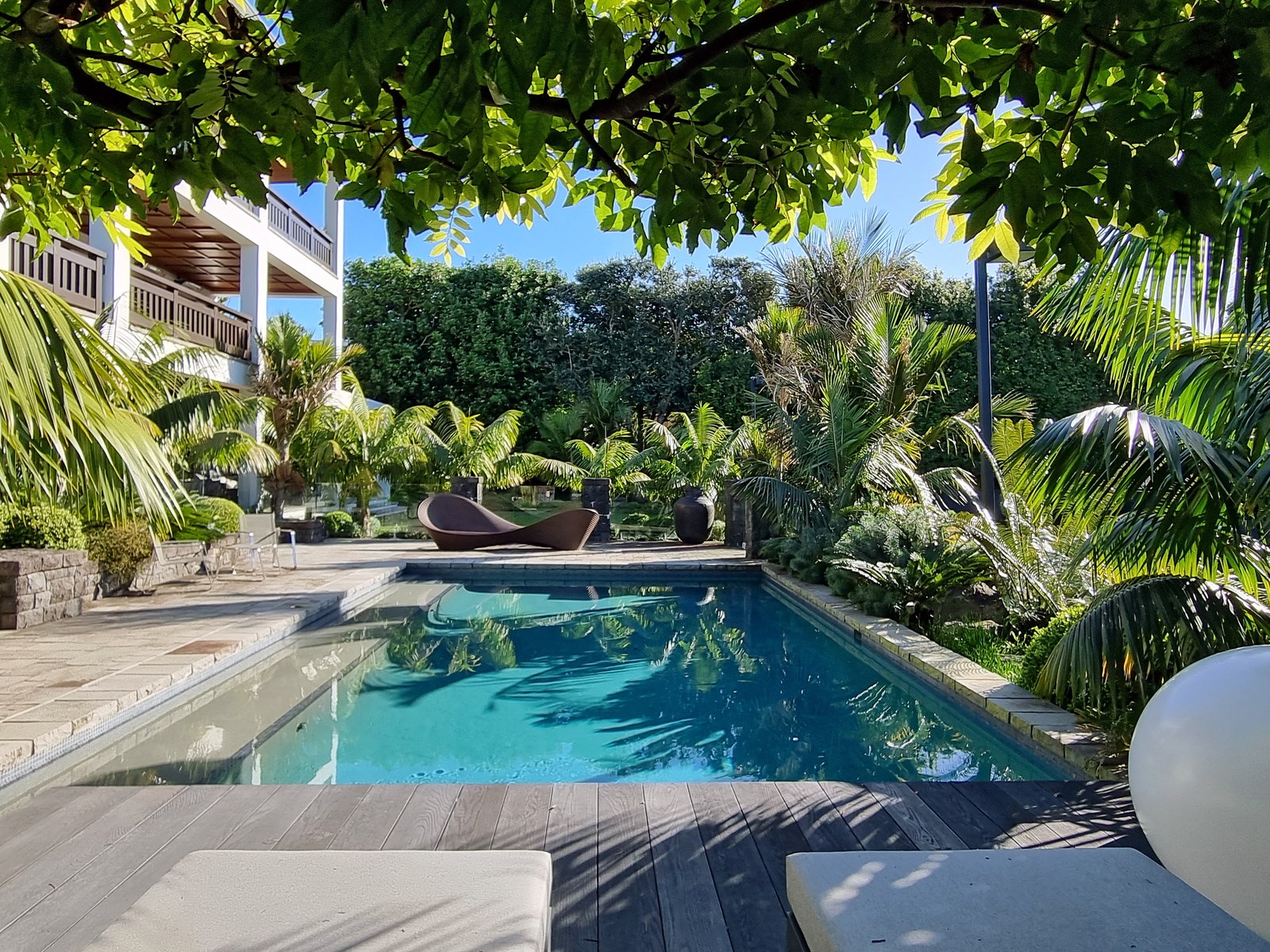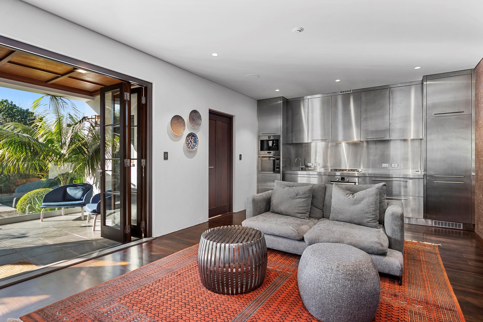 Arrive at this East Auckland property and you could be forgiven for thinking you’re in an exclusive tropical resort. It’s an oasis in the suburbs, a place where lush and luxury live together under palm trees and beside a swimming pool and tennis court. The 460sqm masonry house has undergone a complex renovation, not that you’d know it from the builders’ wide-ranging skills and attention to detail. The project entailed a 60sqm extension with a gym and an enlarged kitchen-dining area with a new European kitchen. New life was also breathed into the existing side patio, which was given a new timber-framed louvre roof and hanging fireplace. All three bathrooms received the luxe treatment with Venetian-style plaster render and top-of- the-range cabinetry and tapware. It’s all flawless and opulent now, but this was a highly technical project requiring a savvy, skilled team. Large masonry walls had to be removed and steel beams used to create openings. As a result, myriad intricate services needed to be rerouted. Given the calibre of the existing finishes in the four-bedroom home, attention was paid to every tiny detail, right down to the polished concrete sills and handrails. It shows: this is how to do a top-end, seamless renovation.