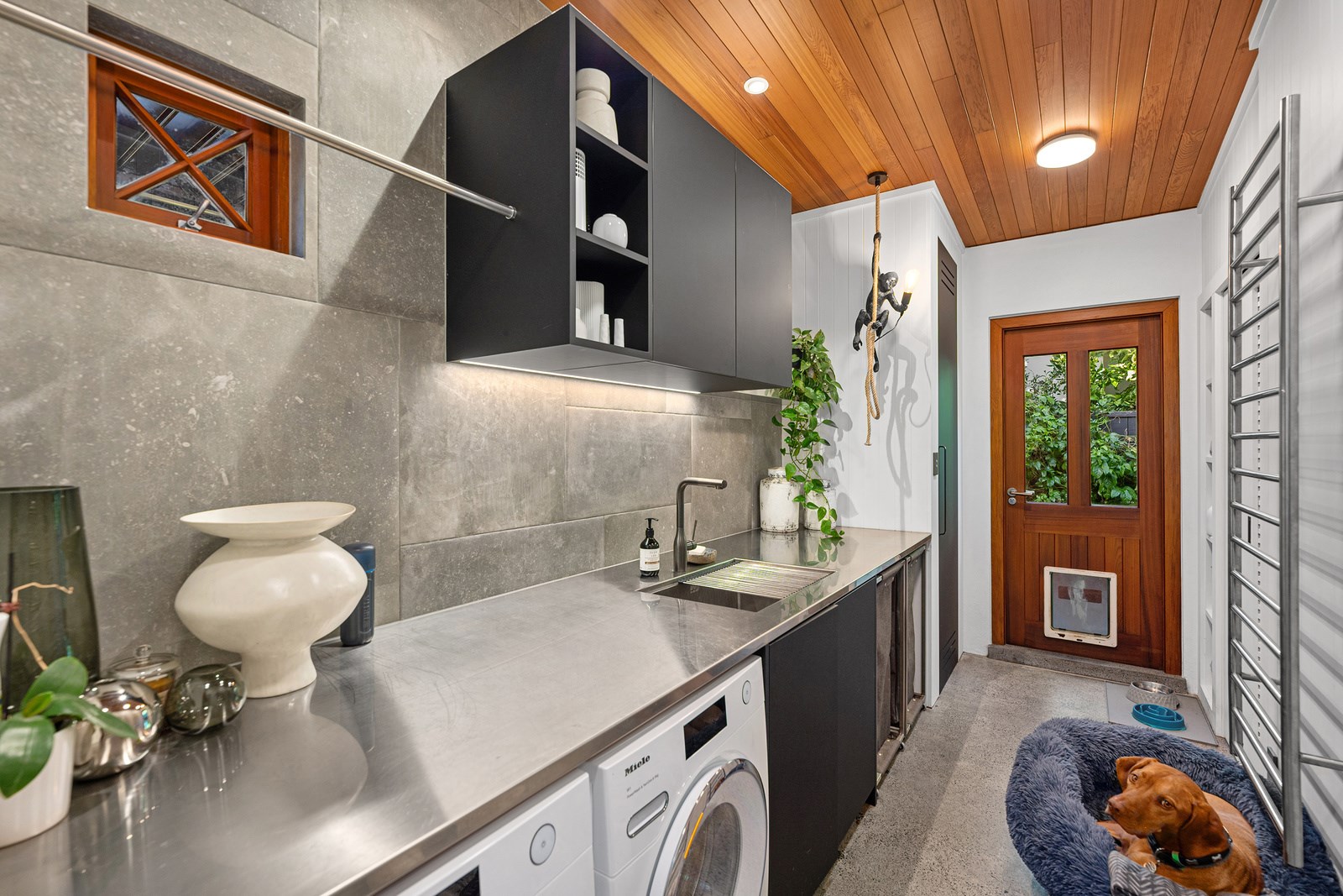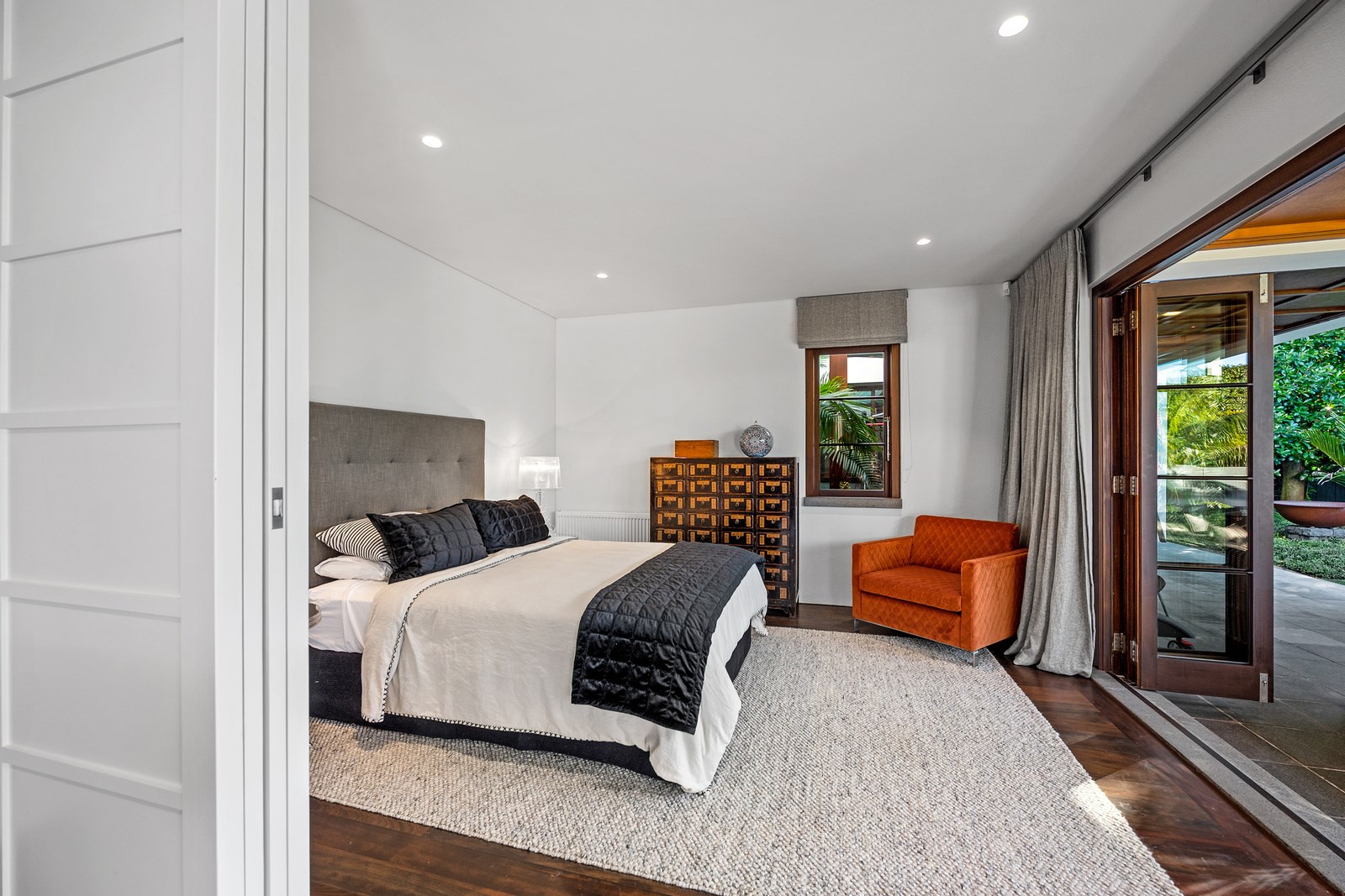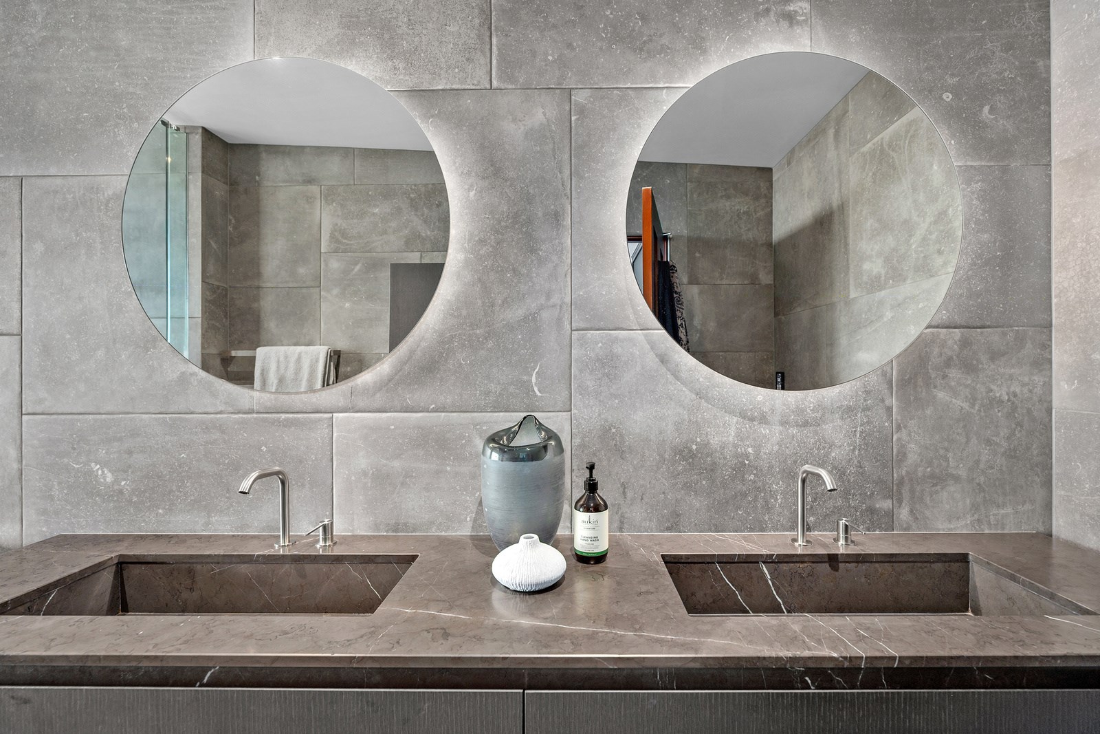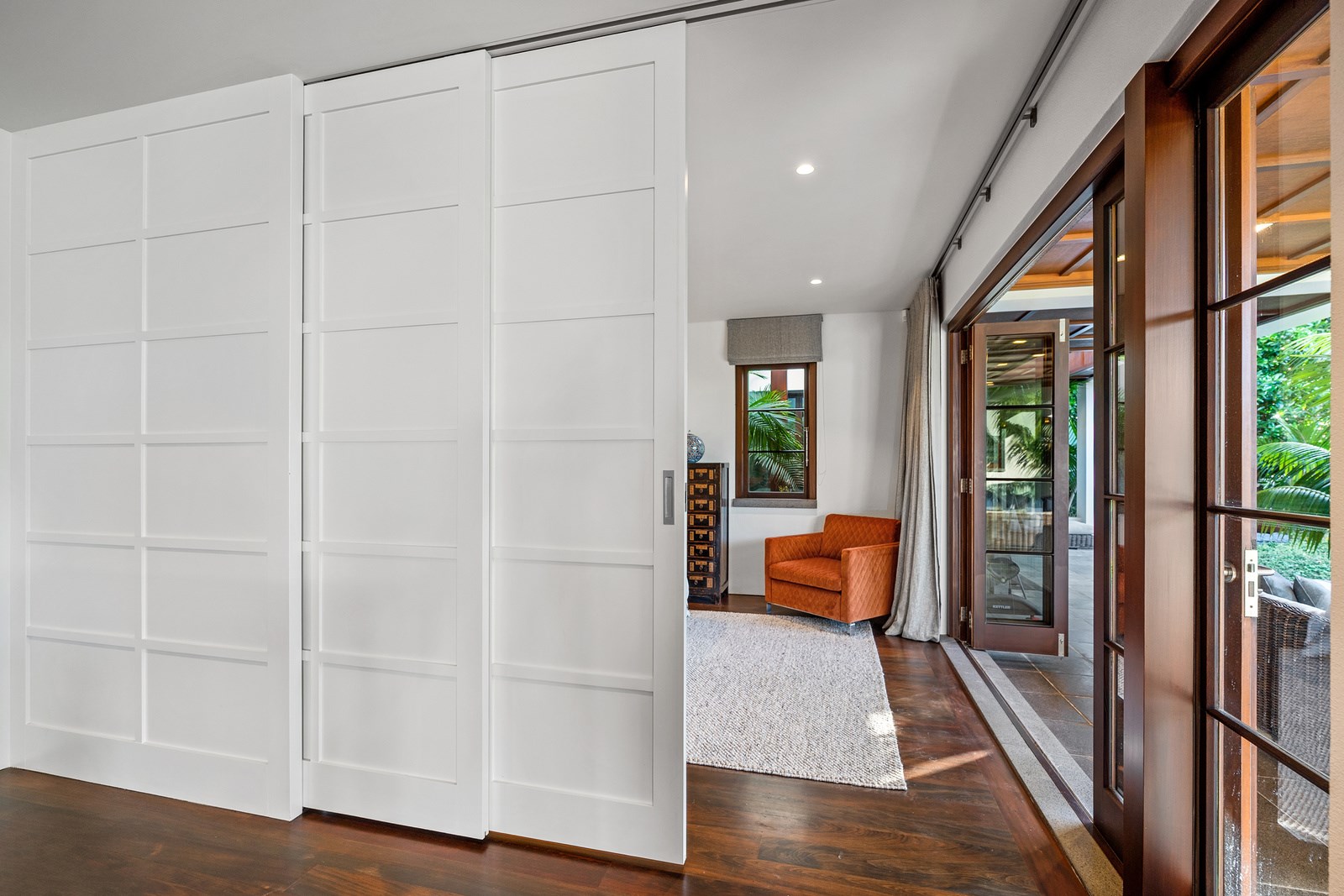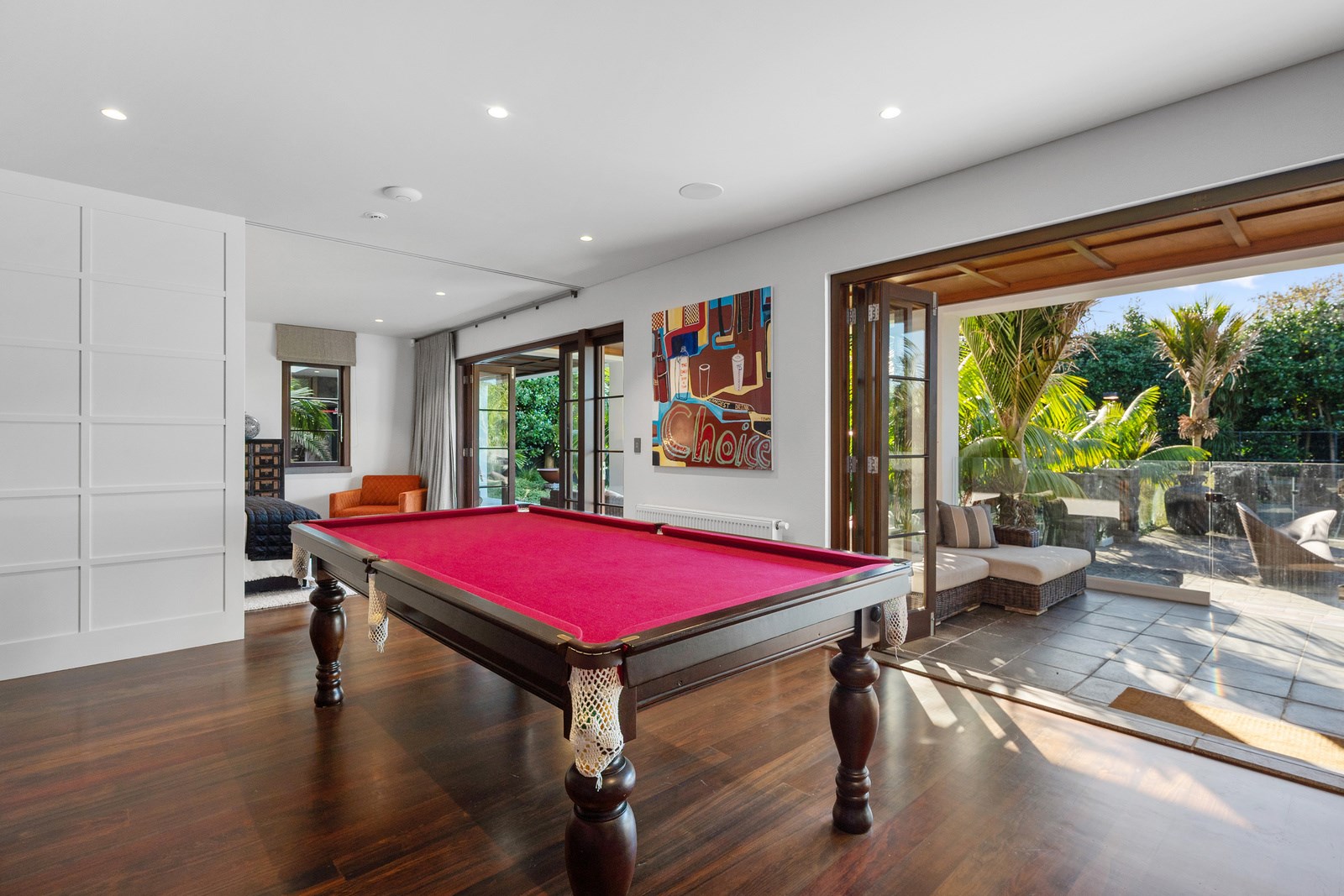 Arrive at this East Auckland property and you could be forgiven for thinking you’re in an exclusive tropical resort. It’s an oasis in the suburbs, a place where lush and luxury live together under palm trees and beside a swimming pool and tennis court. The 460sqm masonry house has undergone a complex renovation, not that you’d know it from the builders’ wide-ranging skills and attention to detail. The project entailed a 60sqm extension with a gym and an enlarged kitchen-dining area with a new European kitchen. New life was also breathed into the existing side patio, which was given a new timber-framed louvre roof and hanging fireplace. All three bathrooms received the luxe treatment with Venetian-style plaster render and top-of- the-range cabinetry and tapware. It’s all flawless and opulent now, but this was a highly technical project requiring a savvy, skilled team. Large masonry walls had to be removed and steel beams used to create openings. As a result, myriad intricate services needed to be rerouted. Given the calibre of the existing finishes in the four-bedroom home, attention was paid to every tiny detail, right down to the polished concrete sills and handrails. It shows: this is how to do a top-end, seamless renovation.