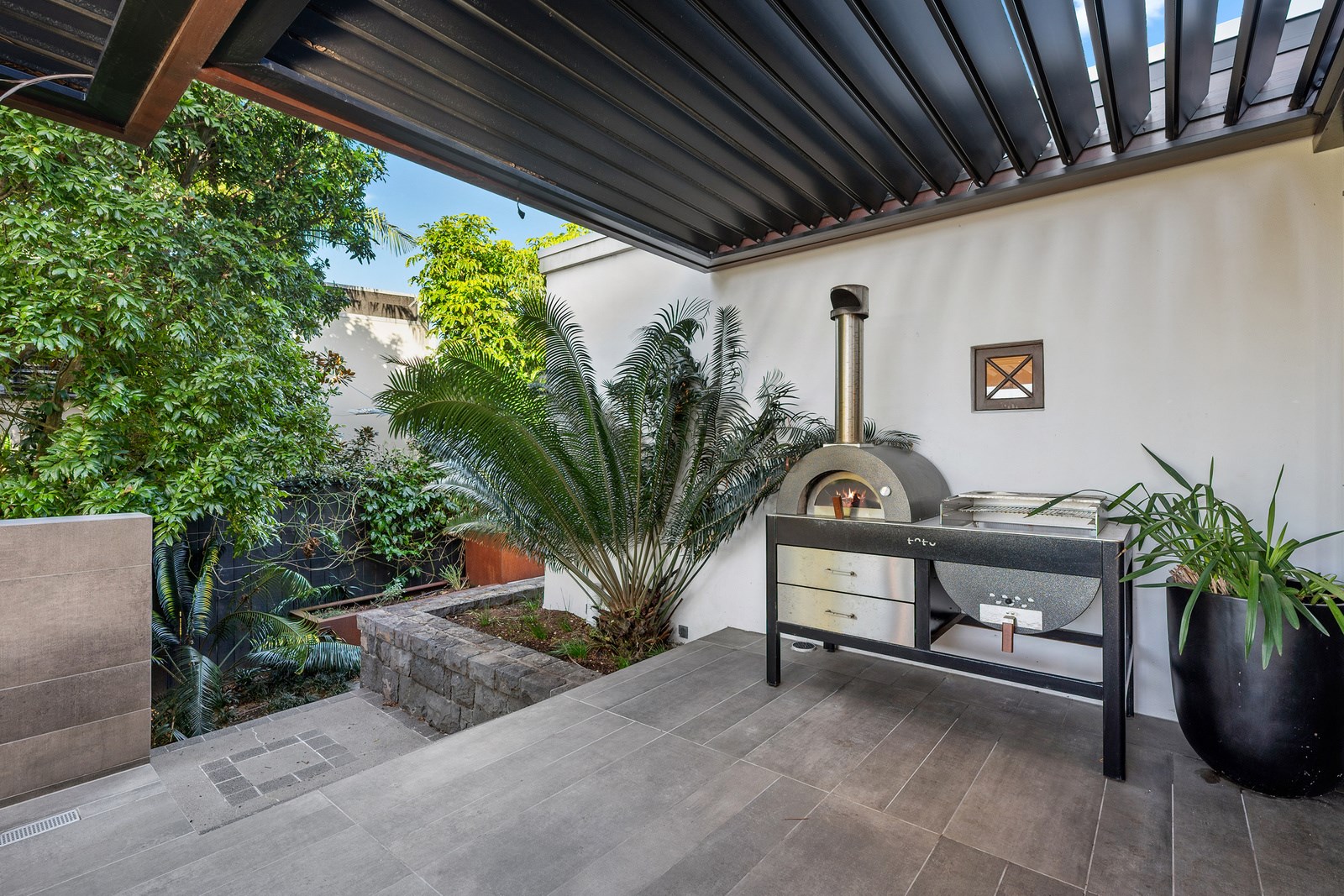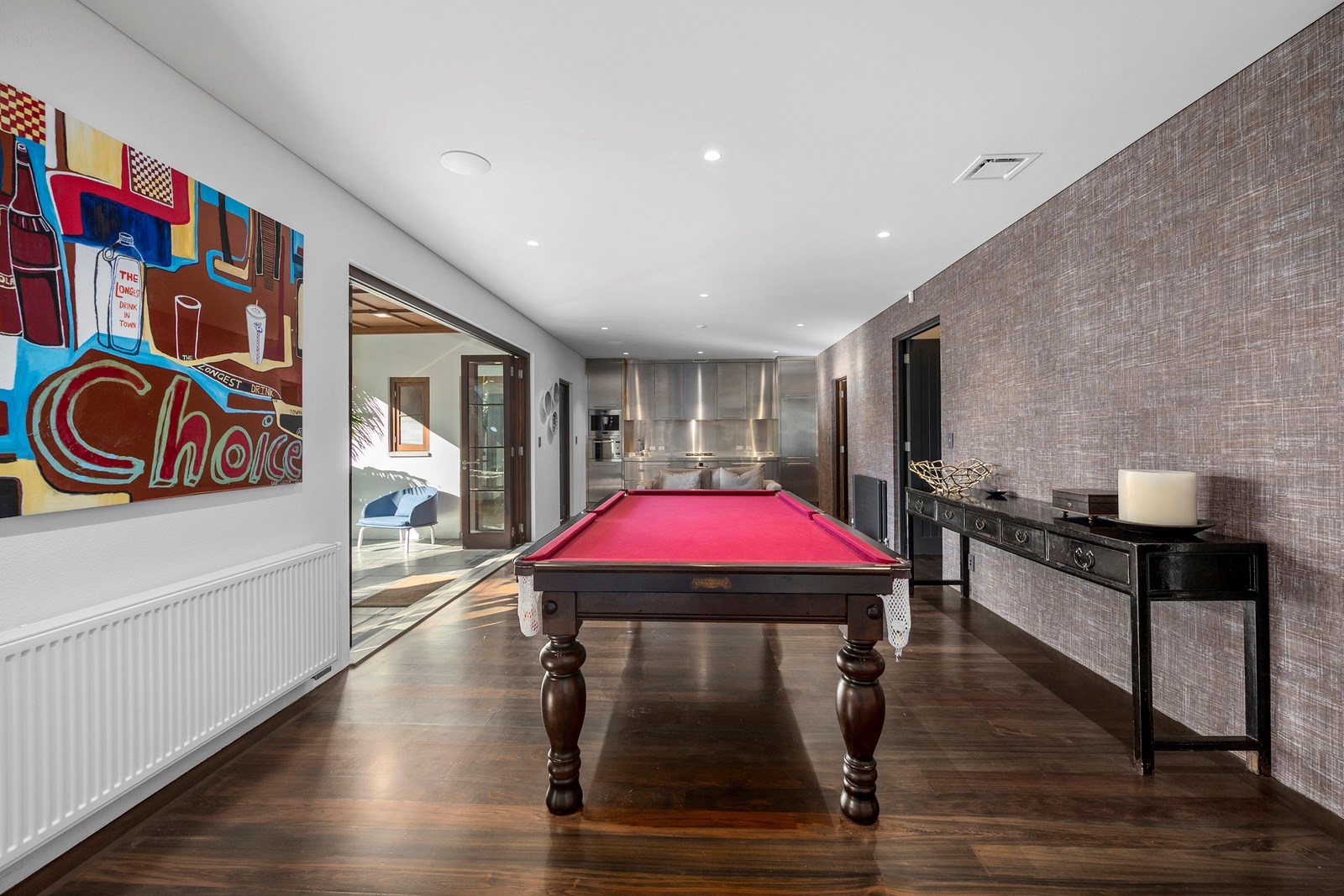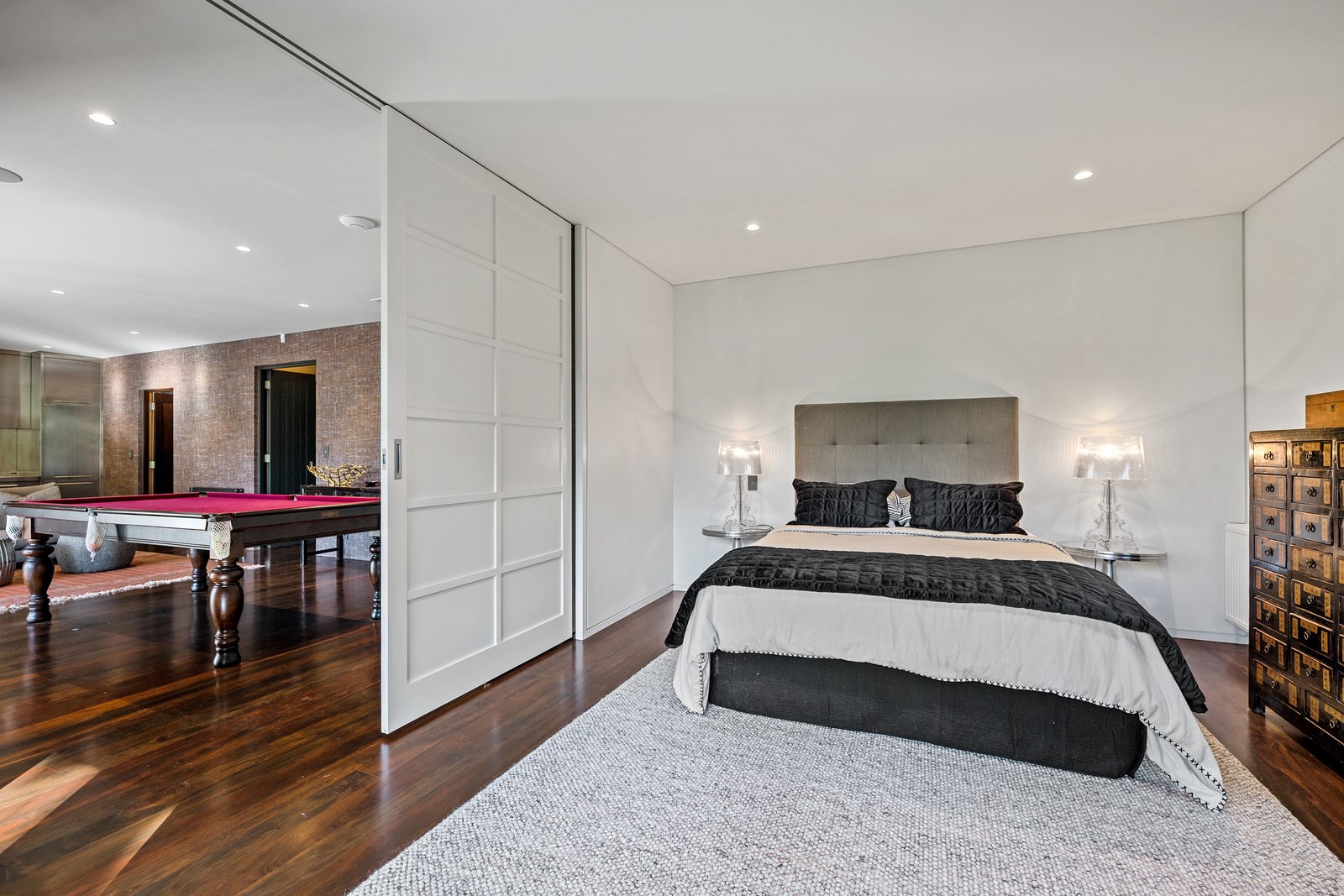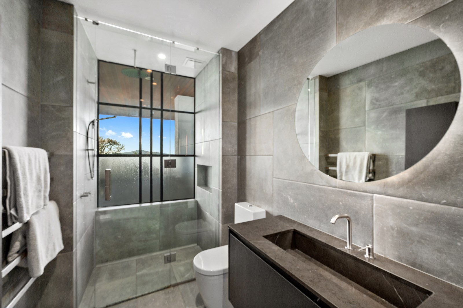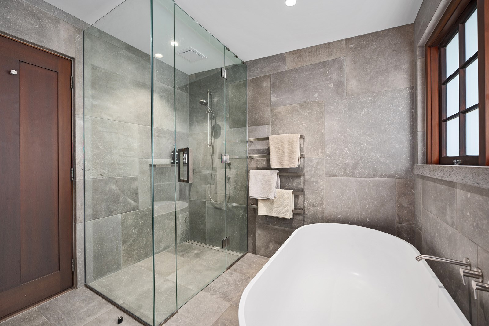 Arrive at this East Auckland property and you could be forgiven for thinking you’re in an exclusive tropical resort. It’s an oasis in the suburbs, a place where lush and luxury live together under palm trees and beside a swimming pool and tennis court. The 460sqm masonry house has undergone a complex renovation, not that you’d know it from the builders’ wide-ranging skills and attention to detail. The project entailed a 60sqm extension with a gym and an enlarged kitchen-dining area with a new European kitchen. New life was also breathed into the existing side patio, which was given a new timber-framed louvre roof and hanging fireplace. All three bathrooms received the luxe treatment with Venetian-style plaster render and top-of- the-range cabinetry and tapware. It’s all flawless and opulent now, but this was a highly technical project requiring a savvy, skilled team. Large masonry walls had to be removed and steel beams used to create openings. As a result, myriad intricate services needed to be rerouted. Given the calibre of the existing finishes in the four-bedroom home, attention was paid to every tiny detail, right down to the polished concrete sills and handrails. It shows: this is how to do a top-end, seamless renovation.