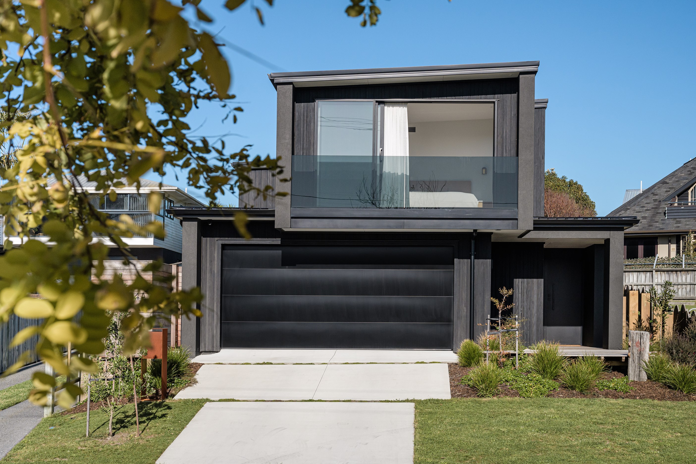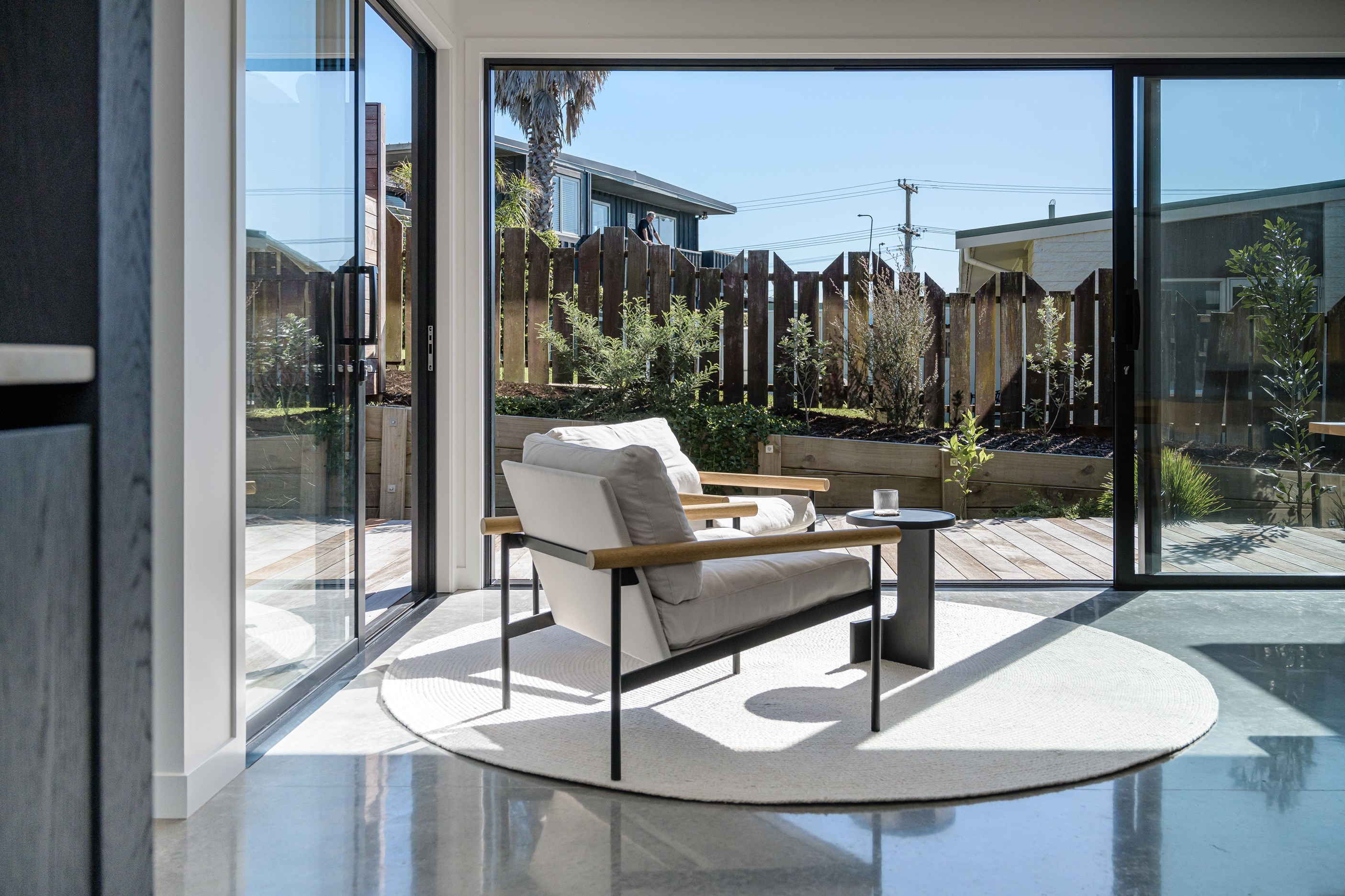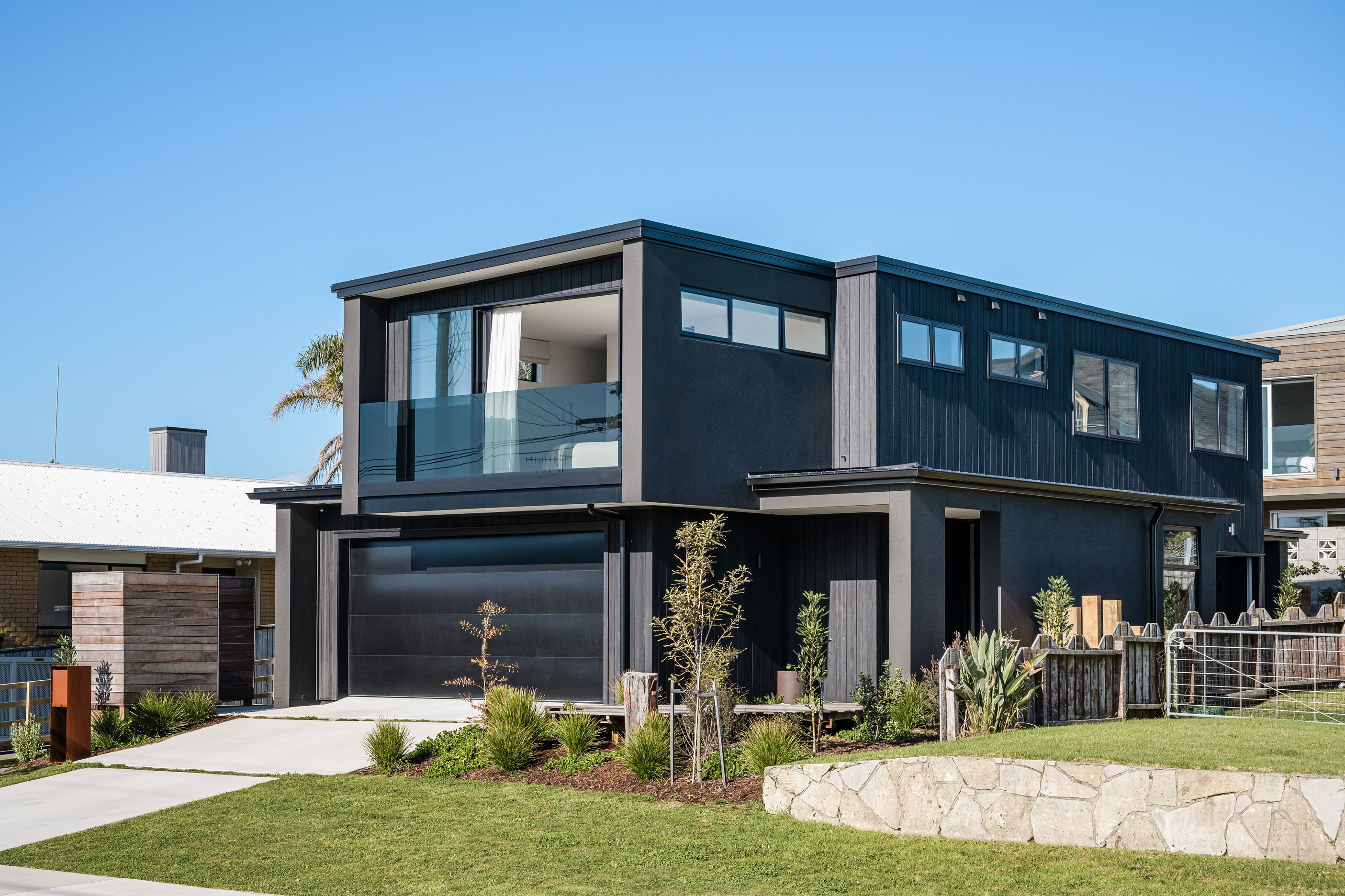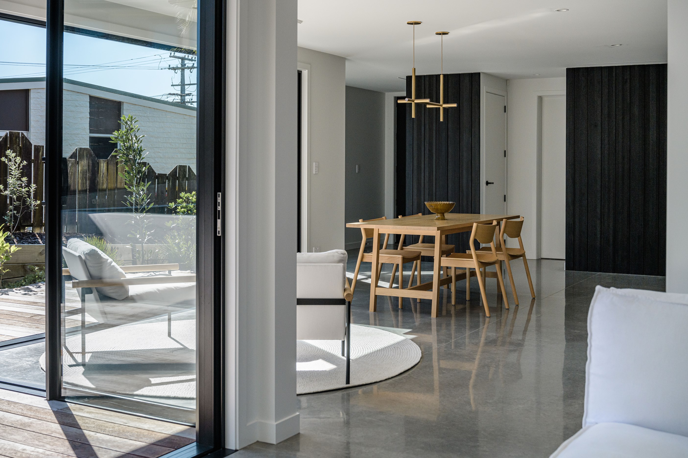 A small site needn’t be a barrier to big style and this beach beauty proves the point. The two-storey house sits on a section that’s just 322sqm, but has everything the owners need, plus luxury extras such as a plunge pool. It doesn’t hurt that the house, clad in vertical timber and plastered concrete panels, is just two blocks away from the white-sand beach and that the bedrooms enjoy glimpses of the region’s landmark peak, Mauao. The 208sqm design makes best use of the space available. Relaxed communal downstairs living dovetails with decking, and the plywood-lined double garage has plenty of room for storing surfboards, bikes and other toys. Polished concrete floors are practical and beachy. Upstairs are the bedrooms, with the main suite encompassing a tiled ensuite, dressing room and a private balcony. Off the hall are two more bedrooms, a bathroom and study. An important part of the brief was sustainability, as evidenced by waffle foundation, recycled plastic wall and ceiling insulation, and thermally modified cladding. Other features include solar power with battery storage, skylights for ventilation, a heat-pump hot-water cylinder and provision for an EV charger. With its big-picture design, this house on a compact site is set up for years to come.