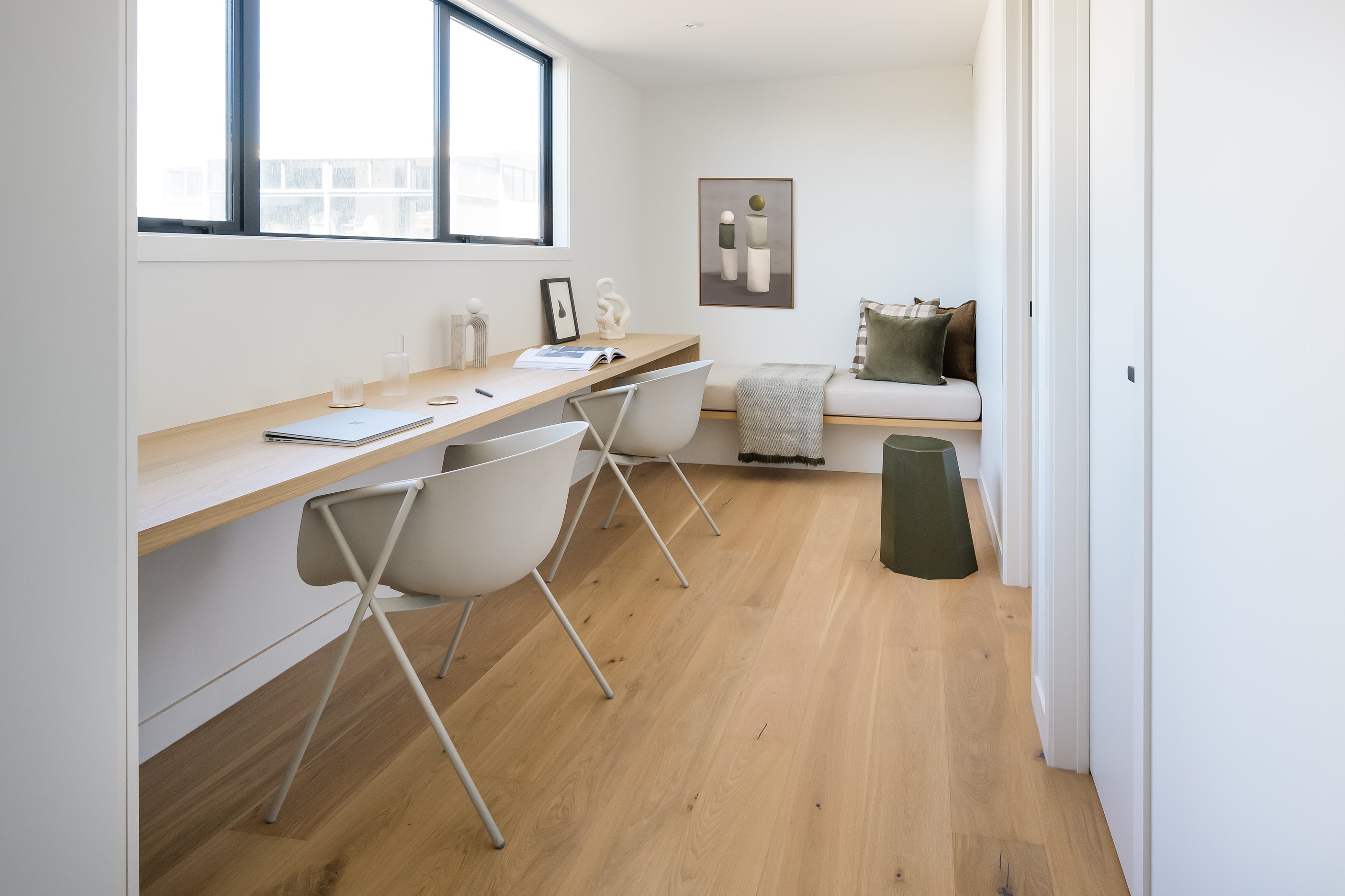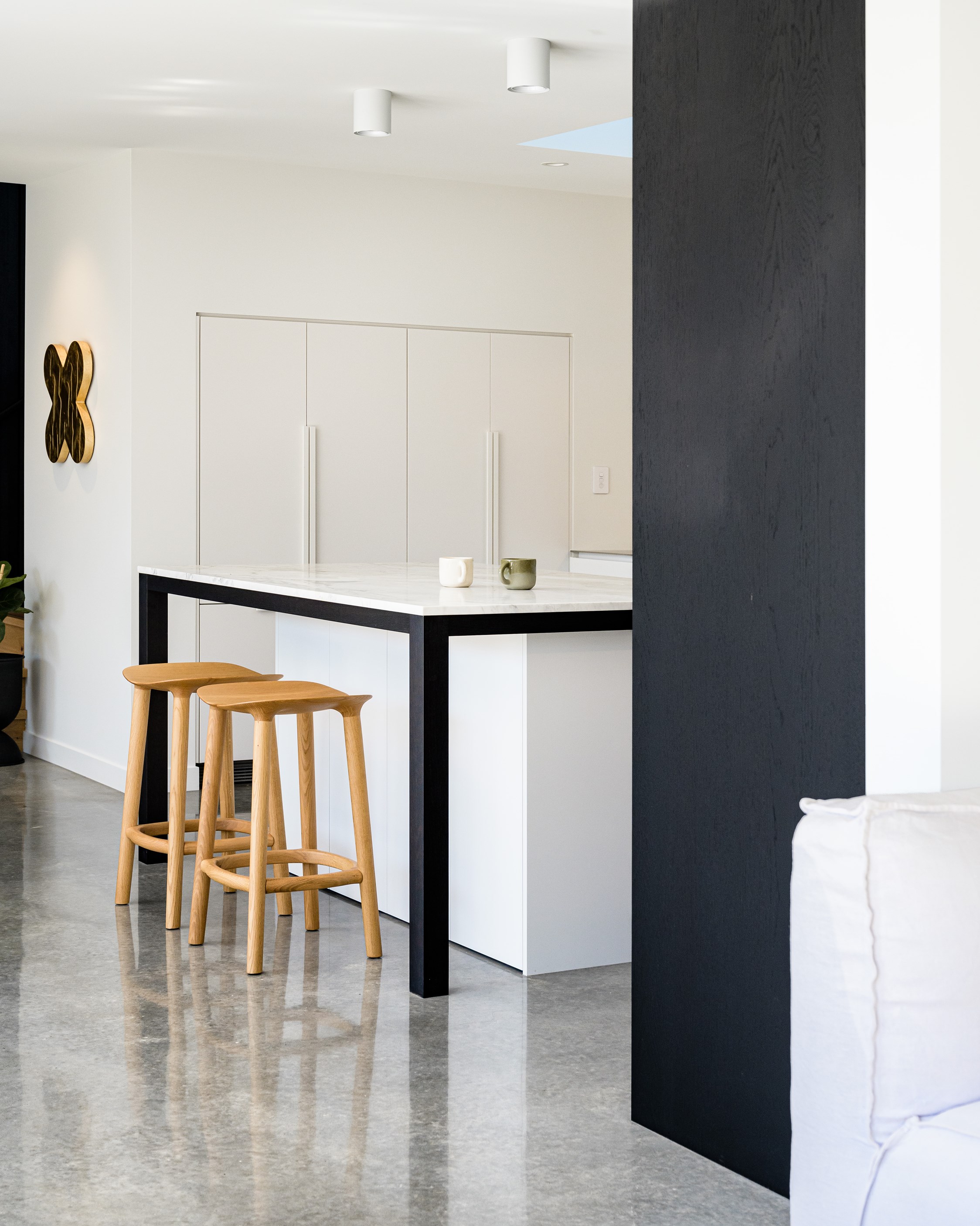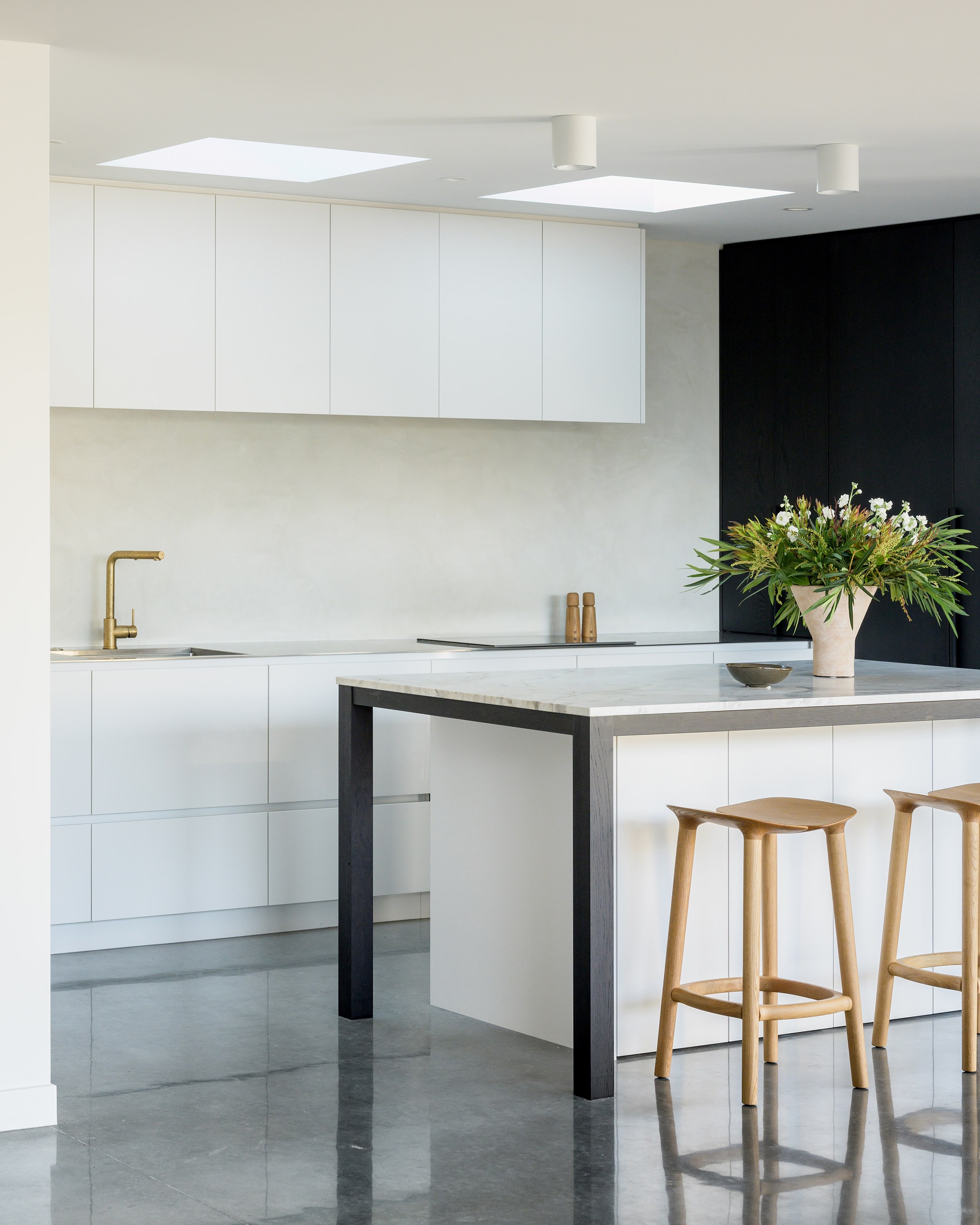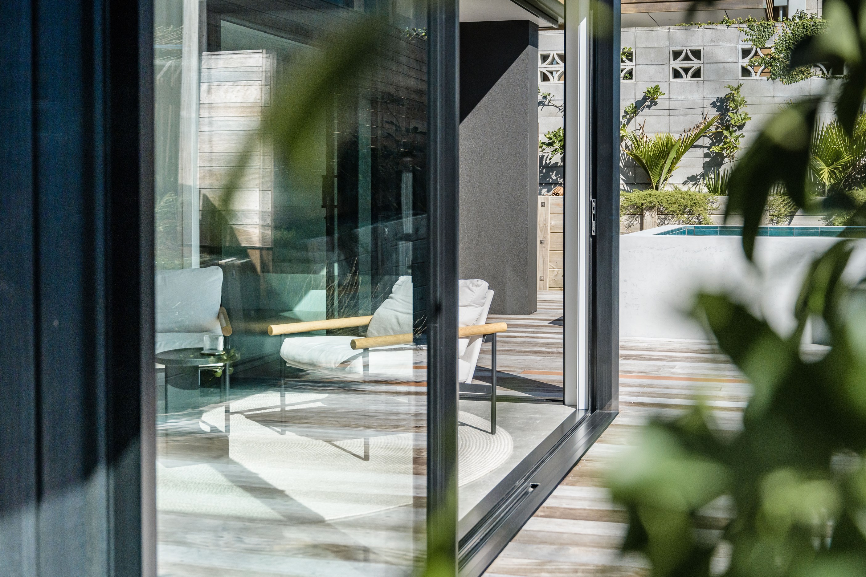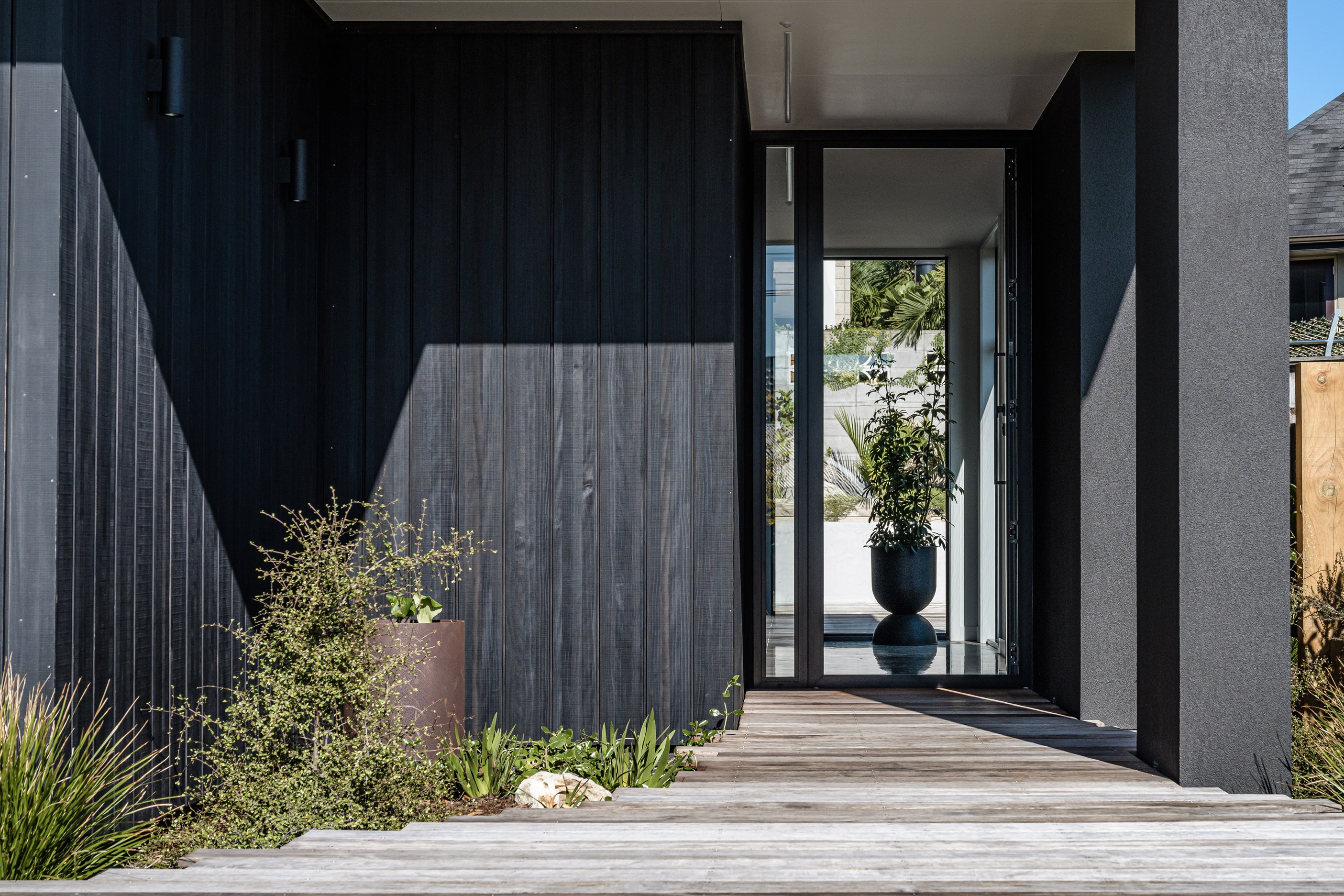 A small site needn’t be a barrier to big style and this beach beauty proves the point. The two-storey house sits on a section that’s just 322sqm, but has everything the owners need, plus luxury extras such as a plunge pool. It doesn’t hurt that the house, clad in vertical timber and plastered concrete panels, is just two blocks away from the white-sand beach and that the bedrooms enjoy glimpses of the region’s landmark peak, Mauao. The 208sqm design makes best use of the space available. Relaxed communal downstairs living dovetails with decking, and the plywood-lined double garage has plenty of room for storing surfboards, bikes and other toys. Polished concrete floors are practical and beachy. Upstairs are the bedrooms, with the main suite encompassing a tiled ensuite, dressing room and a private balcony. Off the hall are two more bedrooms, a bathroom and study. An important part of the brief was sustainability, as evidenced by waffle foundation, recycled plastic wall and ceiling insulation, and thermally modified cladding. Other features include solar power with battery storage, skylights for ventilation, a heat-pump hot-water cylinder and provision for an EV charger. With its big-picture design, this house on a compact site is set up for years to come.