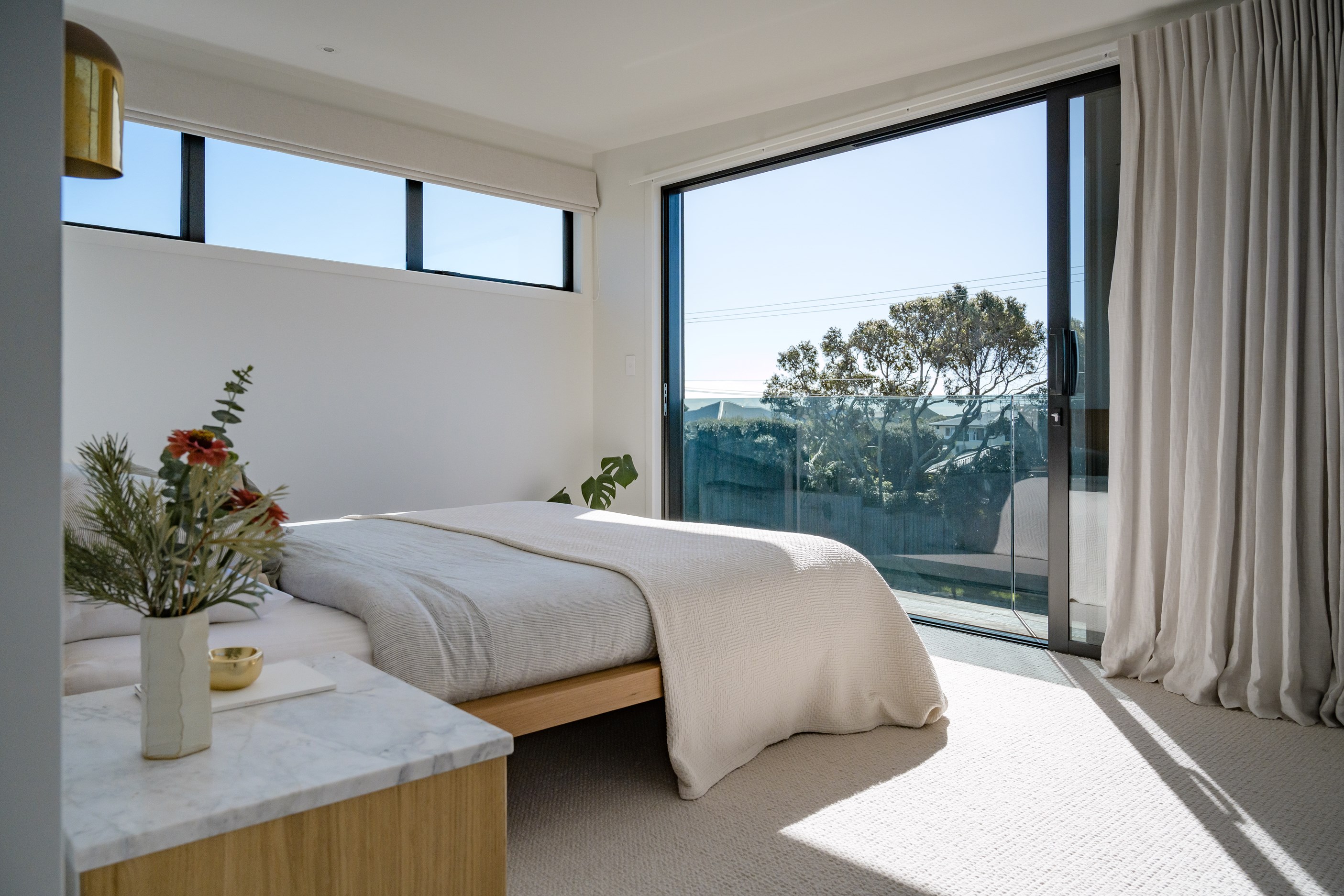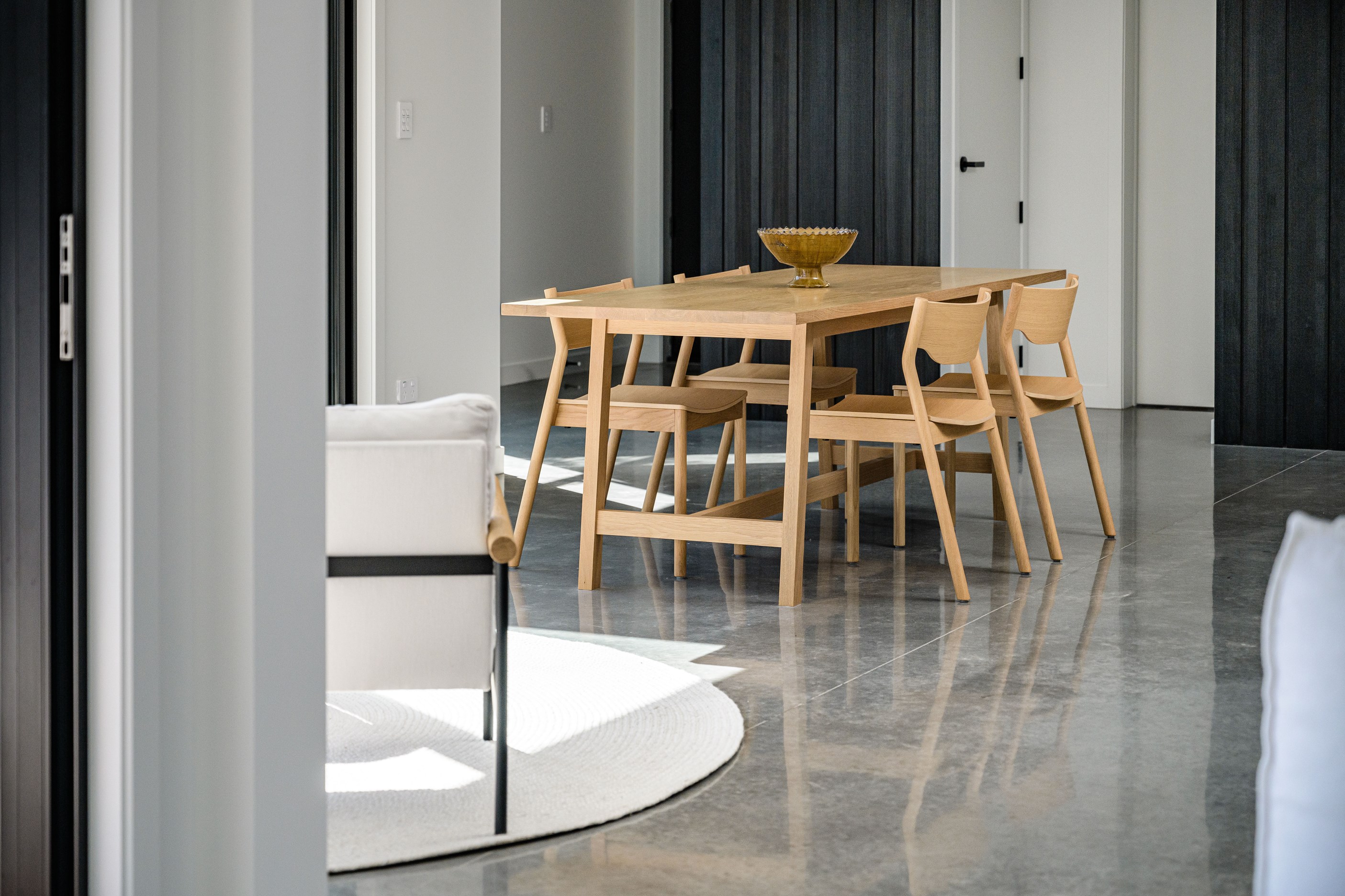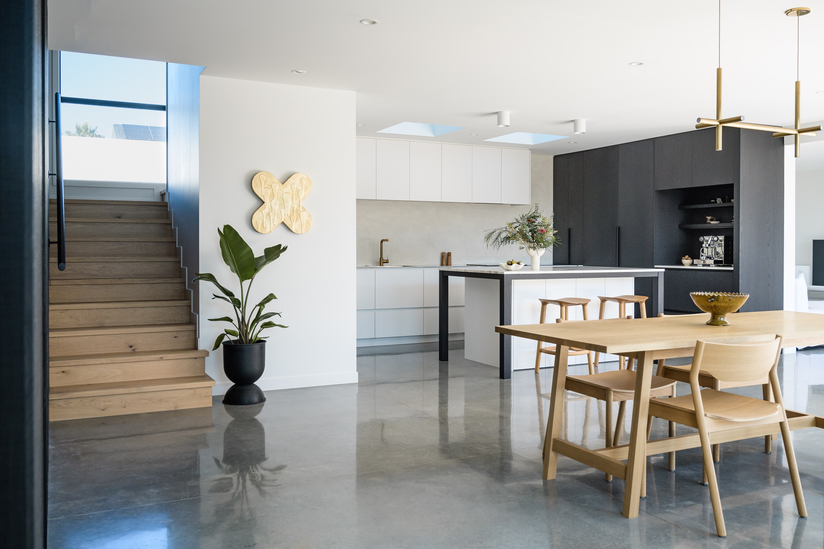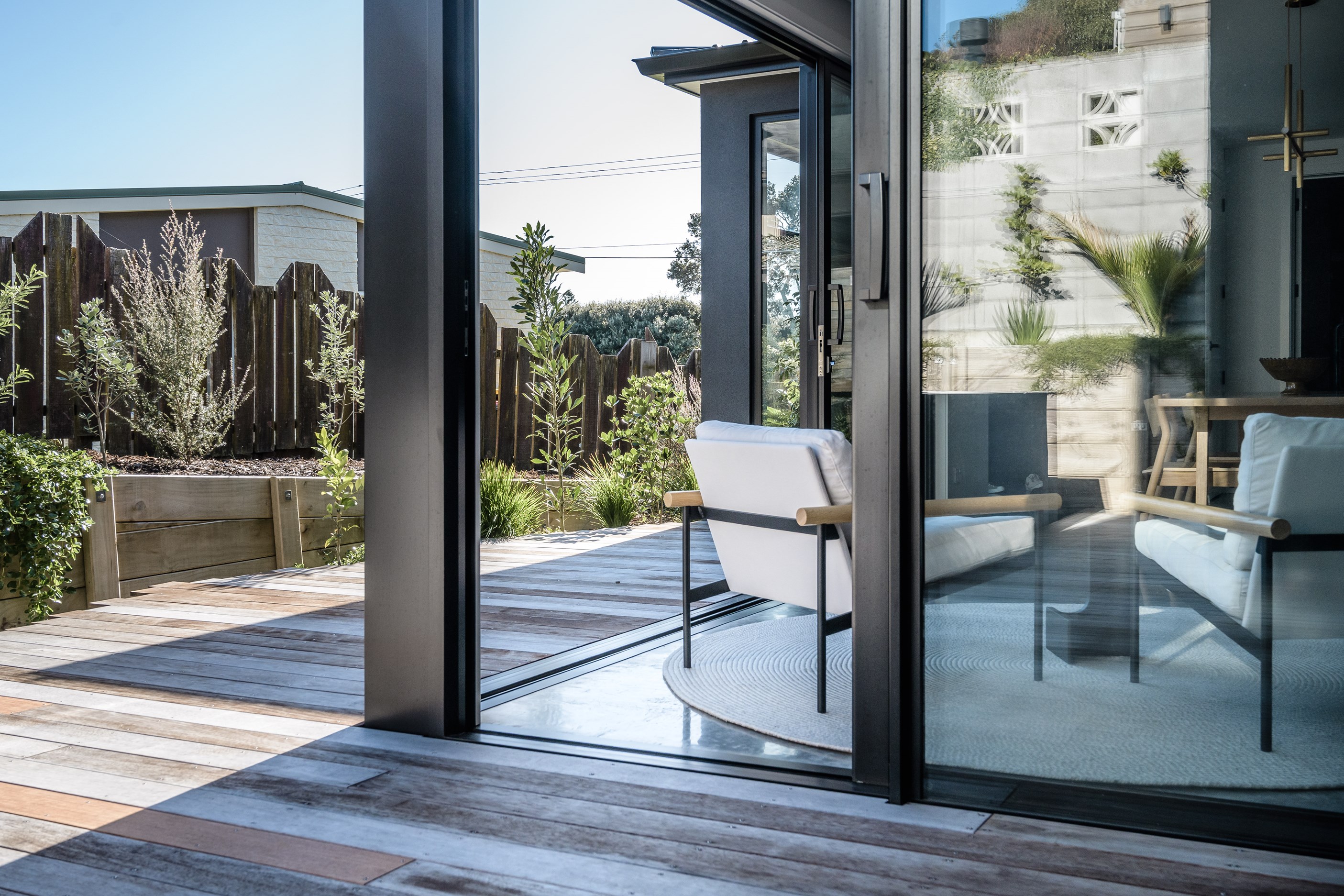 A small site needn’t be a barrier to big style and this beach beauty proves the point. The two-storey house sits on a section that’s just 322sqm, but has everything the owners need, plus luxury extras such as a plunge pool. It doesn’t hurt that the house, clad in vertical timber and plastered concrete panels, is just two blocks away from the white-sand beach and that the bedrooms enjoy glimpses of the region’s landmark peak, Mauao. The 208sqm design makes best use of the space available. Relaxed communal downstairs living dovetails with decking, and the plywood-lined double garage has plenty of room for storing surfboards, bikes and other toys. Polished concrete floors are practical and beachy. Upstairs are the bedrooms, with the main suite encompassing a tiled ensuite, dressing room and a private balcony. Off the hall are two more bedrooms, a bathroom and study. An important part of the brief was sustainability, as evidenced by waffle foundation, recycled plastic wall and ceiling insulation, and thermally modified cladding. Other features include solar power with battery storage, skylights for ventilation, a heat-pump hot-water cylinder and provision for an EV charger. With its big-picture design, this house on a compact site is set up for years to come.