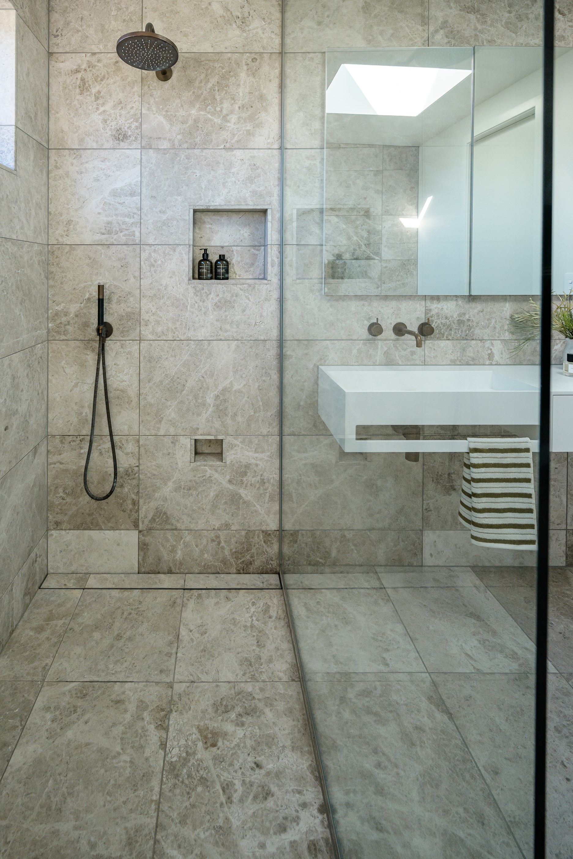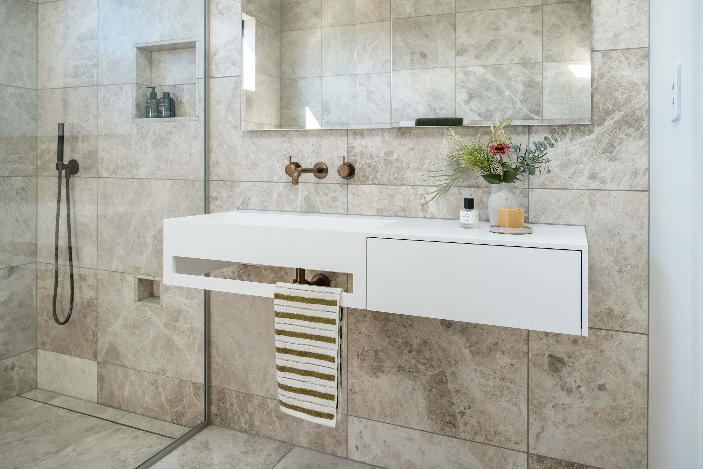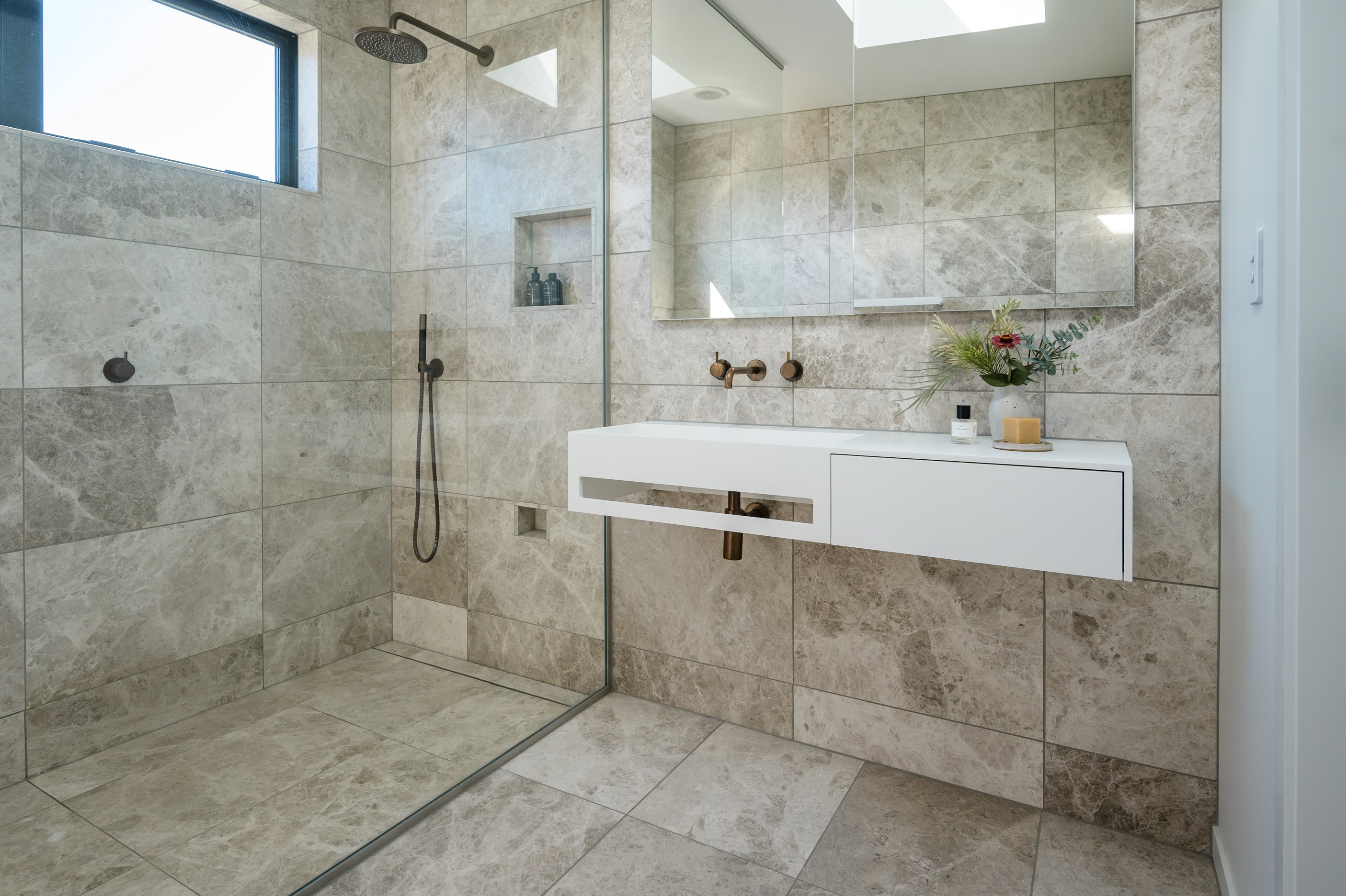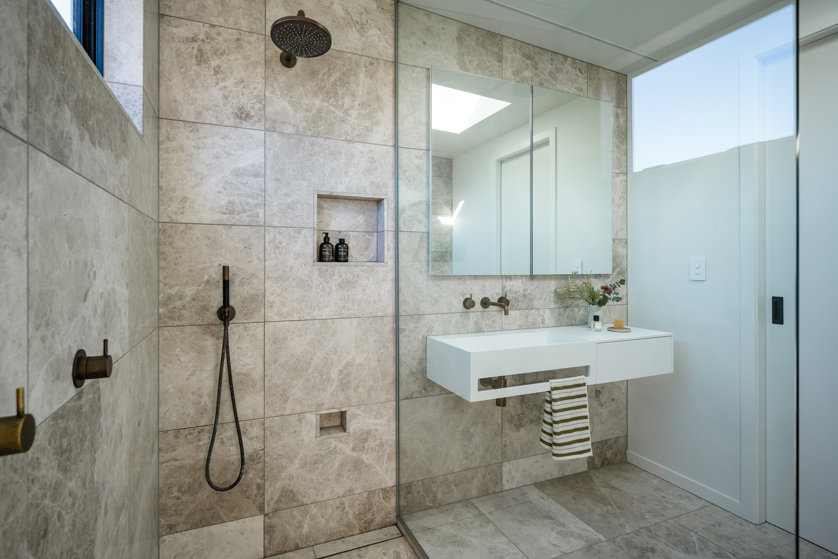 A small site needn’t be a barrier to big style and this beach beauty proves the point. The two-storey house sits on a section that’s just 322sqm, but has everything the owners need, plus luxury extras such as a plunge pool. It doesn’t hurt that the house, clad in vertical timber and plastered concrete panels, is just two blocks away from the white-sand beach and that the bedrooms enjoy glimpses of the region’s landmark peak, Mauao. The 208sqm design makes best use of the space available. Relaxed communal downstairs living dovetails with decking, and the plywood-lined double garage has plenty of room for storing surfboards, bikes and other toys. Polished concrete floors are practical and beachy. Upstairs are the bedrooms, with the main suite encompassing a tiled ensuite, dressing room and a private balcony. Off the hall are two more bedrooms, a bathroom and study. An important part of the brief was sustainability, as evidenced by waffle foundation, recycled plastic wall and ceiling insulation, and thermally modified cladding. Other features include solar power with battery storage, skylights for ventilation, a heat-pump hot-water cylinder and provision for an EV charger. With its big-picture design, this house on a compact site is set up for years to come.