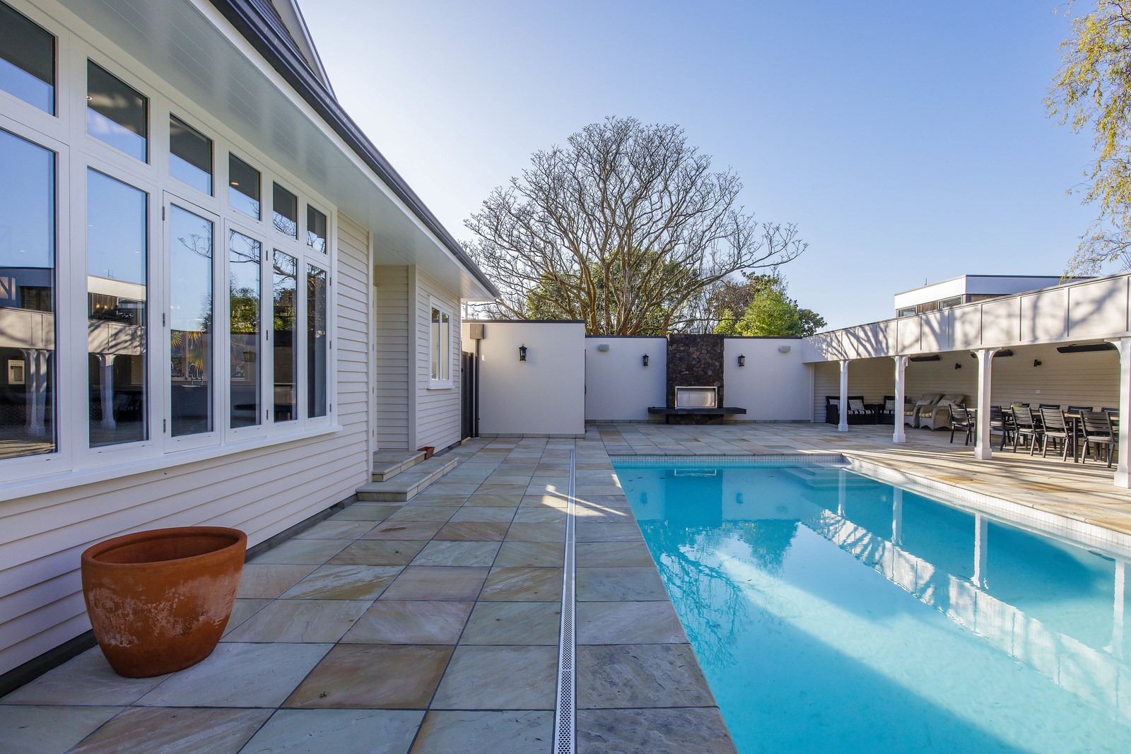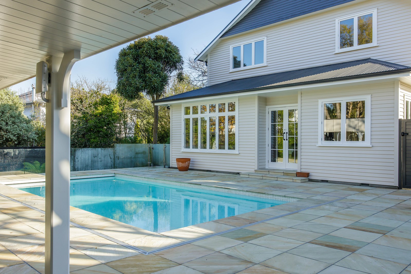 After being damaged in the Christchurch earthquakes, this grand and character-filled home has been rebuilt and revamped for modern living. It’s an impeccable renovation that introduces everything needed for 2020s-style living and entertaining, without diluting the heritage and heart of the five-bedroom house. In fact, it celebrates the historical elements, and its impossible to discern what’s original and what has been altered, introduced or removed. This seamlessness is evidence of a high degree of craftsmanship. The beauty of the weatherboard cladding and shingle gables have been retained and refreshed leaving the 357sqm beauty in tip-top condition and one of the stars of its established Christchurch neighbourhood. Inside, walls were reconfigured to enhance flow. And outside includes a solar-heated swimming pool, covered dining area, bathroom and entertaining area — there’s no better place to host summer soirées. The three glamorous bathrooms are fully tiled and the five bedrooms include a retreat with ensuite and walk-in robe. A natural palette creates an air of understated elegance and tasteful fixtures reinforce the high calibre of the renovation.