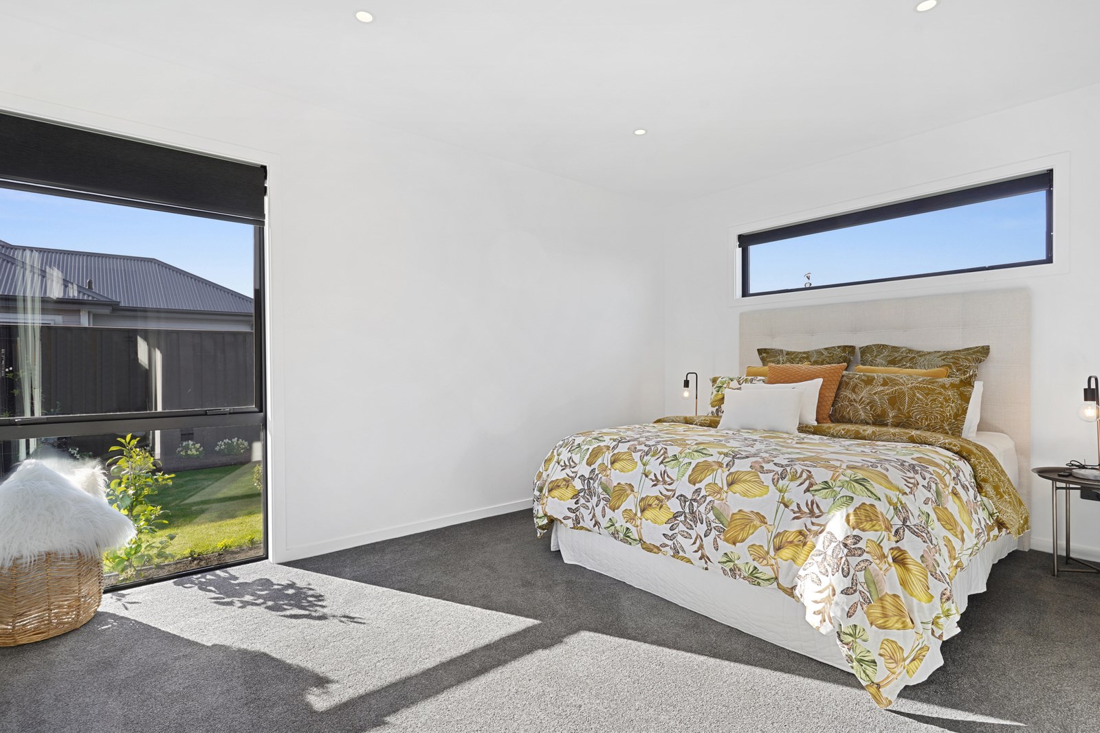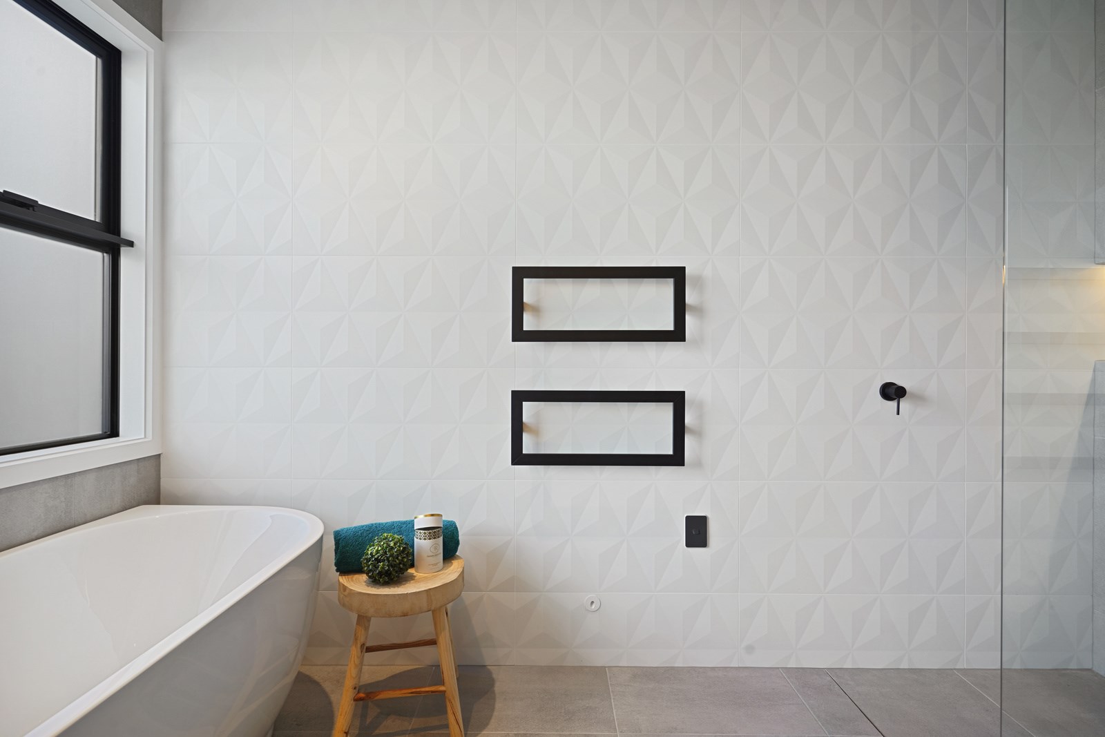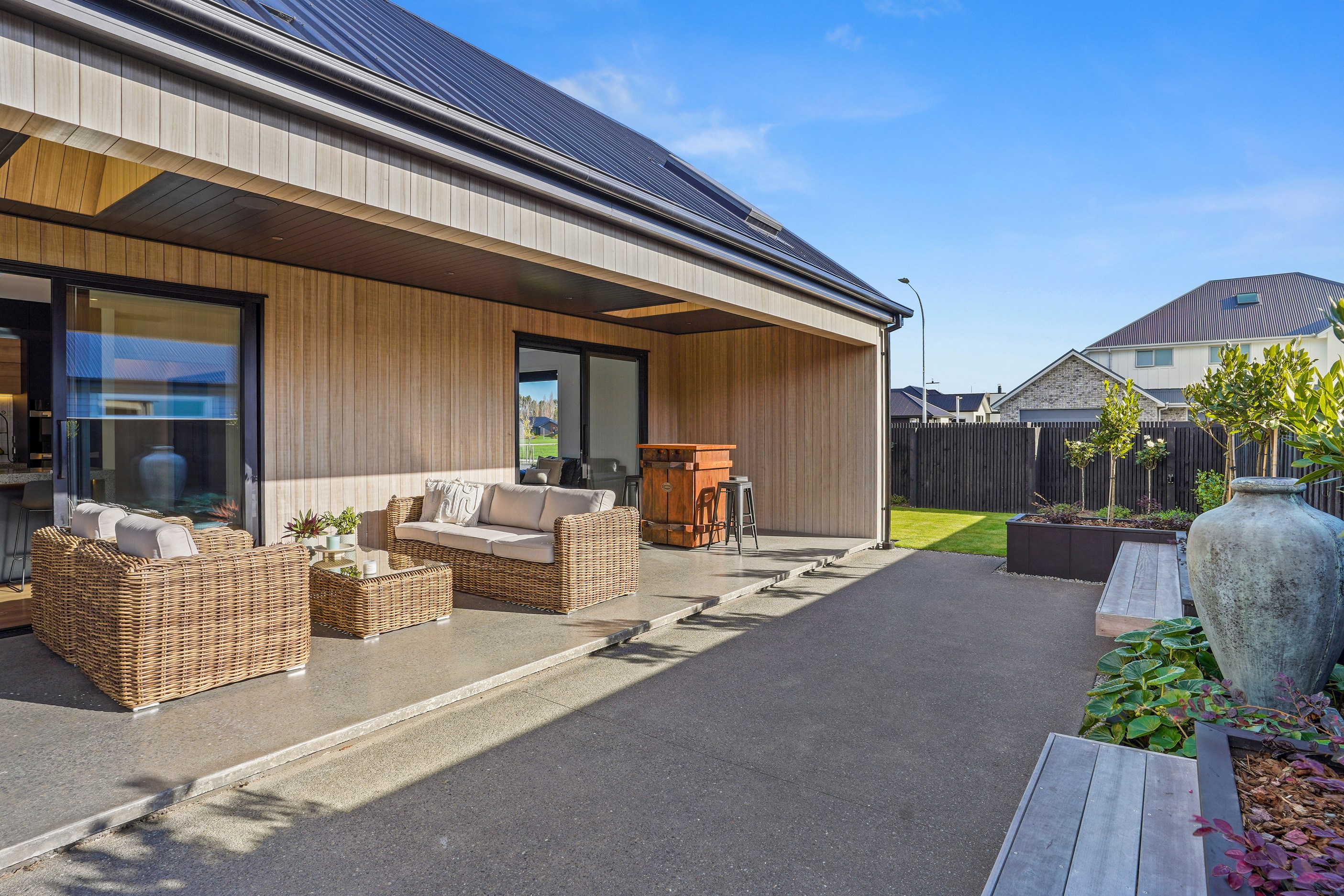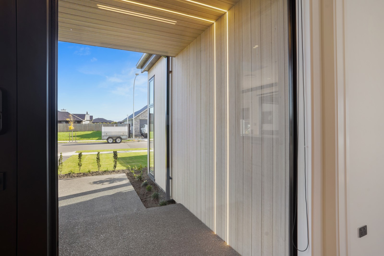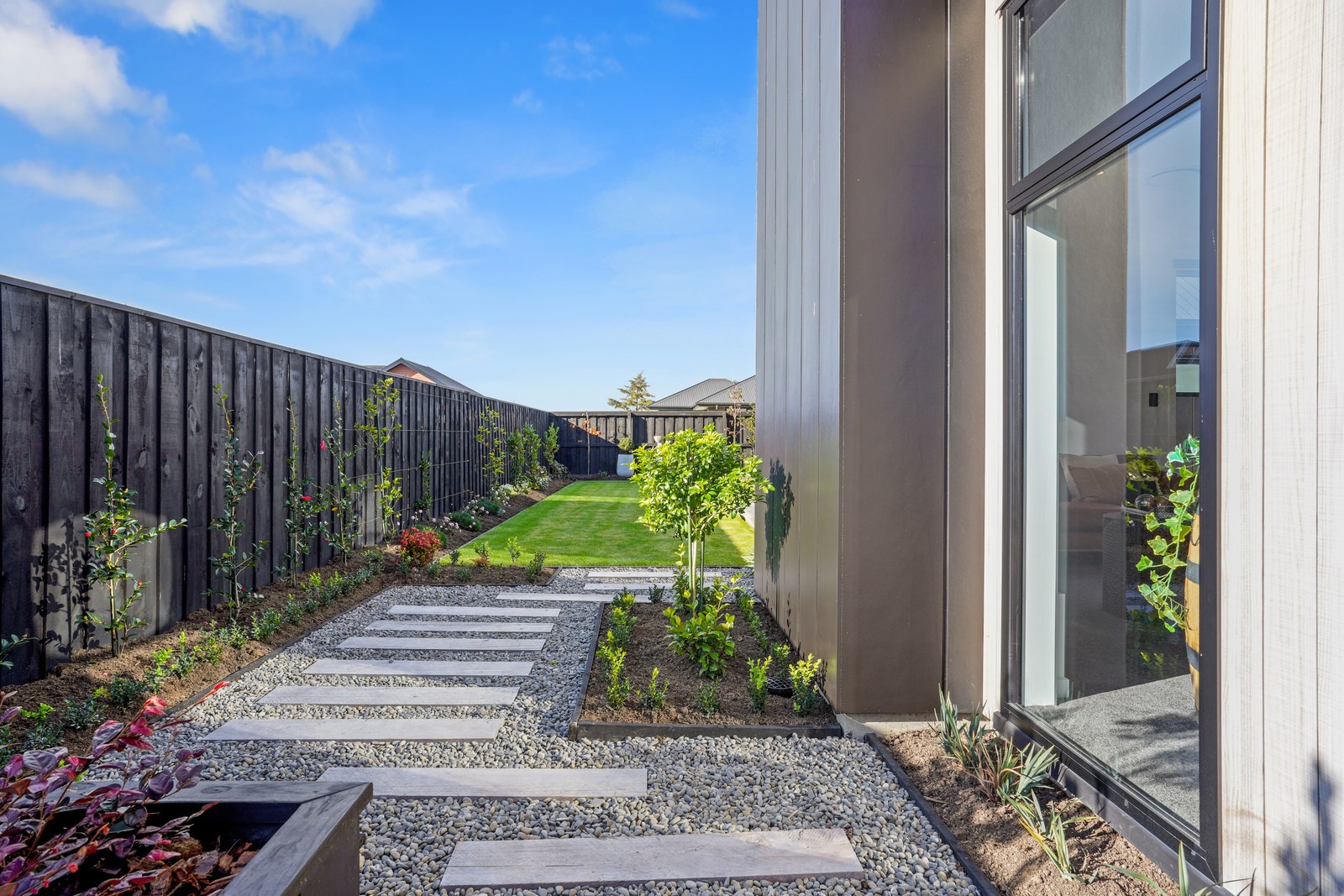 The contrast and symmetry on the exterior of this 292sqm pavilion-style home indicate that something special is in store. With shades of dark and light cladding, side-by-side gables and stylishly lit central entranceway, it’s sleek and unique. Light and space were clearly top of mind in this three-bedroom, two-bathroom home, featuring overheight ceilings, generous windows and skylights used to their best advantage. The living area is all about home comforts with poured and placed polished concrete benches, a long galley pantry and a built-in beverage centre — cheers to that! A large barn slider leads to a separate lounge providing private space, if needed. A gas fire, two ducted heat pumps and under-tile heating keep the entire area warm and cosy on cold winter nights. All the details have been thought through. The bathrooms are well appointed with smart tiles and recessed shelves, and an extra-large garage with attic storage will help keep this home clean and clear. Three sets of sliding doors open onto the covered 27sqm outdoor room ideal for watching the kids or unwinding with a refreshment.