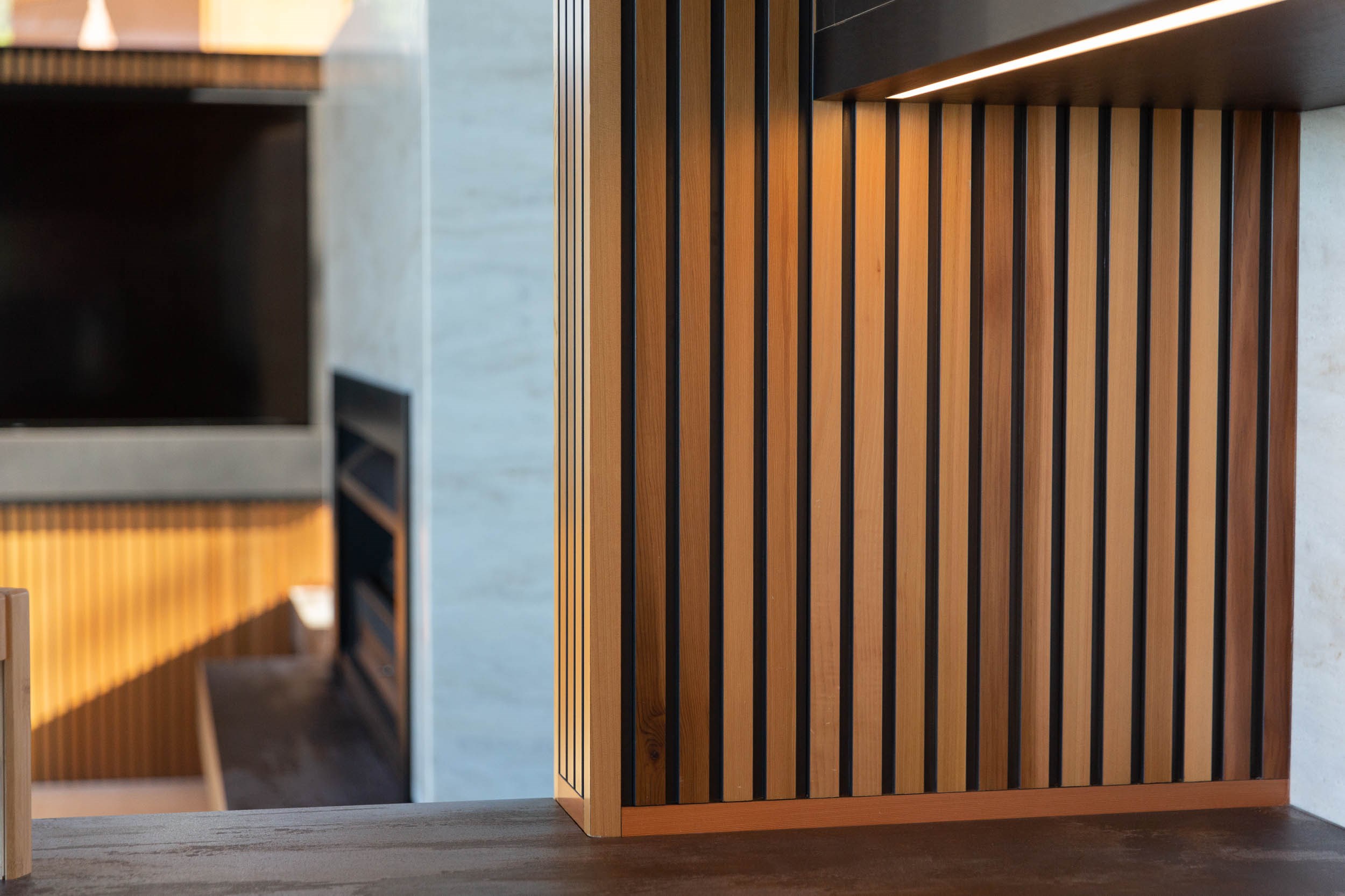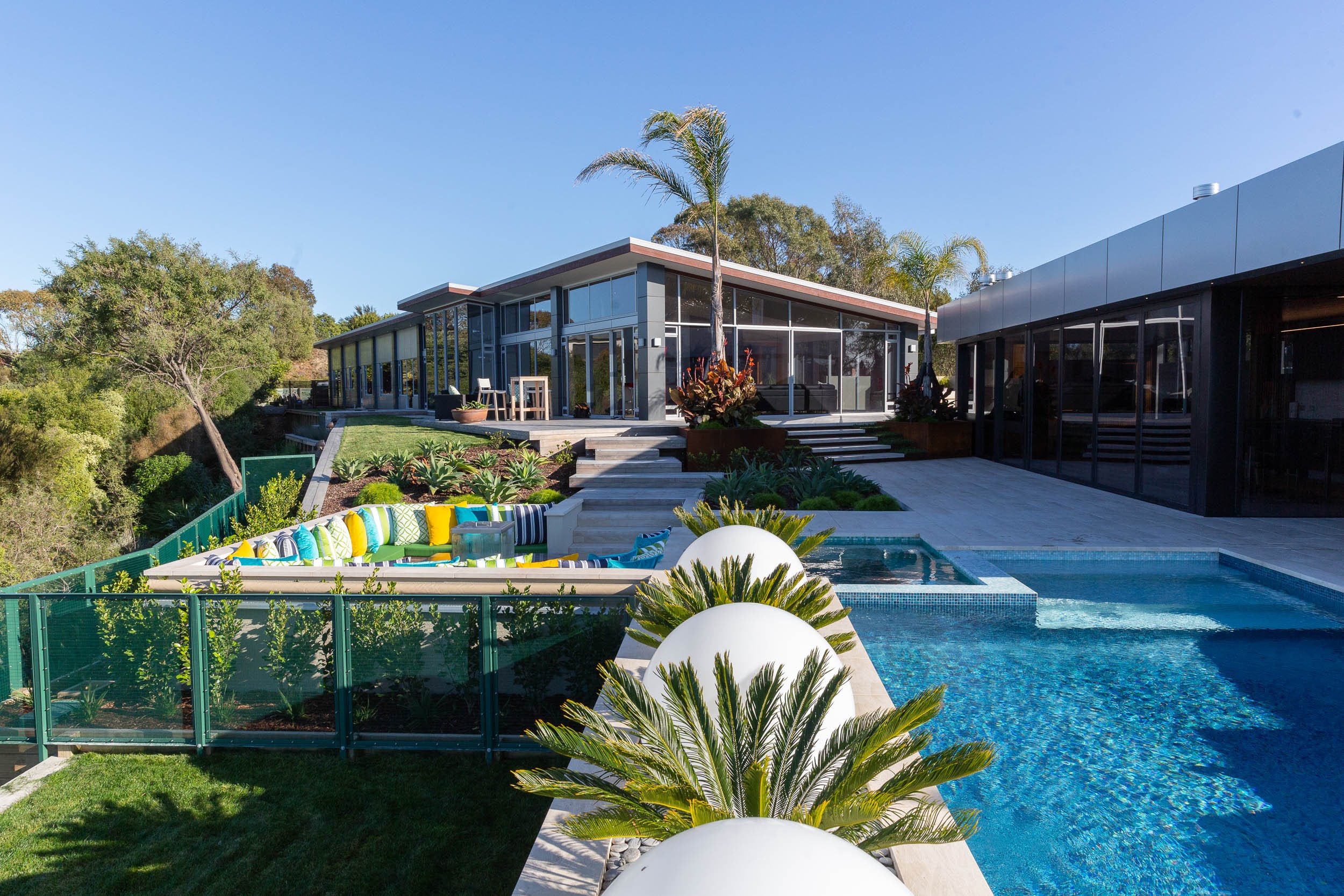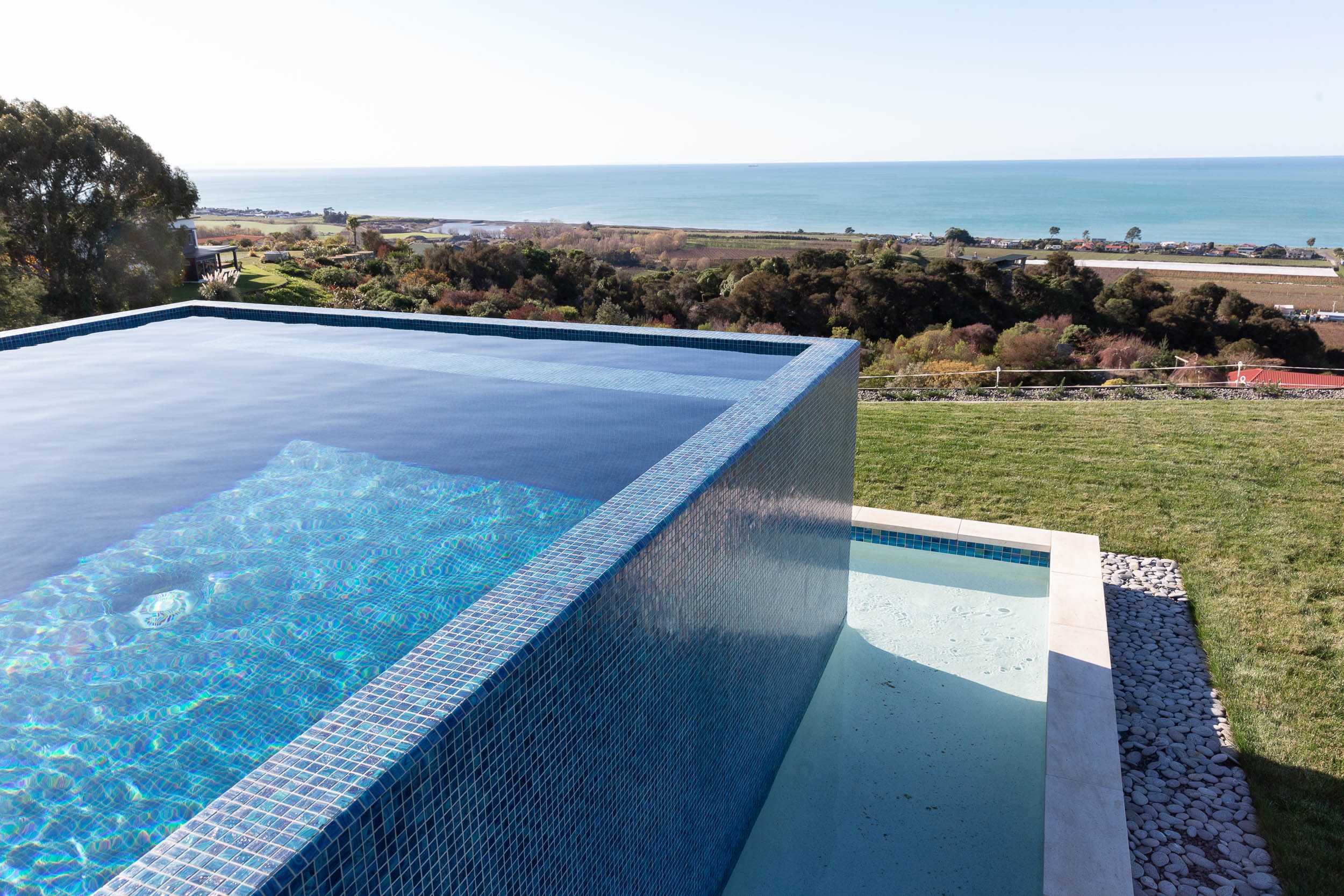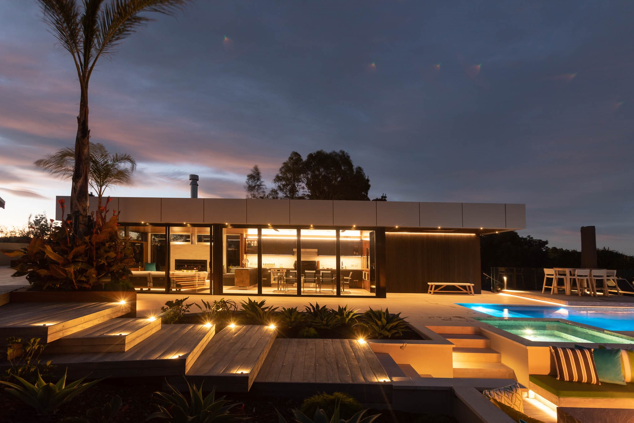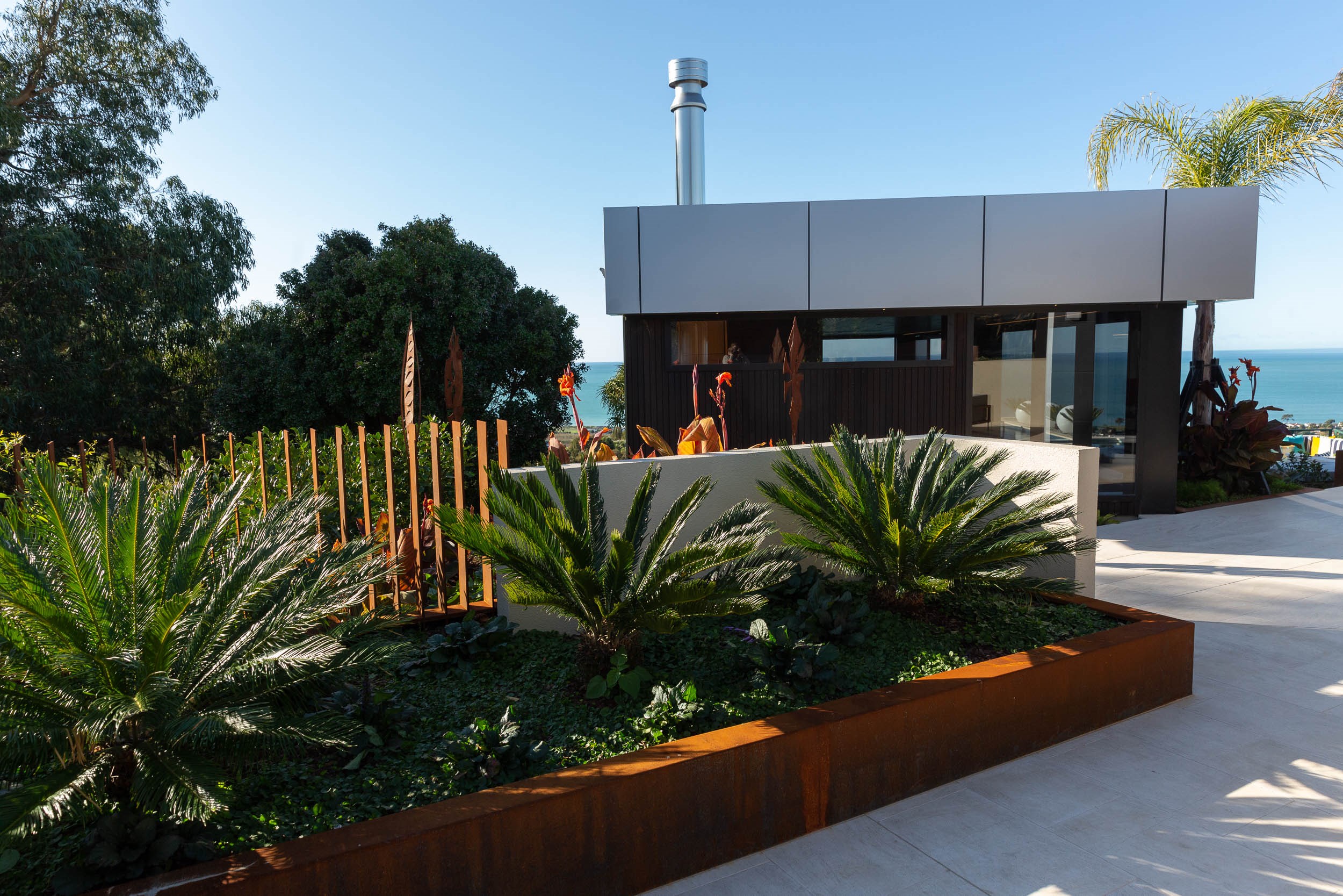 Now here’s a renovation with true star power. This contemporary Hawke’s Bay home received a moviestar-worthy upgrade with a new cabana area that capitalises on the hillside setting and Pacific Ocean views. An expansive multi-level outdoor area required significant earthworks to accommodate an infinity pool, spa, courtyard and conversation pit with a dazzling glass-encased fire. There’s also a second alfresco seating area in front of an Escea fireplace. The 70sqm cedar and aluminium-clad pool pavilion offers more luxury and examples of exemplary craftsmanship. Inside, the tongue-and-groove cedar walls in the living areas along with a negative-detailed ceiling and hidden bathroom wall showcase the skills of the building and design teams. Infrared heaters are recessed into the ceiling and LED lights makes the timber shine. In the kitchen, the refrigerator and wine chiller are tucked away behind more of that beautiful cedar. There’s all the mod cons, including an indoor barbecue. The adjoining living room comes equipped with a recessed television and a statement gas fire for chilly nights. Steel pivoted, double-glazed glass doors grant unfettered access to the pool and those incredible views.