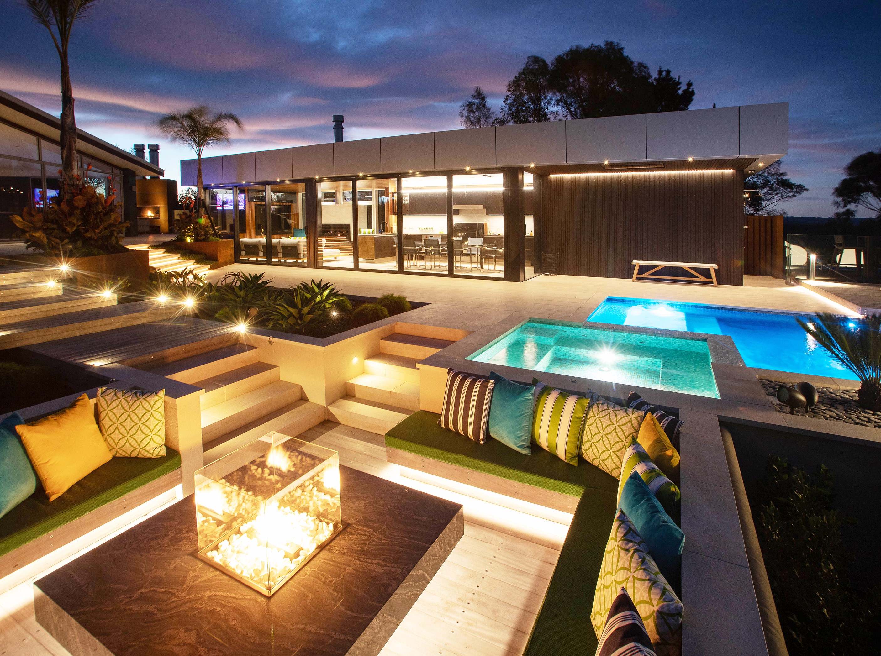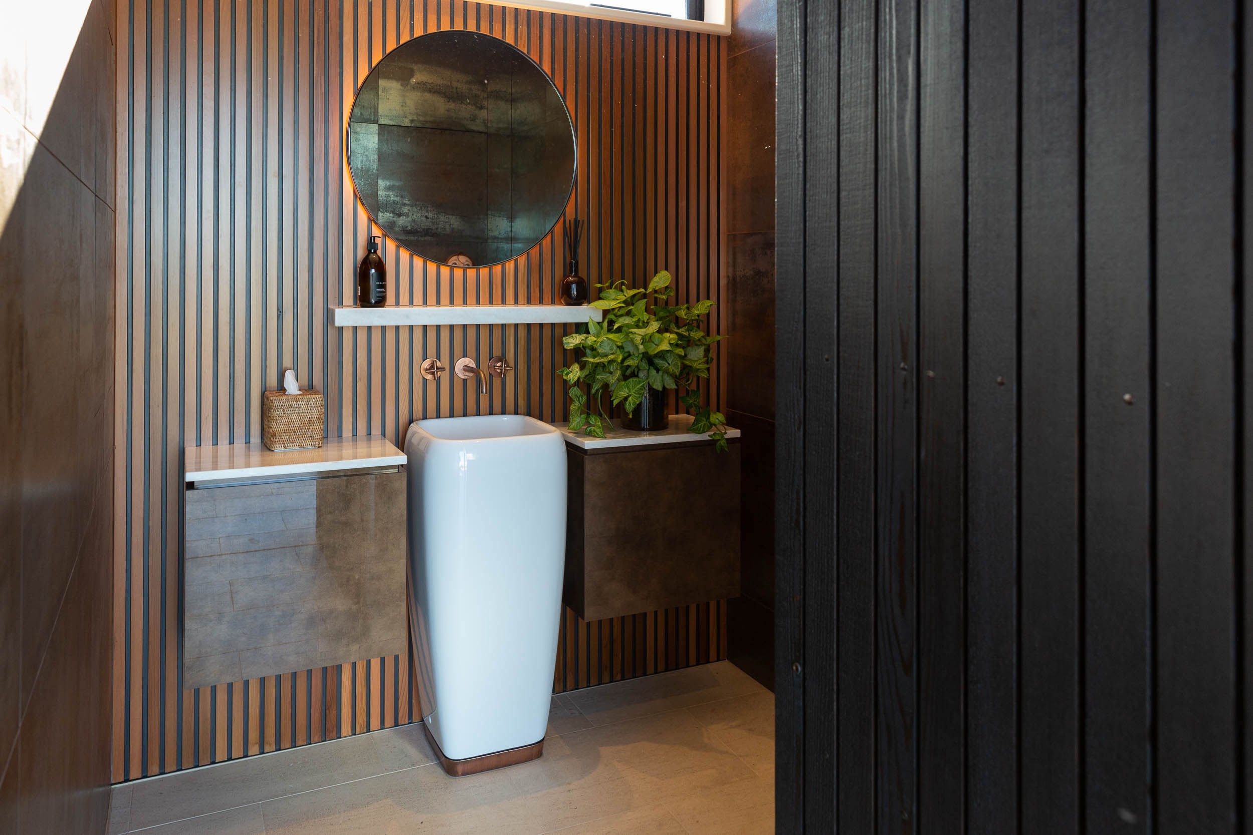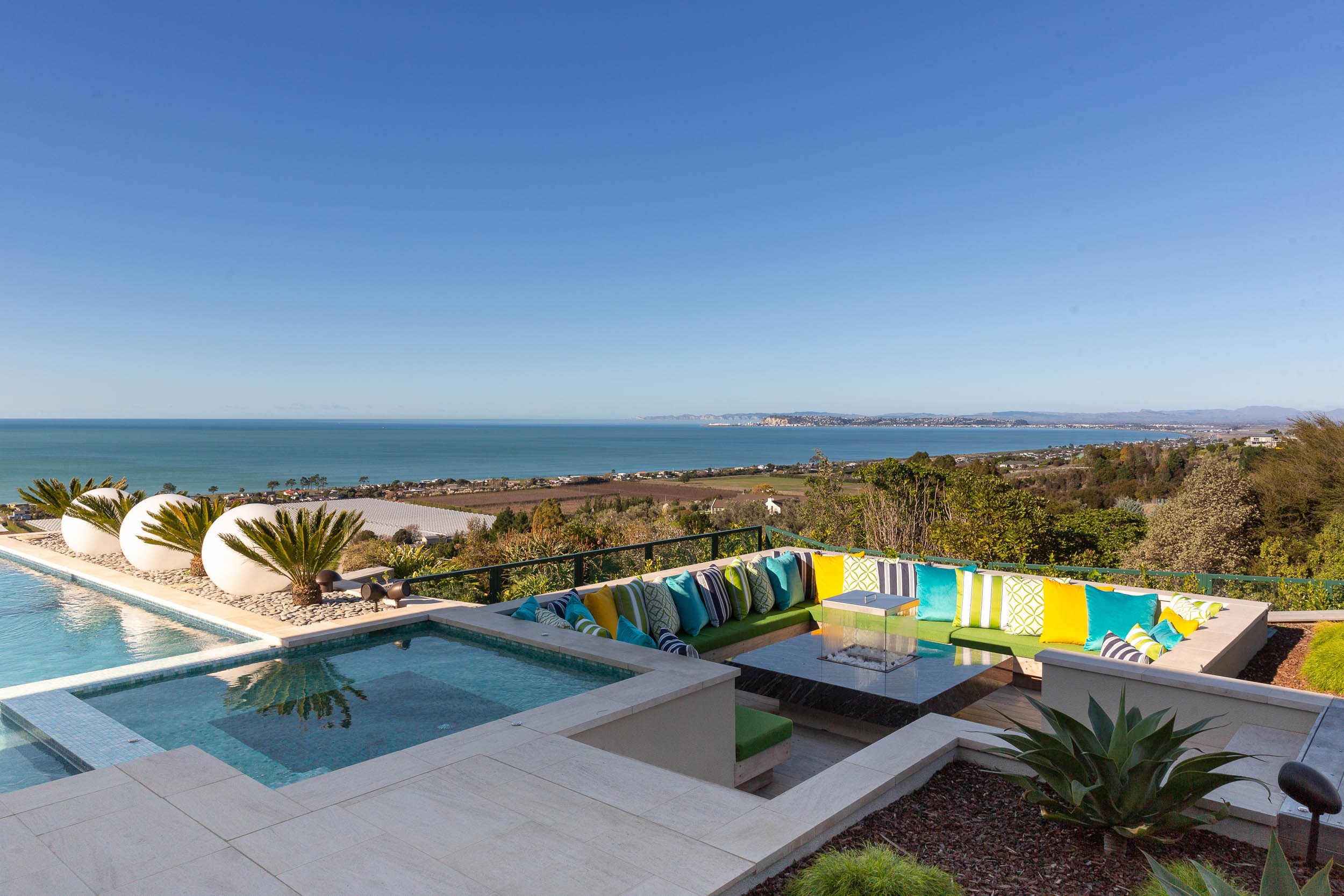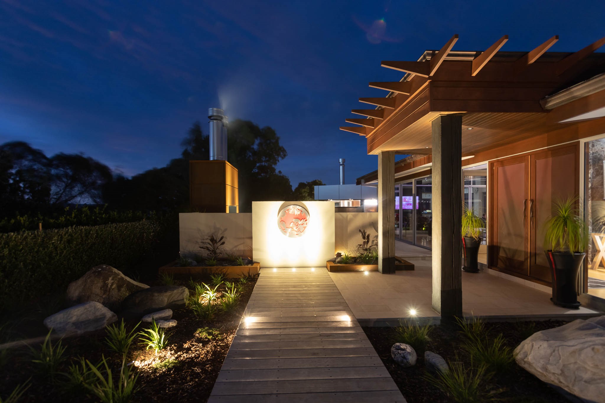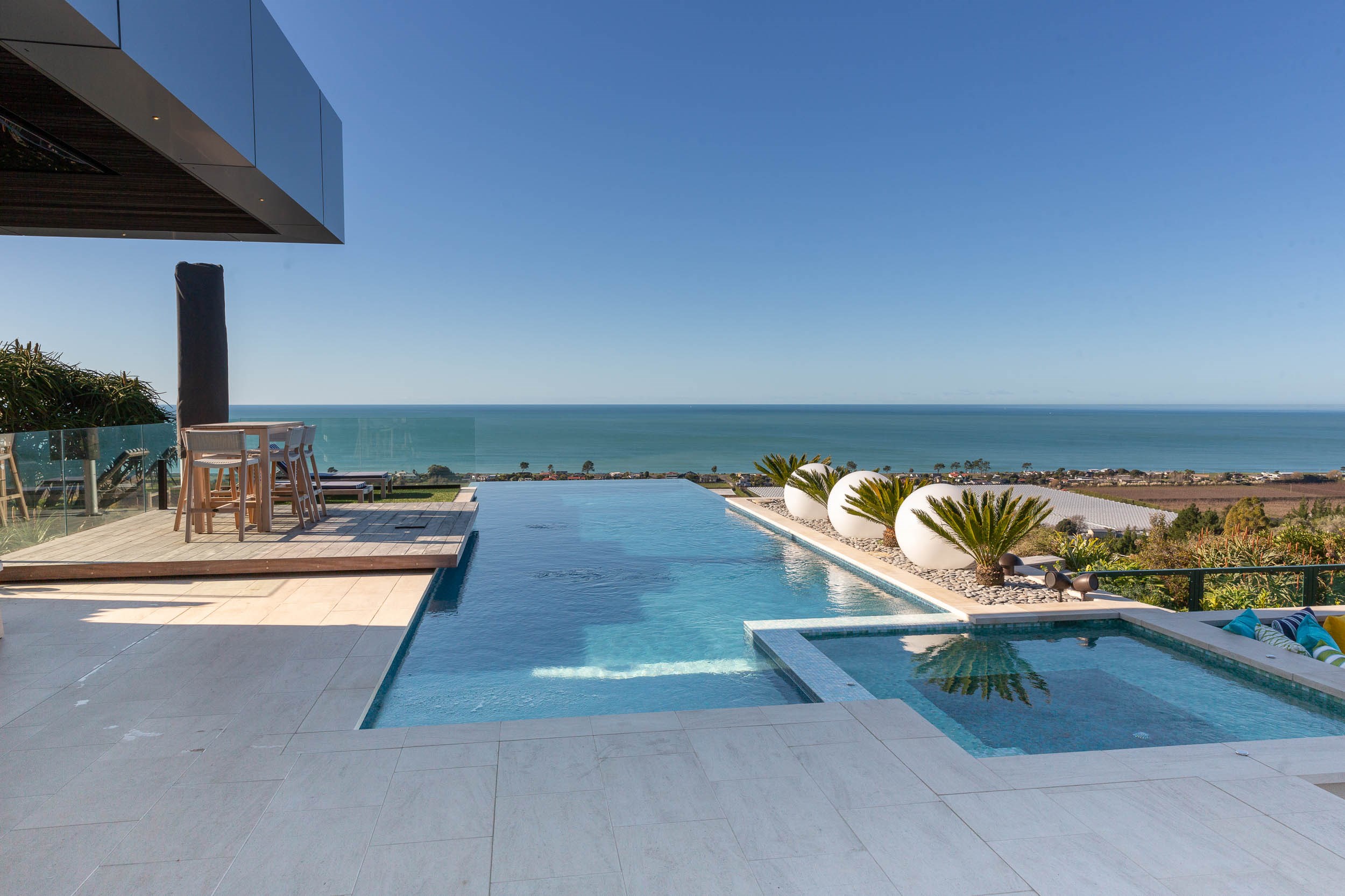 Now here’s a renovation with true star power. This contemporary Hawke’s Bay home received a moviestar-worthy upgrade with a new cabana area that capitalises on the hillside setting and Pacific Ocean views. An expansive multi-level outdoor area required significant earthworks to accommodate an infinity pool, spa, courtyard and conversation pit with a dazzling glass-encased fire. There’s also a second alfresco seating area in front of an Escea fireplace. The 70sqm cedar and aluminium-clad pool pavilion offers more luxury and examples of exemplary craftsmanship. Inside, the tongue-and-groove cedar walls in the living areas along with a negative-detailed ceiling and hidden bathroom wall showcase the skills of the building and design teams. Infrared heaters are recessed into the ceiling and LED lights makes the timber shine. In the kitchen, the refrigerator and wine chiller are tucked away behind more of that beautiful cedar. There’s all the mod cons, including an indoor barbecue. The adjoining living room comes equipped with a recessed television and a statement gas fire for chilly nights. Steel pivoted, double-glazed glass doors grant unfettered access to the pool and those incredible views.