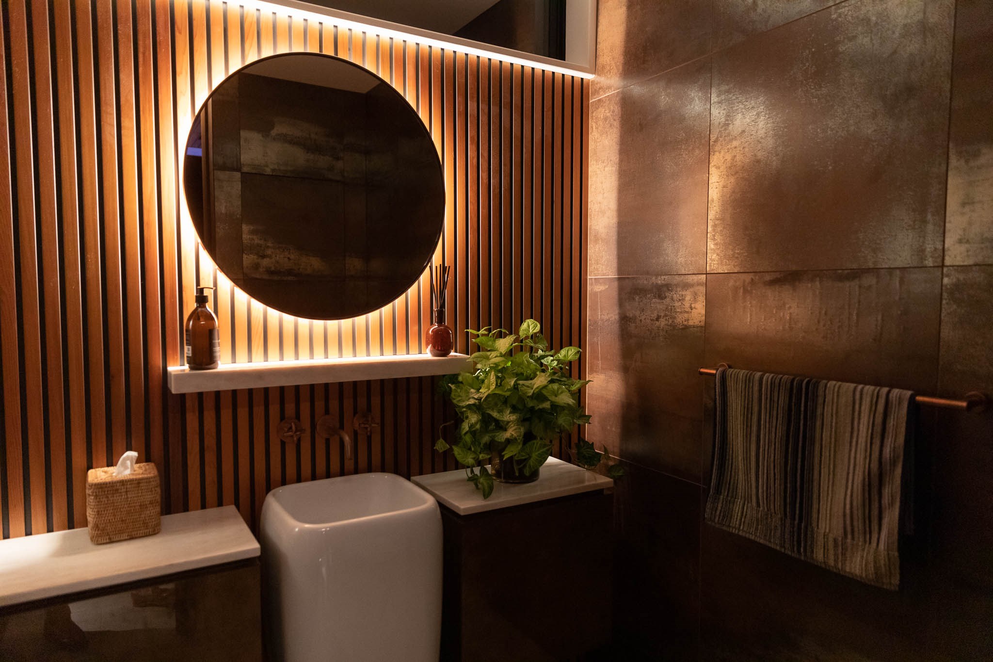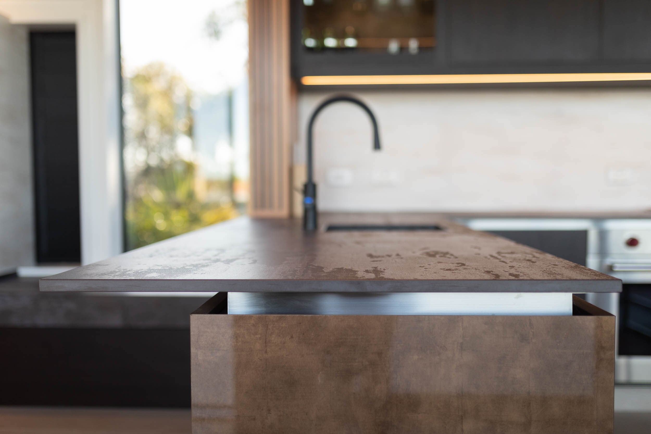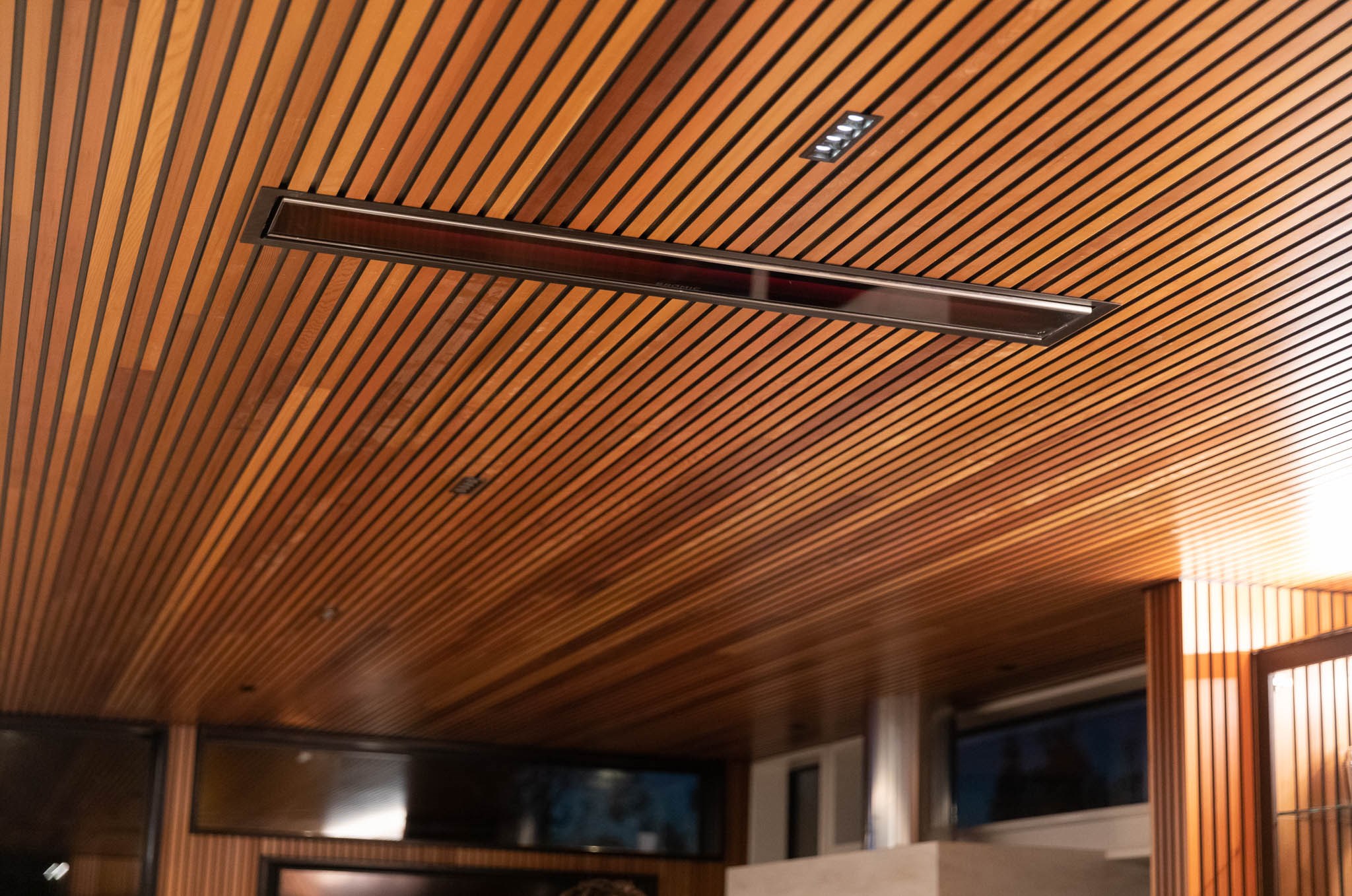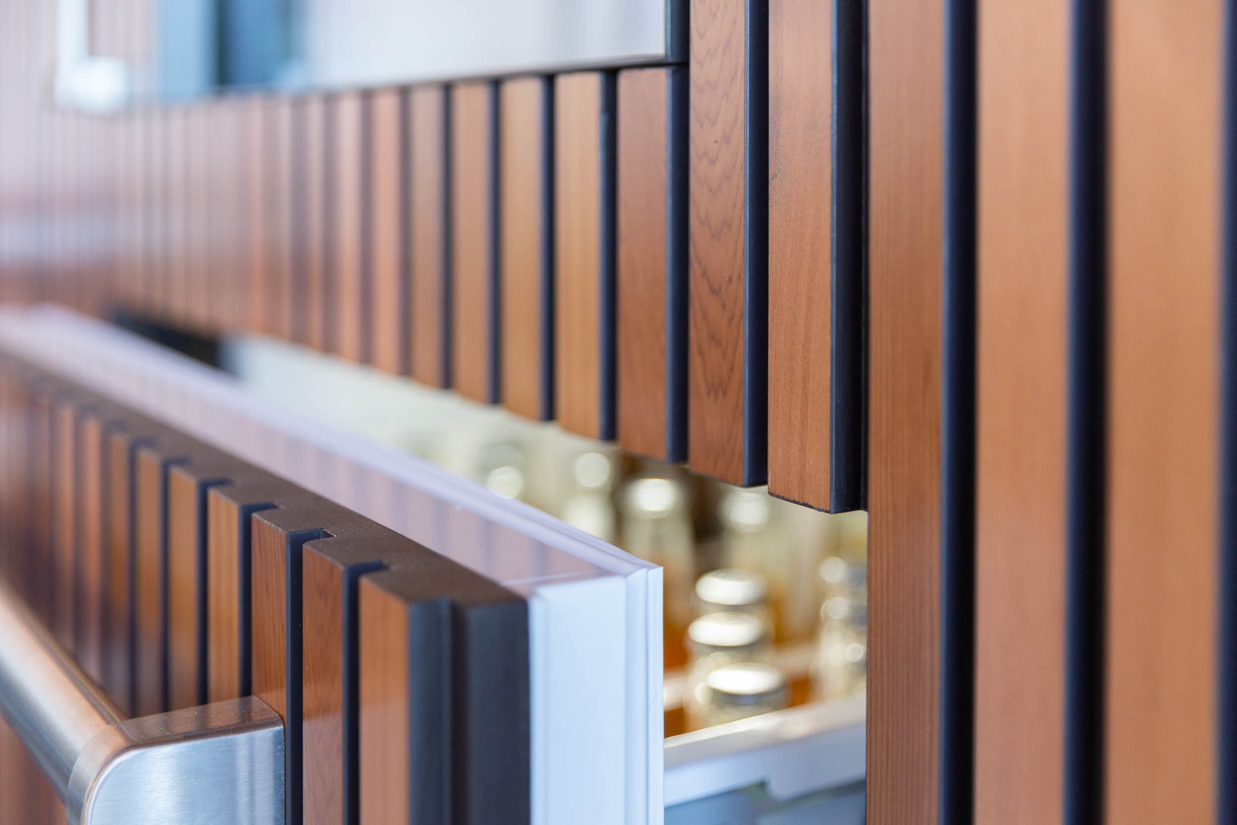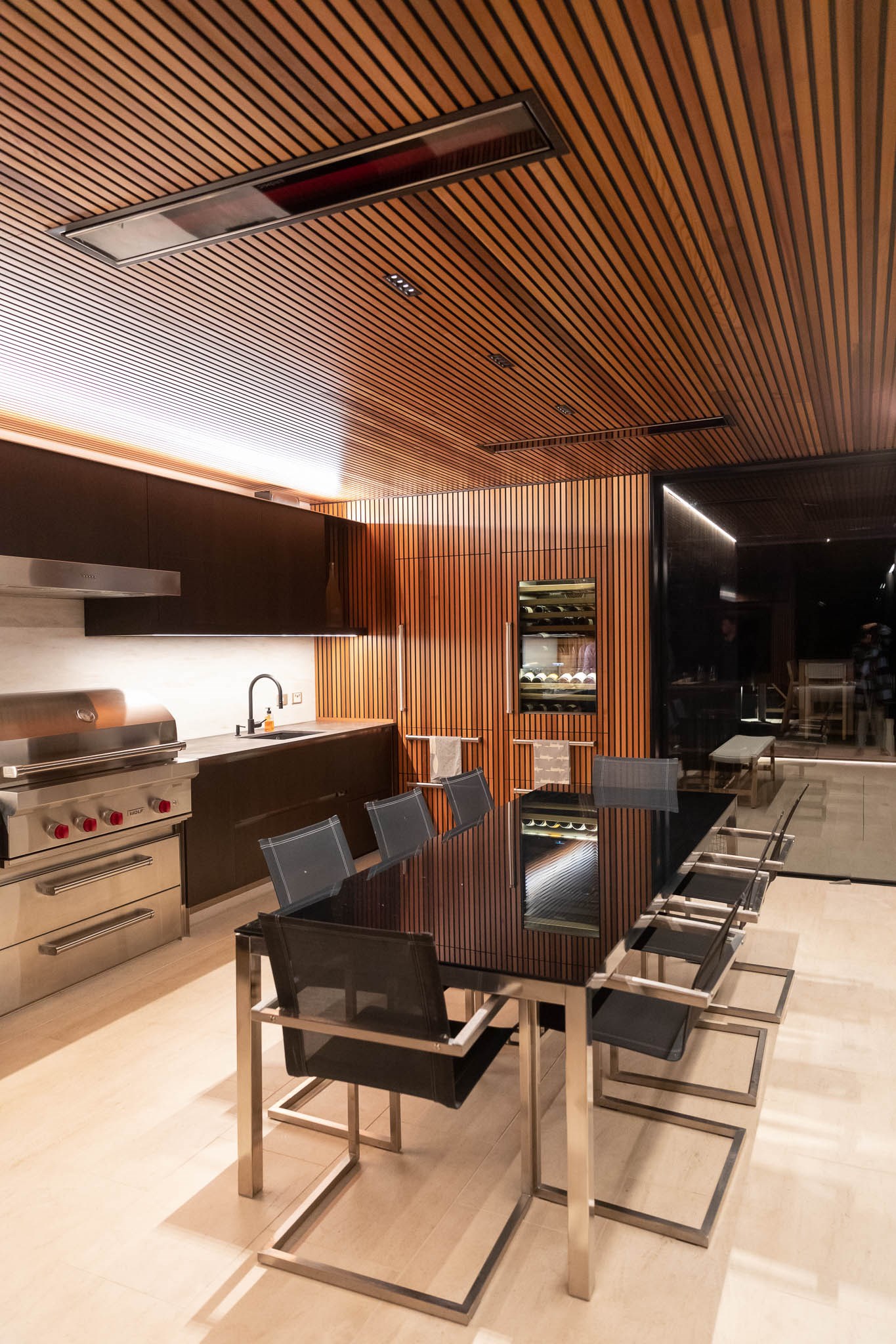 Now here’s a renovation with true star power. This contemporary Hawke’s Bay home received a moviestar-worthy upgrade with a new cabana area that capitalises on the hillside setting and Pacific Ocean views. An expansive multi-level outdoor area required significant earthworks to accommodate an infinity pool, spa, courtyard and conversation pit with a dazzling glass-encased fire. There’s also a second alfresco seating area in front of an Escea fireplace. The 70sqm cedar and aluminium-clad pool pavilion offers more luxury and examples of exemplary craftsmanship. Inside, the tongue-and-groove cedar walls in the living areas along with a negative-detailed ceiling and hidden bathroom wall showcase the skills of the building and design teams. Infrared heaters are recessed into the ceiling and LED lights makes the timber shine. In the kitchen, the refrigerator and wine chiller are tucked away behind more of that beautiful cedar. There’s all the mod cons, including an indoor barbecue. The adjoining living room comes equipped with a recessed television and a statement gas fire for chilly nights. Steel pivoted, double-glazed glass doors grant unfettered access to the pool and those incredible views.