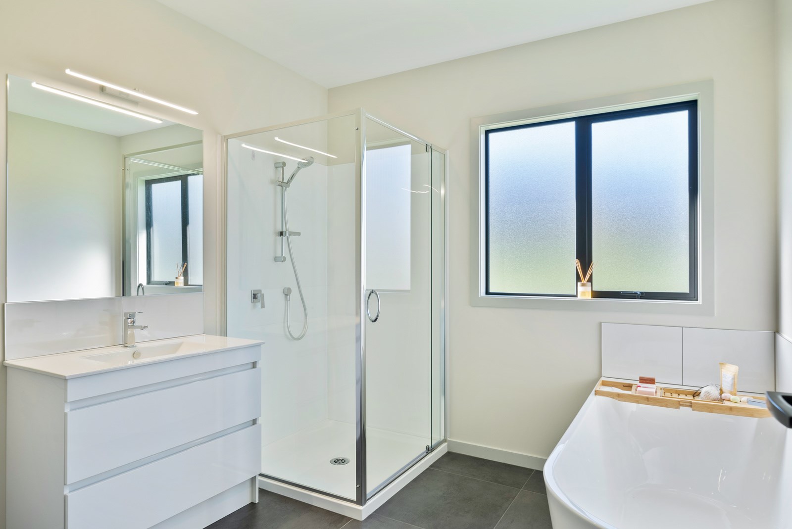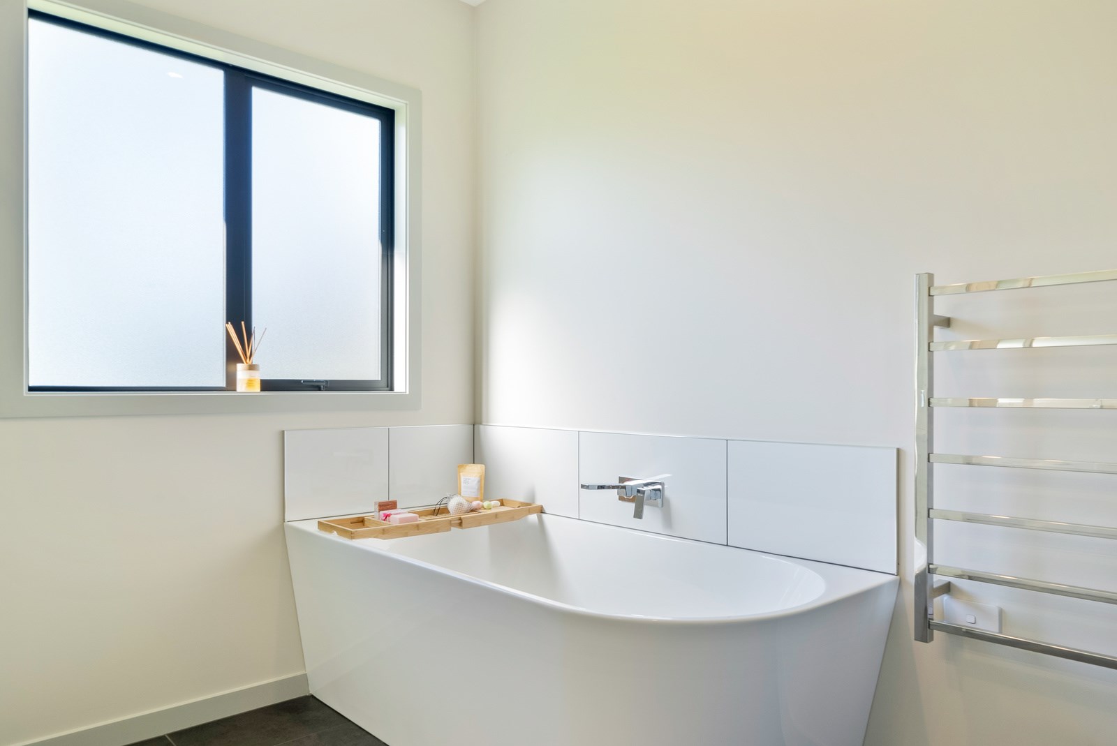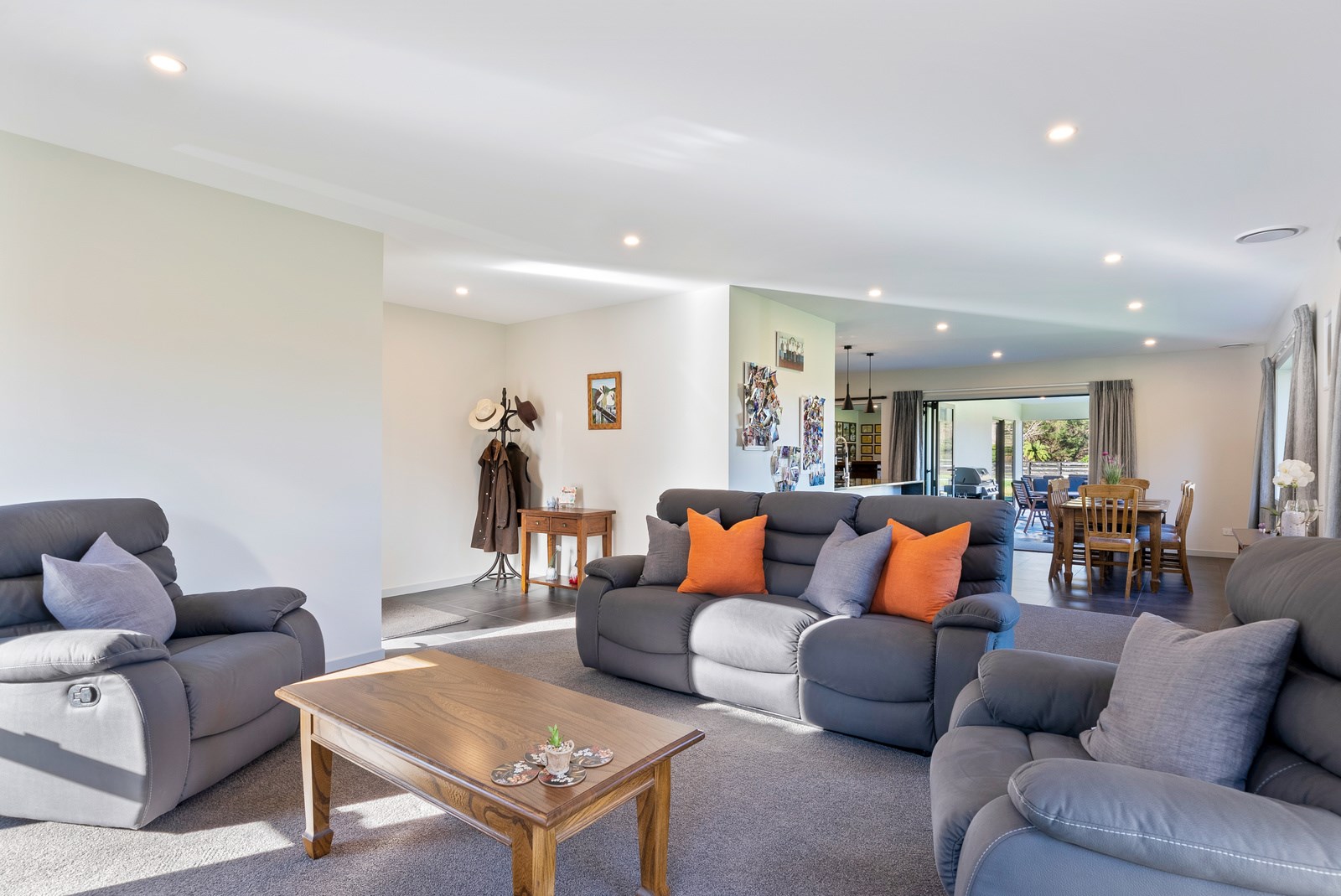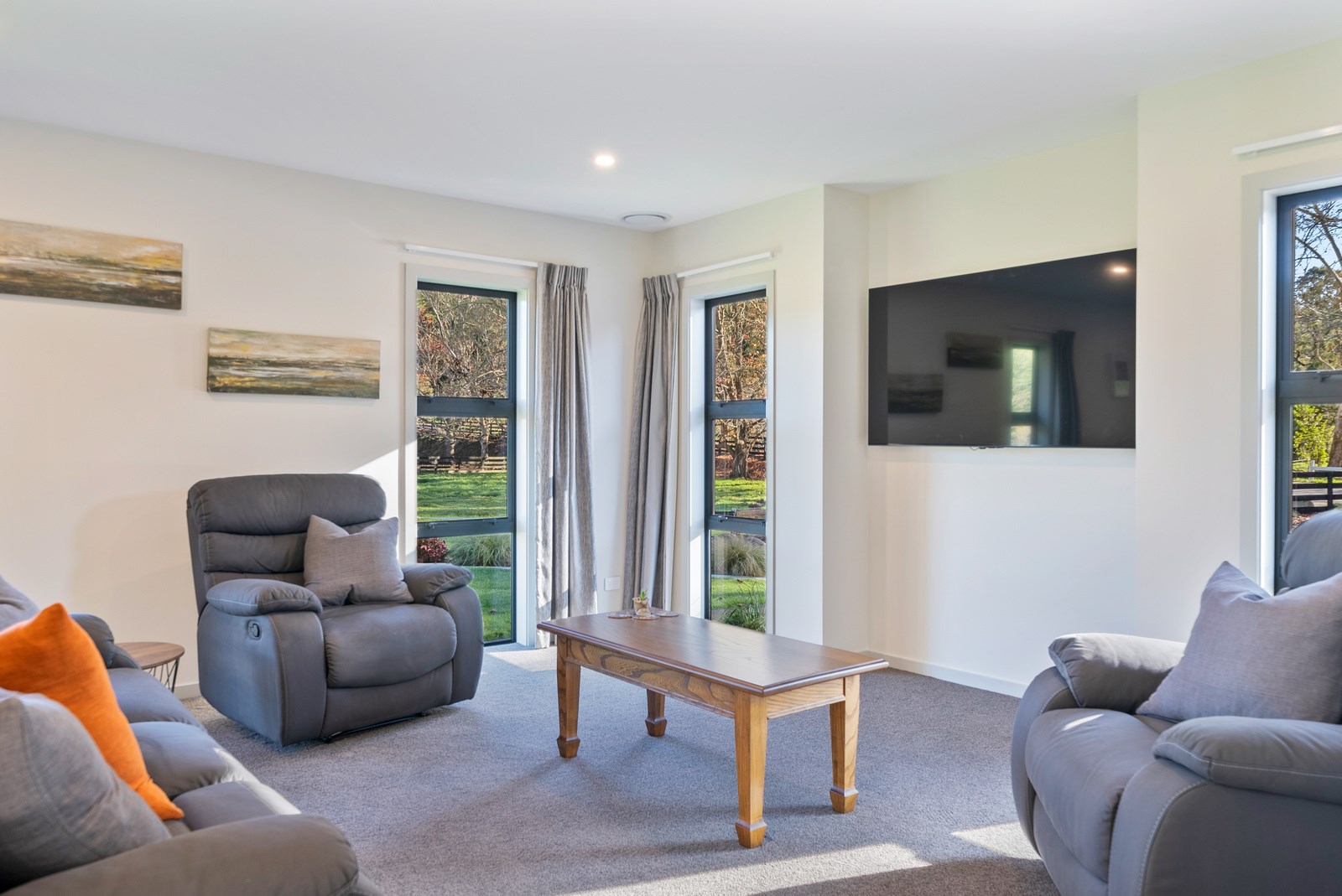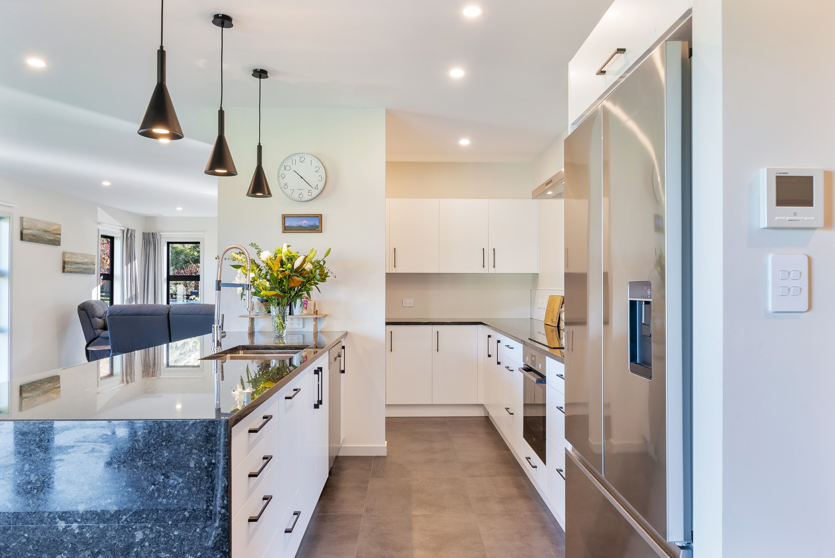 In equestrian country just out of Whanganui, you’ll find this 229sqm home built with the owners’ passion for racehorses in mind. The black-and-white charmer with three bedrooms and two bathrooms has the real look and feel of a ranch, with its wide eaves, curving driveway, shades-of-green pasture and triple garage with a sleepout and workshop. There’s more, however. This house has a separate room devoted to celebrating horse breeding and racing. Here you’ll find trophies, photographs, bar tables and a purpose-built bar with stools. It’s just the place in which to revel in successes and entertain others in the industry. Elsewhere in this handsome home, the equine theme has been reined in and you can focus on the high-spec features and craftsmanship on display. It’s most evident in the open-plan kitchen, dining and living space that merges into the outdoor living space, sheltering under the eaves. The kitchen, with a waterfall-end bench, topend fixtures and plenty of storage, has a scullery that winds around the kitchen corner. This communal area is the consummate place in which to host friends and family. The house finishes strongly with white plaster and dark weatherboard cladding, and long-run steel roofing.