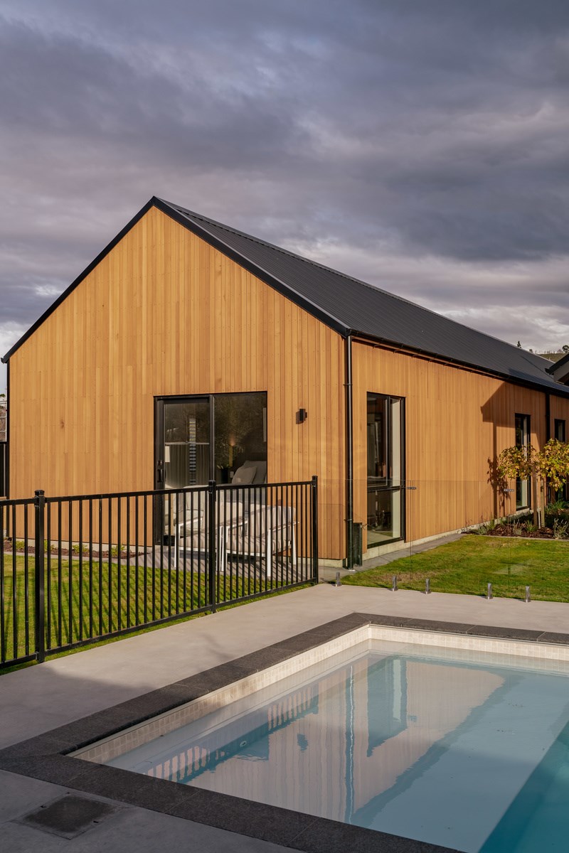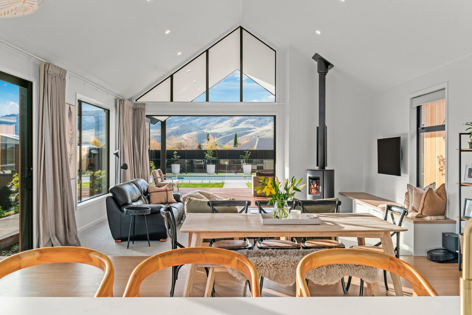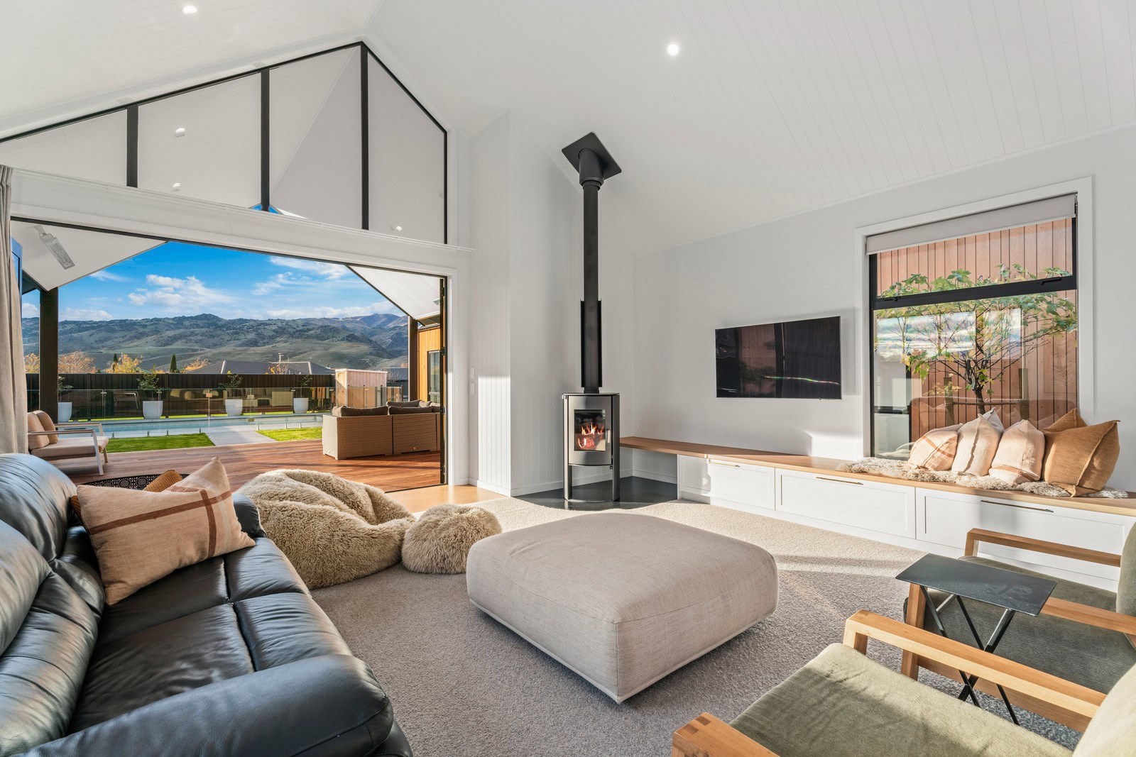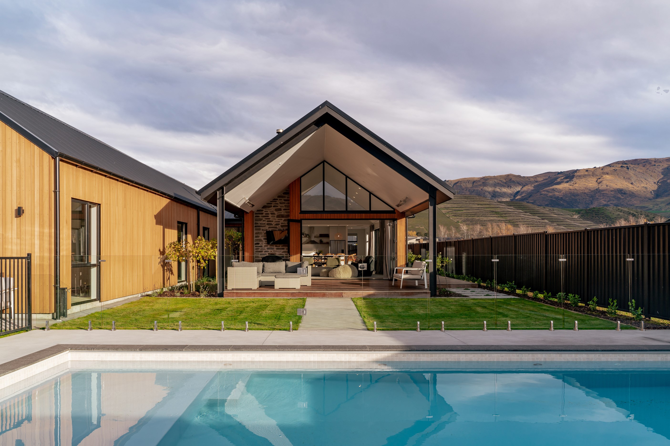 Mountain ranges are constant companions to those lucky enough to live in and around Cromwell, but this impressive 293sqm home also has a strong relationship to water. The four-bedroom house lounges across a site within cooee of Lake Dunstan and has an in-ground swimming pool. They’re game-changers in the middle of a searing Central Otago summer. With so much going for it in terms of the great outdoors, you’d think the interior might pale into insignificance, but that’s far from the case here. Craftsmanship and special details abound, starting with the exterior entrance clad with cedar gables and a wall of Wānaka schist. Inside, the lobby echoes the exterior with more timber and stone. To the left is the living pavilion with cathedral ceilings, clerestory window and designer kitchen with pantry. This is also the gateway to the loggia that looks out to the pool and across to hills in the distance. Turn right and you’ll come across the bedrooms, including the main suite with raking ceiling, walk-in robe and ensuite. The builders’ attention to detail is evident wherever you look — in the snug, study, garage, attic, feature walls and even in the recess window that frames a tree. A log burner, heat-pump system and solar panels keep things toasty.
