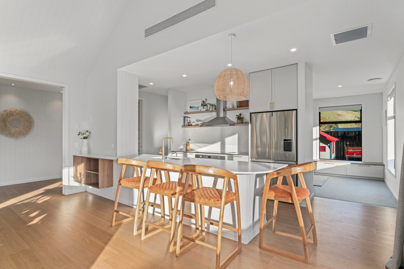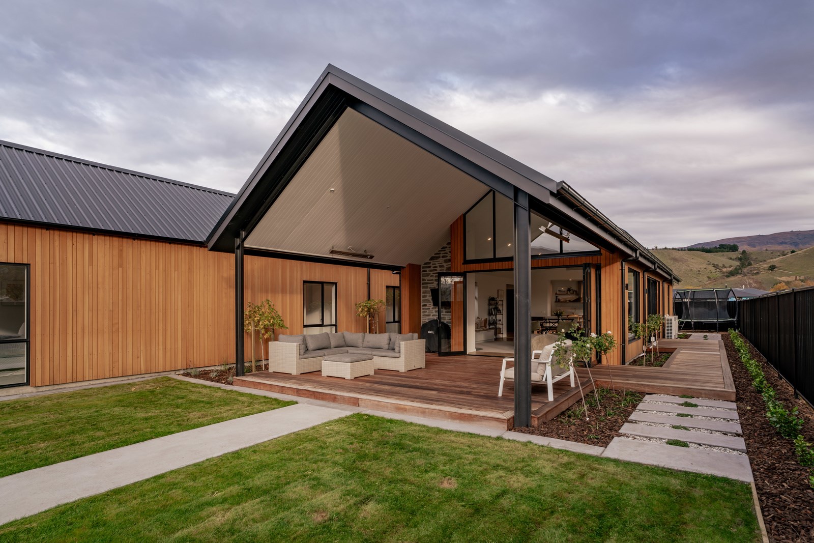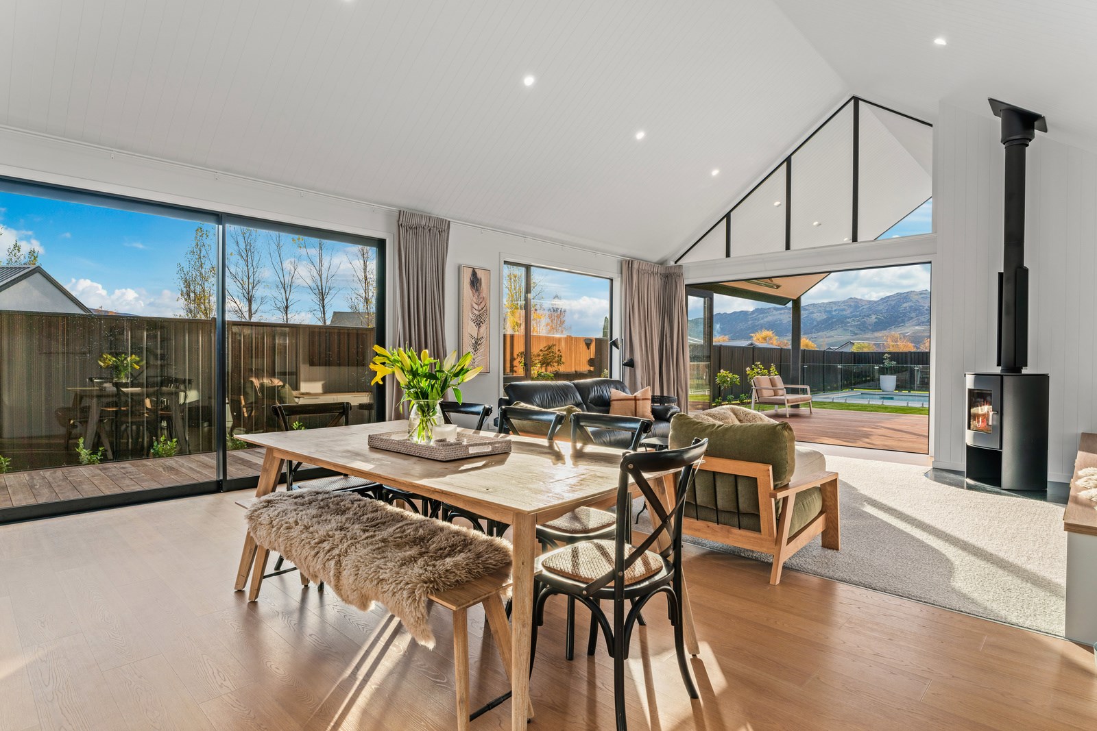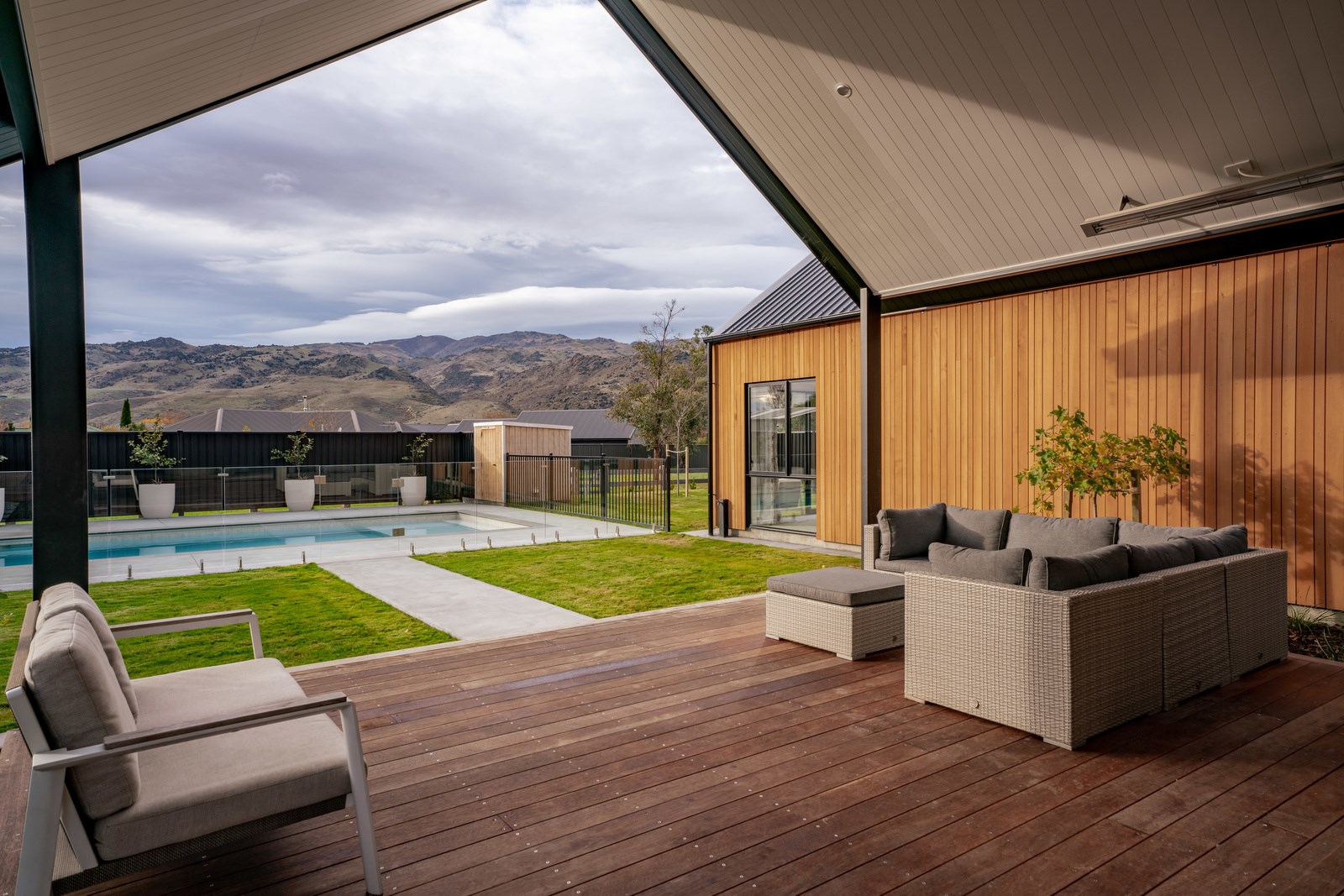 Mountain ranges are constant companions to those lucky enough to live in and around Cromwell, but this impressive 293sqm home also has a strong relationship to water. The four-bedroom house lounges across a site within cooee of Lake Dunstan and has an in-ground swimming pool. They’re game-changers in the middle of a searing Central Otago summer. With so much going for it in terms of the great outdoors, you’d think the interior might pale into insignificance, but that’s far from the case here. Craftsmanship and special details abound, starting with the exterior entrance clad with cedar gables and a wall of Wānaka schist. Inside, the lobby echoes the exterior with more timber and stone. To the left is the living pavilion with cathedral ceilings, clerestory window and designer kitchen with pantry. This is also the gateway to the loggia that looks out to the pool and across to hills in the distance. Turn right and you’ll come across the bedrooms, including the main suite with raking ceiling, walk-in robe and ensuite. The builders’ attention to detail is evident wherever you look — in the snug, study, garage, attic, feature walls and even in the recess window that frames a tree. A log burner, heat-pump system and solar panels keep things toasty.