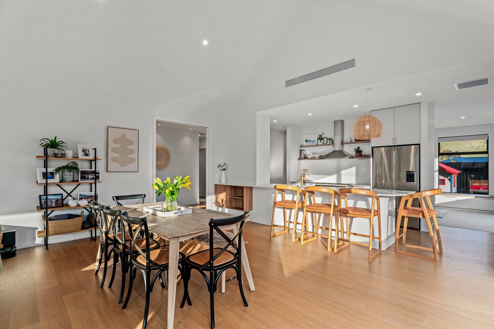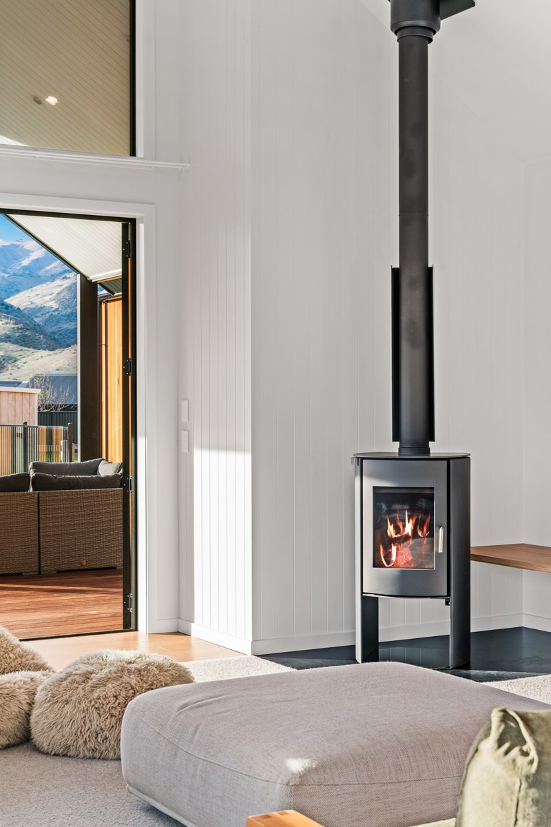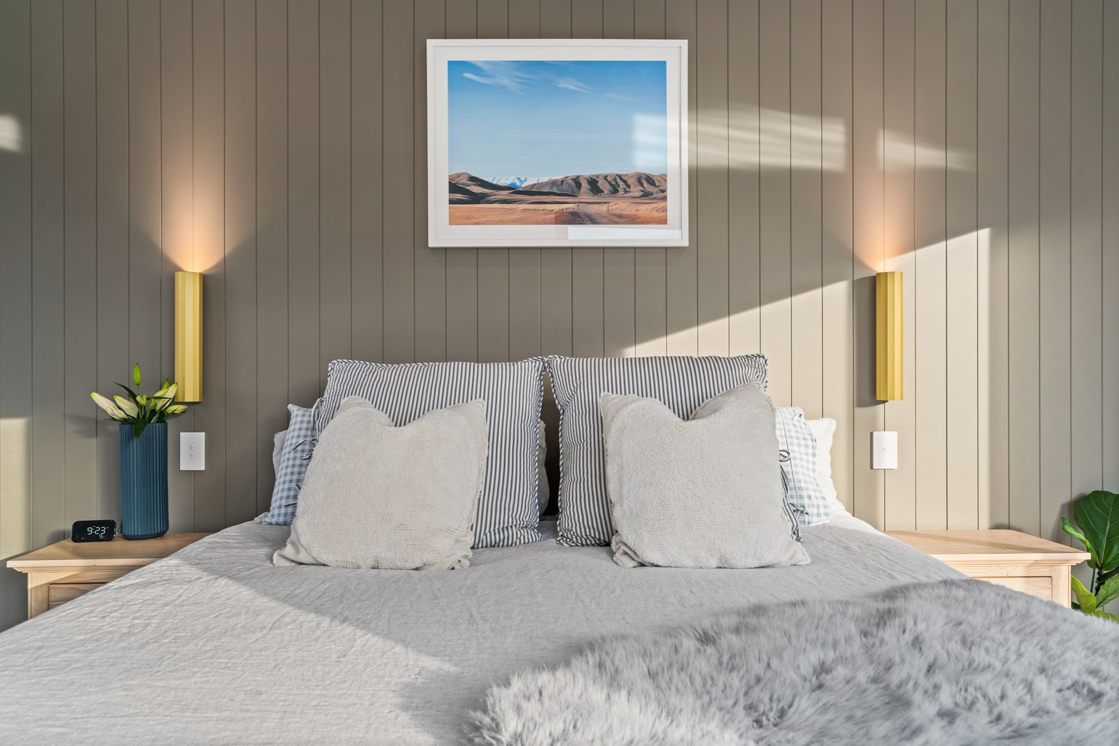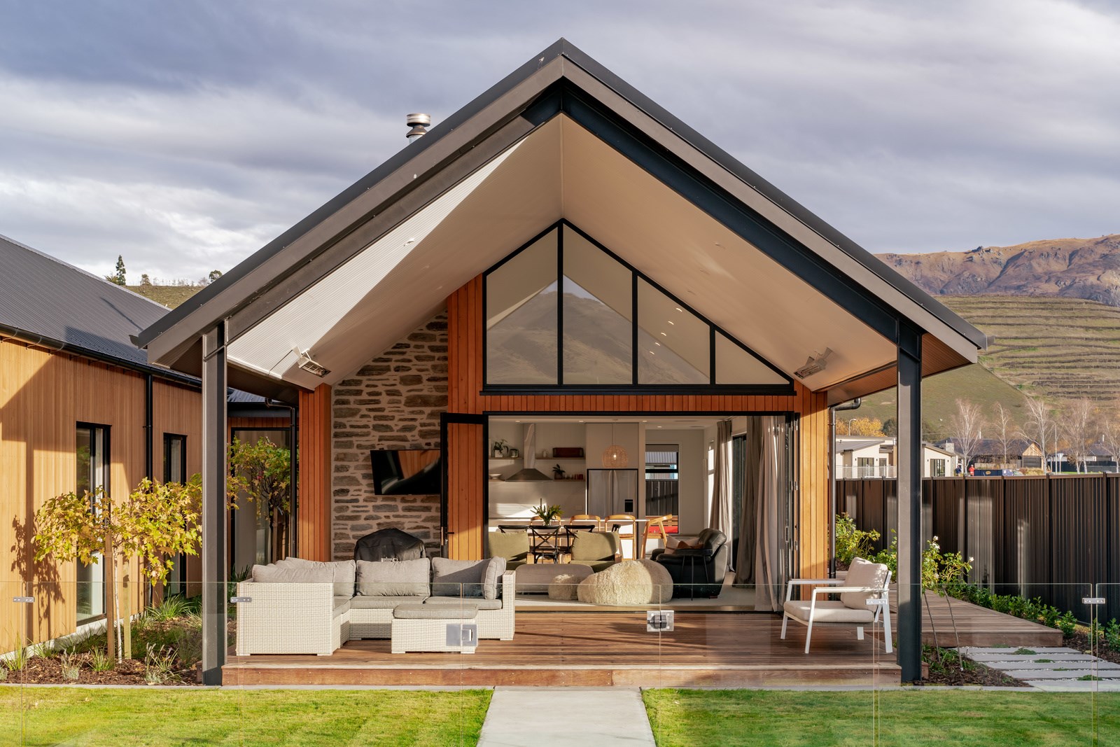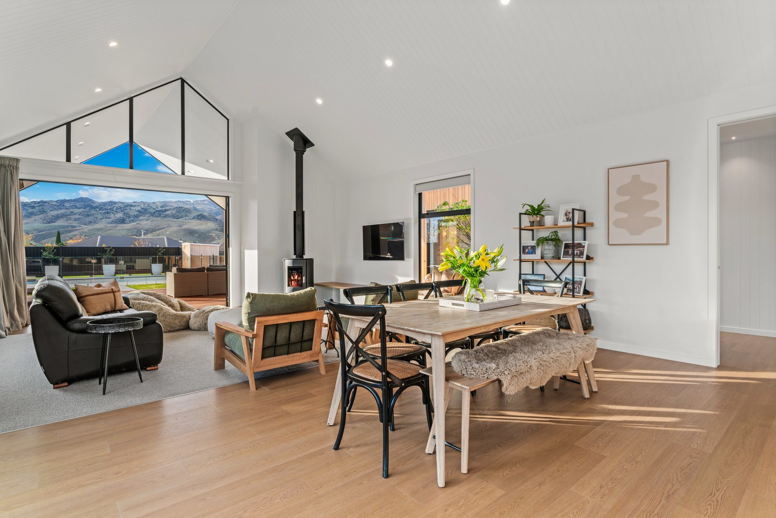 Mountain ranges are constant companions to those lucky enough to live in and around Cromwell, but this impressive 293sqm home also has a strong relationship to water. The four-bedroom house lounges across a site within cooee of Lake Dunstan and has an in-ground swimming pool. They’re game-changers in the middle of a searing Central Otago summer. With so much going for it in terms of the great outdoors, you’d think the interior might pale into insignificance, but that’s far from the case here. Craftsmanship and special details abound, starting with the exterior entrance clad with cedar gables and a wall of Wānaka schist. Inside, the lobby echoes the exterior with more timber and stone. To the left is the living pavilion with cathedral ceilings, clerestory window and designer kitchen with pantry. This is also the gateway to the loggia that looks out to the pool and across to hills in the distance. Turn right and you’ll come across the bedrooms, including the main suite with raking ceiling, walk-in robe and ensuite. The builders’ attention to detail is evident wherever you look — in the snug, study, garage, attic, feature walls and even in the recess window that frames a tree. A log burner, heat-pump system and solar panels keep things toasty.