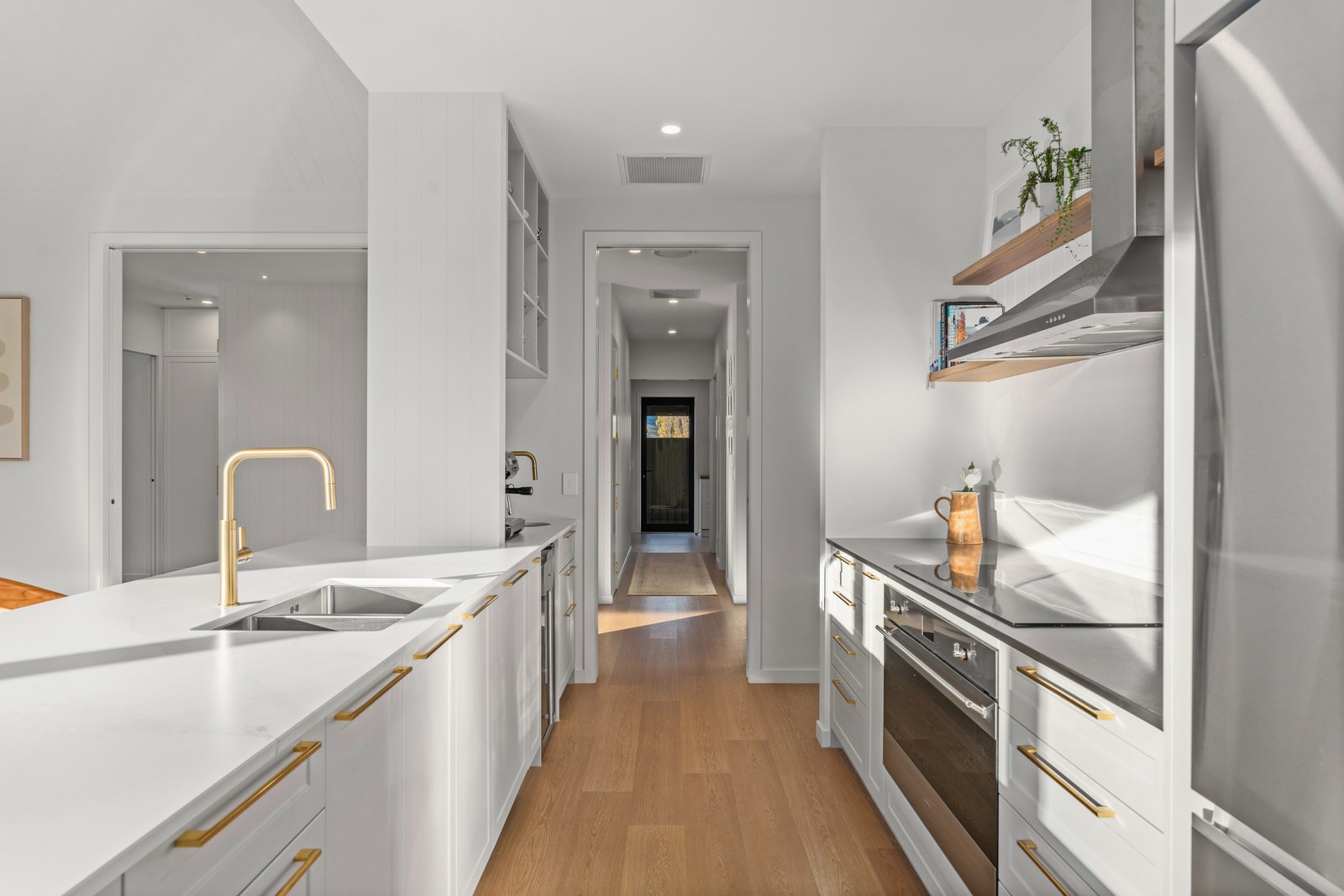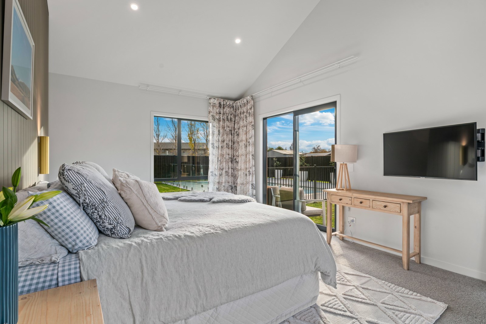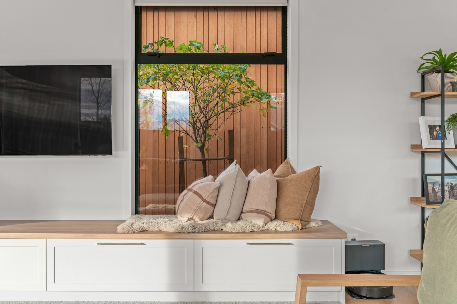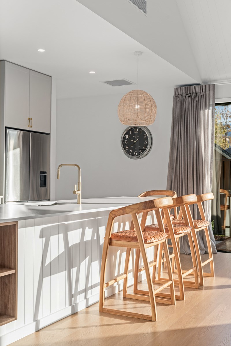 Mountain ranges are constant companions to those lucky enough to live in and around Cromwell, but this impressive 293sqm home also has a strong relationship to water. The four-bedroom house lounges across a site within cooee of Lake Dunstan and has an in-ground swimming pool. They’re game-changers in the middle of a searing Central Otago summer. With so much going for it in terms of the great outdoors, you’d think the interior might pale into insignificance, but that’s far from the case here. Craftsmanship and special details abound, starting with the exterior entrance clad with cedar gables and a wall of Wānaka schist. Inside, the lobby echoes the exterior with more timber and stone. To the left is the living pavilion with cathedral ceilings, clerestory window and designer kitchen with pantry. This is also the gateway to the loggia that looks out to the pool and across to hills in the distance. Turn right and you’ll come across the bedrooms, including the main suite with raking ceiling, walk-in robe and ensuite. The builders’ attention to detail is evident wherever you look — in the snug, study, garage, attic, feature walls and even in the recess window that frames a tree. A log burner, heat-pump system and solar panels keep things toasty.