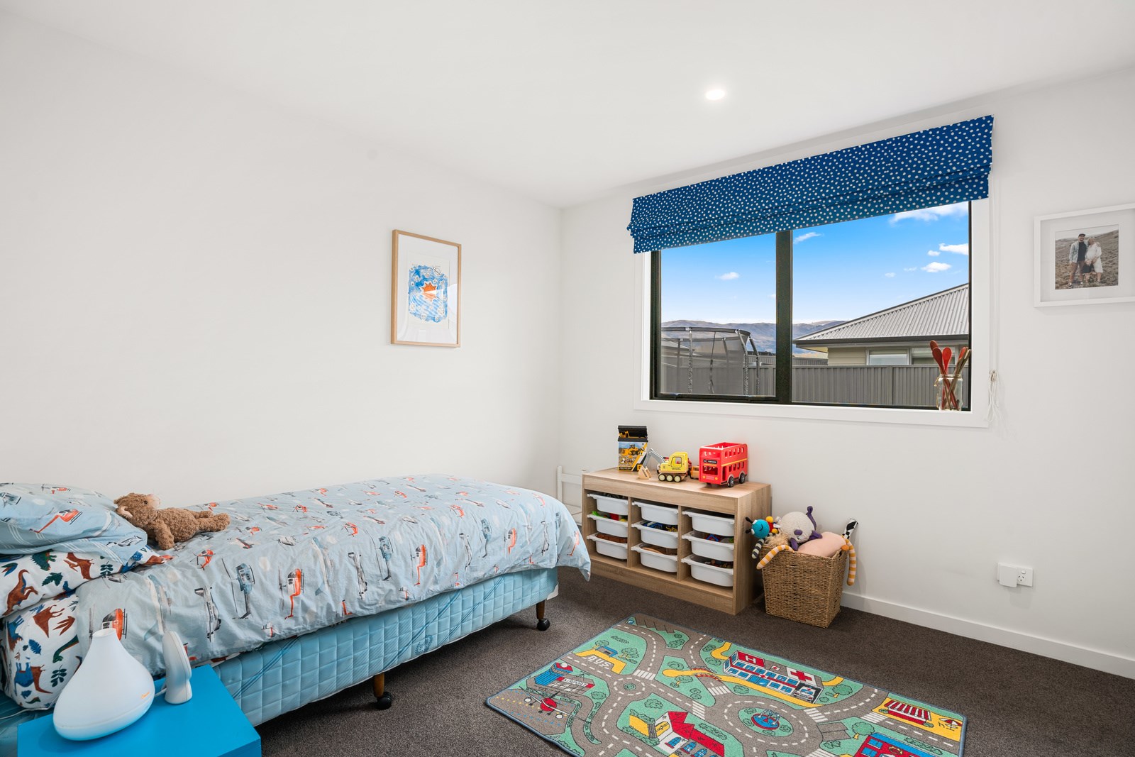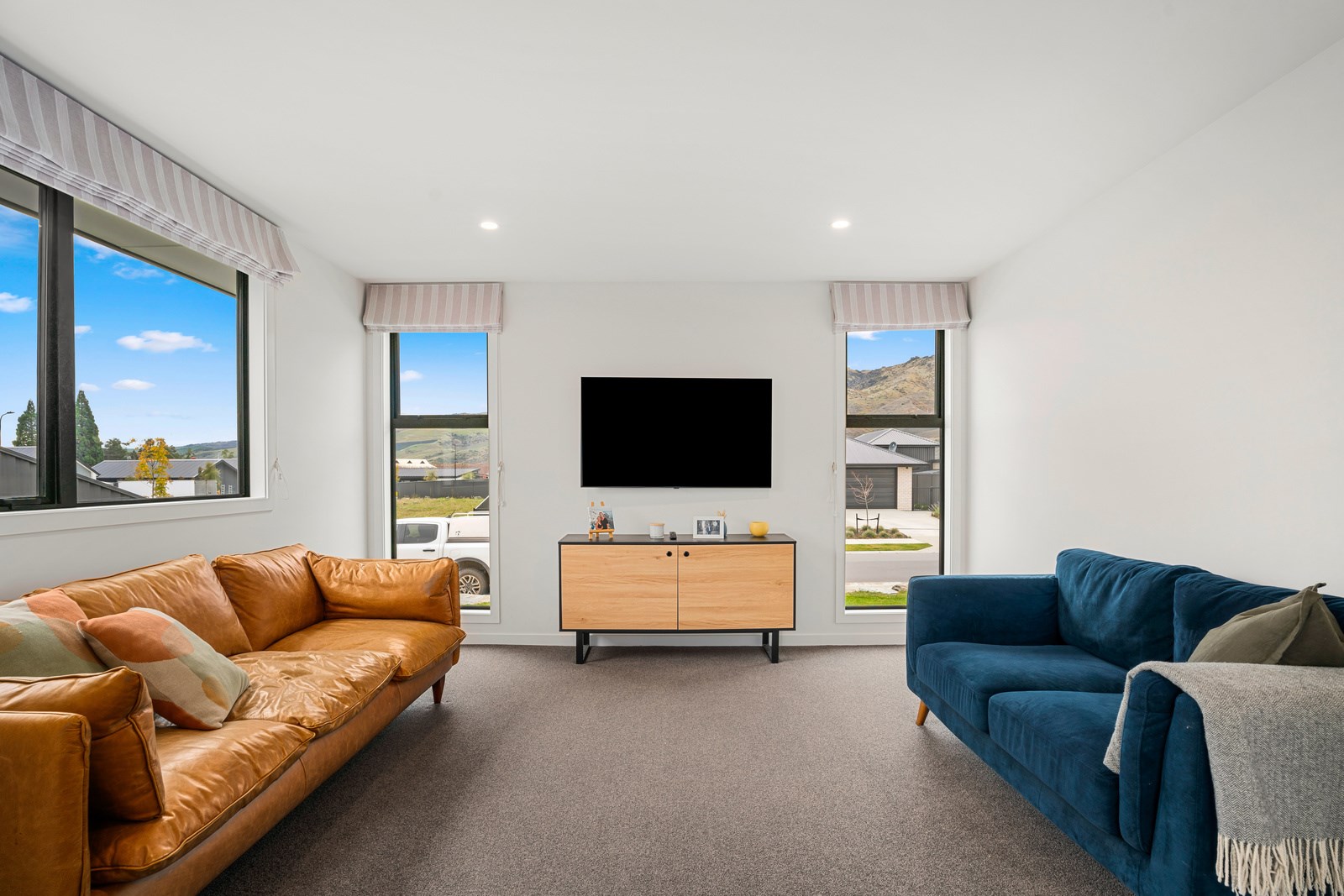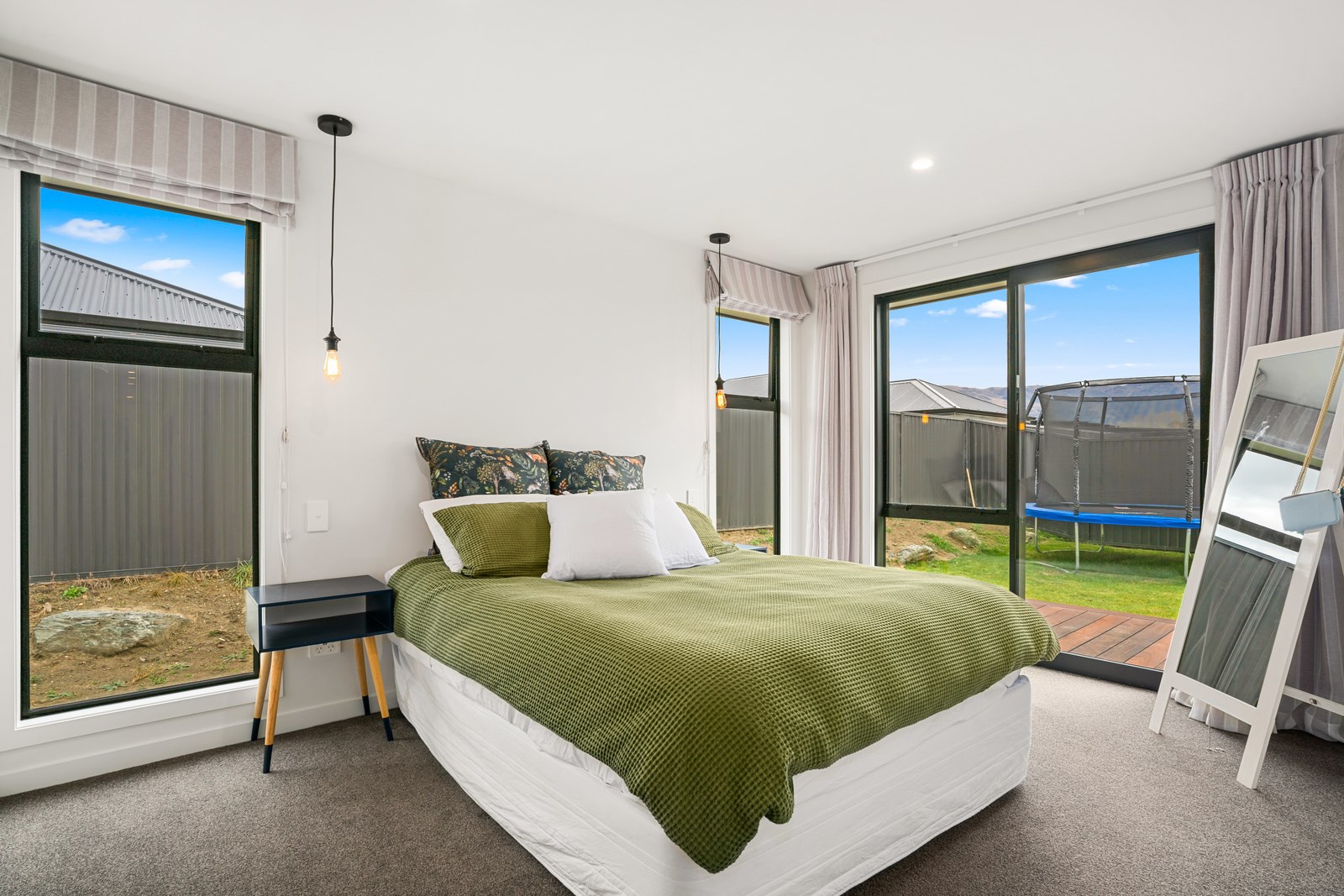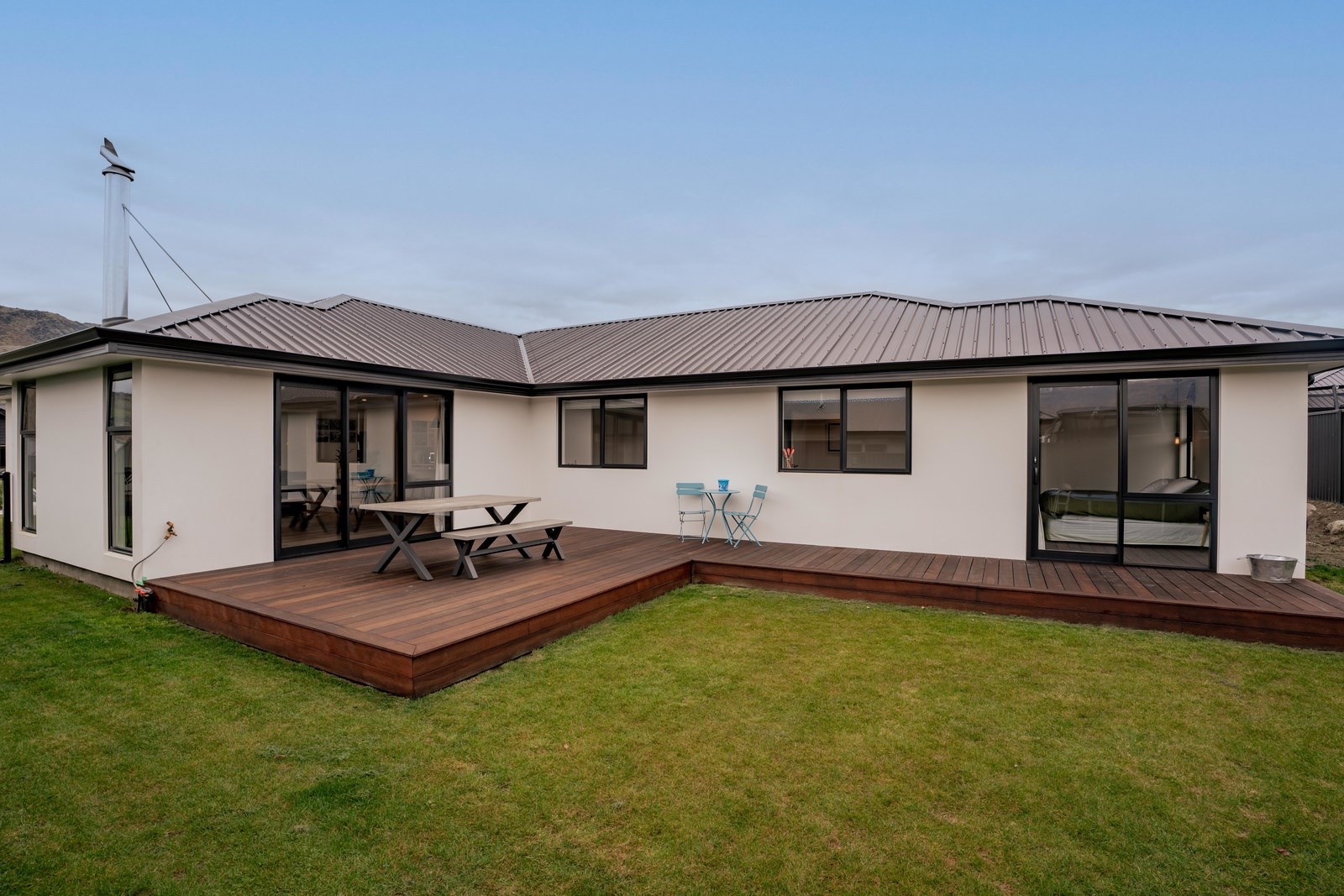 Twin gables, open-plan living, four bedrooms and two bathrooms — welcome to your ideal family home. Add a double garage, separate lounge, flat section and L-shaped deck, and this 180sqm house goes from ideal to next-level appeal. You can never go wrong with a classic design and this one, with a vertical western red cedar and plaster exterior and dark steel roof, is a case in point. Lines of stacked schist break up the front lawn and tie the house to its Central Otago locale. Open the front door and you won’t be disappointed. There’s an instant feeling of space, thanks to crisp walls and a streamlined white-on-white kitchen with a walk-in pantry. Don’t assume that pale means boring. Far from it. A trio of pendants hovering above the island and a splashback in pale mint tiles ramp up the interest. The carpeted lounge off the side of the open-plan zone benefits from lots of double glazing and can be closed off with double cavity sliders. Anyone for a movie? A central hallway leads to the bedrooms and bathroom with a tiled shower, wood-look floating vanity and bath. The main bedroom, at the end of hall for privacy and space, has a walk-in wardrobe, ensuite and plenty of natural light. This is a modern classic, pure and simple.