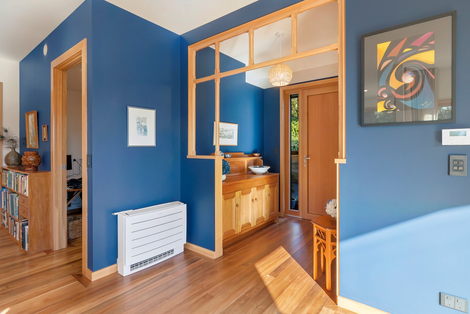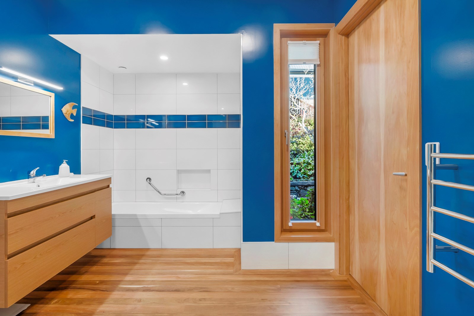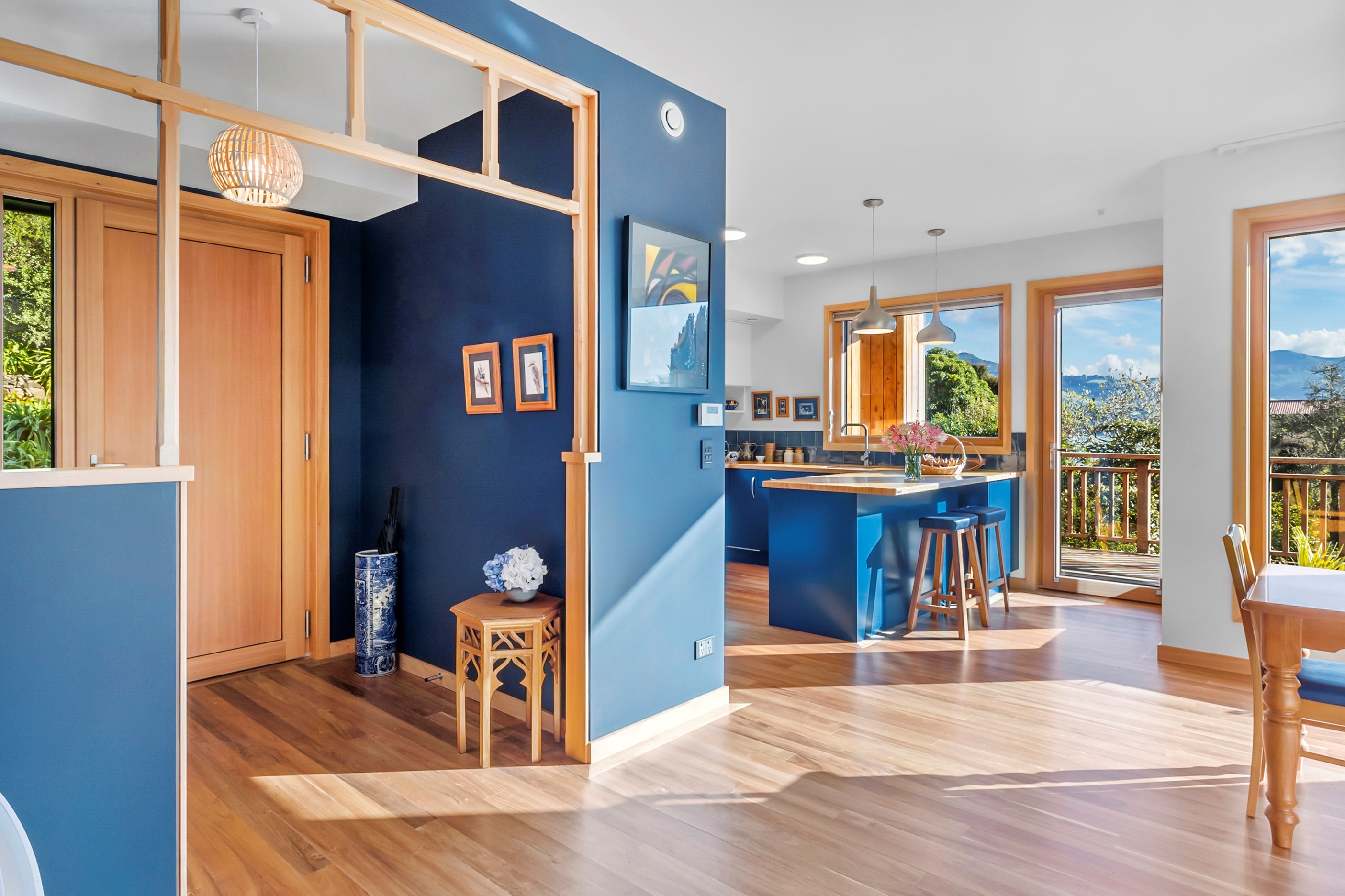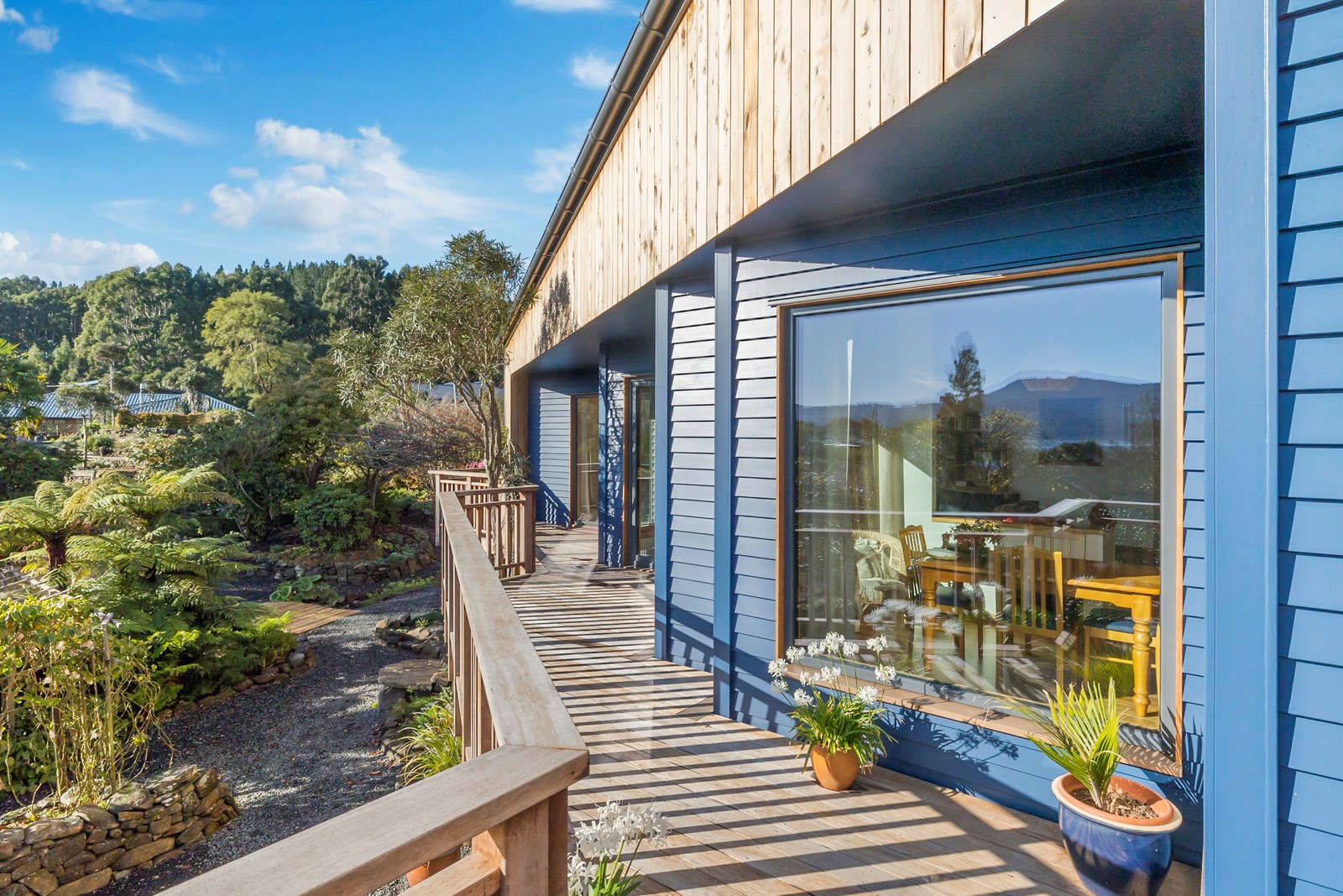 The owners of this Dunedin home had been living in a house on the lower part of their elevated peninsula section, so knew exactly what they wanted. Their new home, in vertical macrocarpa shiplap and azure-coloured weatherboards to reflect its coastal position, had to settle into the south-west corner of the site. From here they could enjoy views of the garden from every room of the house and every part of the deck. And what a garden it is: think meandering gravel paths, native plants, flowers and drystone volcanic rock walls. So important was this wonderland, that the house layout was determined by the location of trees, and a deck outside one bedroom was built around a native lancewood. The 141sqm wedge-shape monopitch-roof design also enjoys carefully planned views over the trees to the blue of the Otago harbour. The three-bedroom house offers further clues about the clients’ appreciation of nature and natural materials. Features such as cut-outs, like the one at the entry, and stepped windows put the spotlight on the great outdoors. Inside more of the vivid blue is contrasted with timber — in the floorboards, architraves, joinery, skirting, doors, trims and furniture. It’s a natural-born winner.
