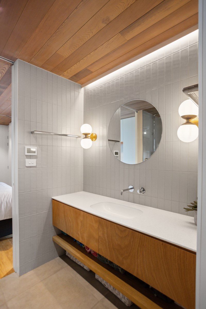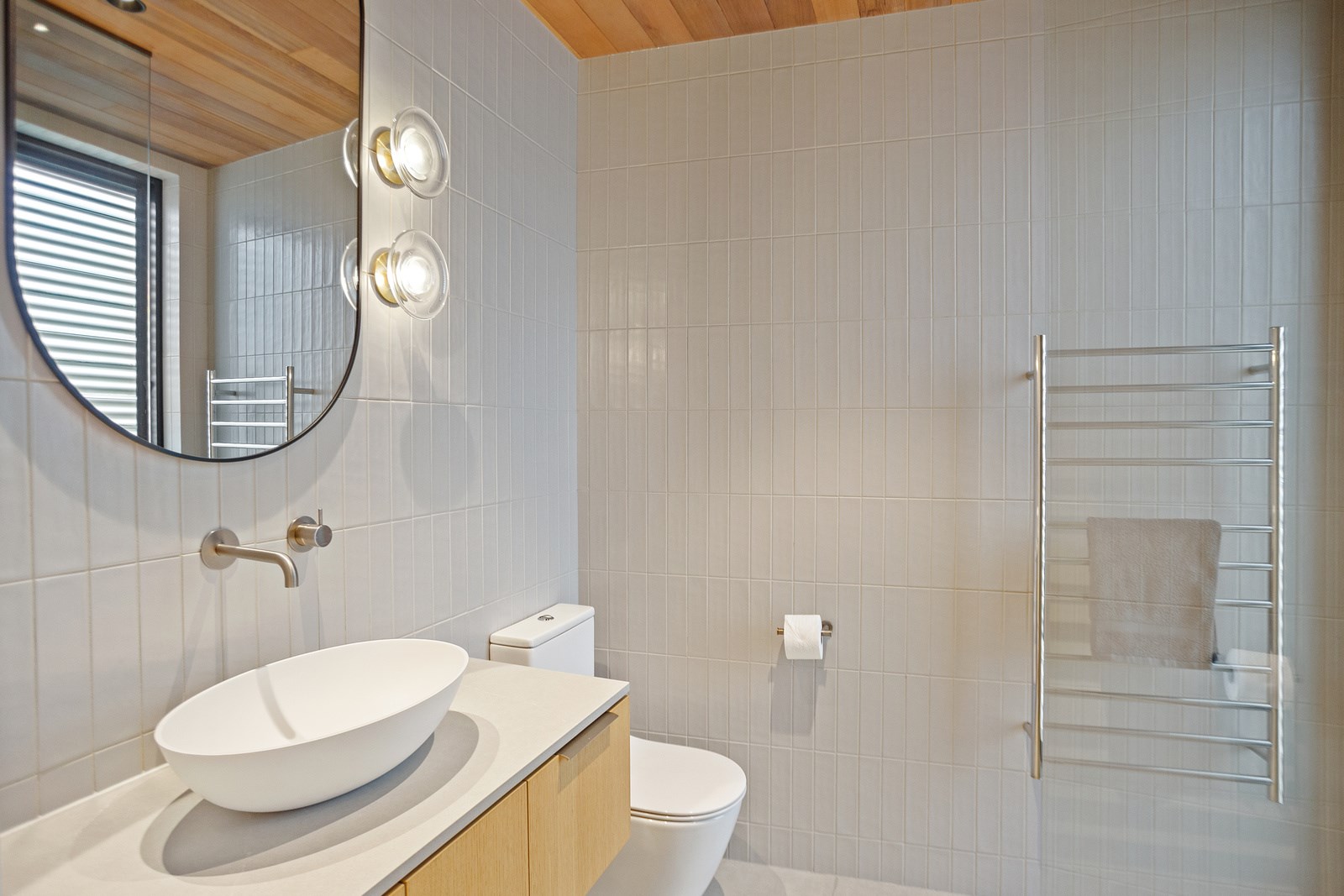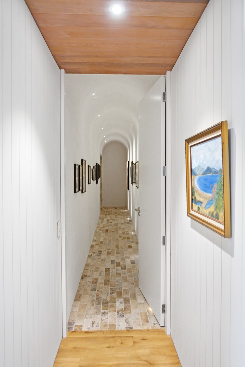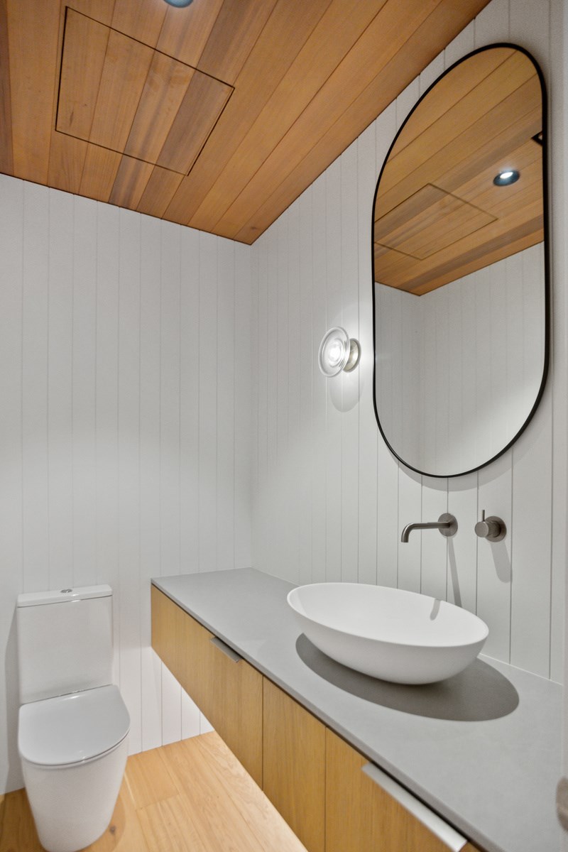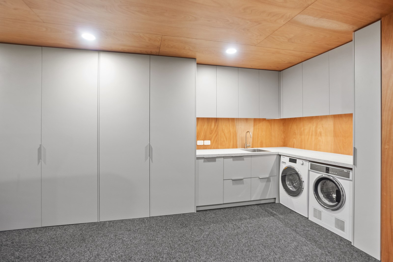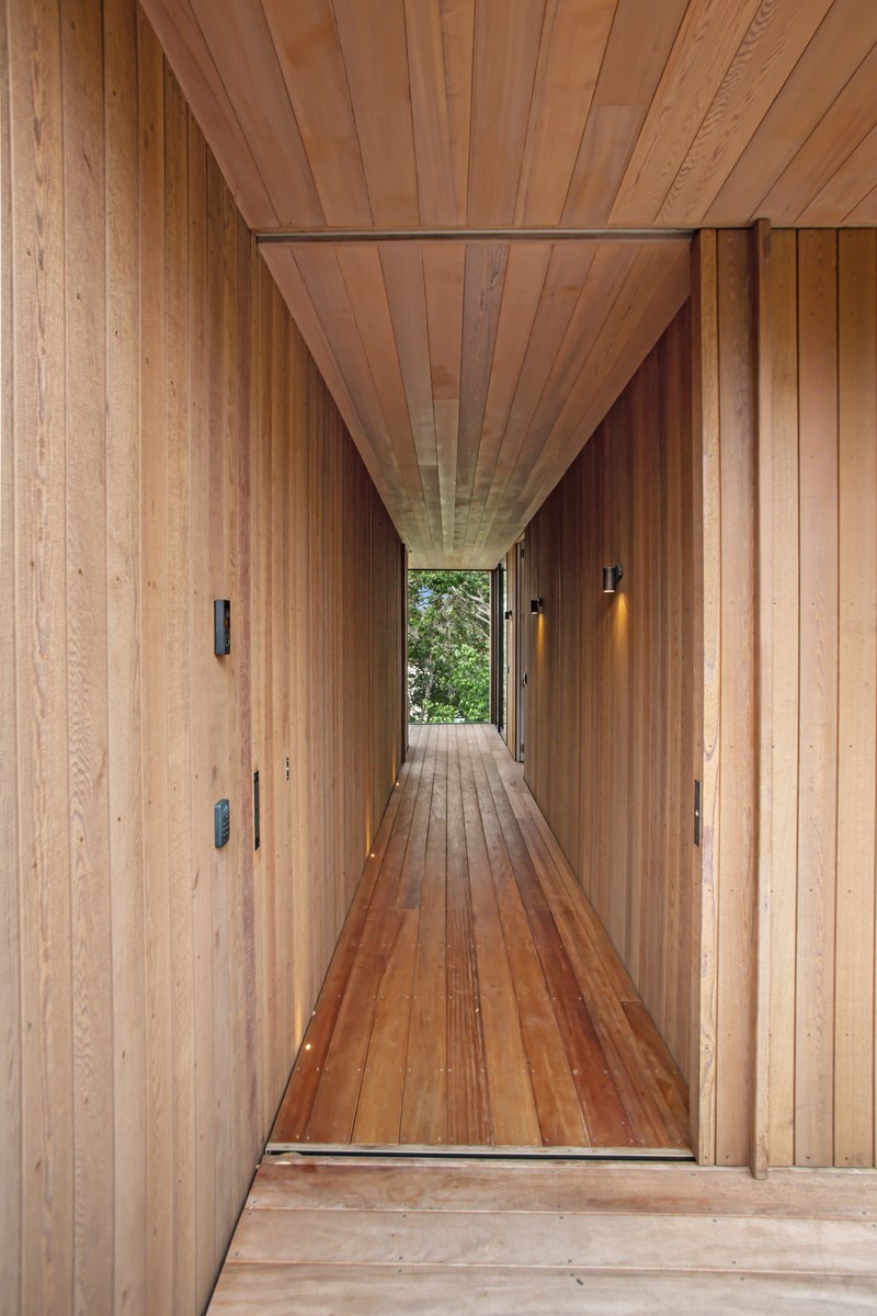 Coastal living tends to encourage a slower pace — views to get lost in, a focus on sunlight, soft textures and soothing palettes. If that’s the case, the owners of this masterpiece overlooking Cooks Beach must be positively blissed out. Natural timbers and locally sourced stone blend seamlessly with the environment, creating a harmonious connection with nature. The cleverly designed multi-level house places garaging, bedrooms, bathrooms and living areas on the ground floor, with the main living areas and guest suite upstairs. Expansive decks offer many outdoor living and entertainment options. The goal was clear from the beginning: to craft a beach house that caters to the needs of a multi-generational family, with everyone enjoying time together while still having their own space. Enduring materials, including stone sourced from Te Kūiti, are designed to age beautifully and add a sense of solidity and permanence. The home has five-plus bedrooms, four bathrooms and three living rooms, and incorporates sustainable features to minimise its environmental impact. A Tesla Solar Powerwall allows it to operate off the grid, storing energy during the day.