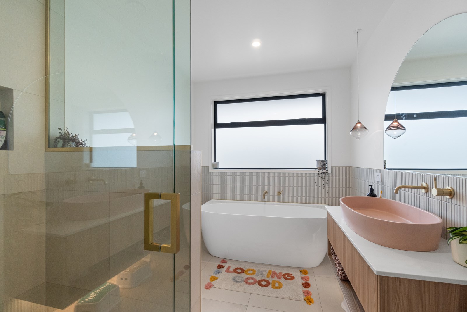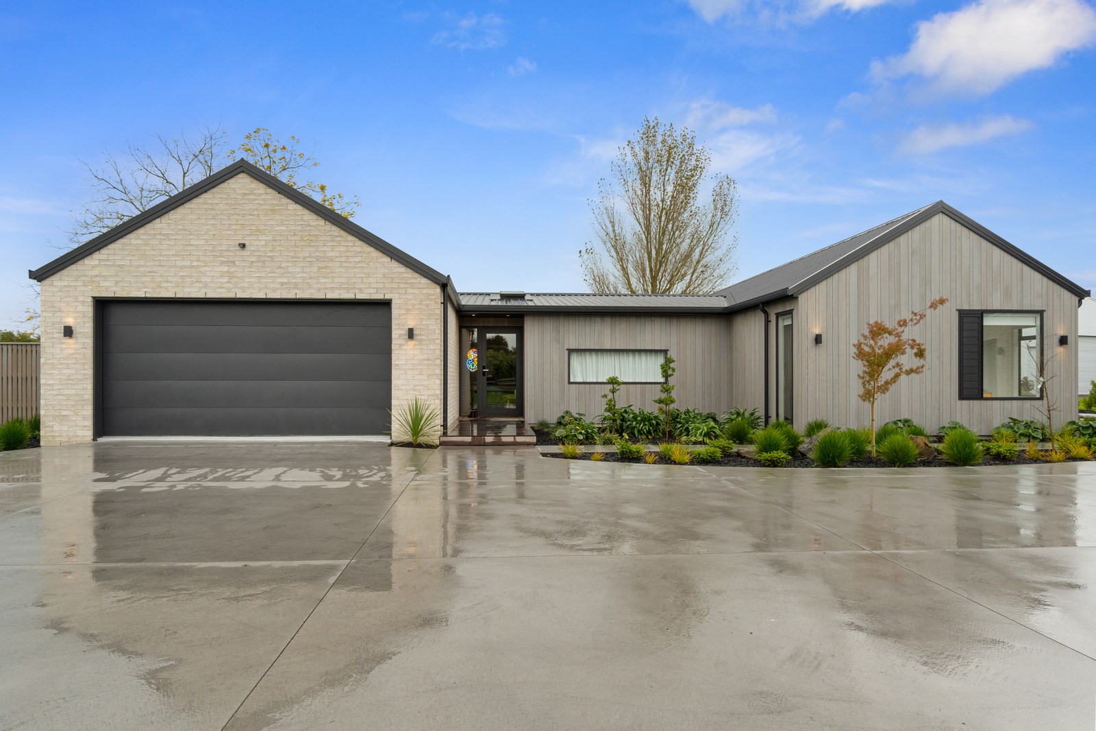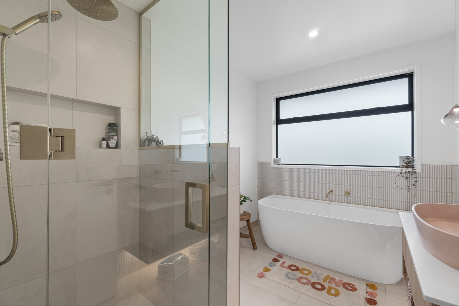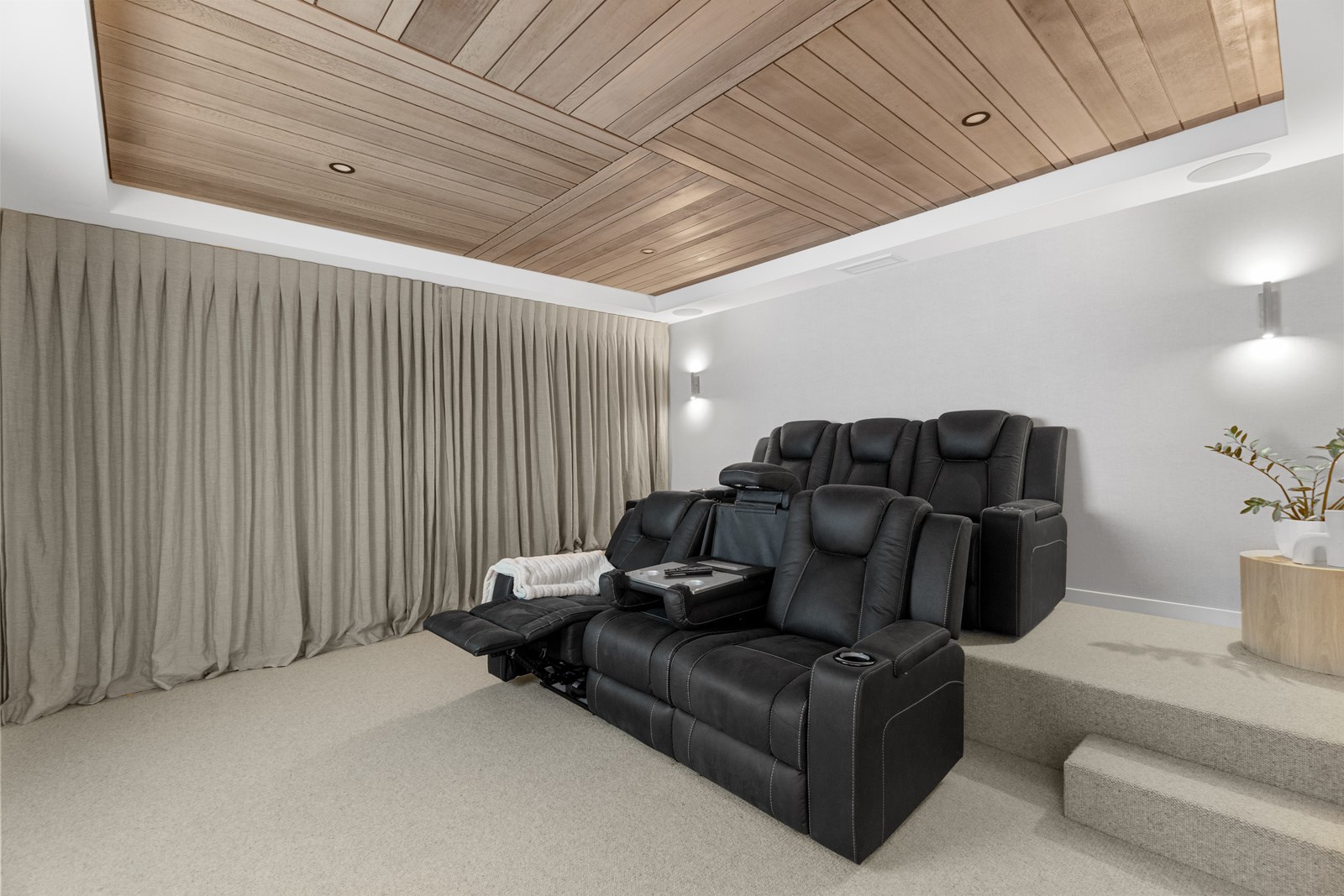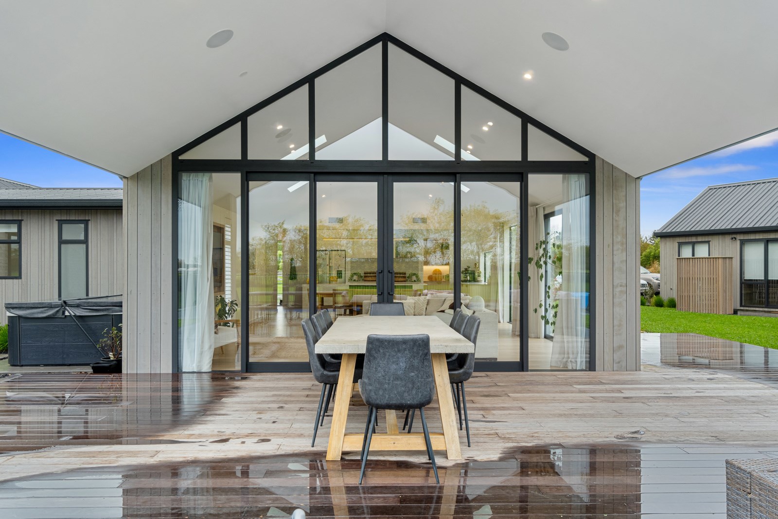 No stone has been left unturned in the pursuit of the best in this builder’s own home in Hamilton. Let’s start with the sleek and stylish exterior: a beautiful blend of cedar and recycled Italian brick. Inside there are five-plus bedrooms, three bathrooms and two living rooms — all of substantial style and proportions. In the main bedroom, his and hers walk-in wardrobes and a luxe ensuite mean that busy parents can relax and enjoy their own space. Did we mention the state-of-the art media room to kick back and relax? The considerations continue outdoors, where there’s a sparkling pool and delightful alfresco space. The light-filled interior lends a cathedral-like aspect to the look of this 284sqm modern rural home, located conveniently within cooee of the city. Of course, with all these features at hand, you may not want to venture too far from home. Neutral tones with splashes of blue and blonde timber help this home blend with its peaceful rural surroundings. An oasis for entertainers and families alike, this epitome of modern elegance offers a perfect balance of style and function whether you want to relax by the pool or make plans for the next party.