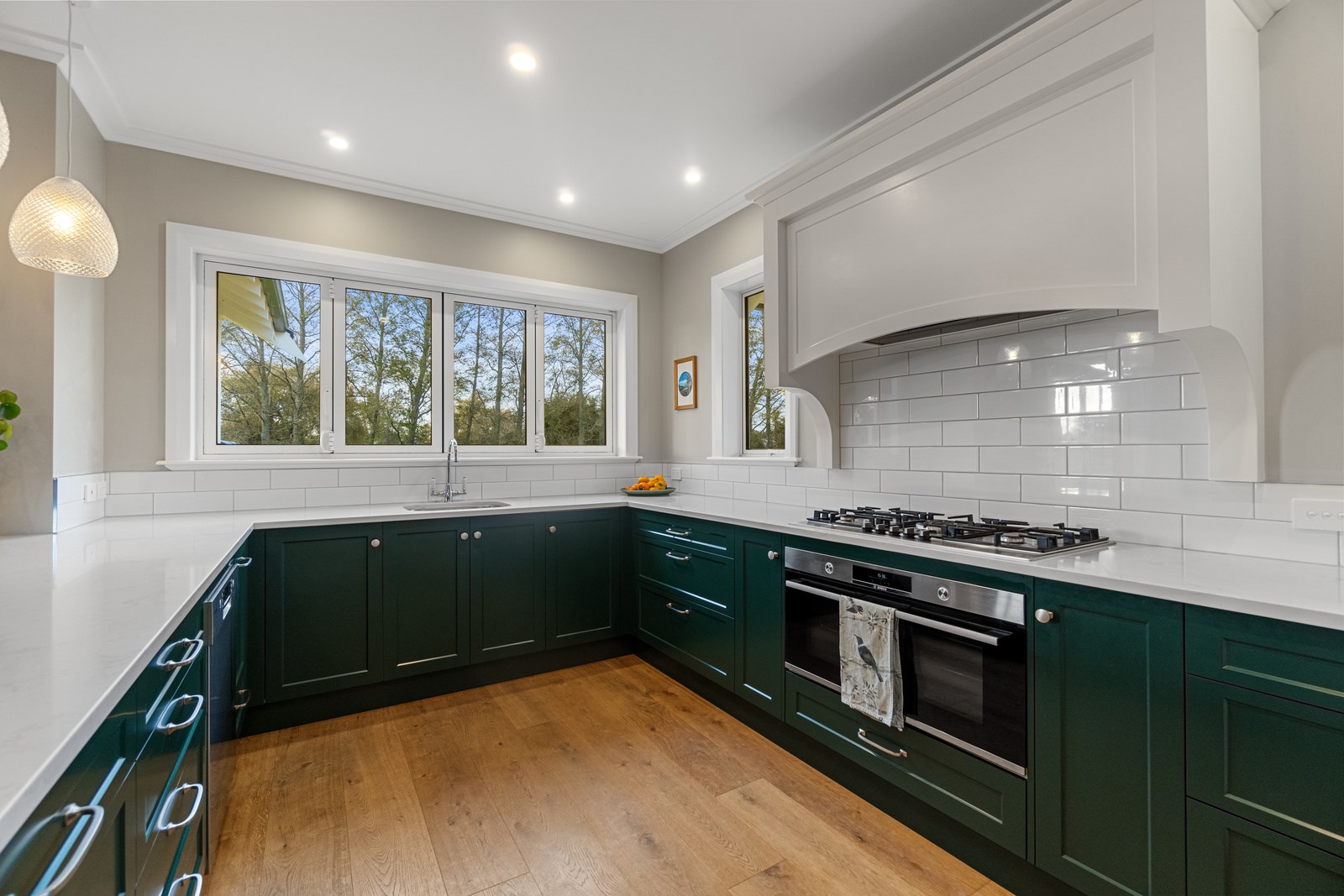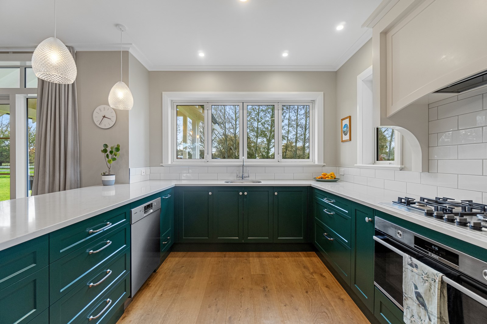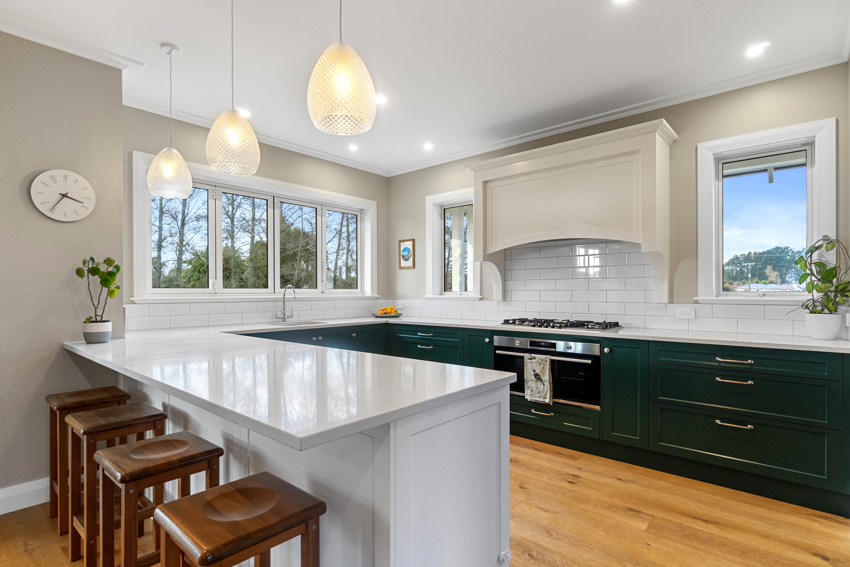 At first glance, this charming weatherboard home looks as if it has been part of the landscape for decades. That couldn’t be further from the truth, however. It’s recently built and perfectly meets the brief of “a new home filled with character and warmth”. The three-bedroom bungalow-style house with separate garage is intended to be a forever home for the builder and his family. It also showcases meticulous planning, attention to detail and creative customising — all skills requiring true passion for craftsmanship. Spread across 198sqm, the house is not the biggest around, but the 2.7m stud height, wider-than-standard hallway and generous rooms, mean there’s a sense of airiness and plenty of space. The open-plan living, dining and kitchen is large enough for everyone to spread out. Custom cabinetry in the kitchen, living room, media room and laundry adds to the bungalow-style charm. Four separate outdoor areas, some covered, allow the family to thoroughly enjoy the rural surrounds. This dream home has also been built with sustainability in mind. Rainwater is stored, upgraded insulation has been used and a heat-transfer system installed. This character-filled labour of love is warm in every way.