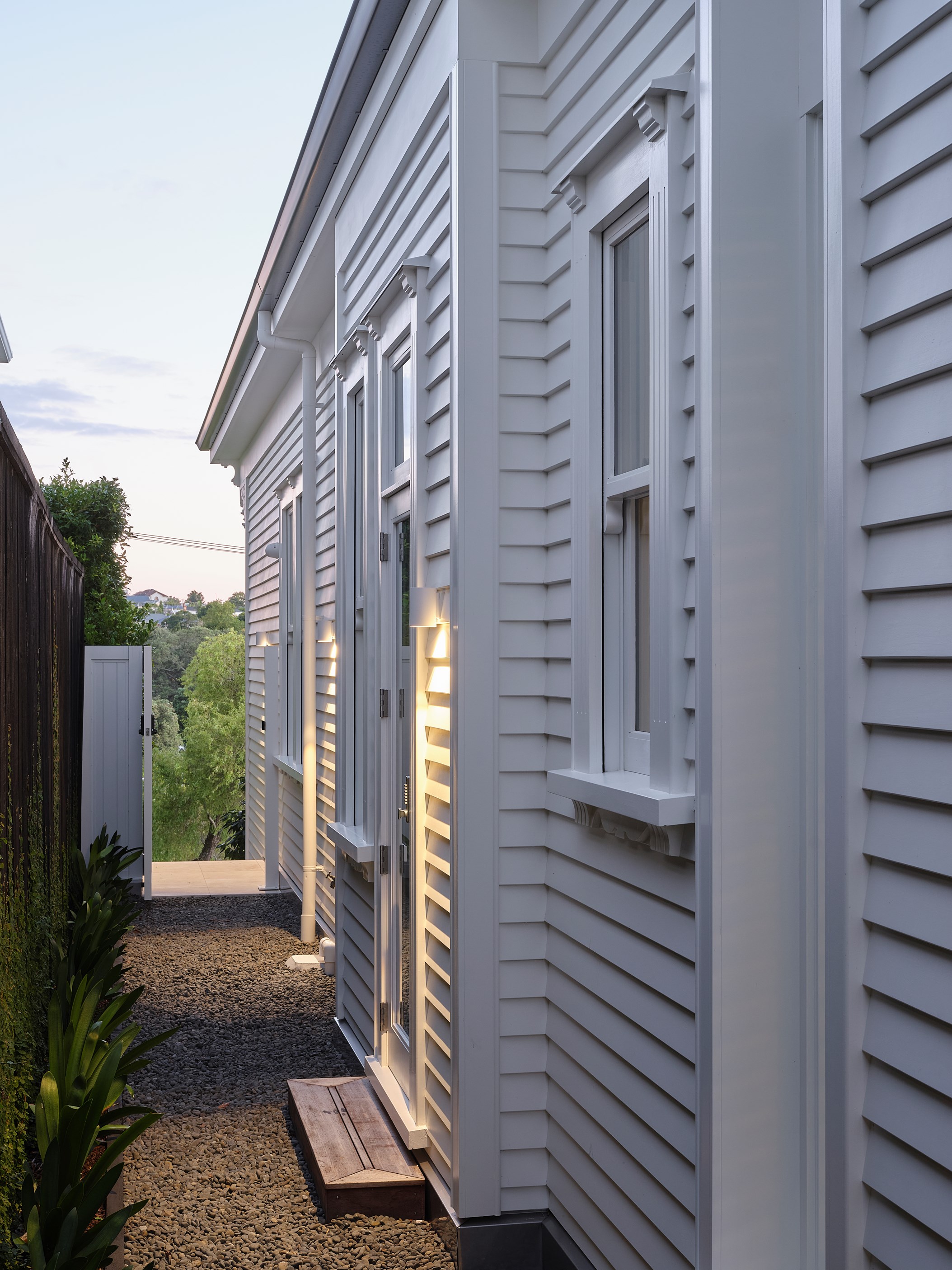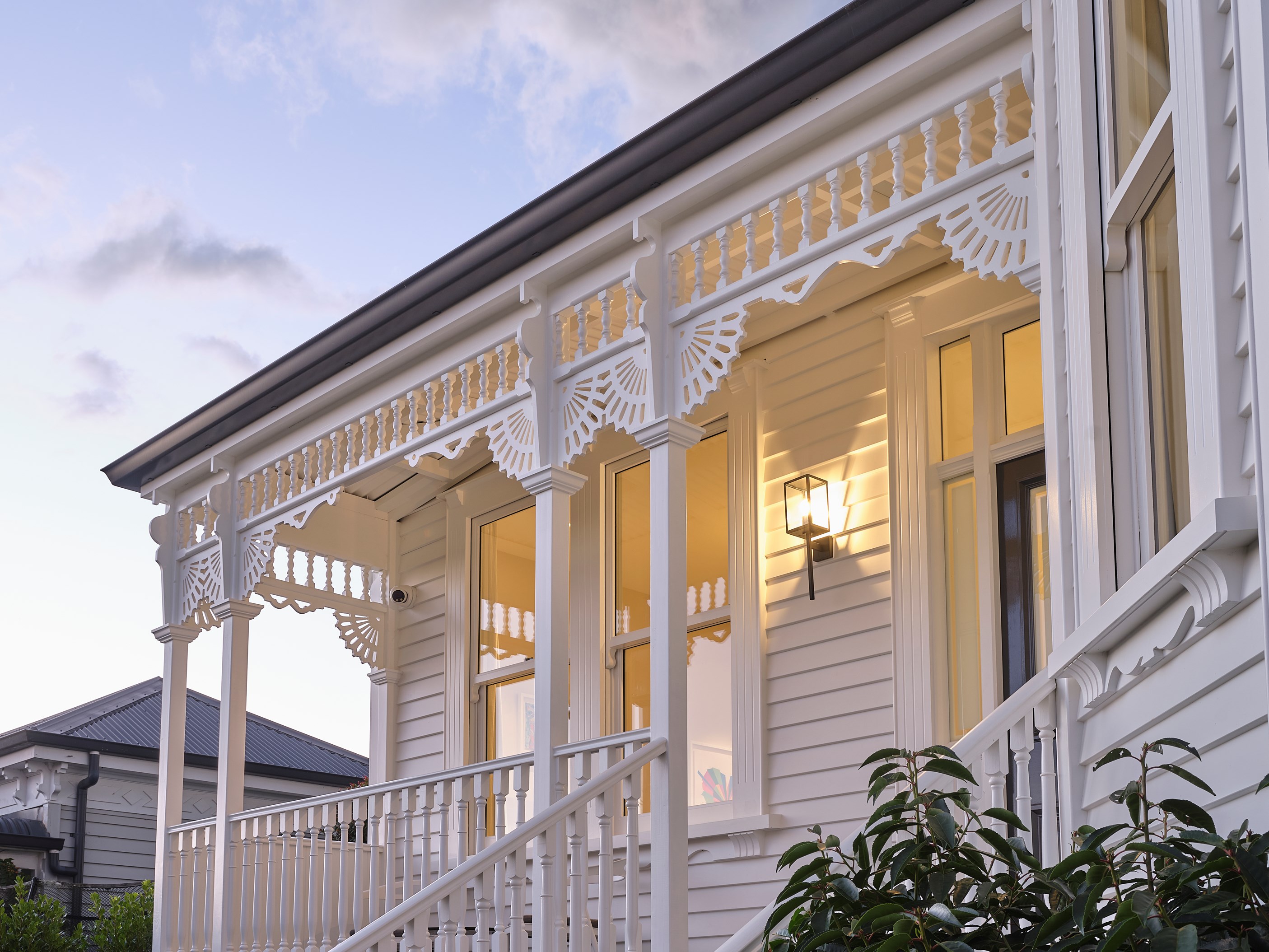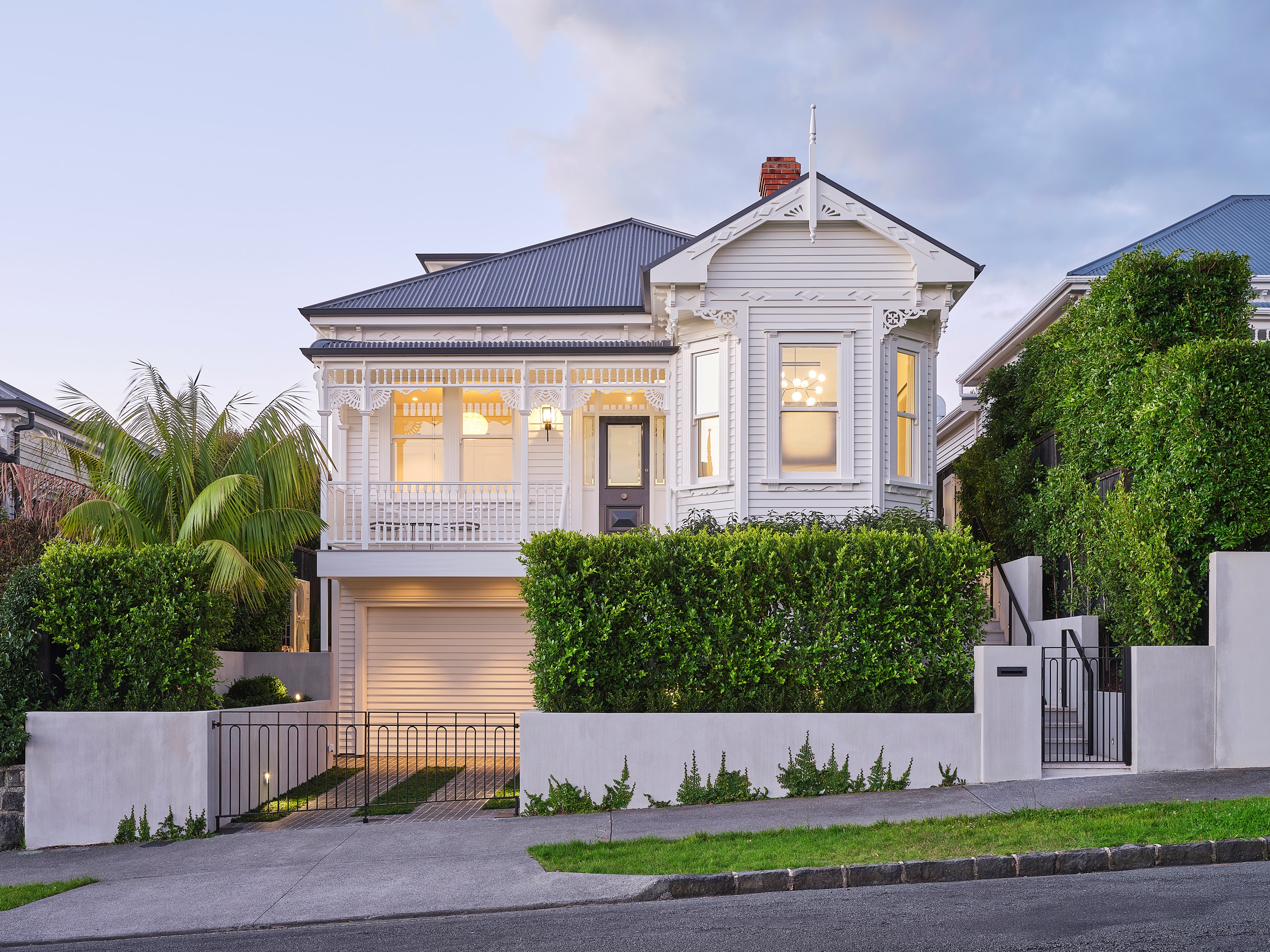 You could be forgiven for thinking this is an expertly and sensitively executed renovation of a charming central-city villa. Gables, bannisters, fretwork... tick, tick and tick. But, despite its heritage appearance, this home with four bedrooms, three bathrooms, two lounges and myriad extras is brand new. The villa that once stood here was in such bad repair Auckland Council allowed demolition in order for Paragon Developments to build a replica. The result is a win-win for the established neighbourhood and the owners who were keen on period character. This 390sqm project was no minor task. The site had to be dug out to accommodate a basement for a garage, wine cellar, office, bathroom, media room and bar.