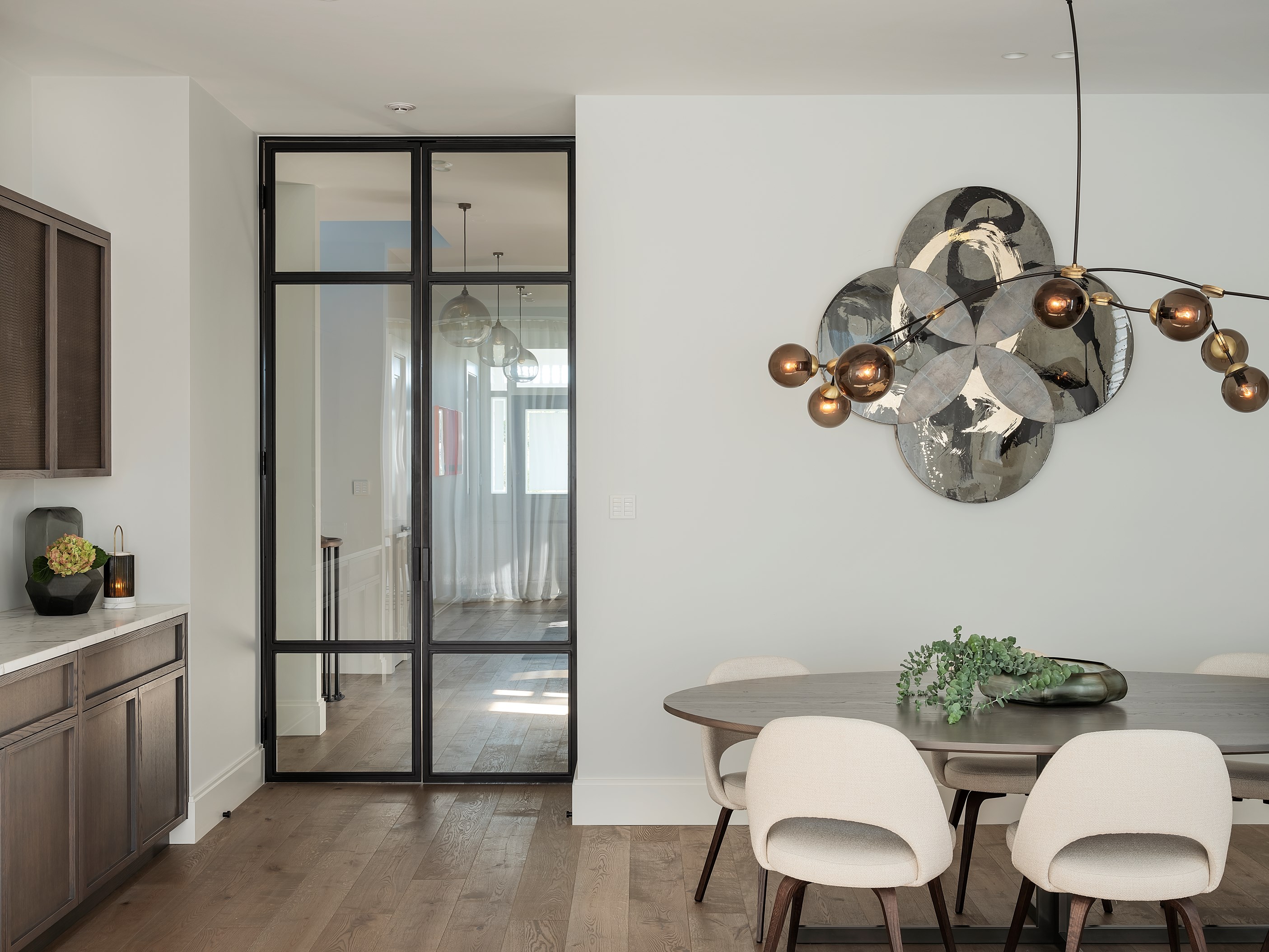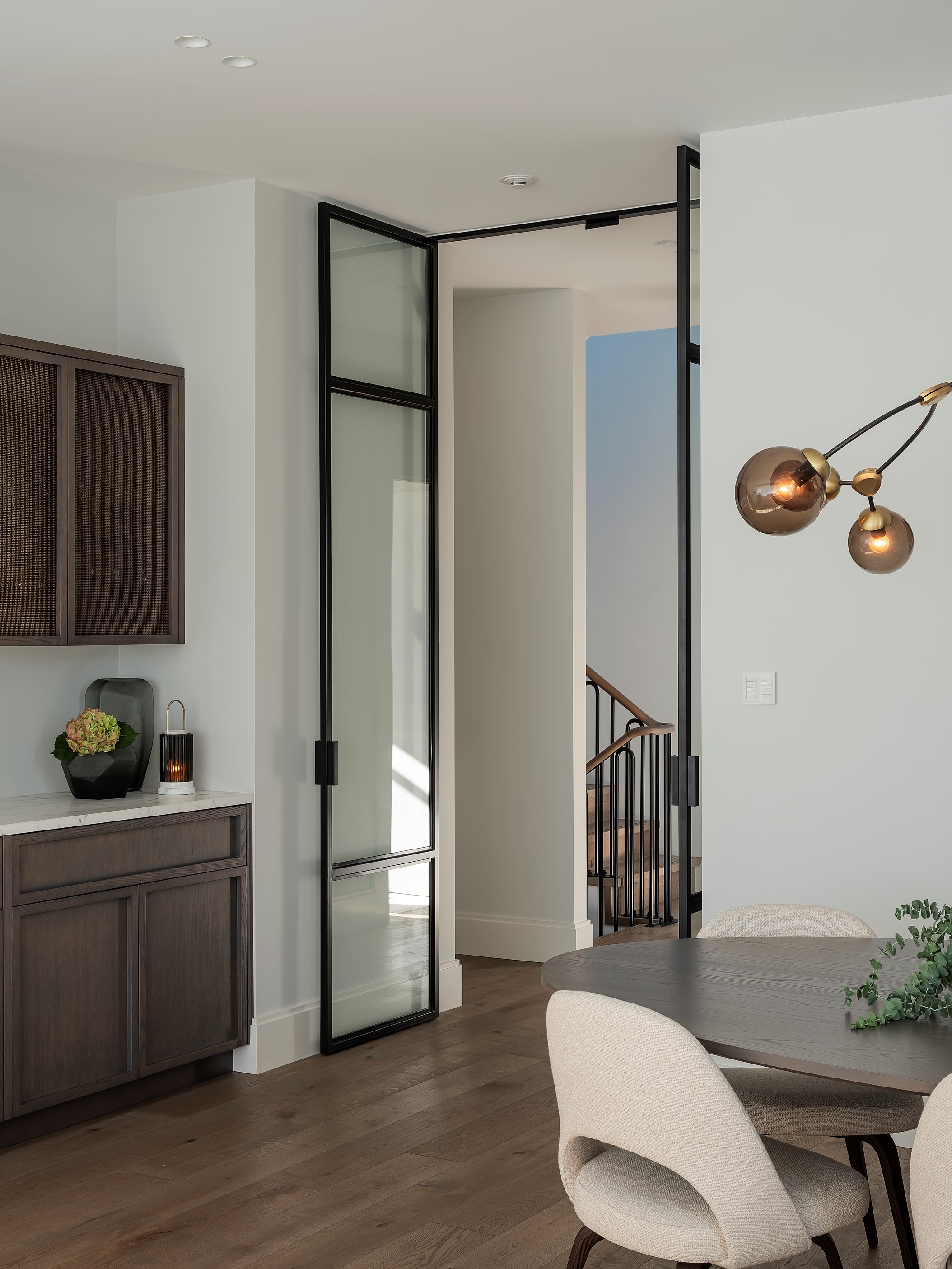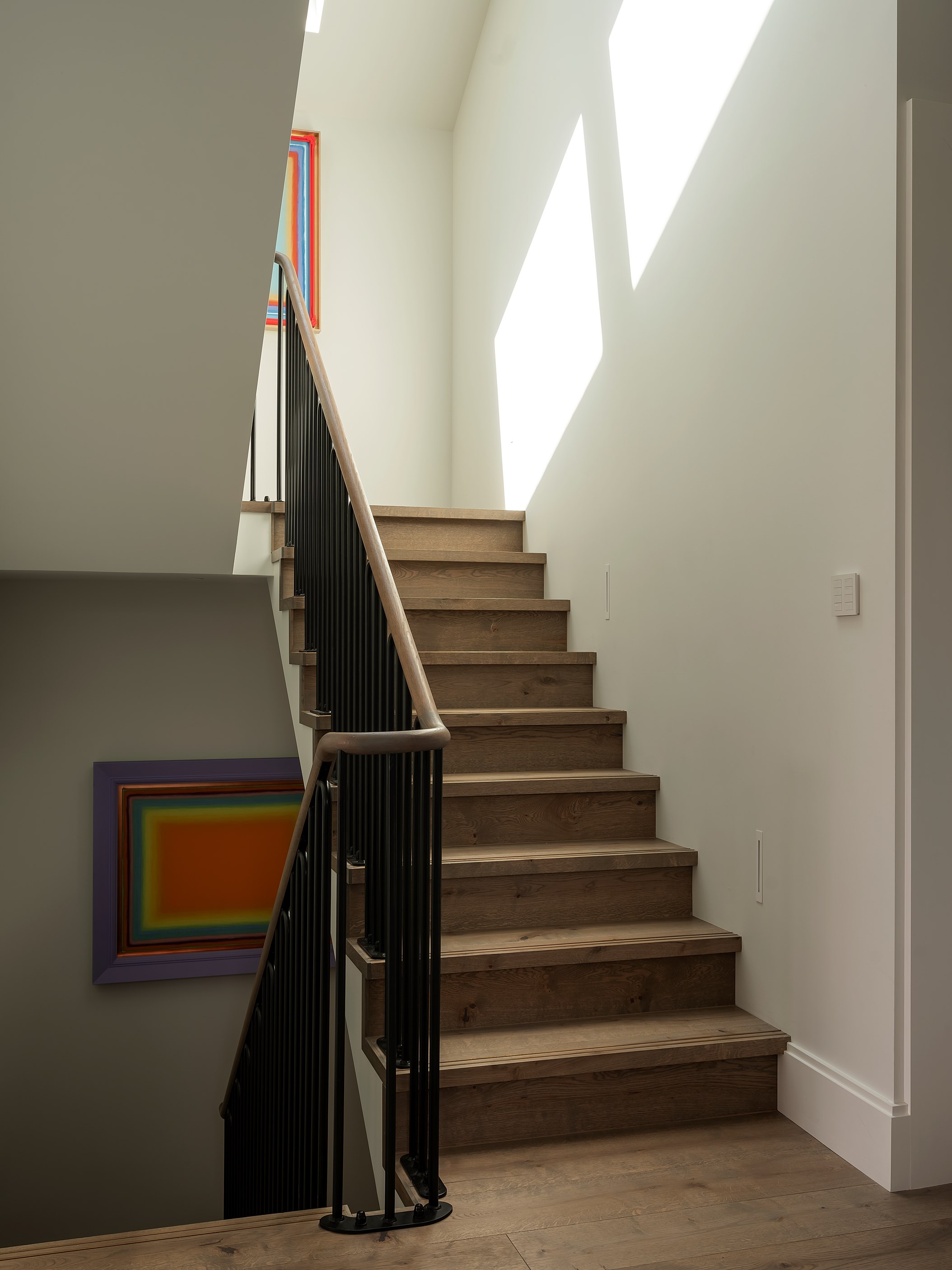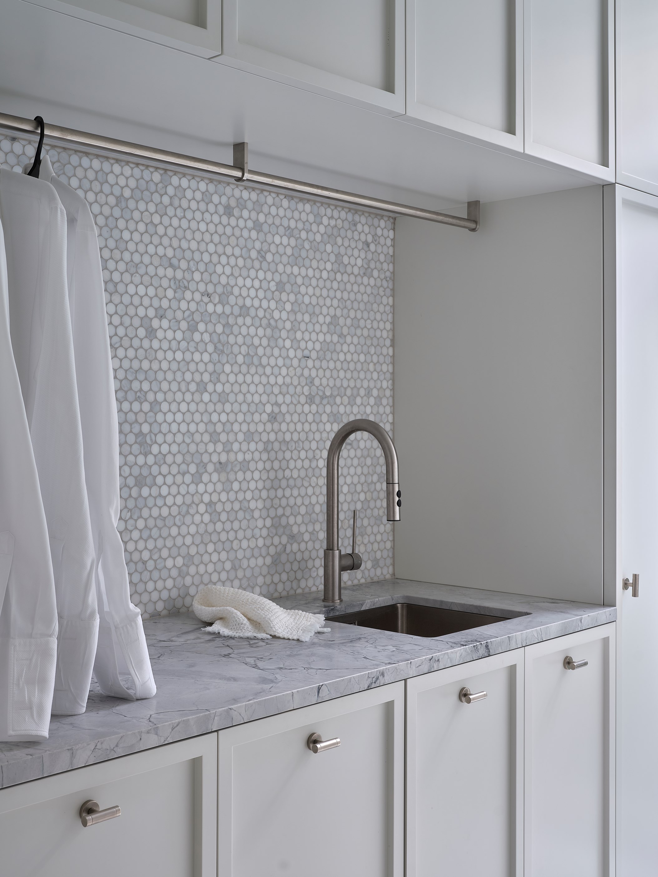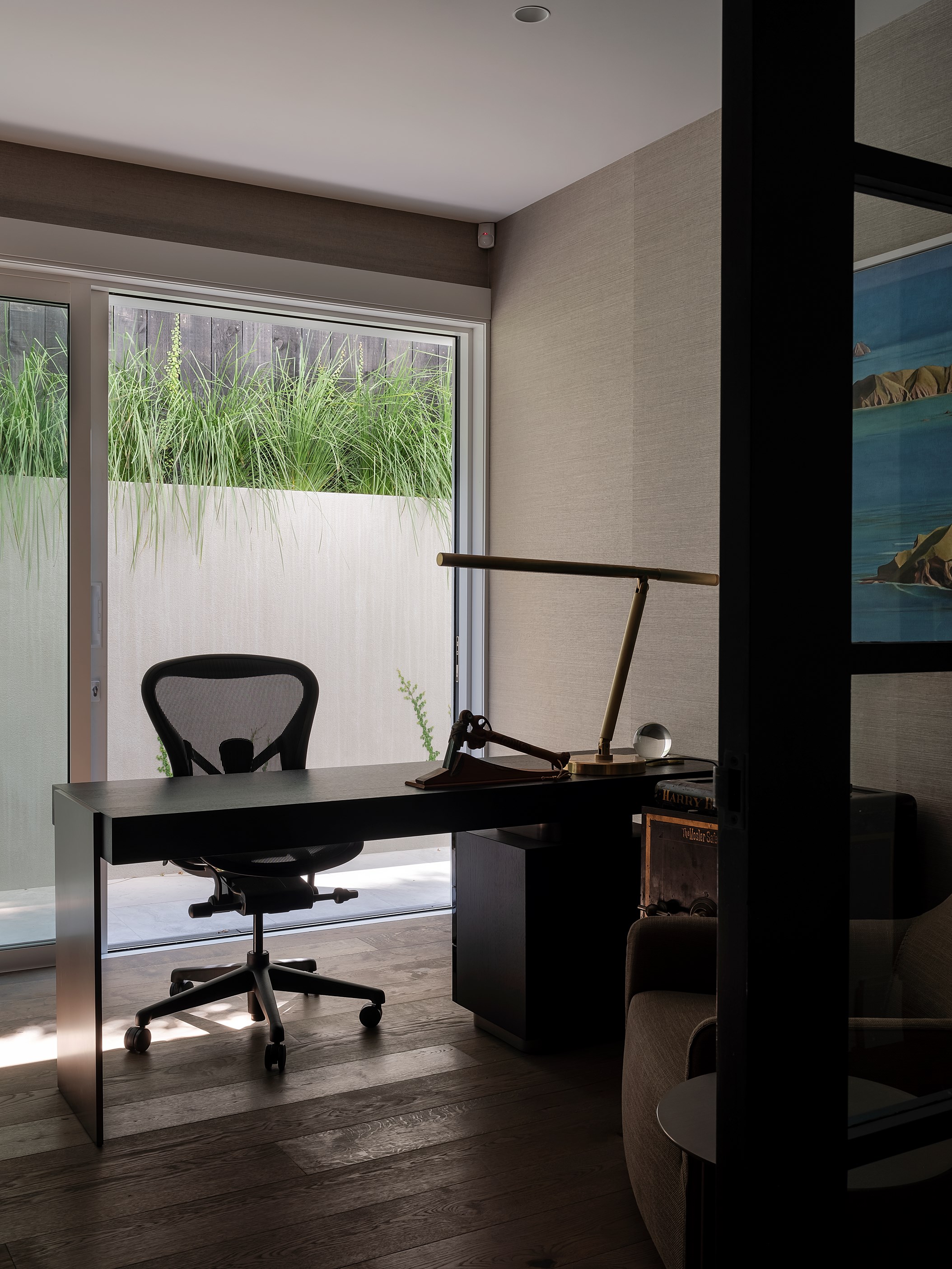 The middle floor, which is at ground level at the back of the section, has three bedrooms, a lounge, family room, laundry, guest powder room and an open-plan living, dining, kitchen zone with scullery. This opens to a covered entertaining area that overlooks the pool. The top floor is within the roof and has been cleverly designed to contain the main bedroom, ensuite and walk-in dressing room. When it came to attention to detail, there was no compromising – and it shows. The slick kitchen and built-in shelving are just a couple of examples. It might look traditional, but the house also has the latest in technology – six separate sound zones and a system which controls lighting, extraction fans, outdoor heaters, the garage door and more.