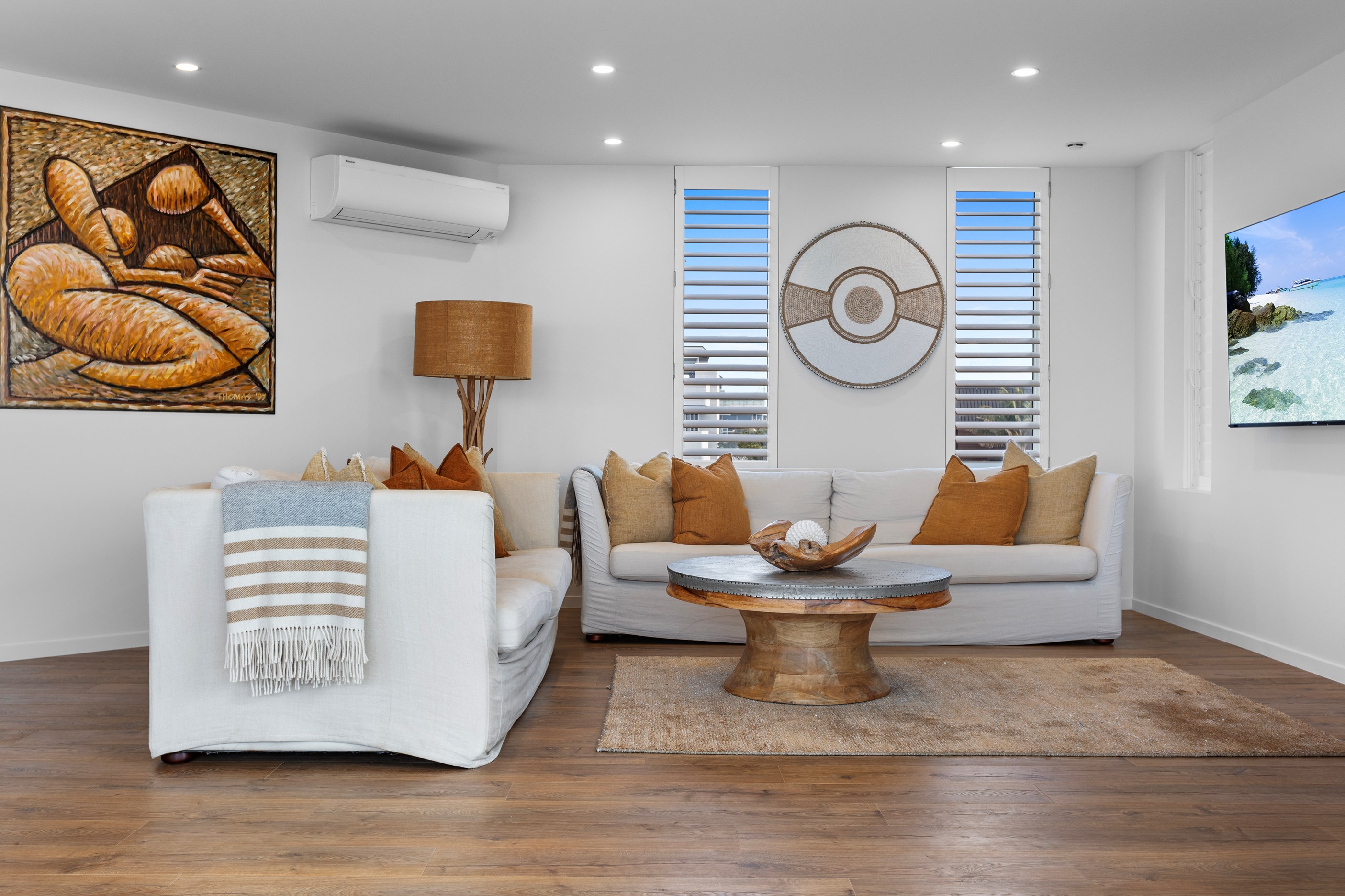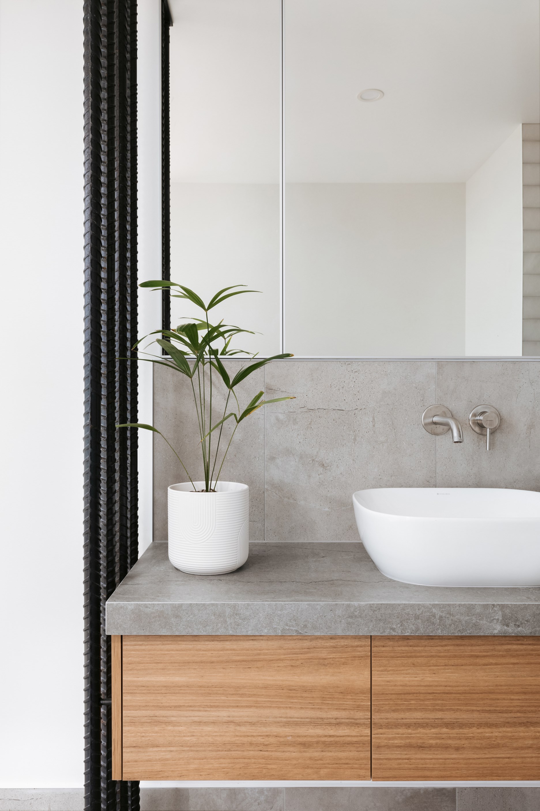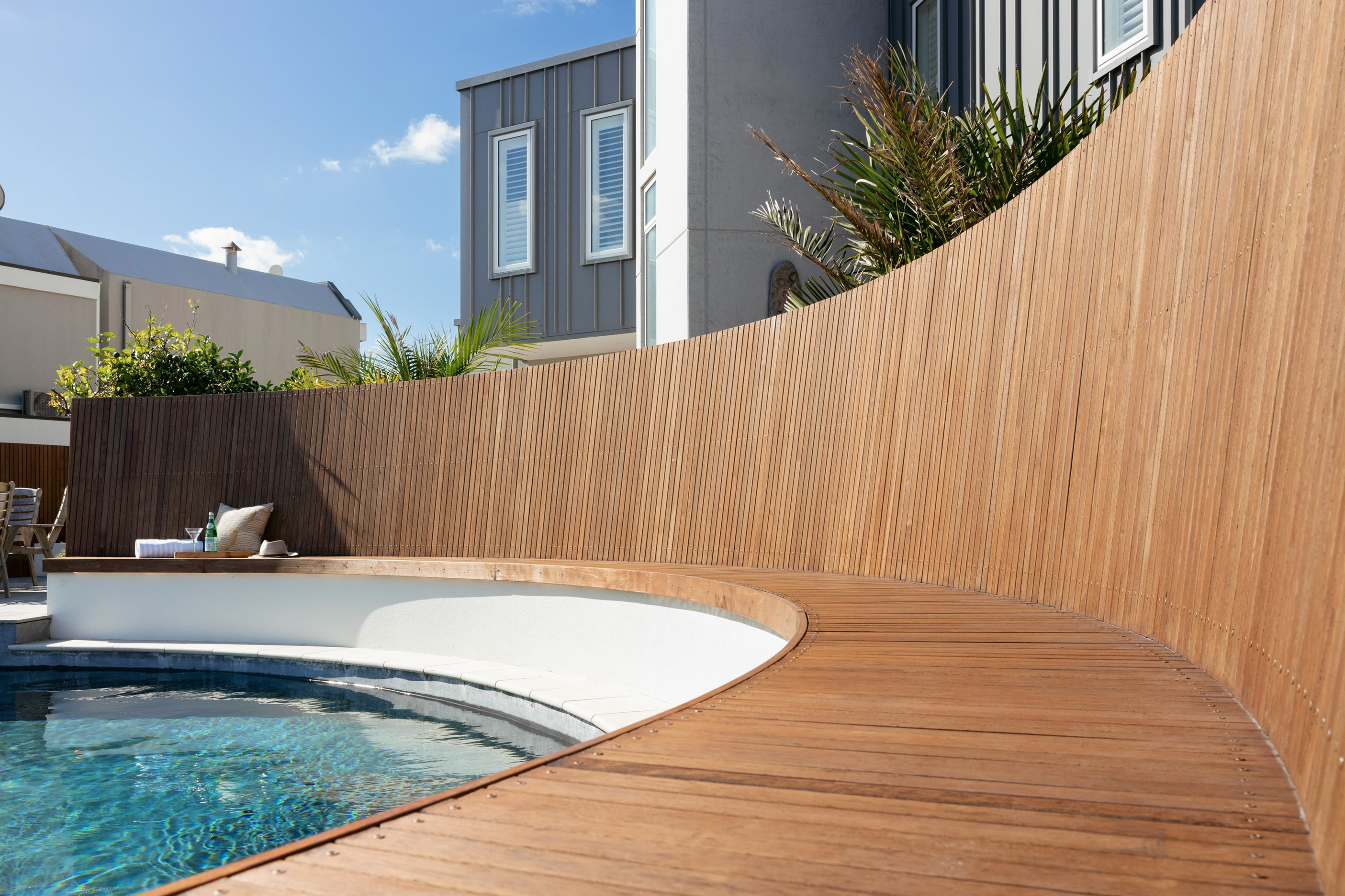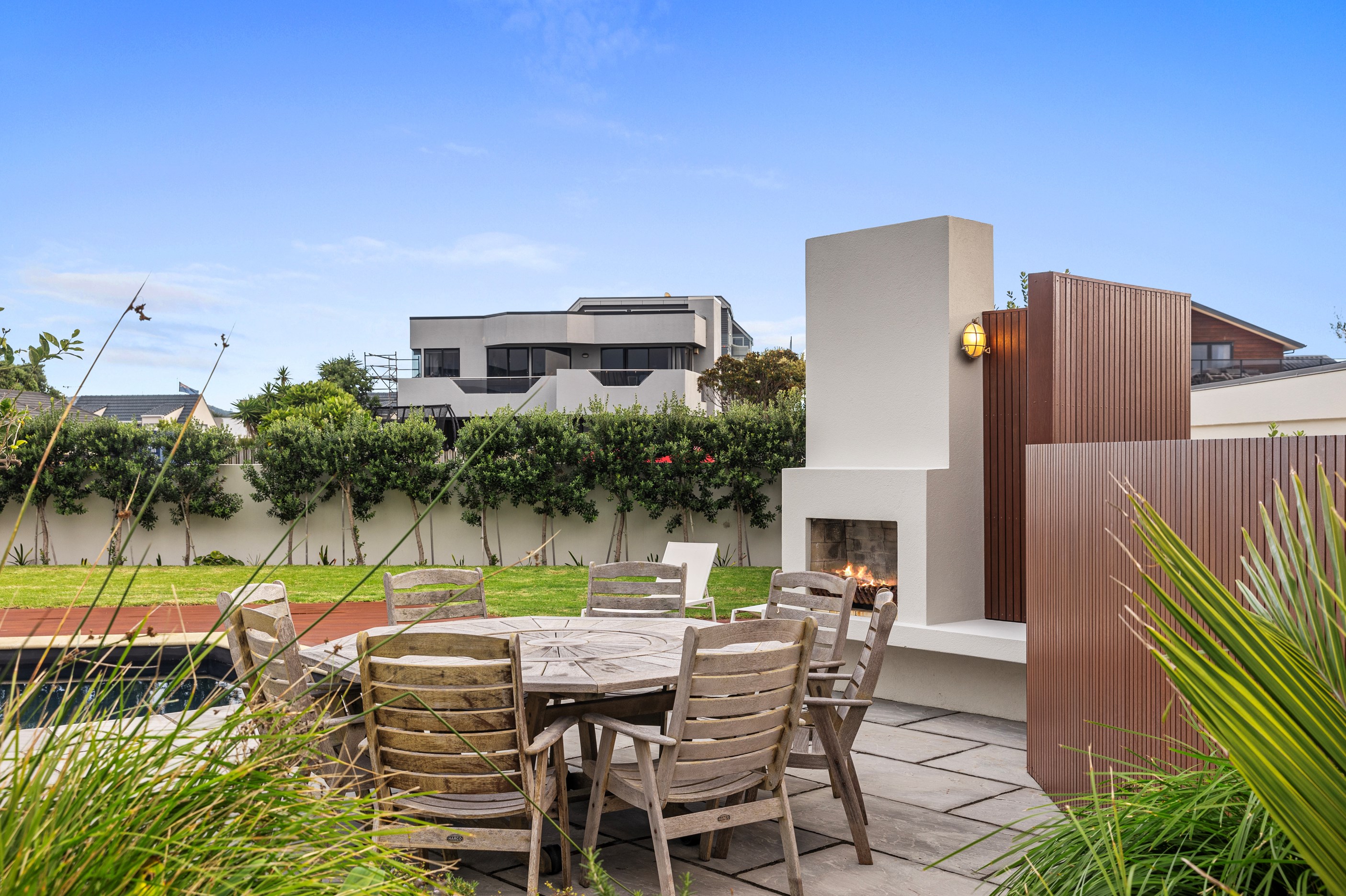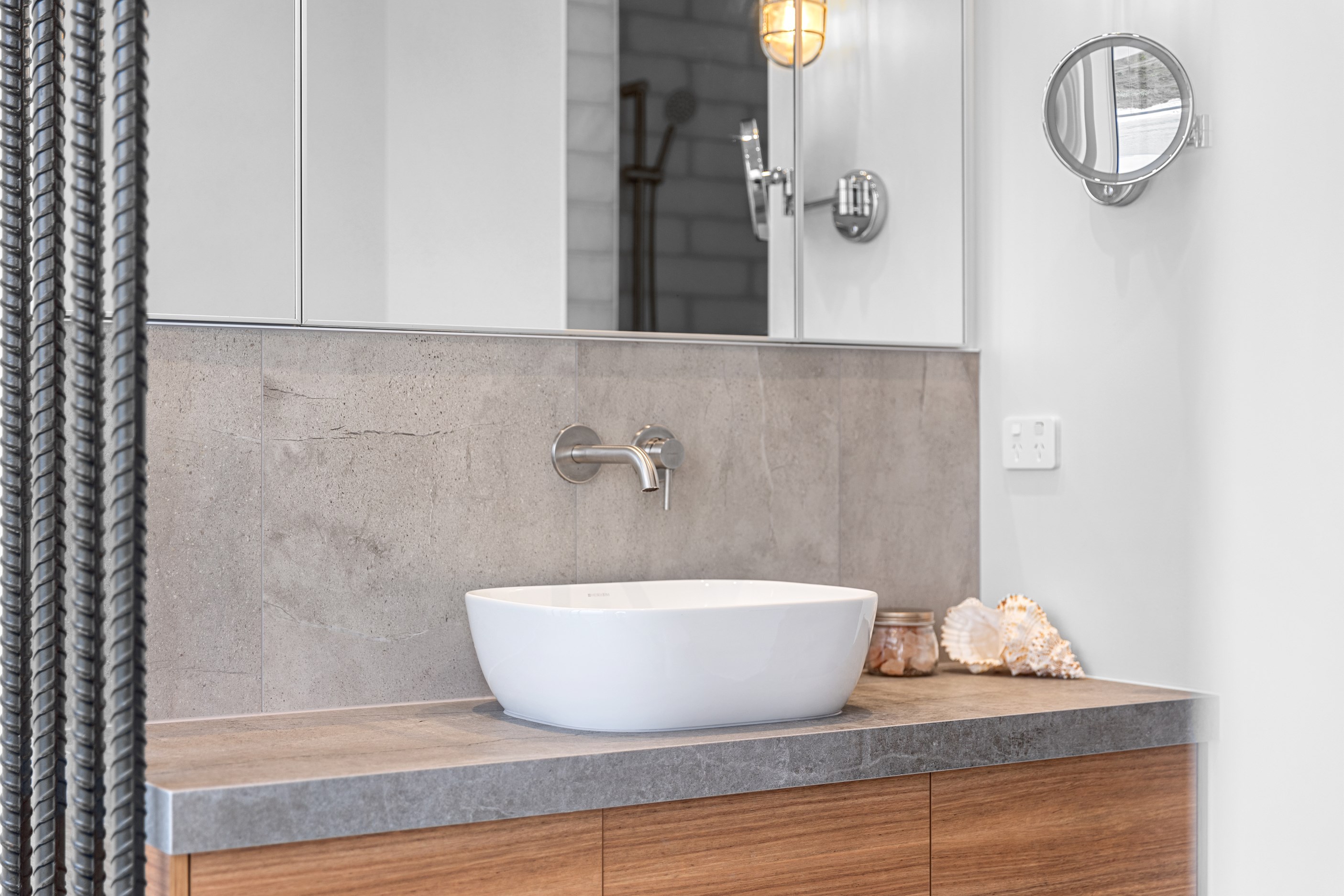 Nestling serenely among the sand dunes of Mount Maunganui beach, a high-end metamorphosis has breathed new life into a dated waterfront property that now stands as a testament to the power of restoration, craftsmanship and innovative design. The ambitious project has infused modern aesthetics into every facet of the residence, including reshaping the structure. A lowmaintenance concrete-plaster system, with the look of precast concrete panels, rejuvenates the exterior adding sophistication, robustness and timeless appeal. Vertical rolled-seam trays, arranged in a captivating pattern, add contrast and texture. Making the most of the panoramic coastal views, all interior spaces have been opened up for comfortable living, with swathes of glass doors allowing the indoors to seamlessly integrate with the outdoors and the ocean beyond.