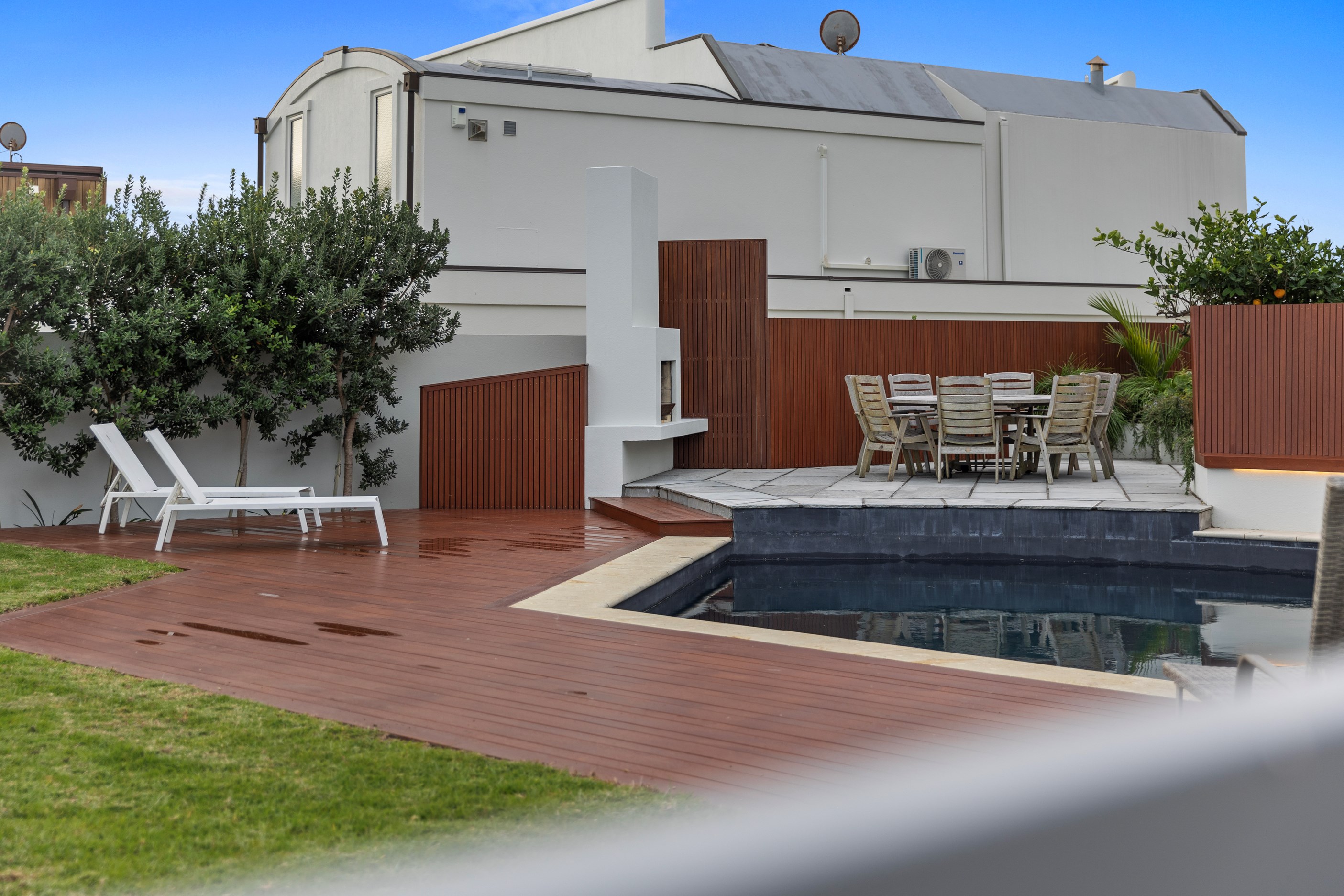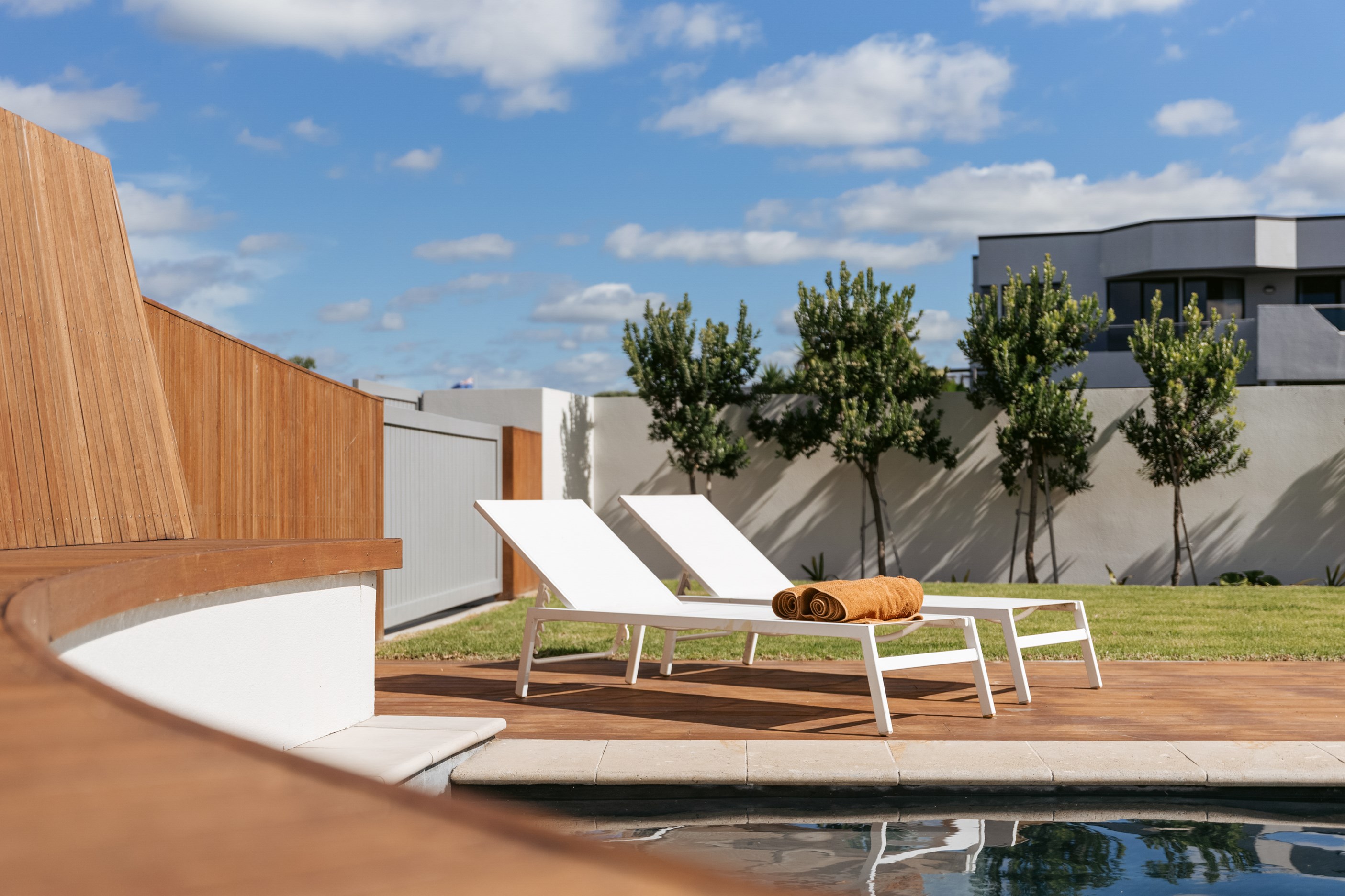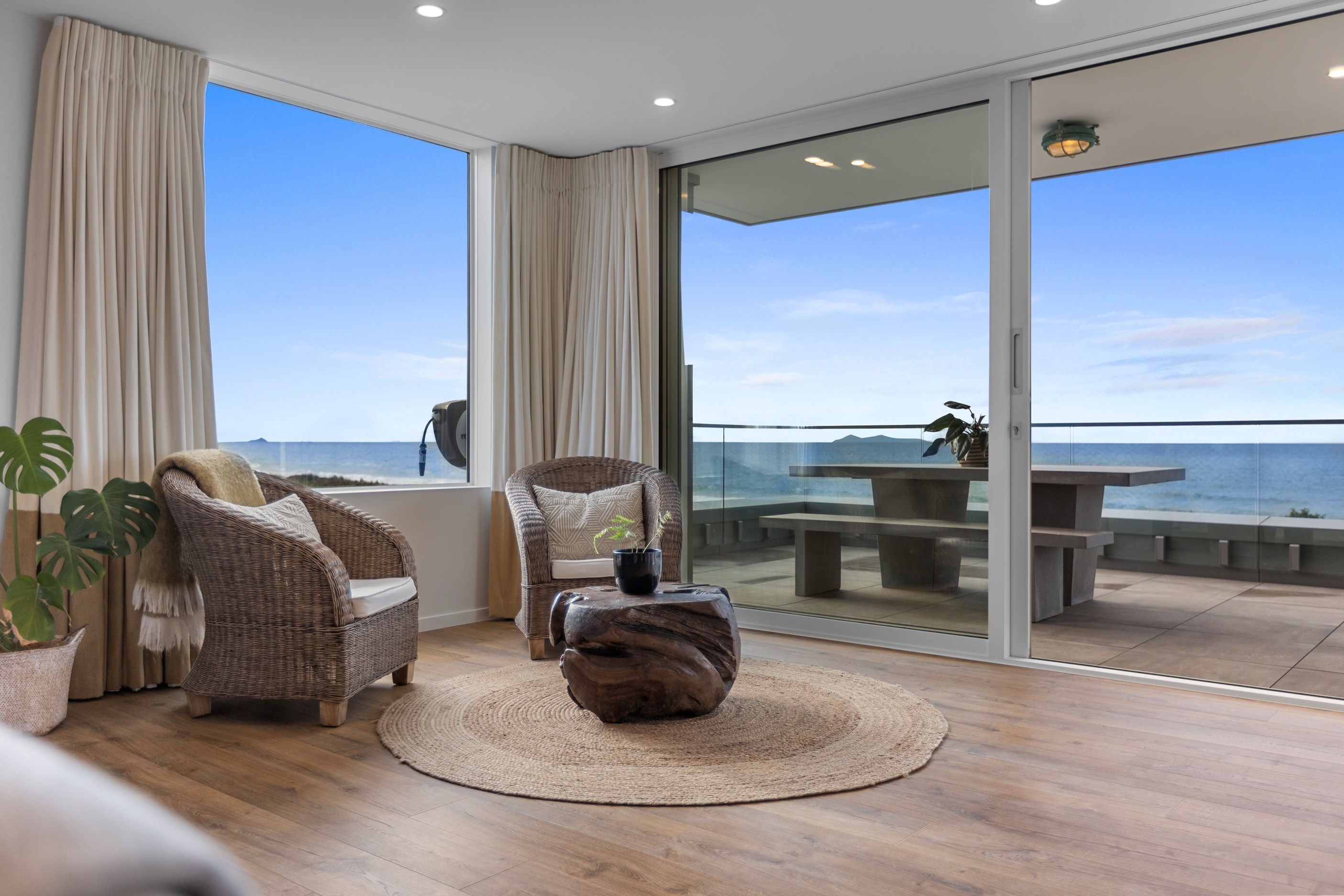 The spacious ground-floor entrance heralds the generous proportions of this threestorey home comprising two living rooms, five bedrooms and three bathrooms. Literally topping the splendour off is the private main suite with wrap-around deck in which to luxuriate. Everywhere you turn on each level, vantage points capture the ever-changing hues of the ocean, reflecting a journey of transformation where architectural innovation meets the tranquillity of coastal living.