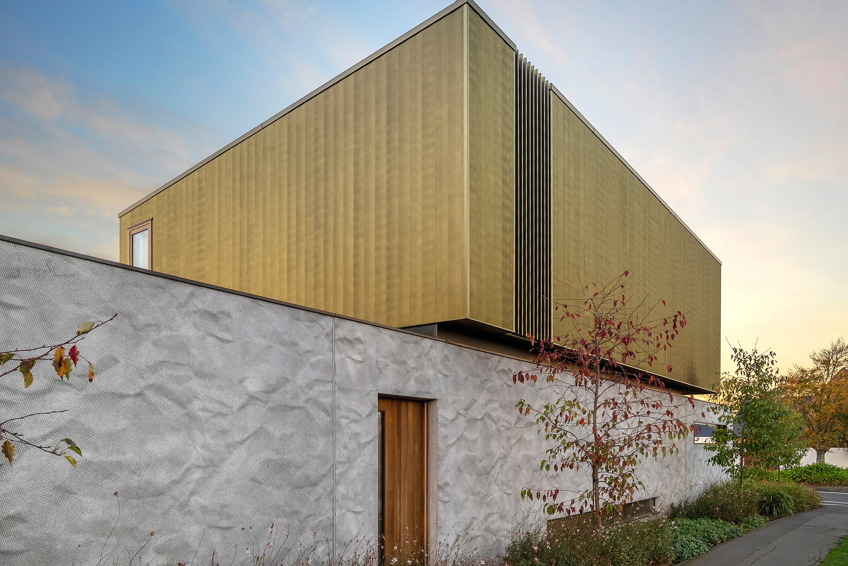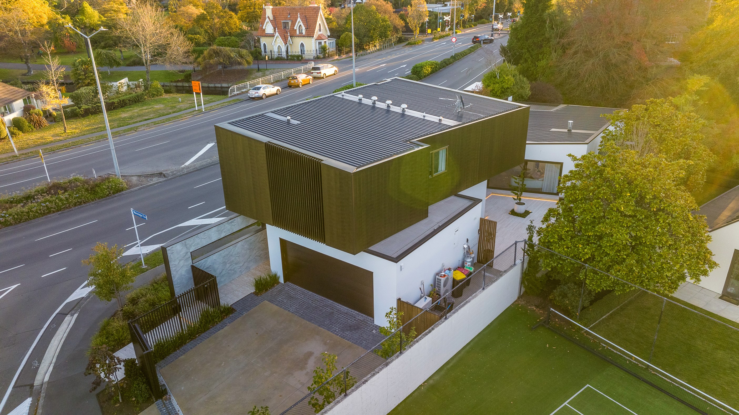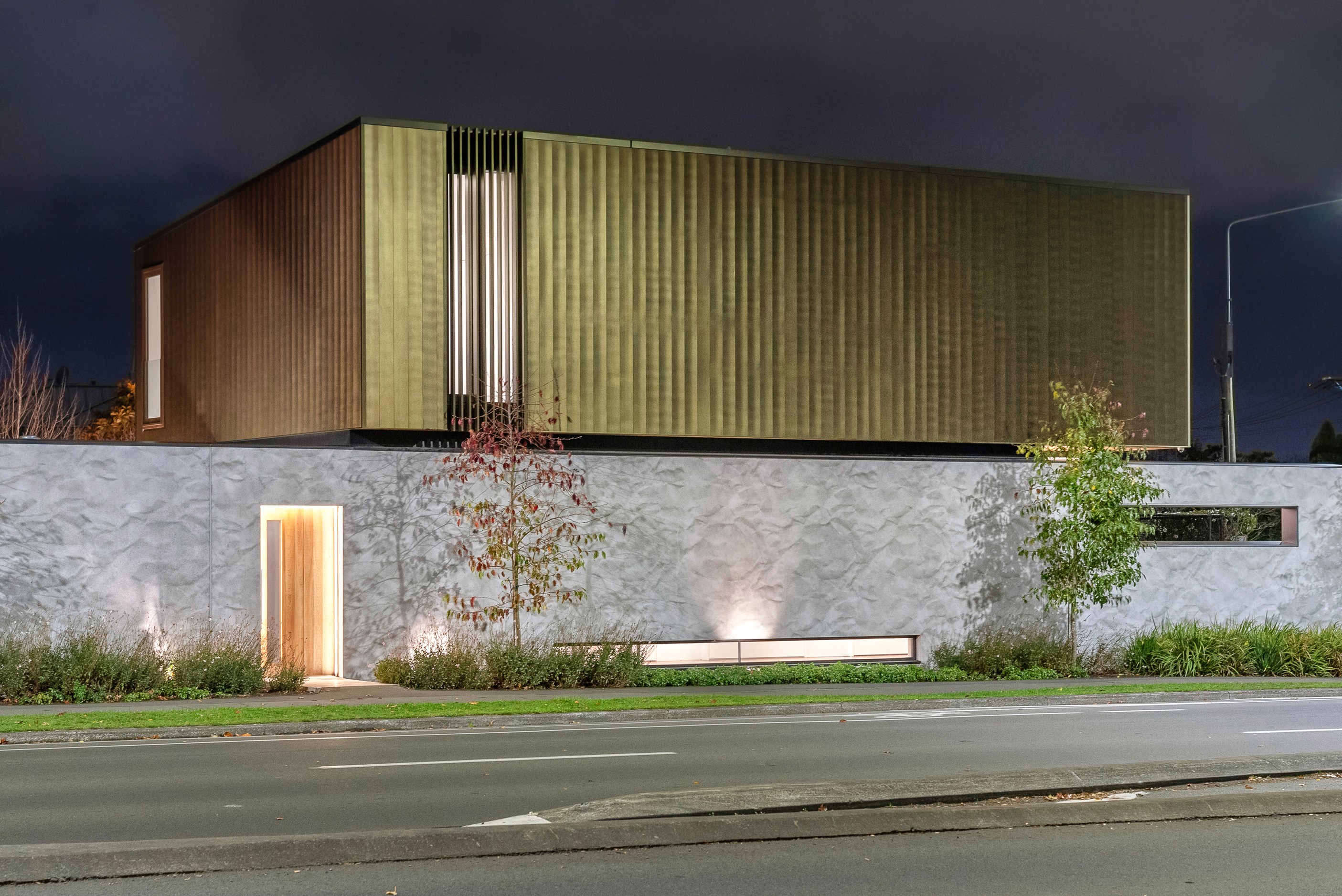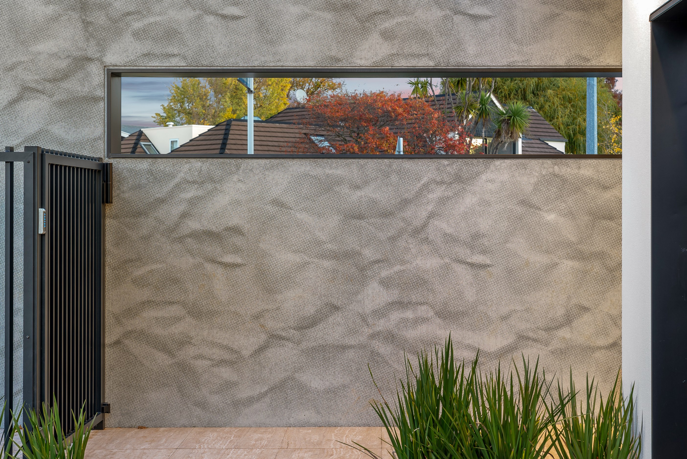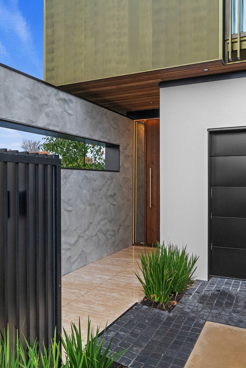 This show-stopping home is full of innovative surprises and design features, starting with its striking street appeal. The exterior has Nu-wall cladding, its shimmering green-gold hue changing in the sunlight. Graphic precast panels cast a 3D effect, creating a feature wall that brings a dynamic look to the lower level. This clever panel doubles as a fence that insulates the house from road noise. Elsewhere tasteful touches have been integrated into every room, the layout ensuring a restful sense of being and flow.