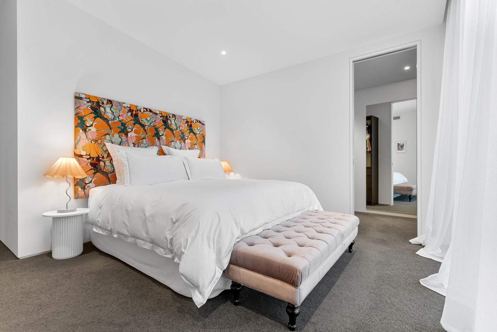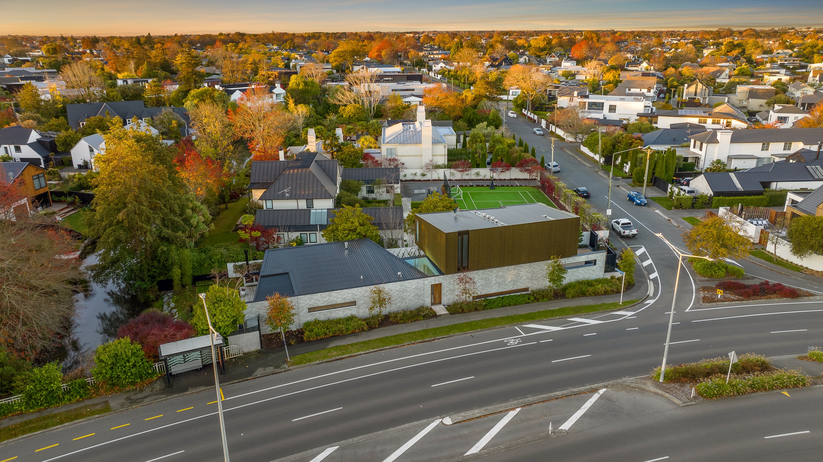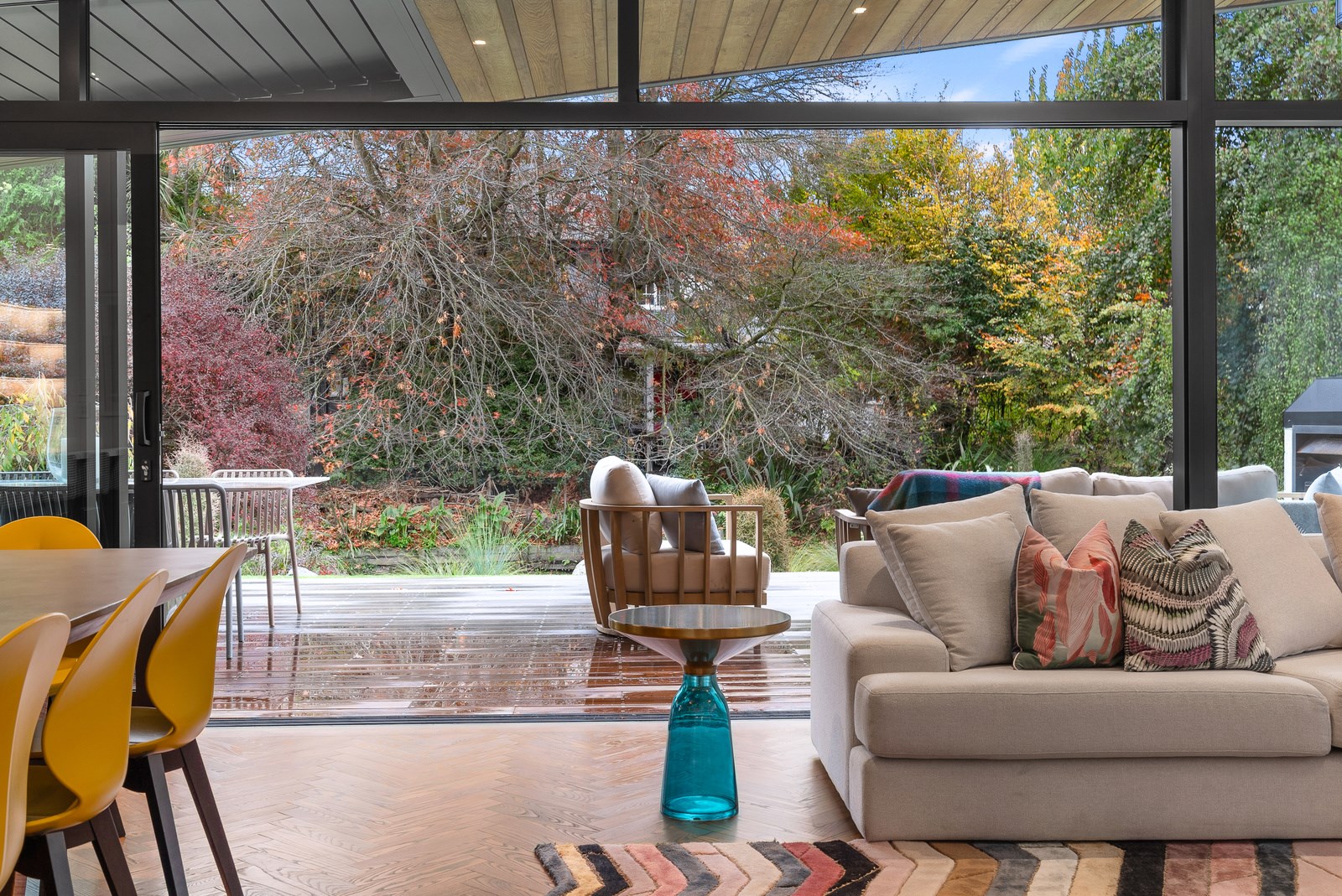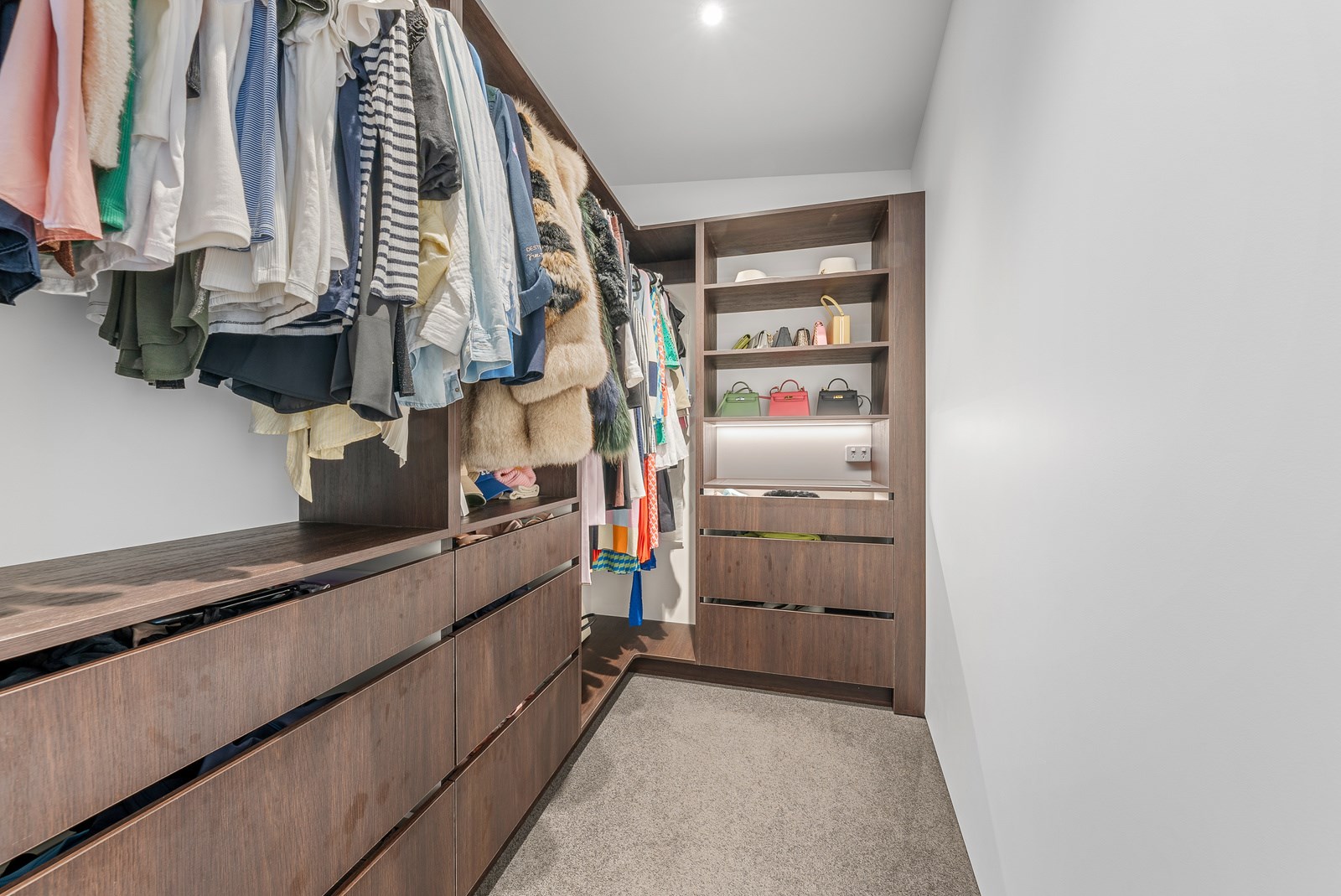 This show-stopping home is full of innovative surprises and design features, starting with its striking street appeal. The exterior has Nu-wall cladding, its shimmering green-gold hue changing in the sunlight. Graphic precast panels cast a 3D effect, creating a feature wall that brings a dynamic look to the lower level. This clever panel doubles as a fence that insulates the house from road noise. Elsewhere tasteful touches have been integrated into every room, the layout ensuring a restful sense of being and flow.