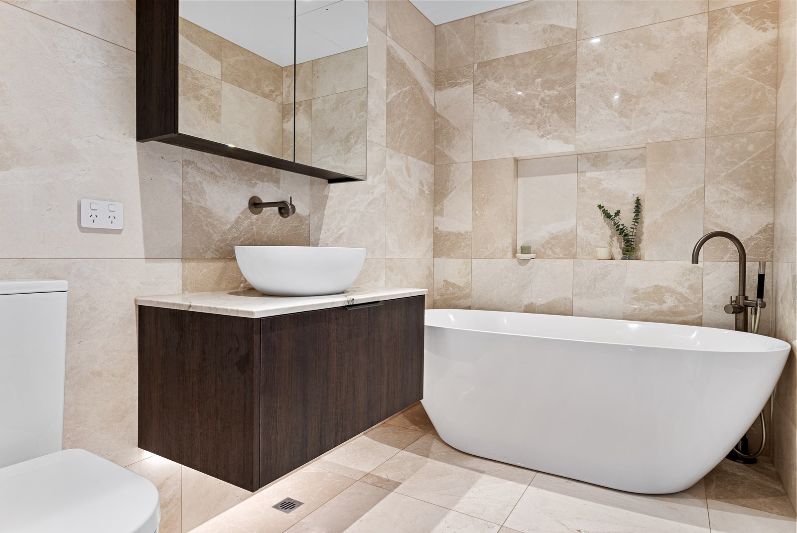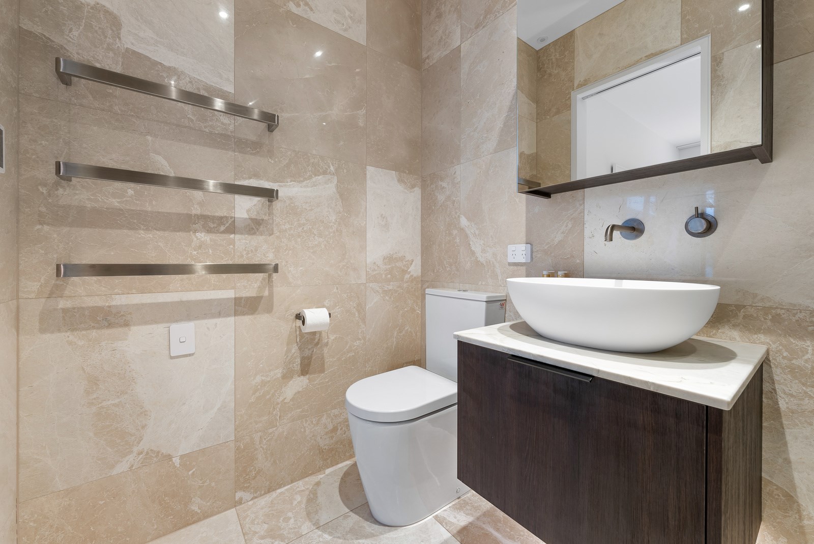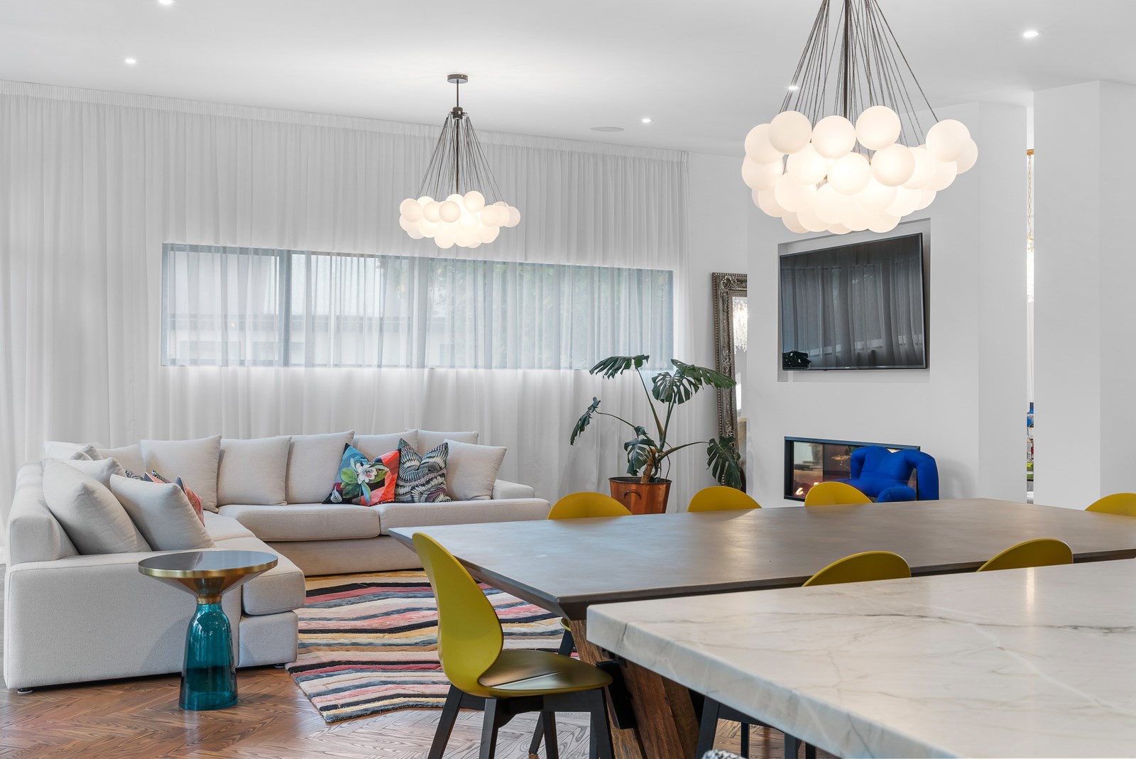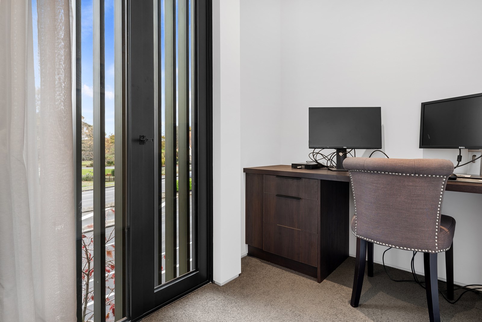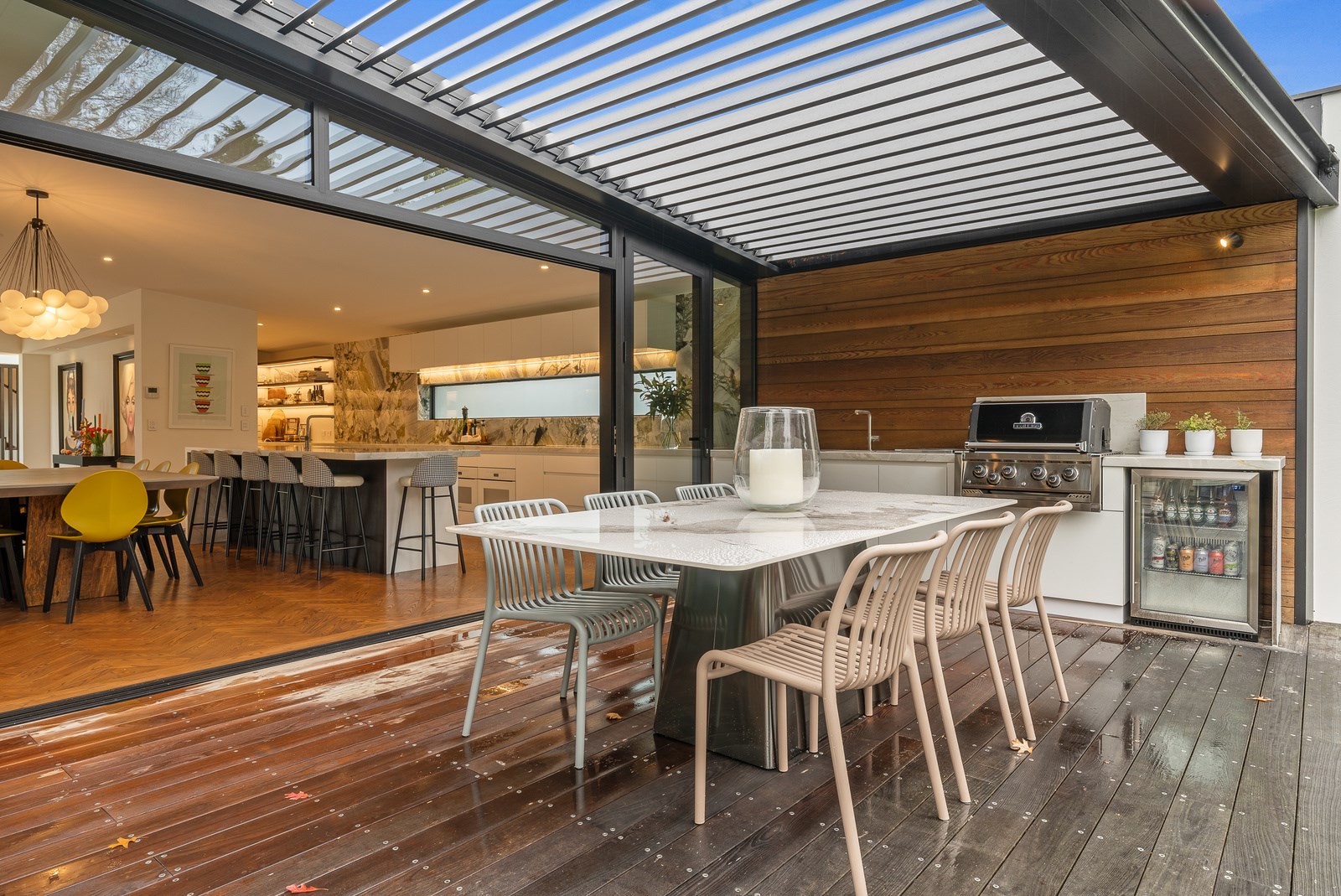 This show-stopping home is full of innovative surprises and design features, starting with its striking street appeal. The exterior has Nu-wall cladding, its shimmering green-gold hue changing in the sunlight. Graphic precast panels cast a 3D effect, creating a feature wall that brings a dynamic look to the lower level. This clever panel doubles as a fence that insulates the house from road noise. Elsewhere tasteful touches have been integrated into every room, the layout ensuring a restful sense of being and flow.
