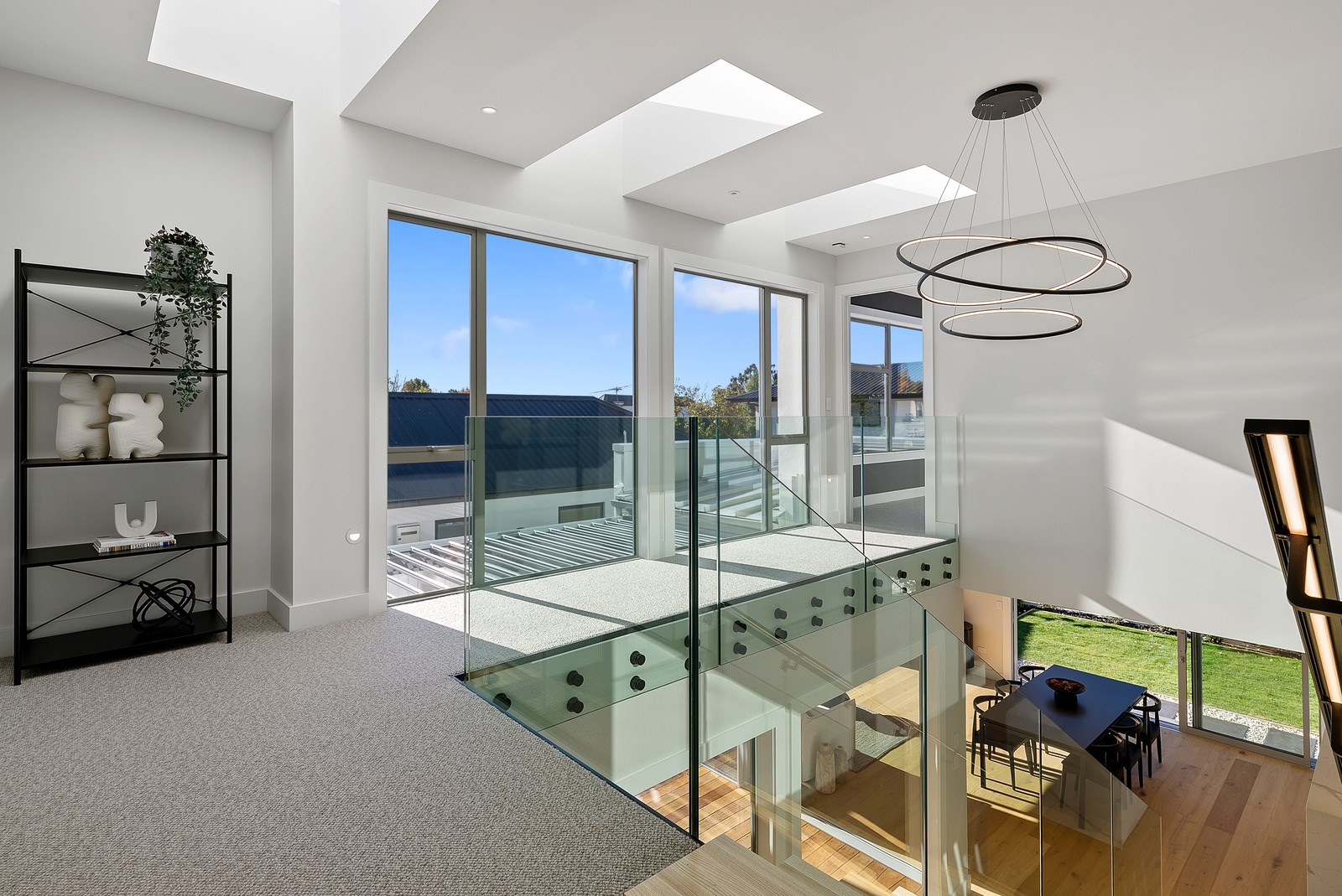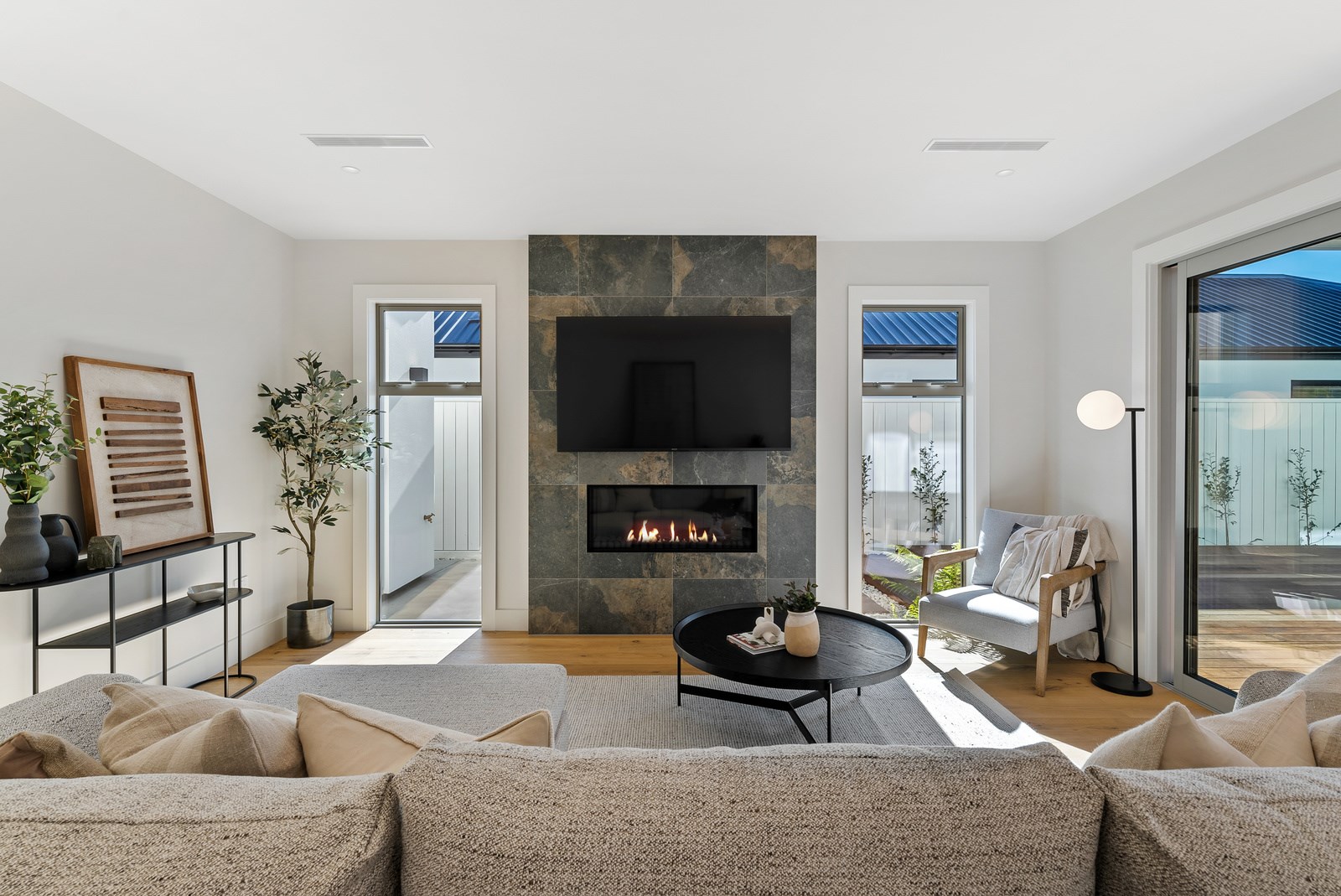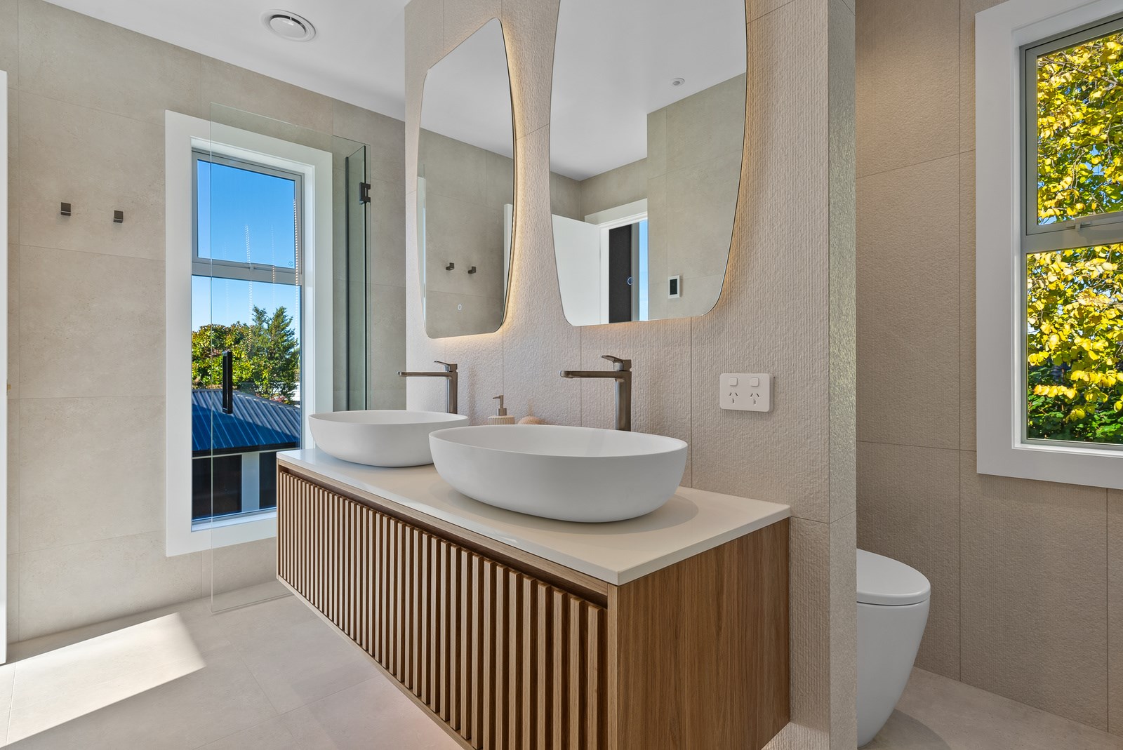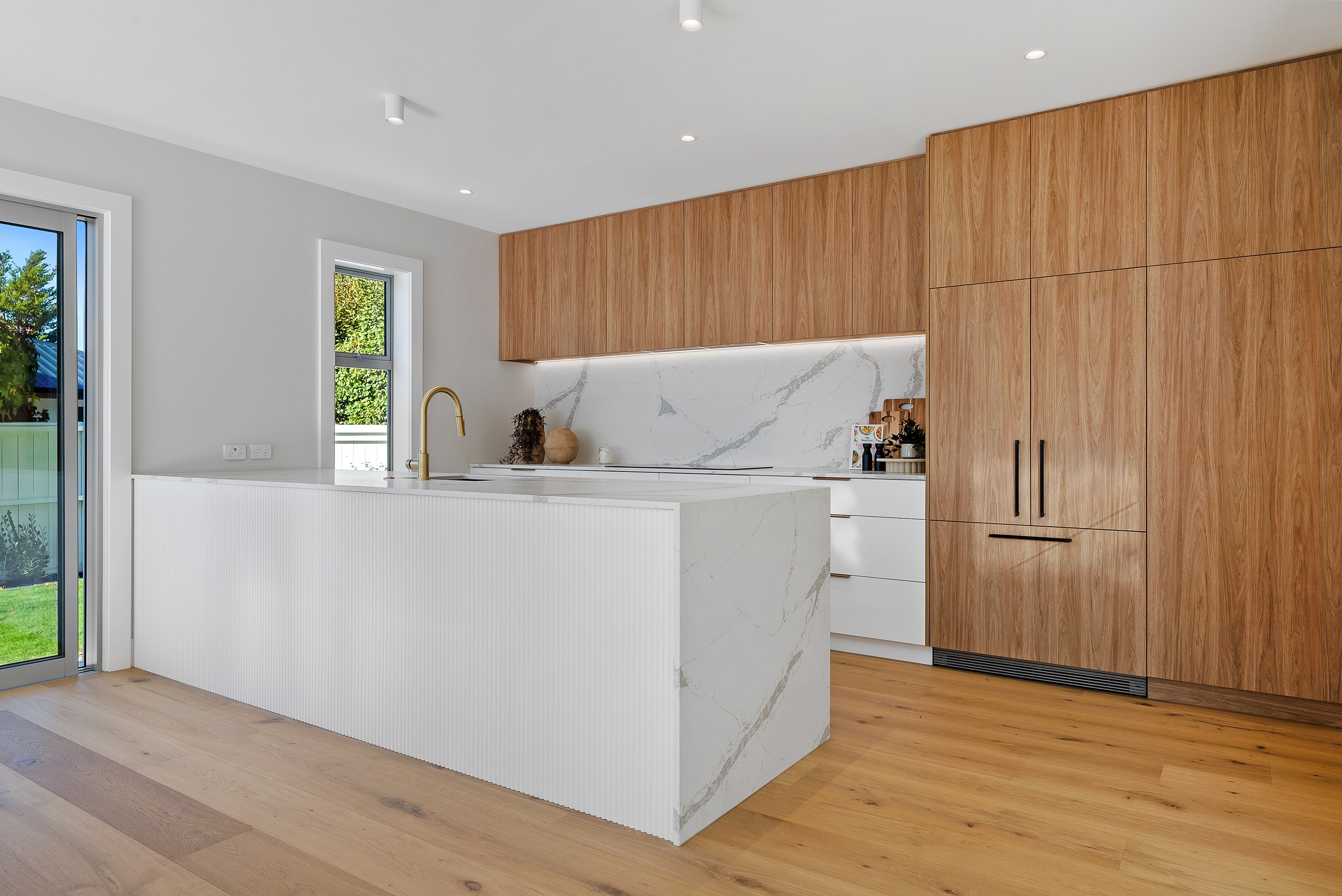 Yes, sustainably built smart homes can be beautiful, as this four-bedroom showhome for Design Builders Canterbury illustrates. Both its bold exterior and serene interior were built with meticulous attention paid to ensuring natural light, privacy and spatial harmony throughout. The heart of this showhome is its entertainer’s kitchen (complete with scullery), a luxurious combination of wood, marble and elegant up-lighting. The bathrooms are just as opulent, with three rainheads in one ensuite shower, floor-to-ceiling tiling and deep baths for soaking in.