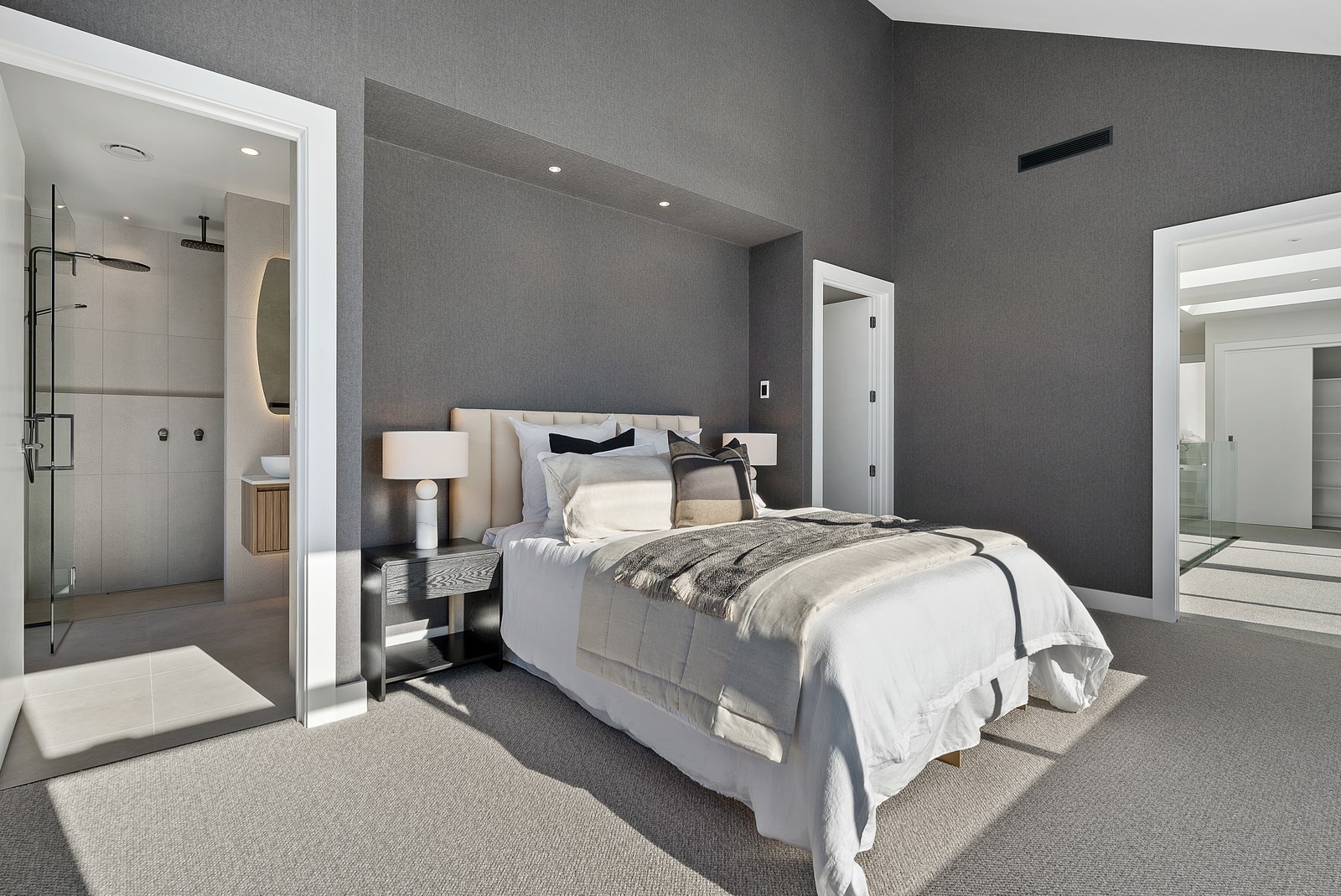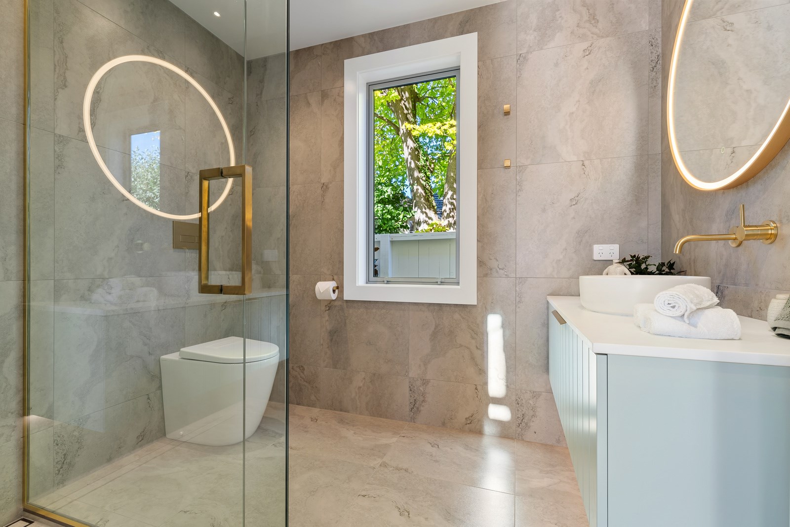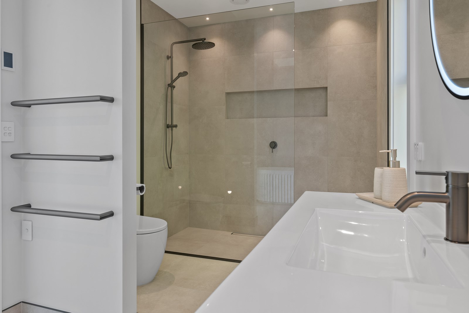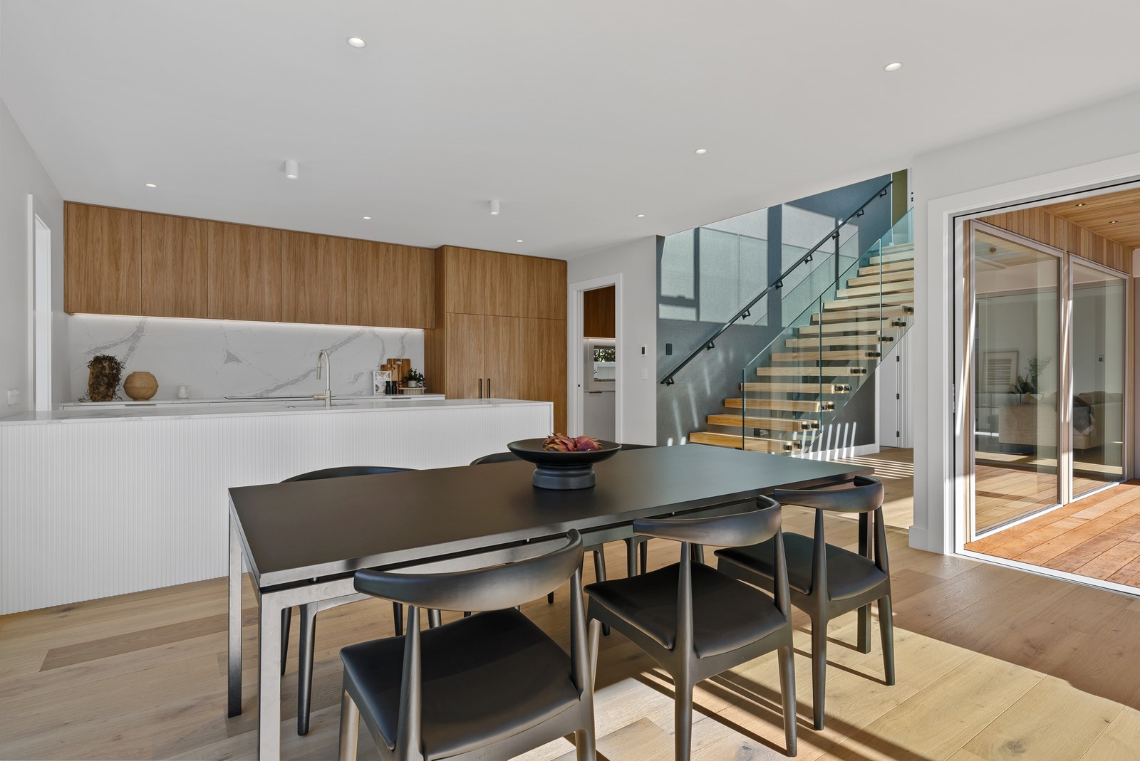 Yes, sustainably built smart homes can be beautiful, as this four-bedroom showhome for Design Builders Canterbury illustrates. Both its bold exterior and serene interior were built with meticulous attention paid to ensuring natural light, privacy and spatial harmony throughout. The heart of this showhome is its entertainer’s kitchen (complete with scullery), a luxurious combination of wood, marble and elegant up-lighting. The bathrooms are just as opulent, with three rainheads in one ensuite shower, floor-to-ceiling tiling and deep baths for soaking in.
