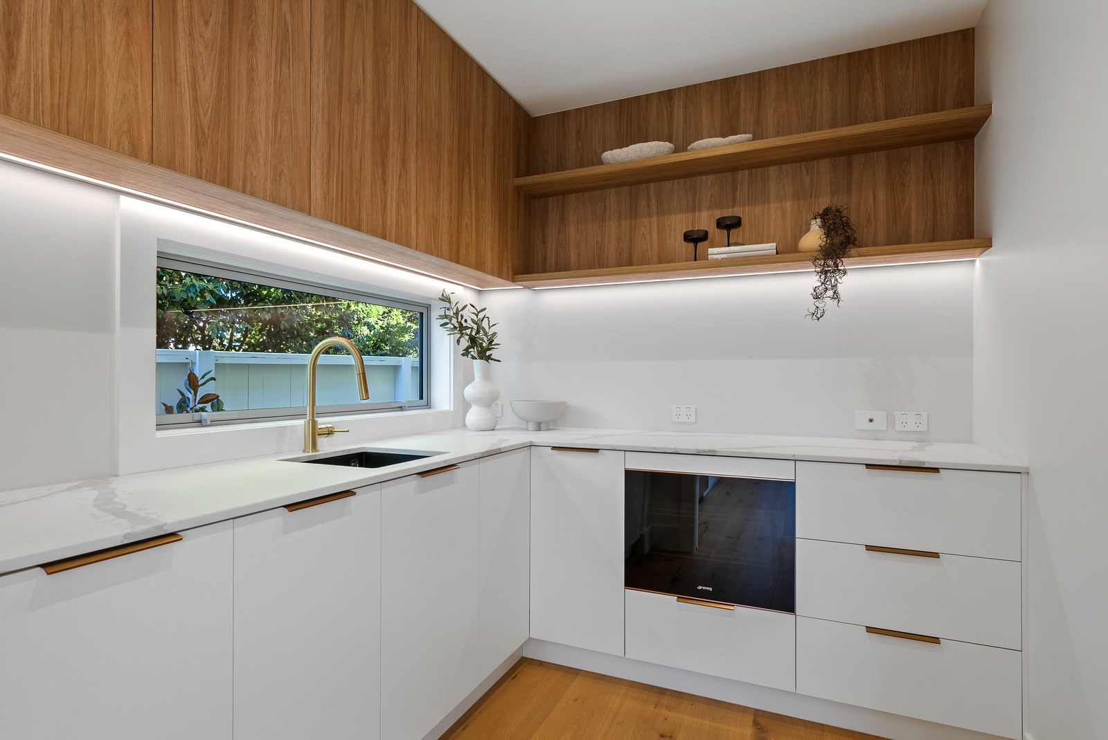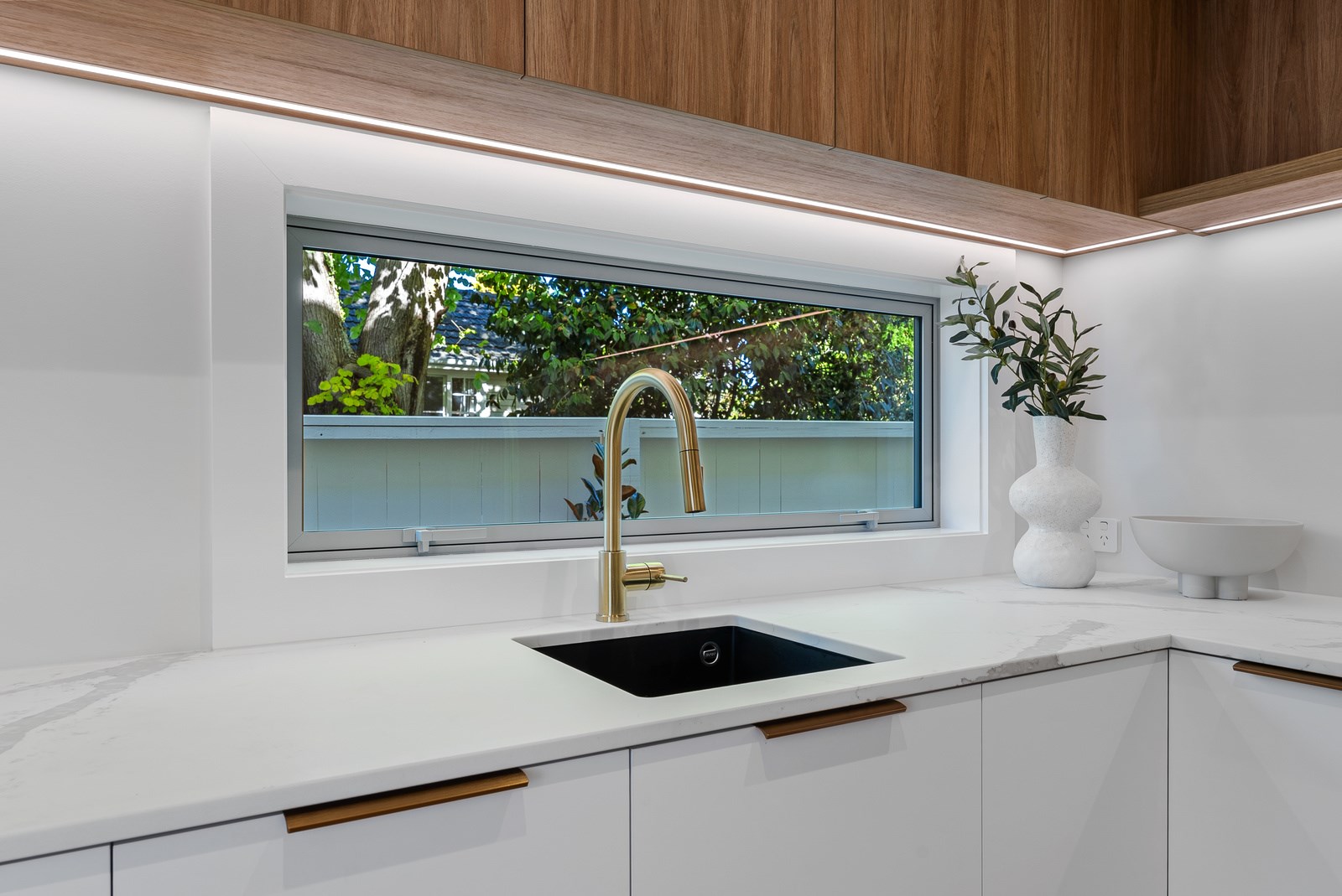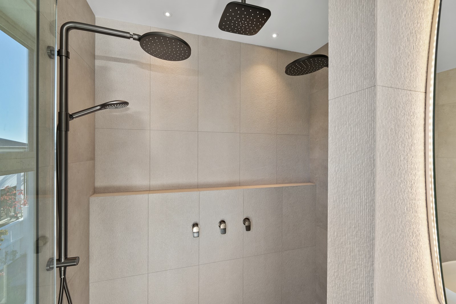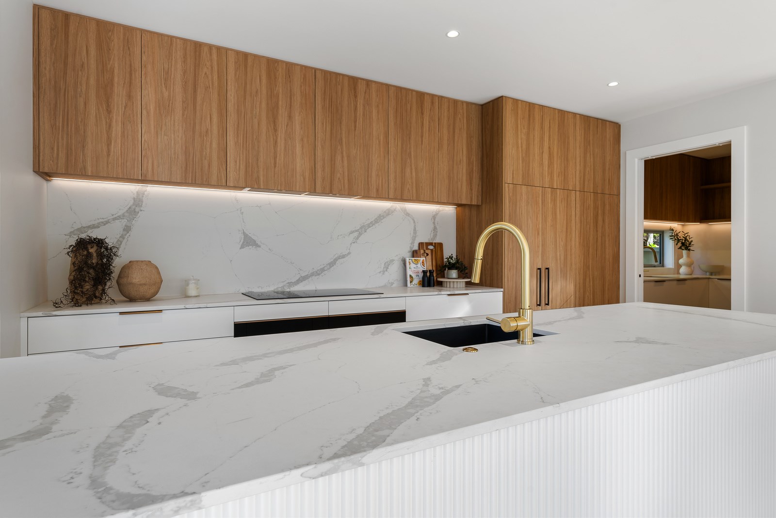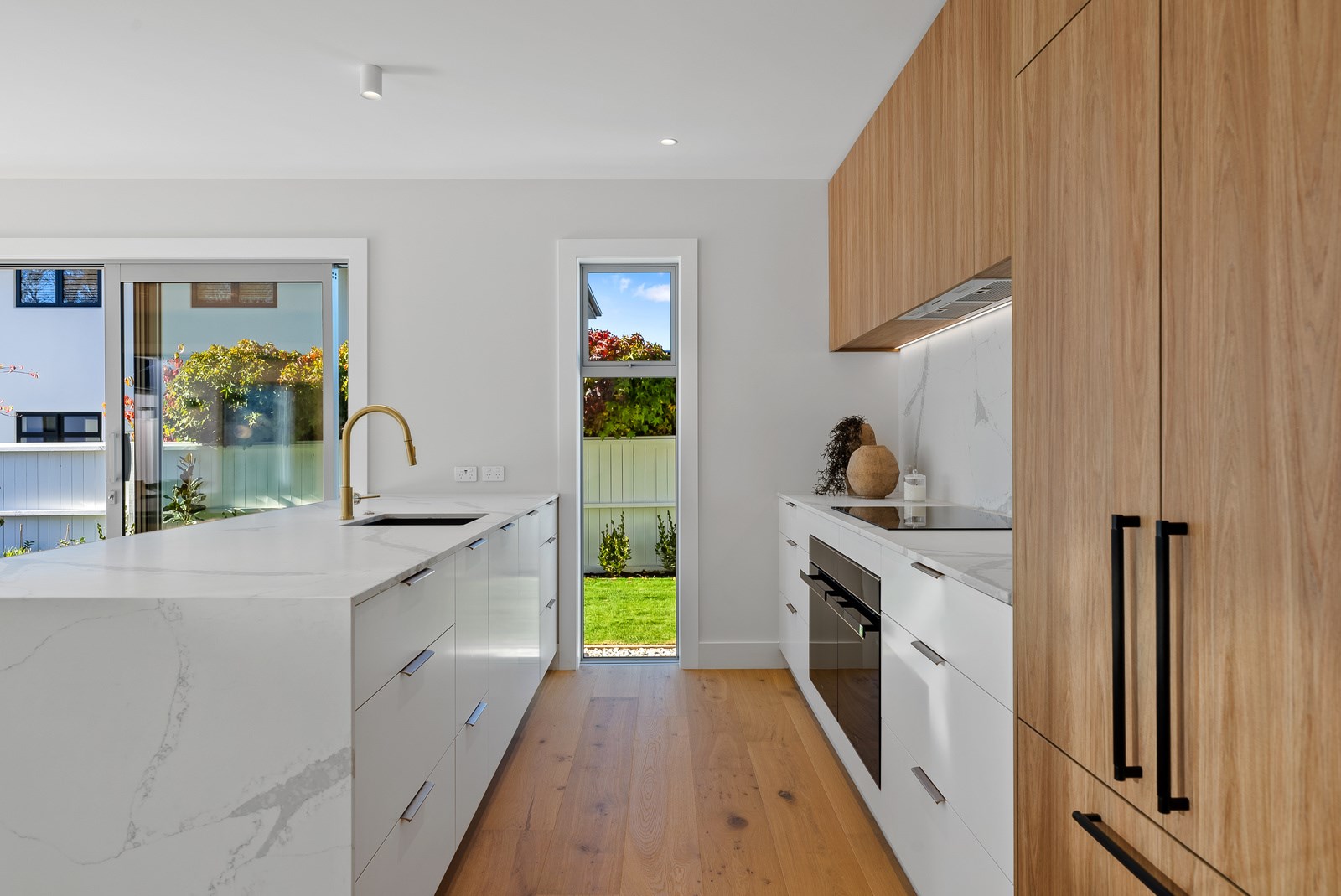 Yes, sustainably built smart homes can be beautiful, as this four-bedroom showhome for Design Builders Canterbury illustrates. Both its bold exterior and serene interior were built with meticulous attention paid to ensuring natural light, privacy and spatial harmony throughout. The heart of this showhome is its entertainer’s kitchen (complete with scullery), a luxurious combination of wood, marble and elegant up-lighting. The bathrooms are just as opulent, with three rainheads in one ensuite shower, floor-to-ceiling tiling and deep baths for soaking in.