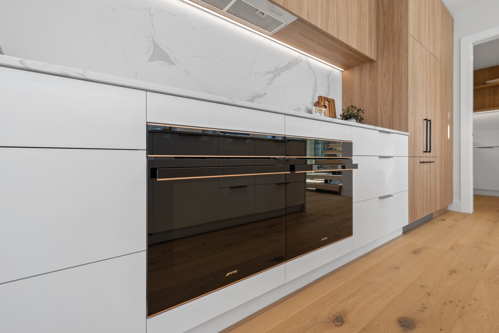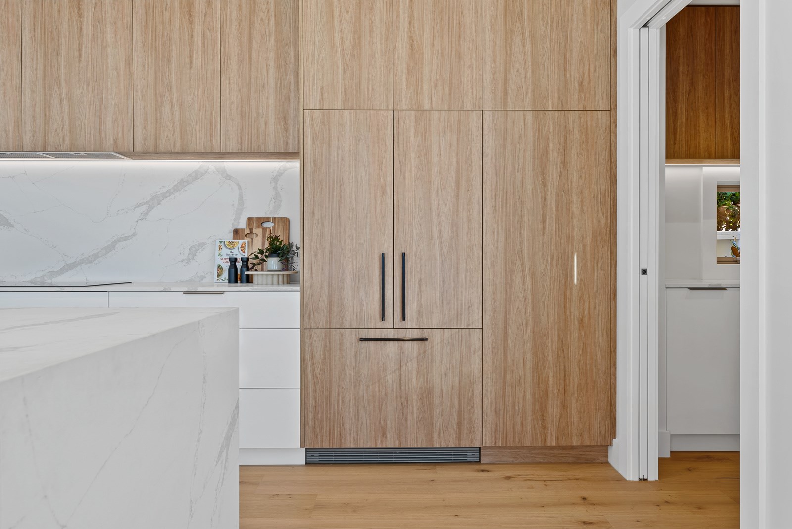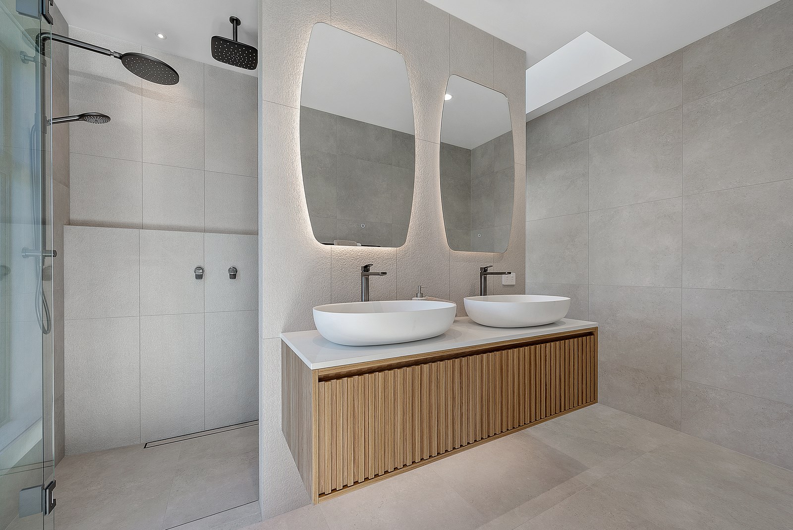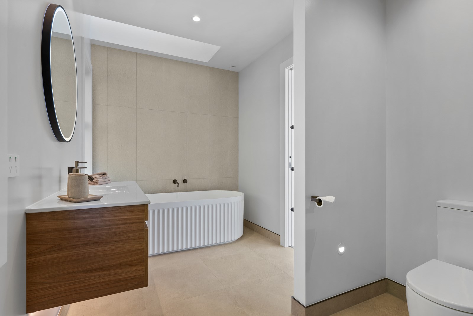 Yes, sustainably built smart homes can be beautiful, as this four-bedroom showhome for Design Builders Canterbury illustrates. Both its bold exterior and serene interior were built with meticulous attention paid to ensuring natural light, privacy and spatial harmony throughout. The heart of this showhome is its entertainer’s kitchen (complete with scullery), a luxurious combination of wood, marble and elegant up-lighting. The bathrooms are just as opulent, with three rainheads in one ensuite shower, floor-to-ceiling tiling and deep baths for soaking in.