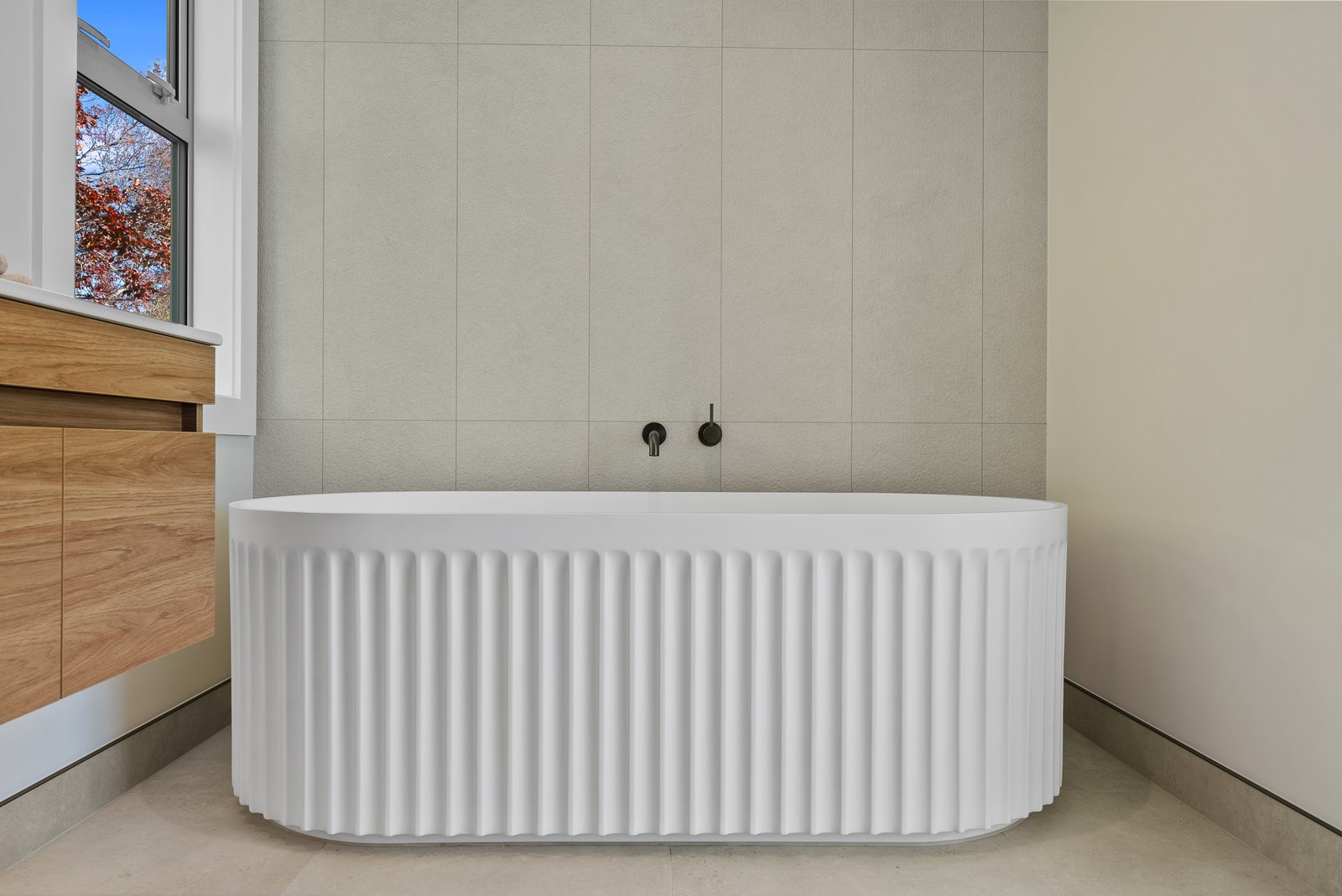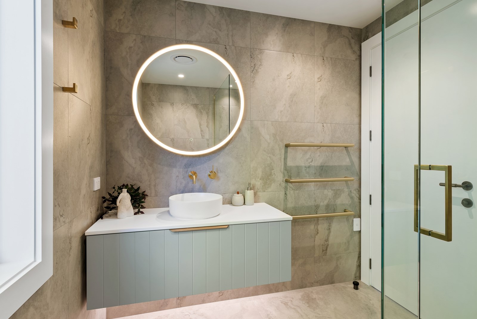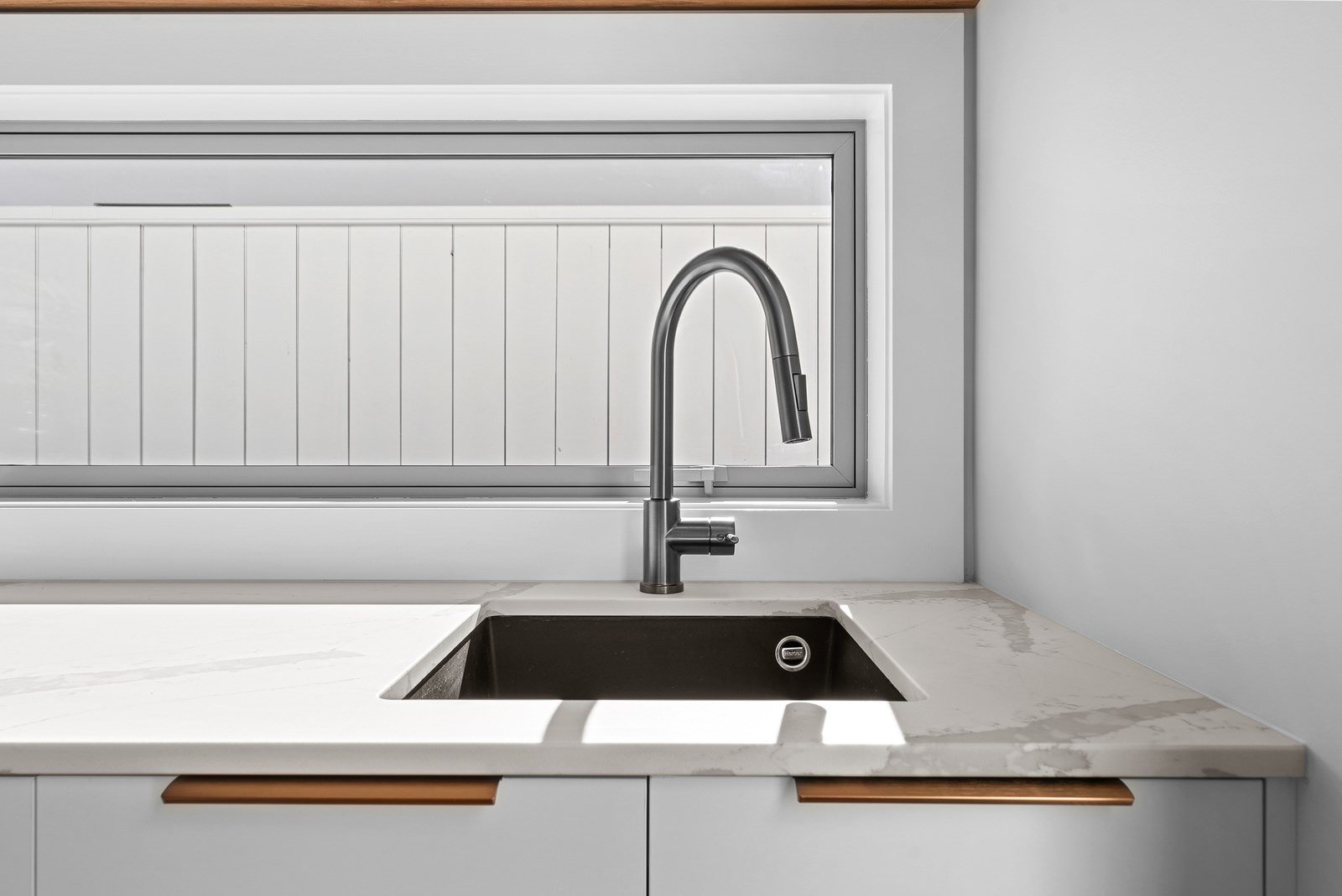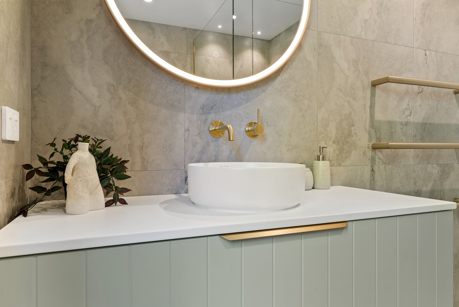 Yes, sustainably built smart homes can be beautiful, as this four-bedroom showhome for Design Builders Canterbury illustrates. Both its bold exterior and serene interior were built with meticulous attention paid to ensuring natural light, privacy and spatial harmony throughout. The heart of this showhome is its entertainer’s kitchen (complete with scullery), a luxurious combination of wood, marble and elegant up-lighting. The bathrooms are just as opulent, with three rainheads in one ensuite shower, floor-to-ceiling tiling and deep baths for soaking in.