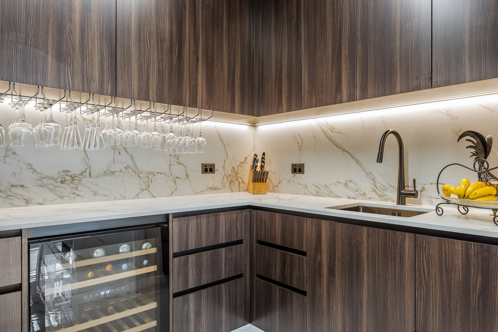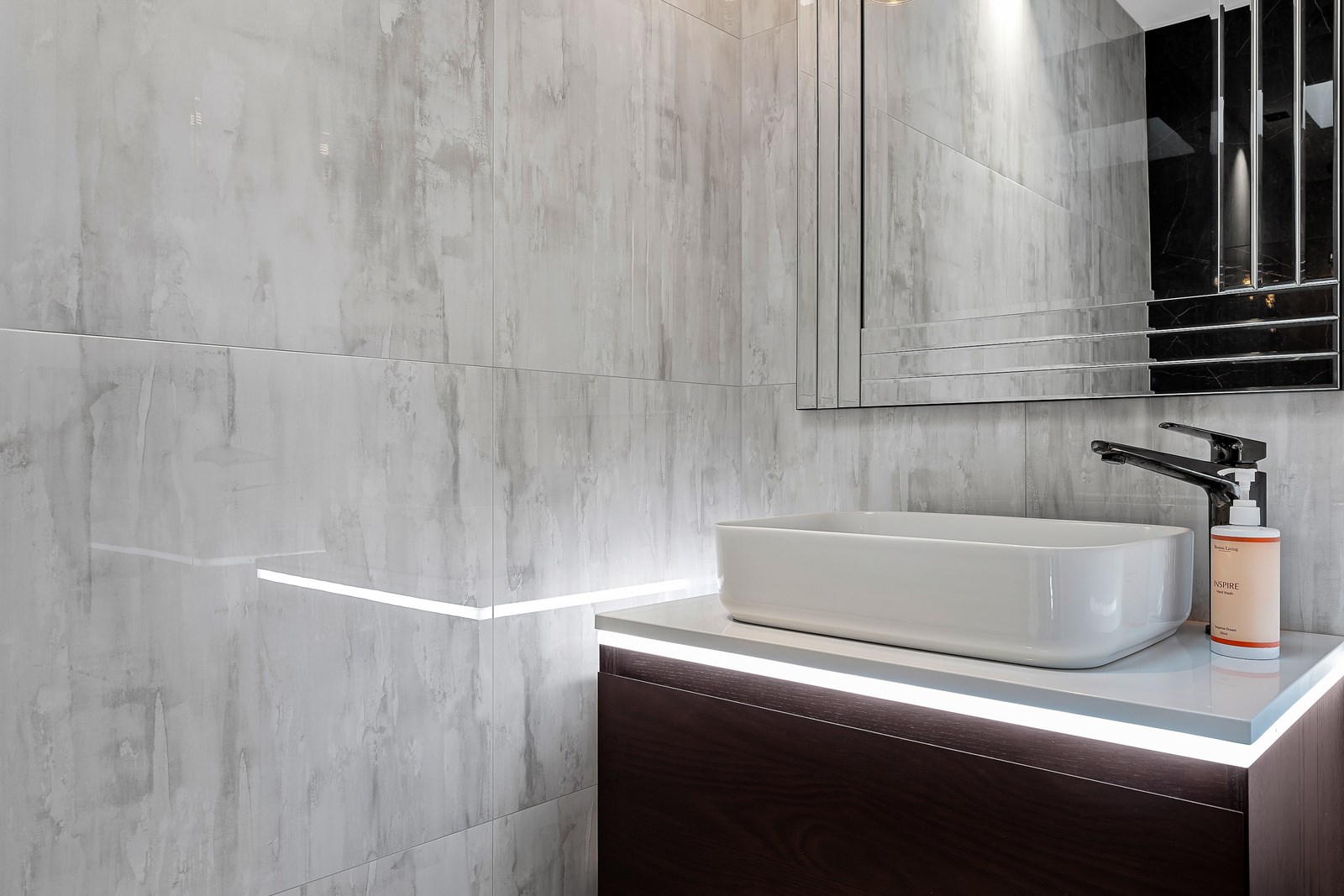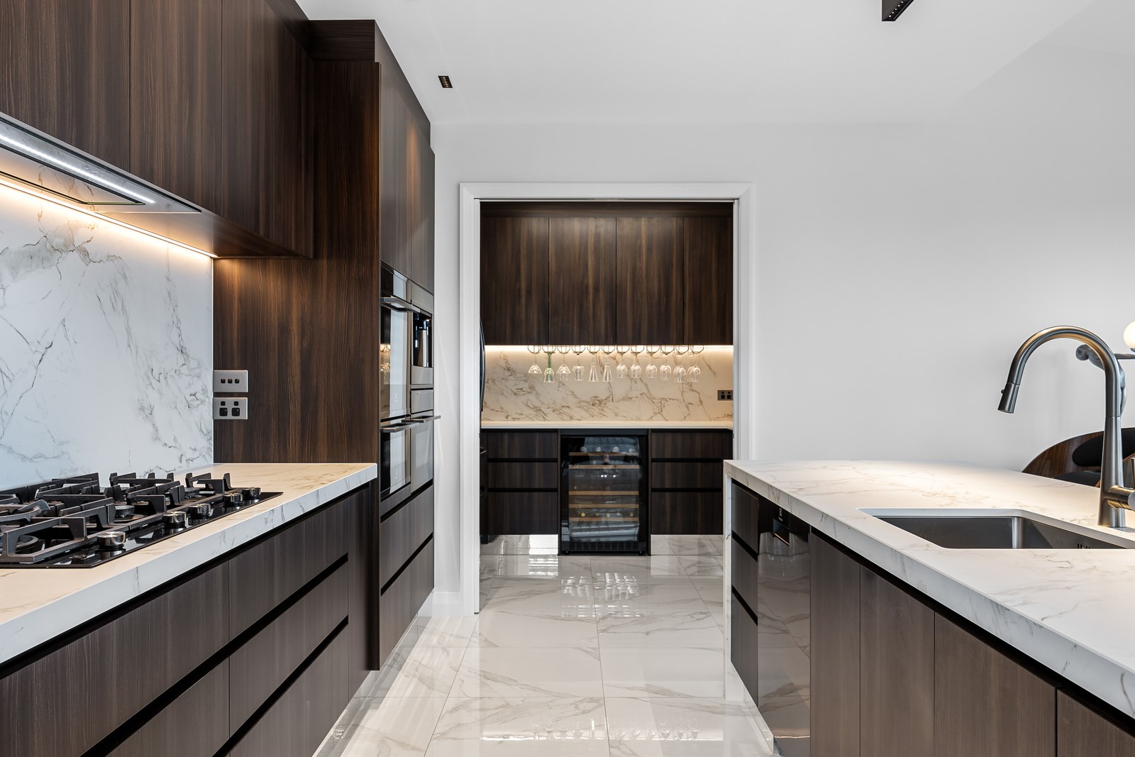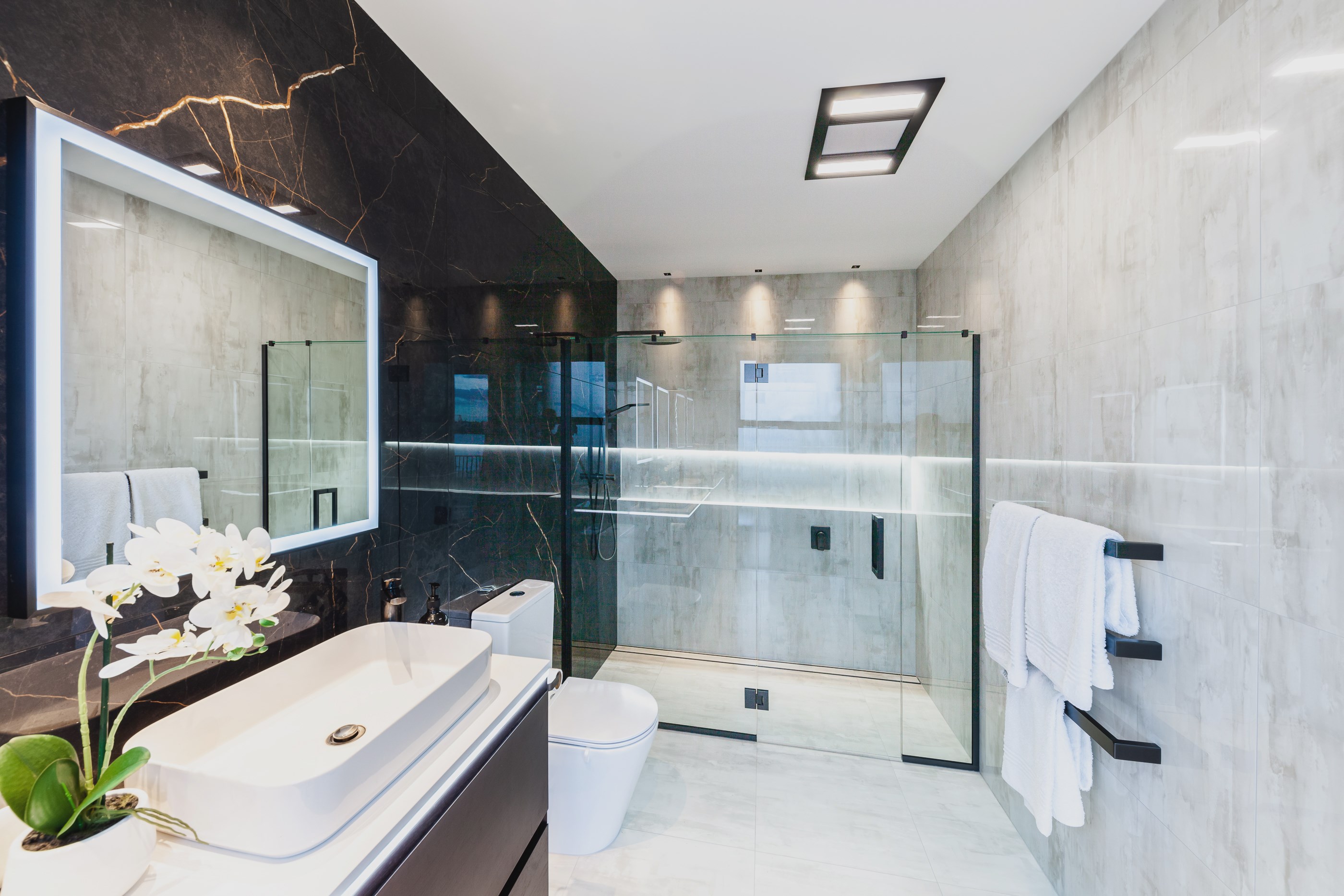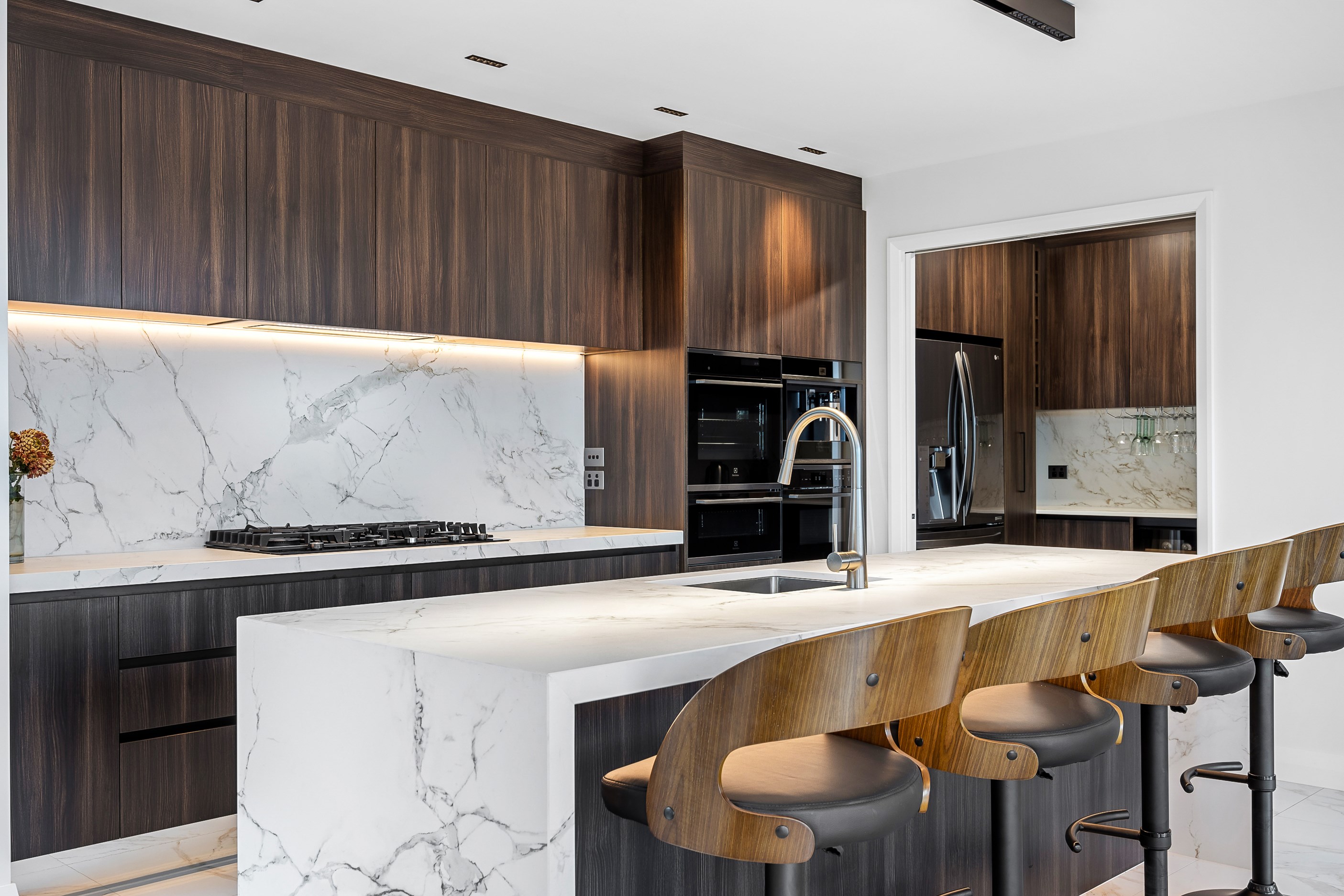 Stone veneer, LMA timber cladding and horizontal feature windows make for a stunning first impression of this home which makes maximises its spectacular 180-degree views of Pegasus Lake and close proximity to the beach. Its bold design elevates the streetscape as much as it does the lifestyle of its occupants, with a layout that works like a charm. On arrival, elegant marbled tiling runs through the entrance to the kitchen and dining area. The designer Millbrook kitchen is a showstopper with sleek black accents, integrated appliances, porcelain benchtops and a butler’s pantry with cavity sliders, making for mess free entertaining.