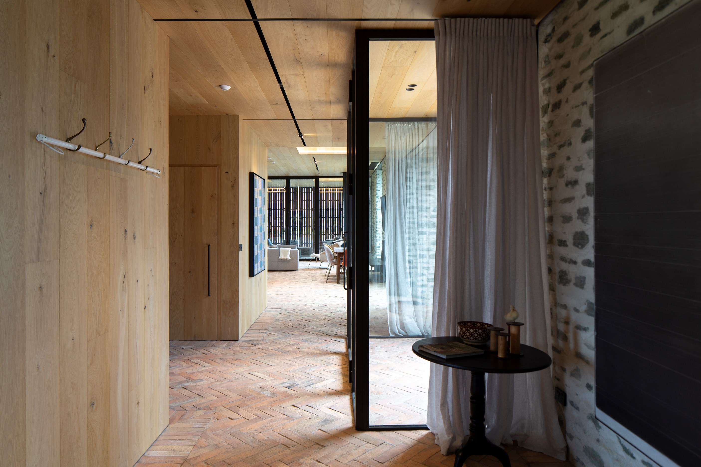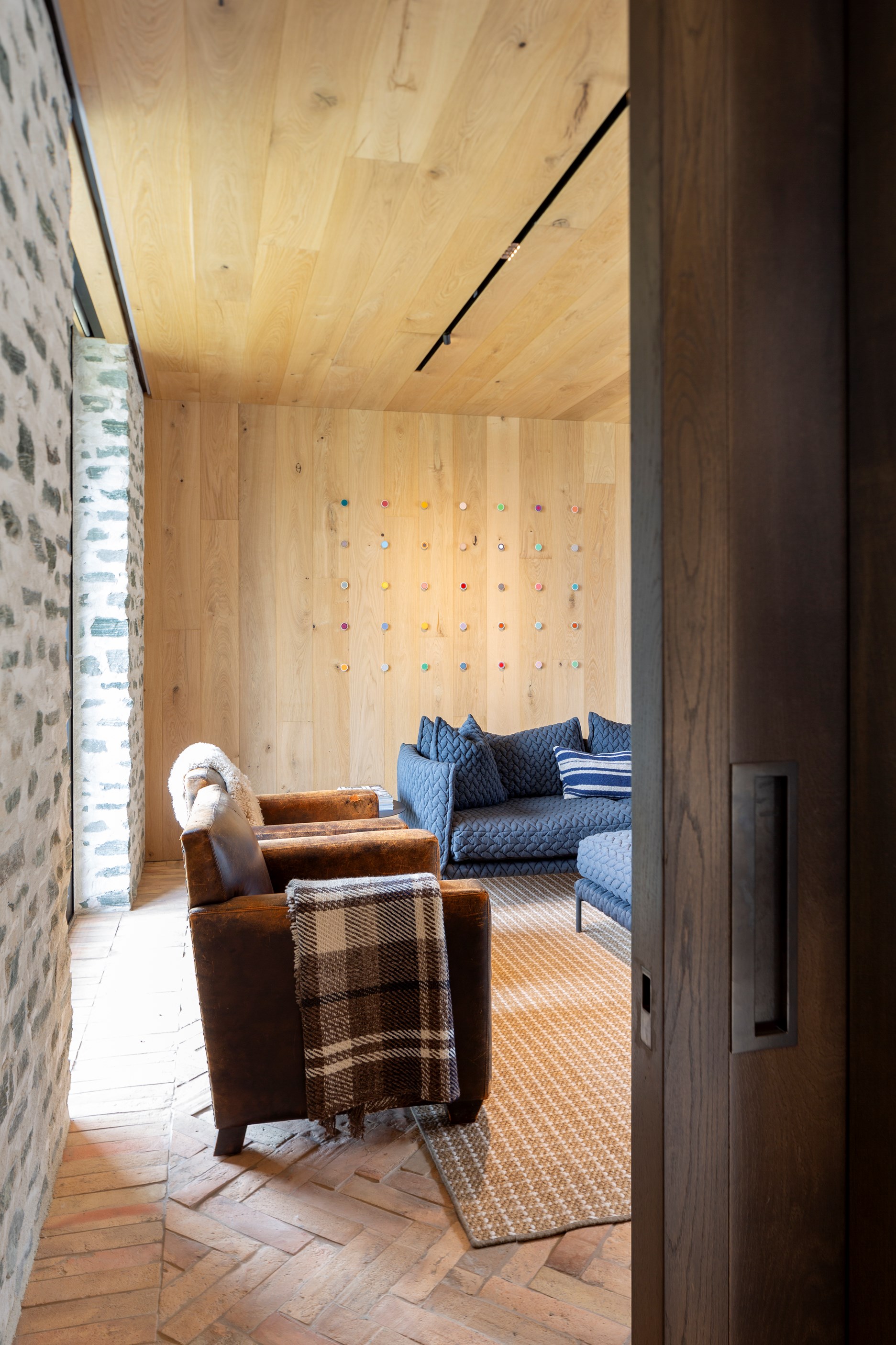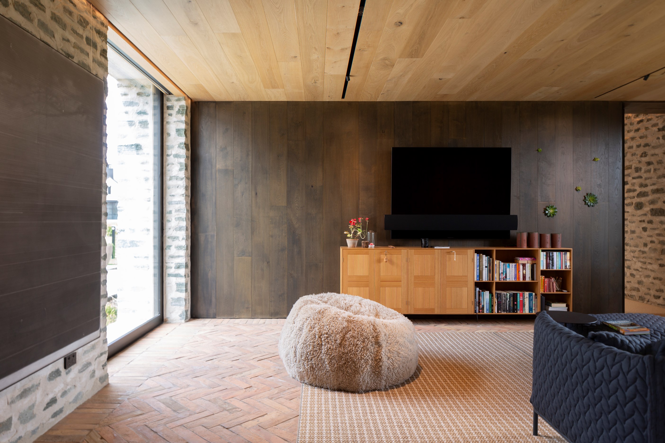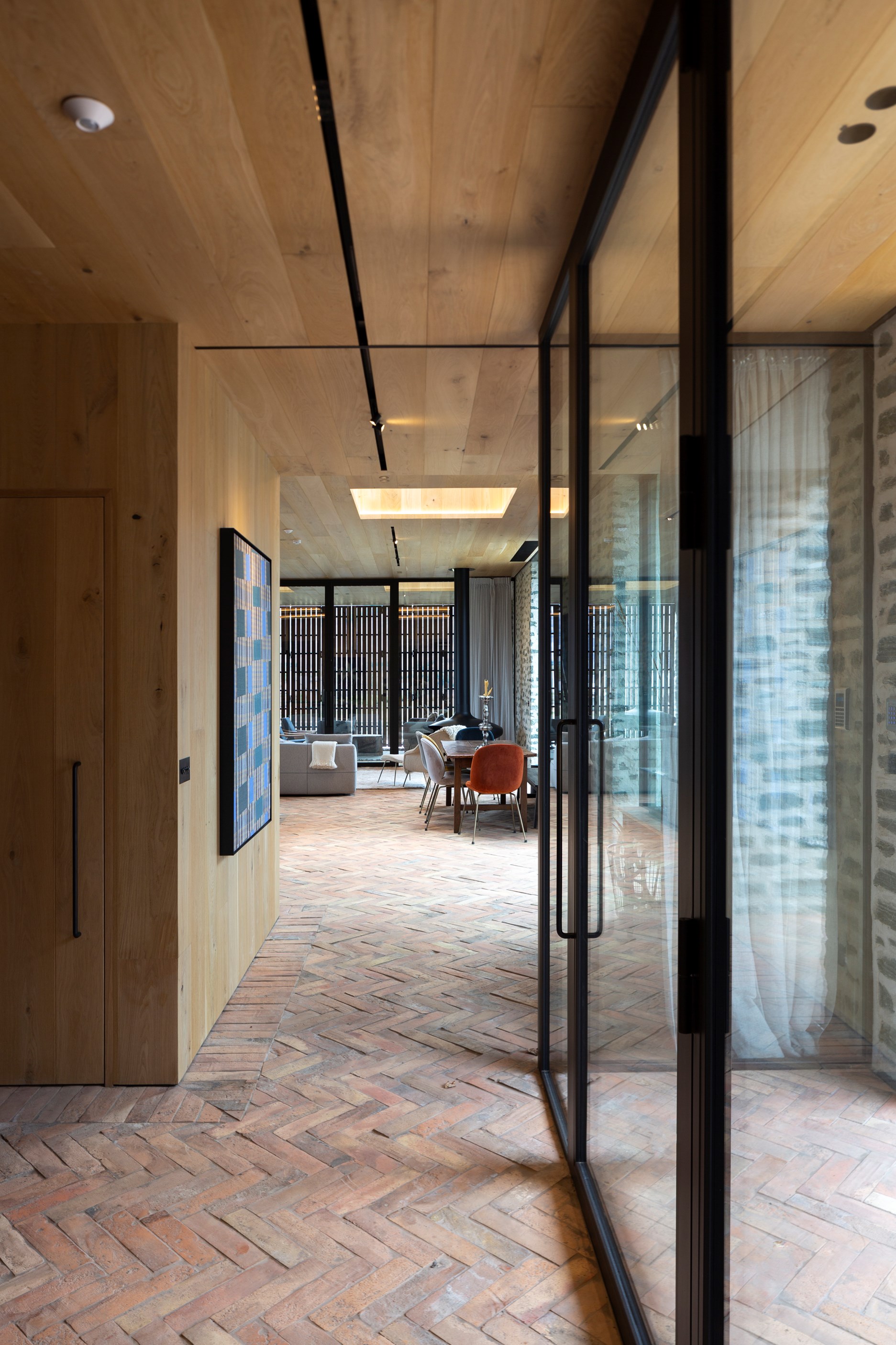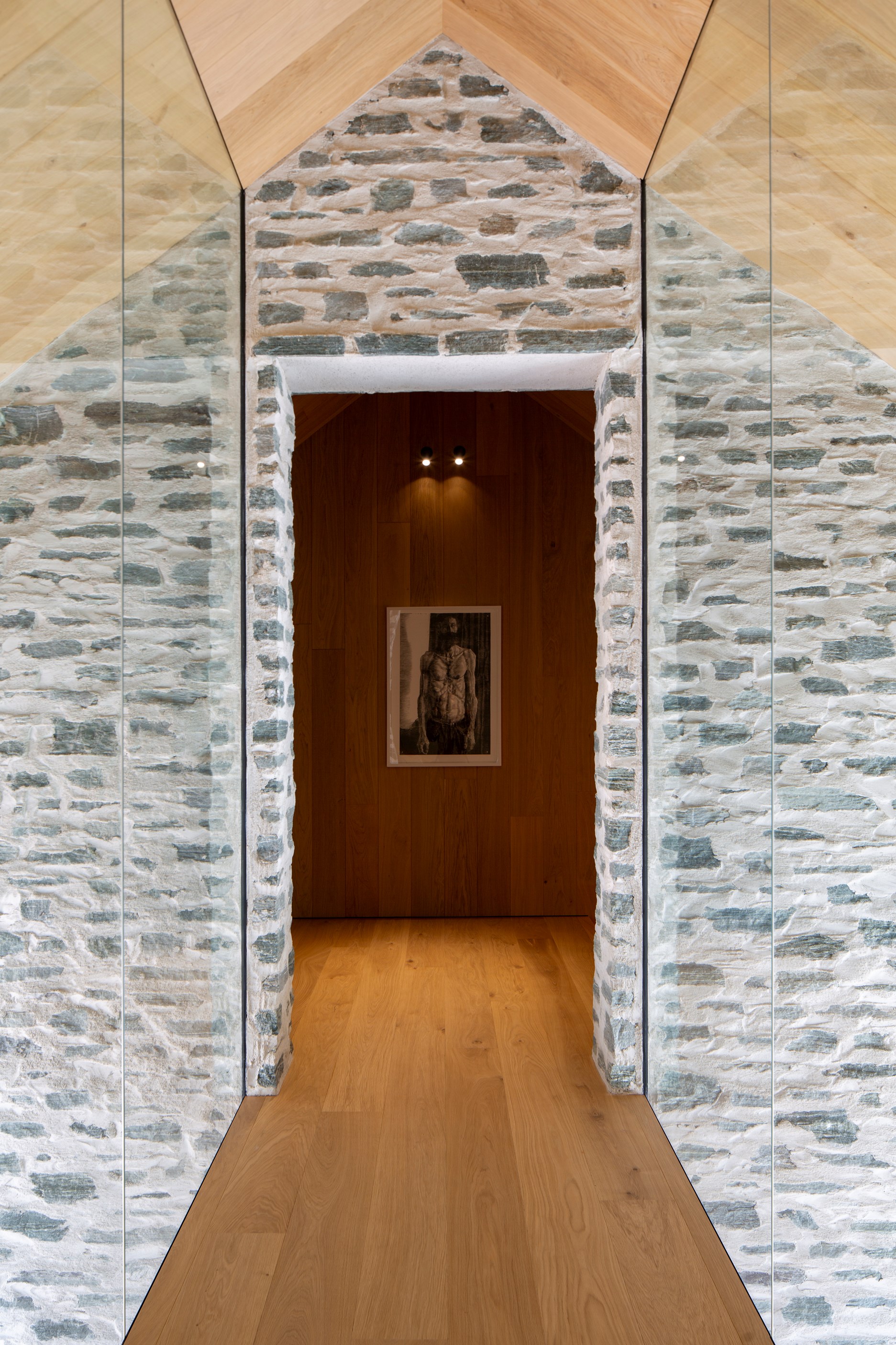 The simple barn form never looked so good. This Patterson Associates Architects-designed holiday home speaks the Central Otago language of stone and timber. The vernacular of The Gatehouse is expressed in two barn-like structures, one clad in local schist, the other in timber – wholly appropriate for a property on a former sheep station. The brief was to deliver a flexible home for family and guests, which is not as simple as it sounds. Sometimes it has to accommodate lots of people in various stages of their lives; at others, it has to be comfortable for just two. Flexibility was key to the configuration. Still,there was plenty of room to work with – 661sqm, in fact. The timber, slightly smaller of the two pavillions sits on the street side of the site and has bedrooms, bathrooms, a kitchen, living spaces and a garage. Across the courtyard and linked by a gallery is the stone pavillion, with bedrooms, a large open-plan kitchen, dining and living area.